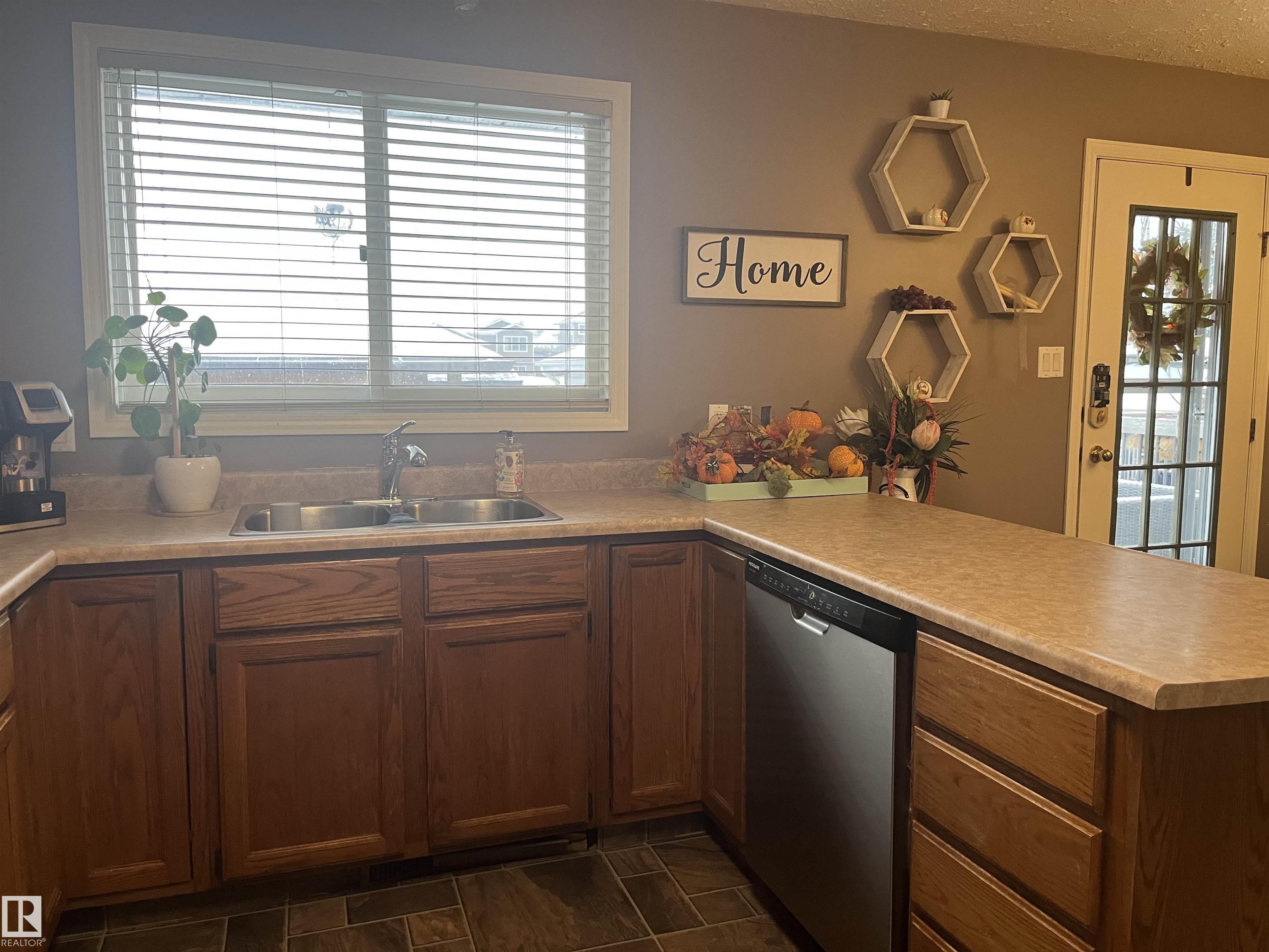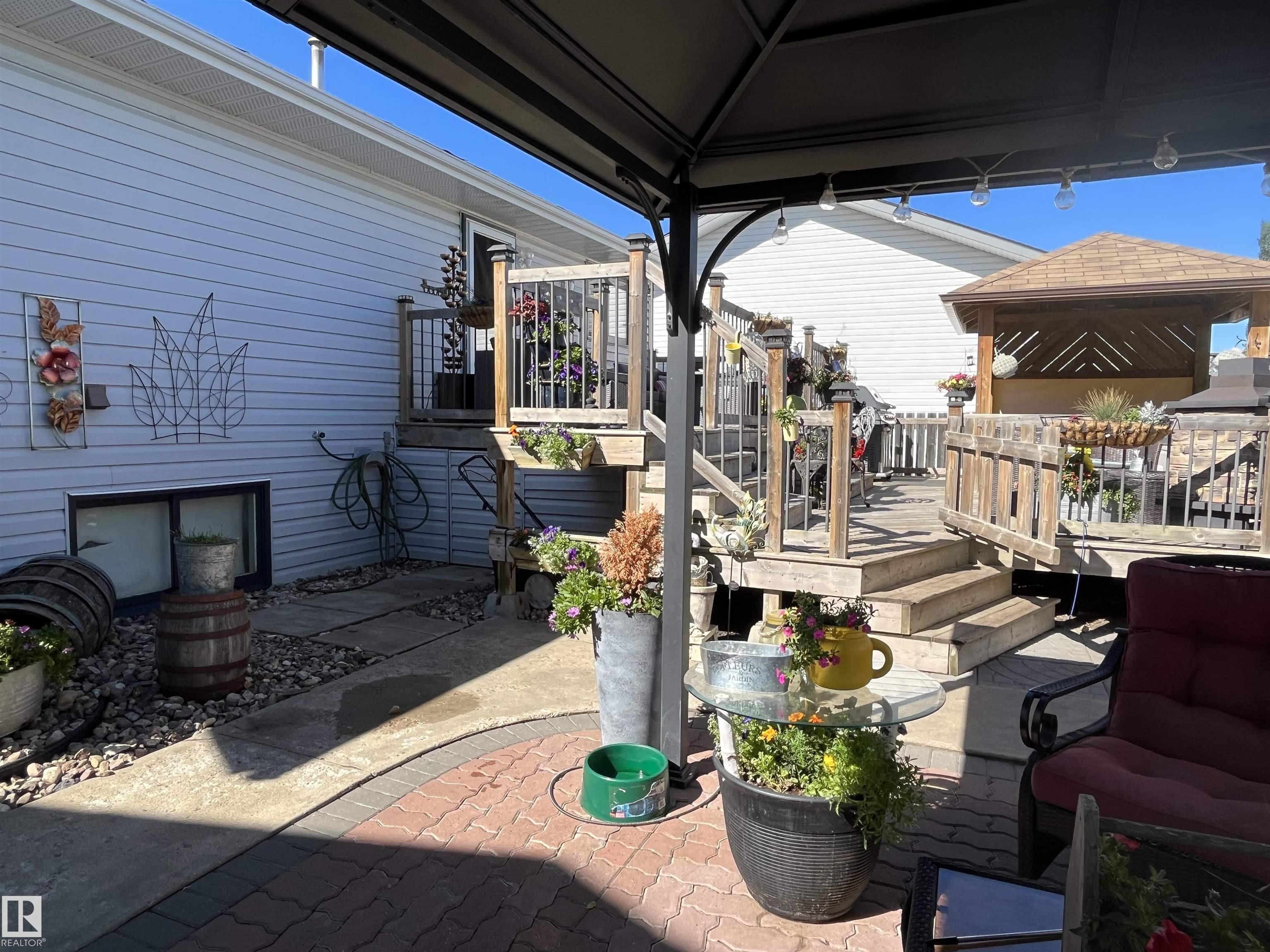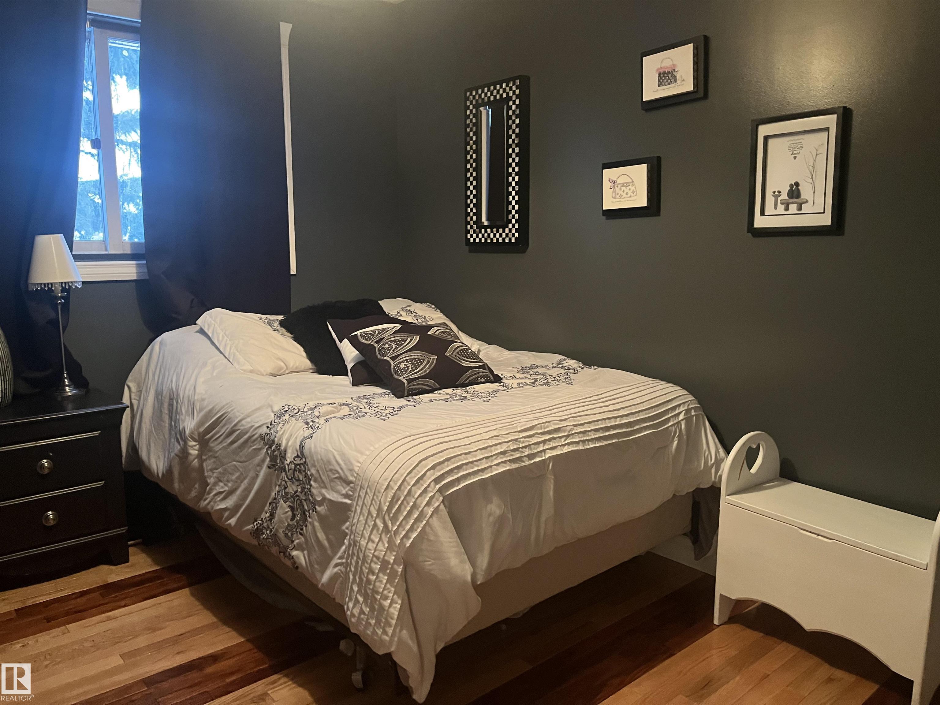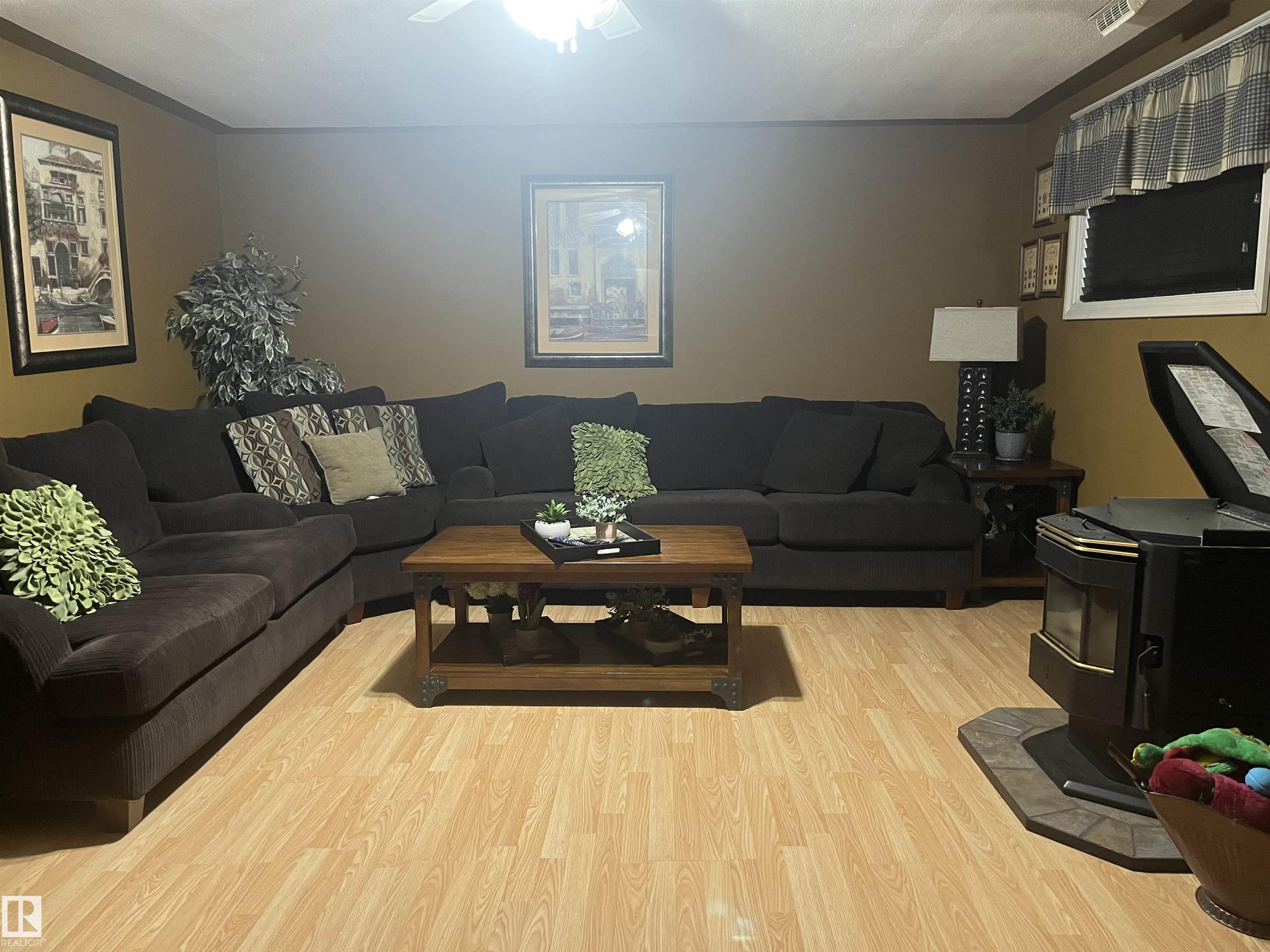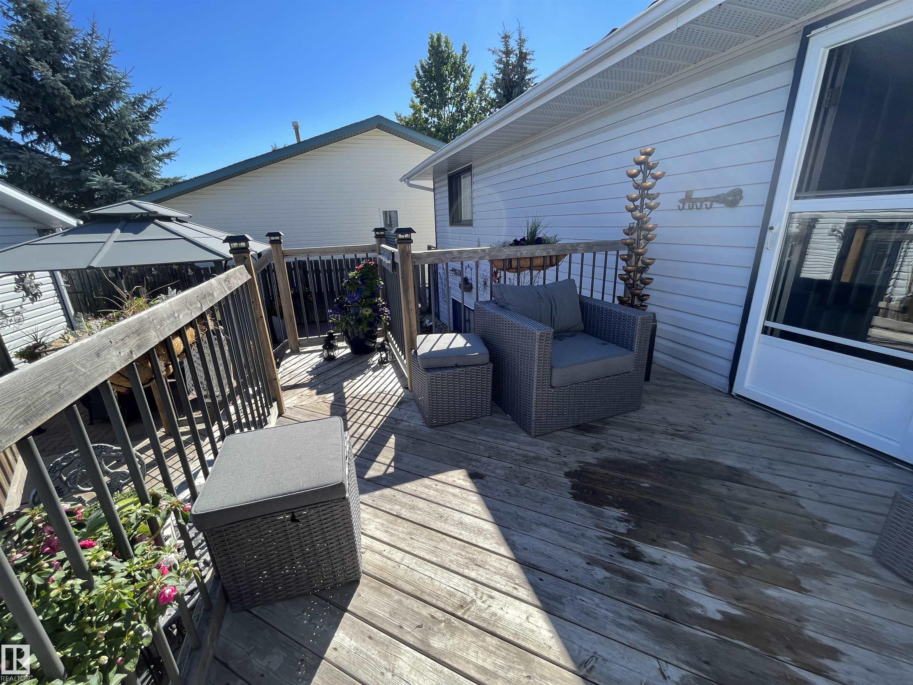 Four bedroom home located in Elk Point. The home features a large kitchen/dining room with a south facing sunken living room. Much of the main floor has new hardwood flooring. The bedrooms are all very spacious and the master bedroom features a walk in closet and access to the main bathroom. The basement features another bedroom, a large family room with a pellet stove, a den and a unique area that could become a playroom or a reading room. There is a large two level deck with a hot tub off the dining room. The deck leads to a double detached heated garage. All this is situated on a quiet street in Elk Point. The hot tub is not in working order.