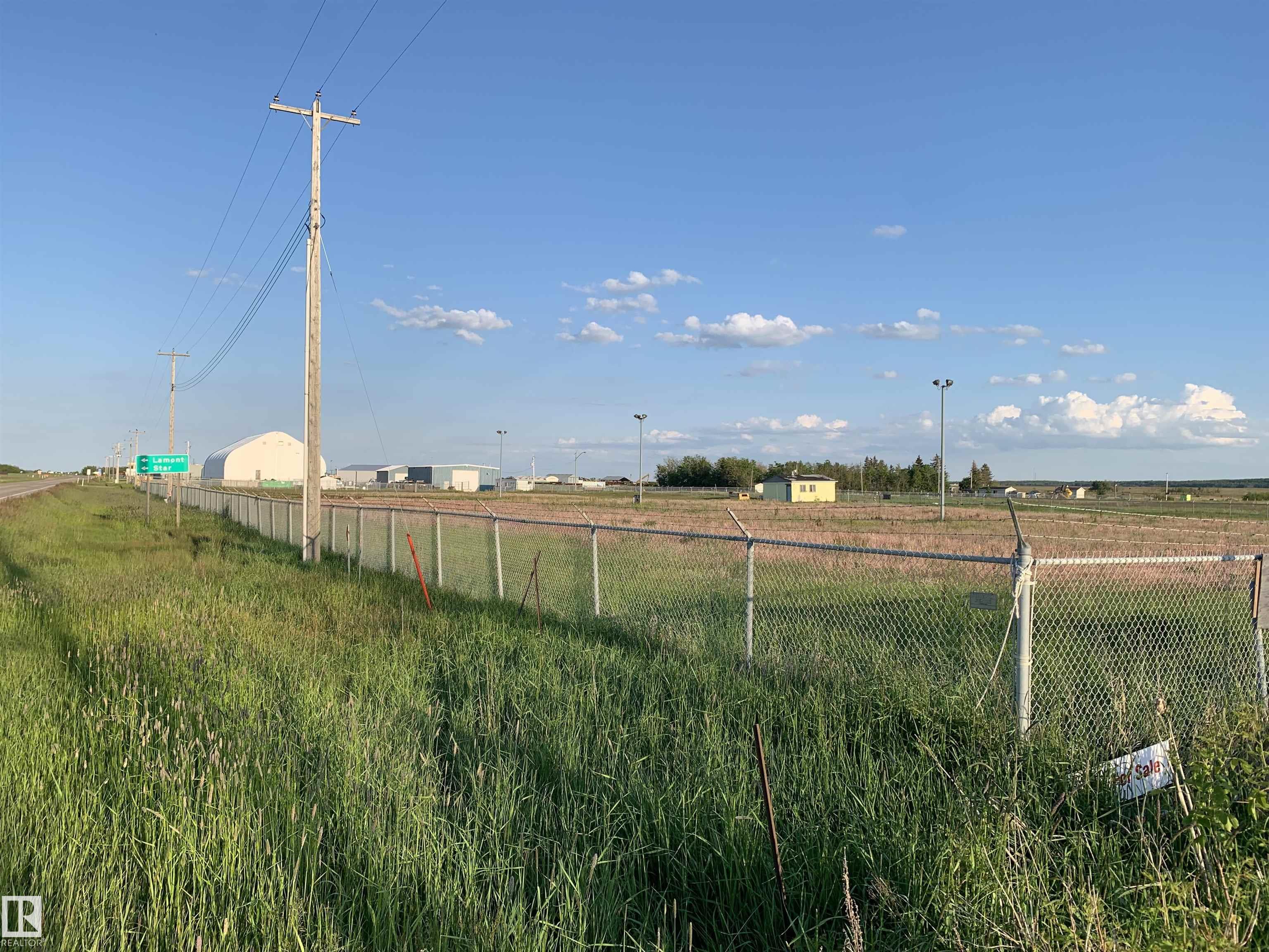 8.85 Acres of fully serviced Highway Development Land in the Town of Lamont. Lamont is approximately 20 minutes away from Fort Saskatchewan and less than an hour away from Edmonton. The land is situated along the High Load Corridor, Highway 15 in Alberta and has access to Alberta's Industrial Heartland. The land is fully serviced, with access to water, electricity, and gas and is designated for highway commercial development and allows for a variety of commercial and industrial uses. The northern portion of the land, about 3 acres in size, is fenced, graveled, and includes a storage shed and has a potential to redesignate the northern portion of the land to C3 - Highway Commercial Land use, which would allow for a diversity of commercial uses primarily intended to serve vehicular traffic. The Town of Lamont offers a range of services and amenities, including parks, accommodations, shopping, and dining options.