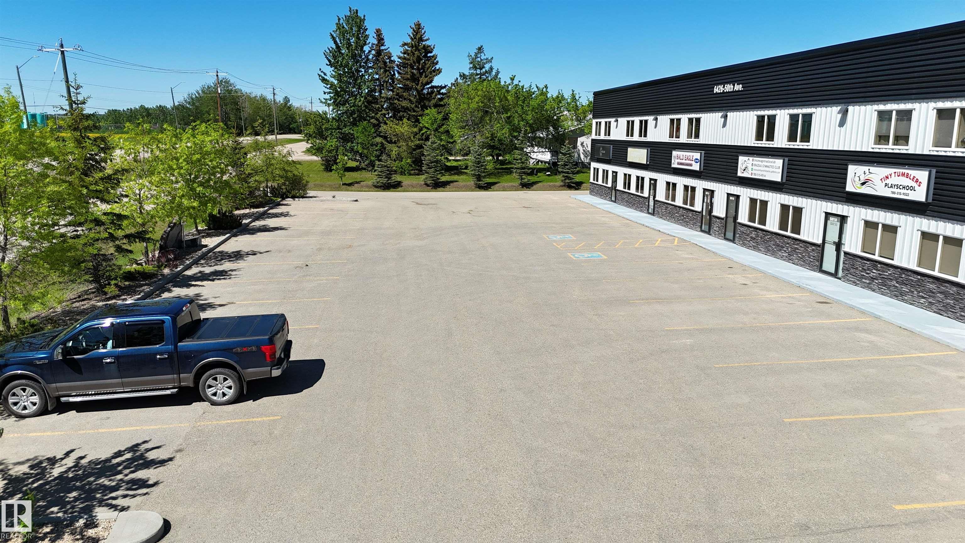 Beautiful newer building with 1 bay available to lease(Possible 2nd bay available) The main level is 2714 sq.ft. in size(25'x107'). Shop space is 24x74 ft.This bay includes front offices, a kitchenette, bathroom, a storage area, & a finished open mezzanine of approx 600 sq.ft. The total area consists of 3314 sq.ft. Inside the shop features overhead infrared heaters & a furnace for the office space up & down. This building is steel frame construction. Front ceiling height is 24' with back being 22'. Shop Doors are 14'x16' high complete with electric door openers & a 5' apron. Concrete floors are 6" thick & have floor drains too. Power is 600 amp/600 Volt as well! W/ T5 lighting & 3 phase system. Front is paved providing room to park 4 vehicles/ bay, with additional parking in back. Behind the building is engineered w/ Geotextile fabric, compacted & graveled. Chain link fencing encloses the back offering secure yard space. Well built building located in a heavy traffic area providing easy access to Hwy 22.
