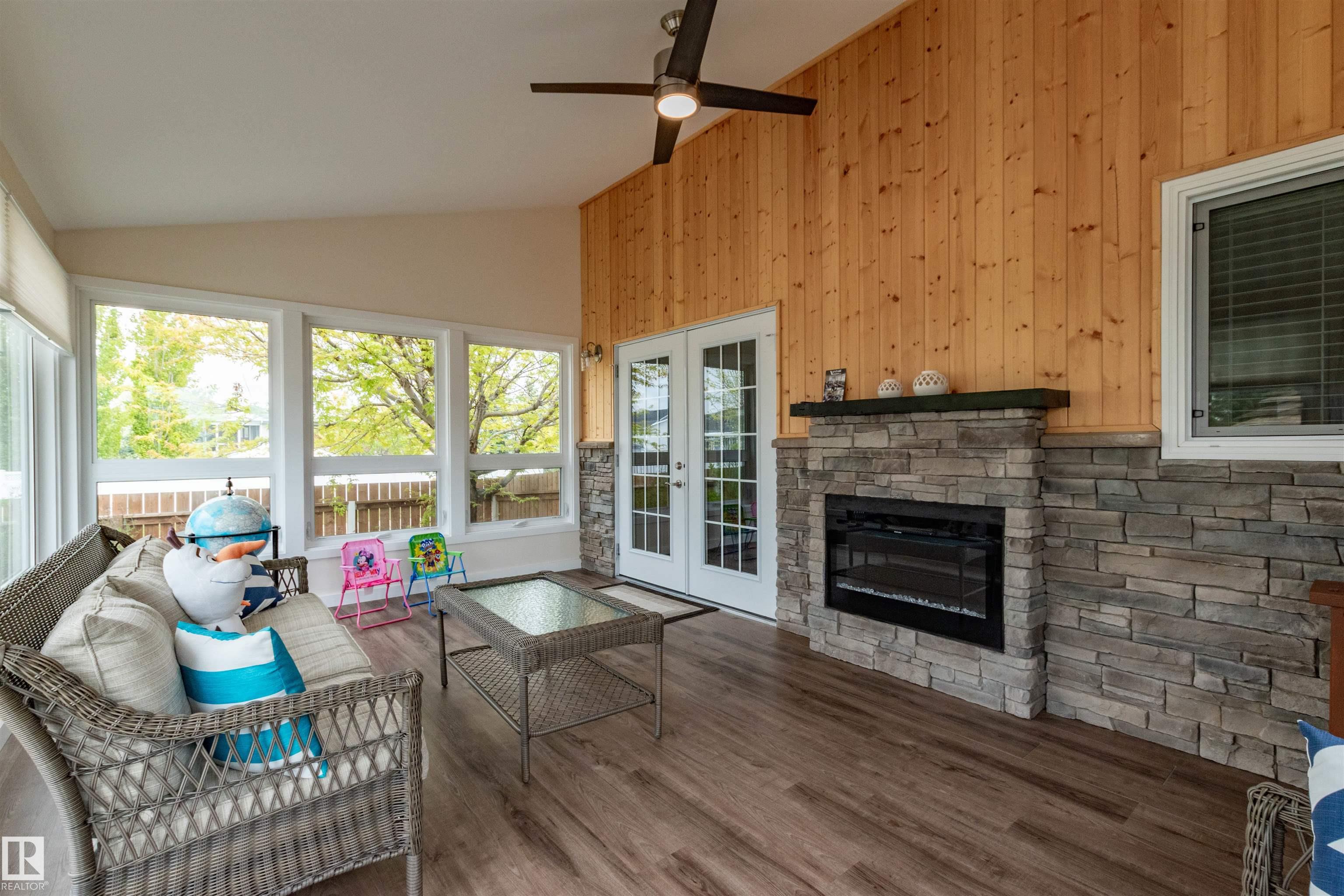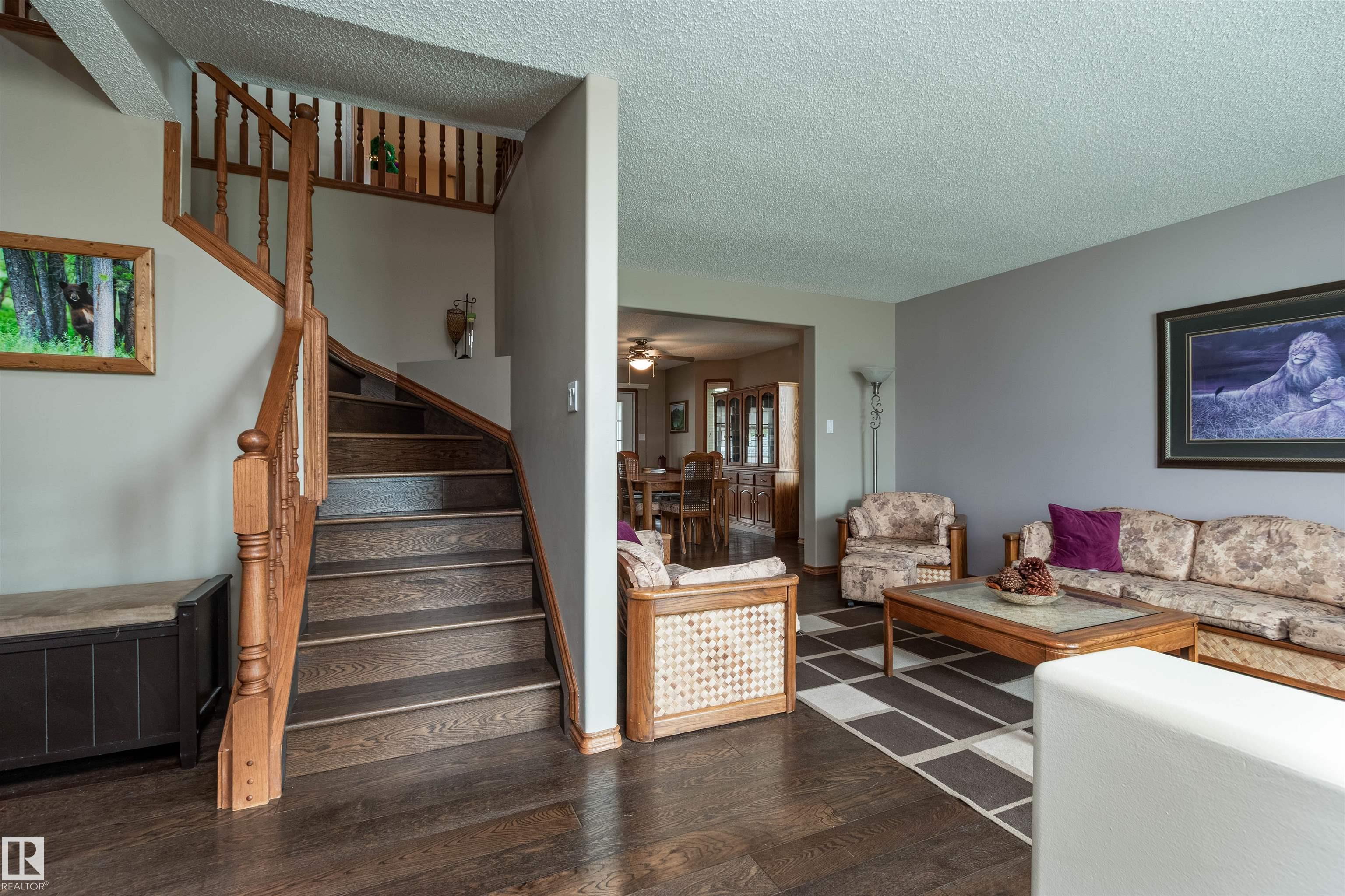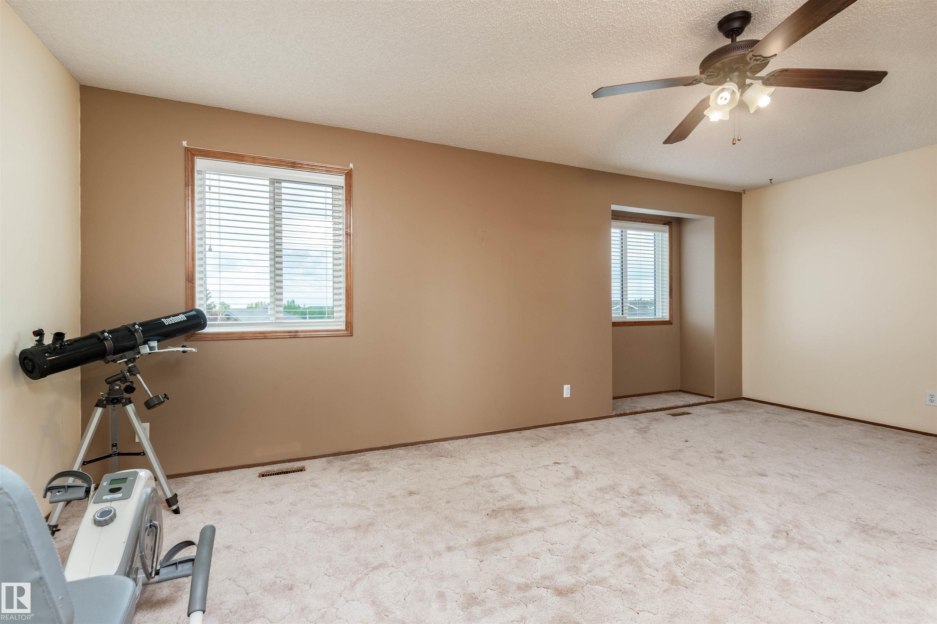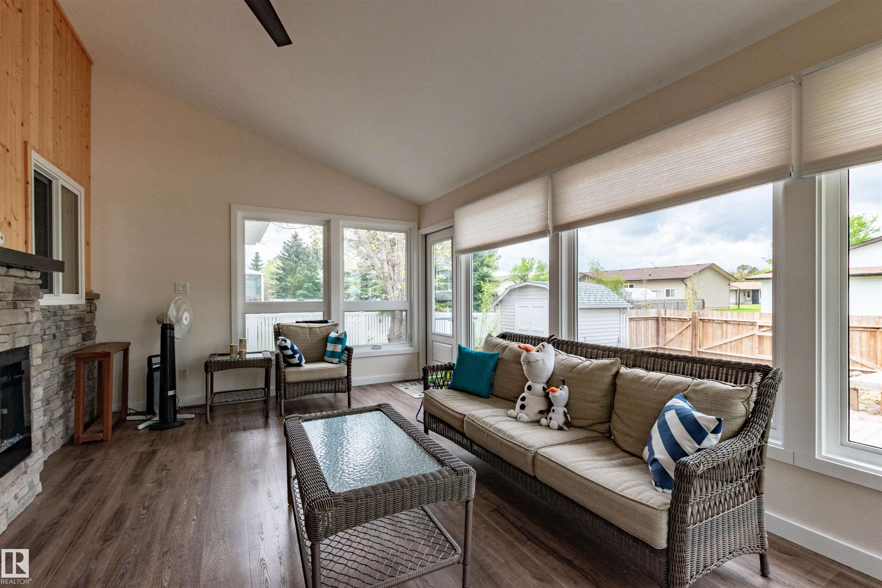THIS SOUTH SIDE BEAUTY IS BURSTING WITH UPGRADES... Situated on a Corner Lot with back alley access. Boasting 2500 sq. ft of living space on the upper two floors plus a fully finished basement and a newly added 4 season room With a cozy fireplace to enjoy (2019) PLUS central AIR!! . ALL 4 bedrooms are on the upper storey with two newly renovated bathrooms. The Main floor has a family room, living room, kitchen with quartz counter tops, dining room, and office ( all having new flooring, and new windows) The back yard has an new fence in 2022 and new deck off the beautiful sunroom. The Main floor laundry is just off the double car garage with new doors and stone work in 2018. All appliances and custom blinds stay. ALL THIS IN THE EVER GROWING TOWN OF VEGREVILLE an easy commute to Sherwood Park.