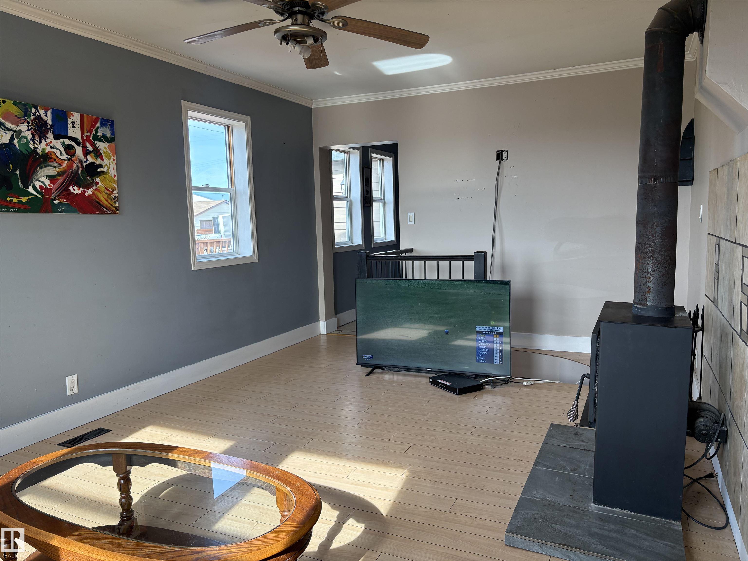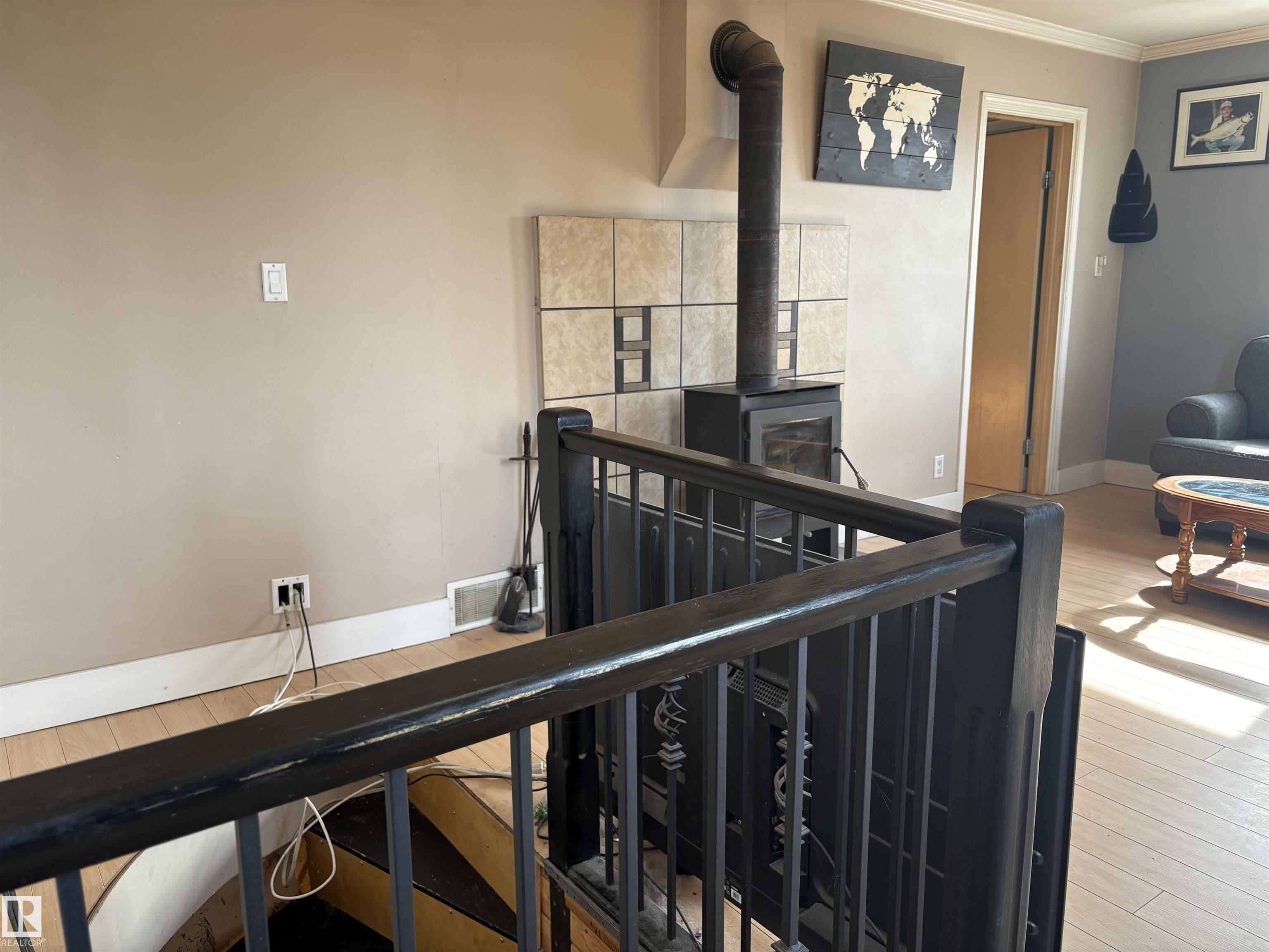 Attractive, affordable, Two bedroom home in Myrnam with endless upgrades. This property has been extensively renovation over the past 10 years. The roof, siding, doors & windows have been replaced. The deck on the west side has been replaced. Inside has had the furnace, hot water tank and dishwasher replaced. The large eat in kitchen has ceramic tile flooring and custom built cabinets with unique tile backsplash. The living room features a wood stove and windows overlooking down town Myrnam. The home also features a unique loft that is perfect for a kids hide away and a spiral staircase that leads to a cozy basement where you can retreat from everything.