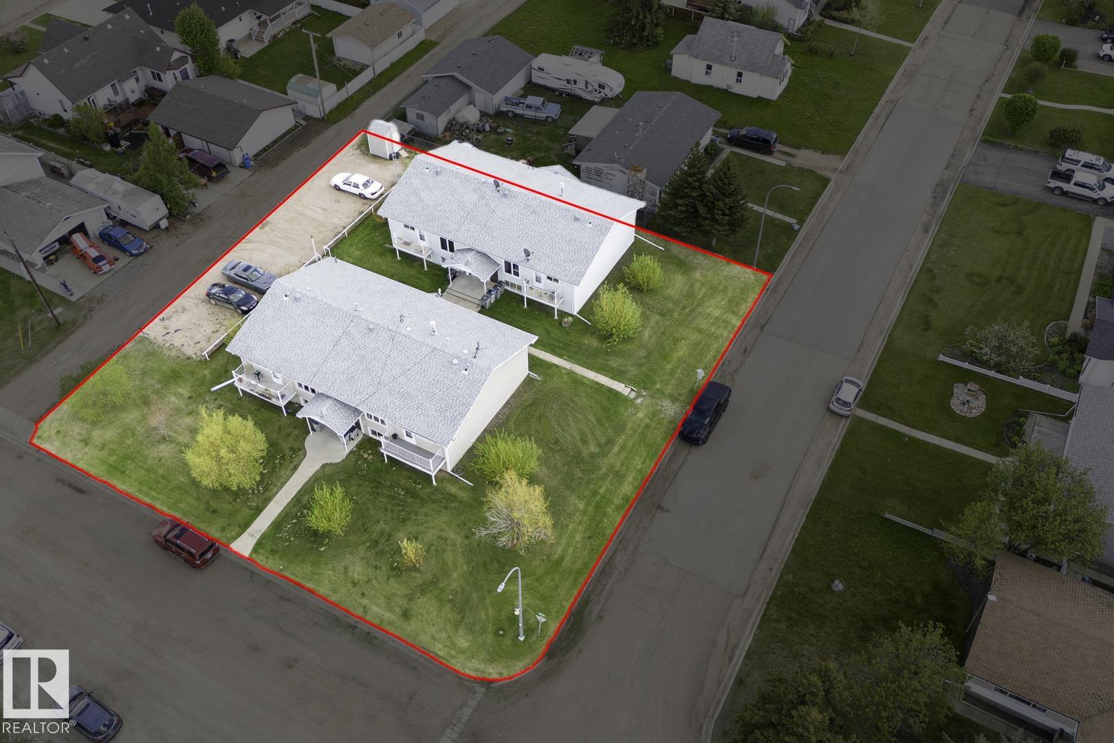 Wonderful investment opportunity in the Town of Mundare. Well maintained and recent updates including roof and structural repairs in 2022, suite upgrades such as new fridges, microwave hood fans and stoves as well as fresh paint, kitchen faucets, bedroom flooring, vinyl windows and more. Revenue is coming in from three 2-bedroom units currently paying $875 each and a 1-bedroom unit at $775. Tenants pay their own power and each unit has an energized parking stall. Situated on a corner lot, across the street from a park. Can be purchased as a package with neighboring 4plex, 5342 53 Ave (MLS E4427389).