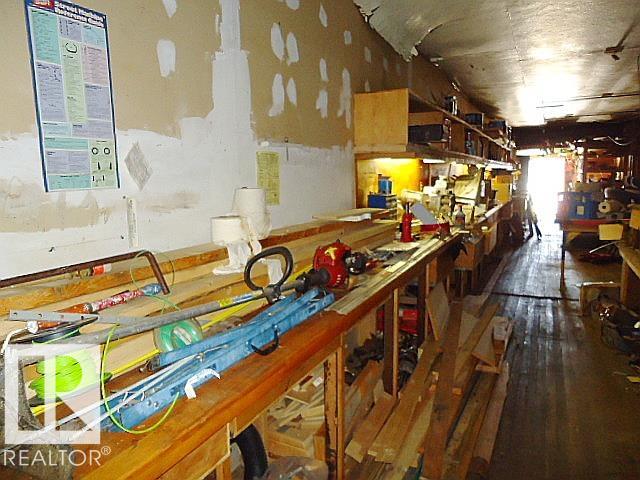 Over 2000 sq feet of street level storefront / warehouse space on main street in Holden. Great space with various discretionary uses and unlimited business potential. Was last used as a flooring warehouse. Includes table saw with large table platform ideal for manufacturing and 60 gallon air compressor with numerous air drops installed. 3 phase power opens many commercial opportunities. Low maintenance metal clad exterior. Durable hardwood flooring throughout. Original bathroom was dismantled but rough-ins remain. Forced air heating. 40 feet of hardwood counter top workspace. Upper and lower cabinets with drawers stay.