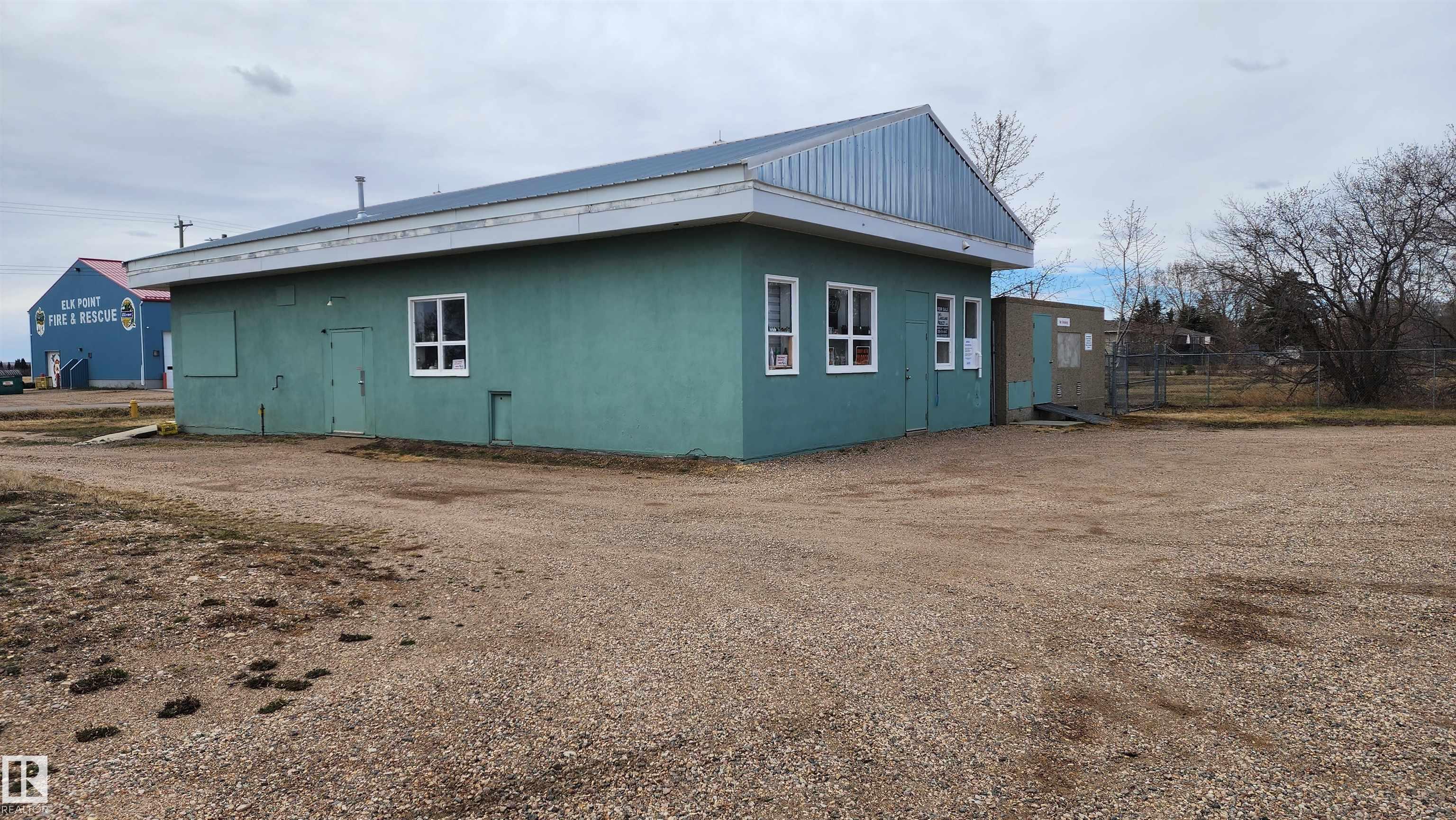 HUGE PRICE REDUCTION! COMMERCIAL PROPERTY in Elk Point consisting of a well-maintained 1680 sq.ft. building, an attached 658 sq.ft. cold storage area and a 240 sq.ft auxiliary building all on 0.34 acres. The lot is partially fenced with chain link fencing with gate for secure storage and features a gravel compacted drive-through lane with paved streets on north and south side of property - great access for customers and delivery trucks alike. There is also a loading dock with an overhead door. The building features metal roof, one overhead heater, one HE furnace, hot water heater, two 2 pc bathrooms, office area, retail area and storage. The auxiliary building serves for more storage. Great opportunity to start your new business here!