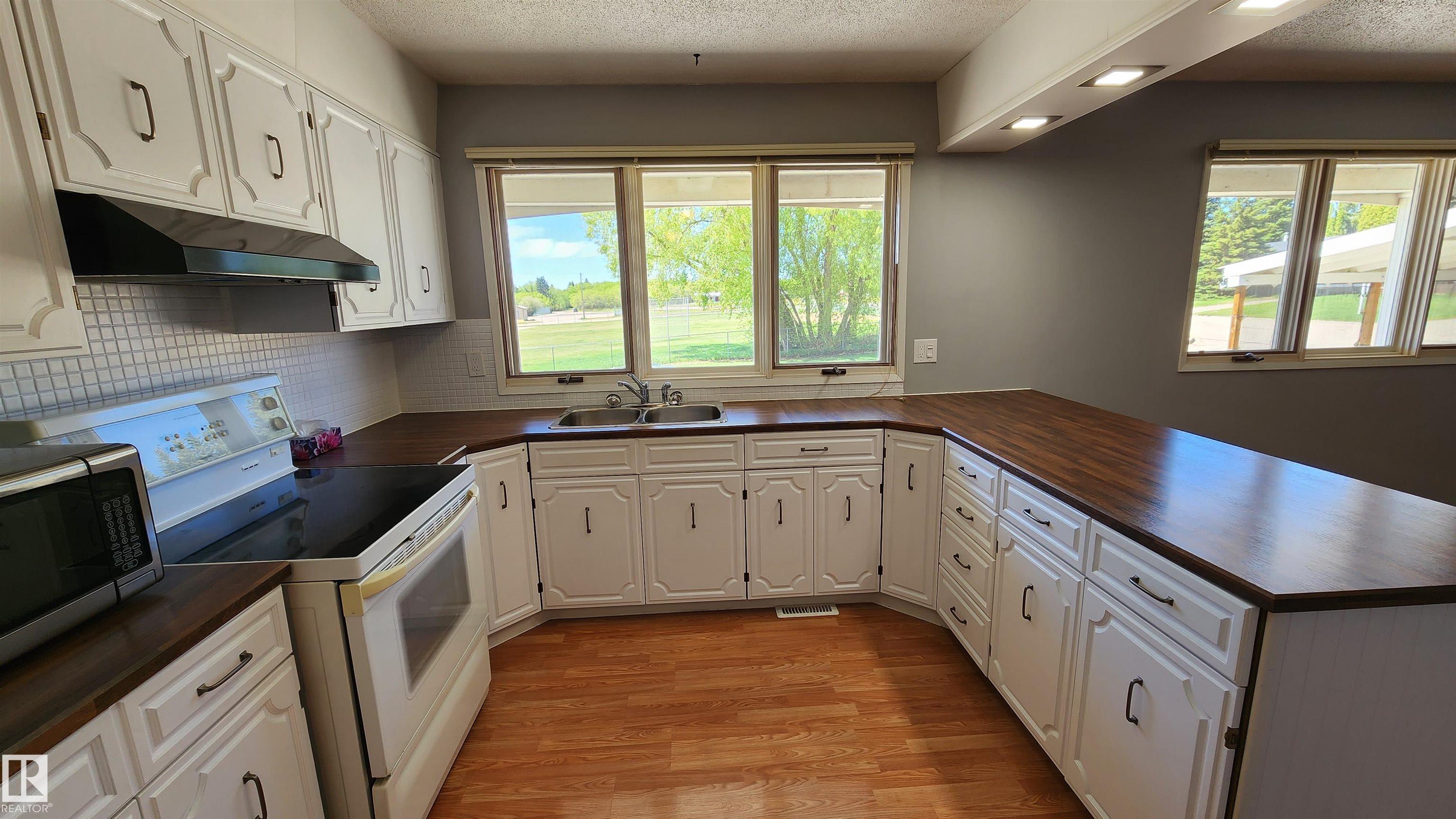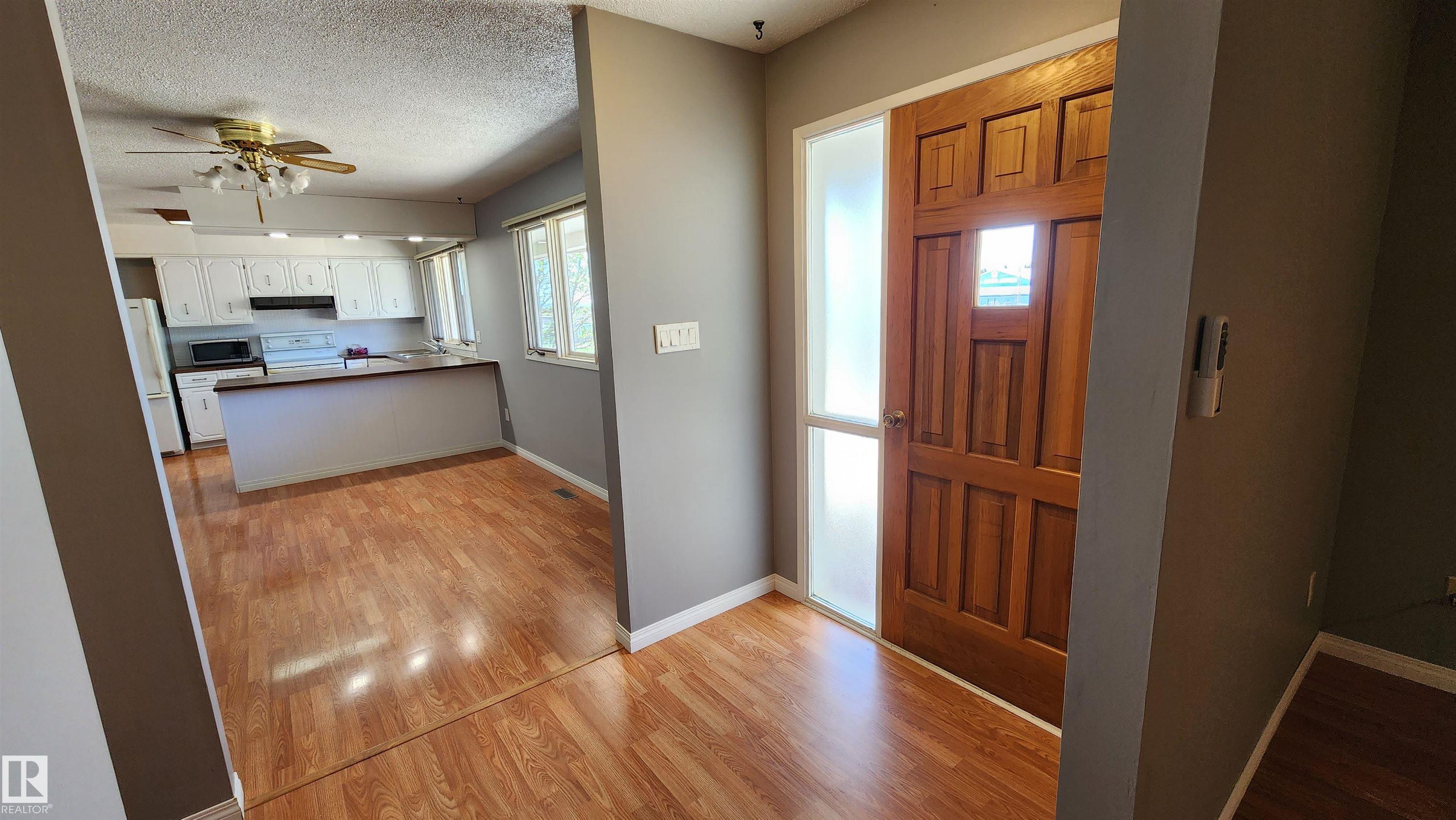 This property is SPACIOUS in every way! From the 1369 sq.ft raised bungalow, 650 sq.ft. front deck, 720 sq. ft attached garage to the 70' x 140' ft lot, this property offers so much. The large windows bring in beautiful natural light to all rooms. The kitchen features ample cabinetry, upgraded LED lighting and is open to the dining room with built-in cabinetry. For convenience, main floor laundry with washer/dryer and a 2 piece bathroom. The main bathroom includes a soaker tub with beautiful tiling and the 3 bedrooms feature floor to ceiling closets with organizers. The basement includes a kitchen, dining area, large family room, recreation room, 3 pc bathroom, storage, cold room & utilities. Major upgrades include flooring, shingles & HE furnace. The attached 24x30' garage provides secure entry to the home. This location can't be beat for your active family - steps to the Elementary School playground, 2 blocks to the ice arena, spray park and a short walk to downtown amenities. Very Affordable!