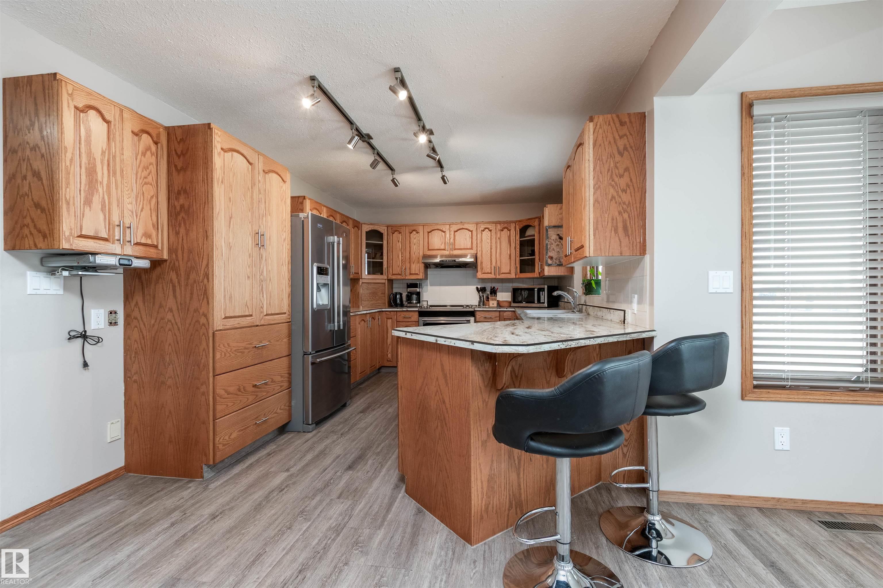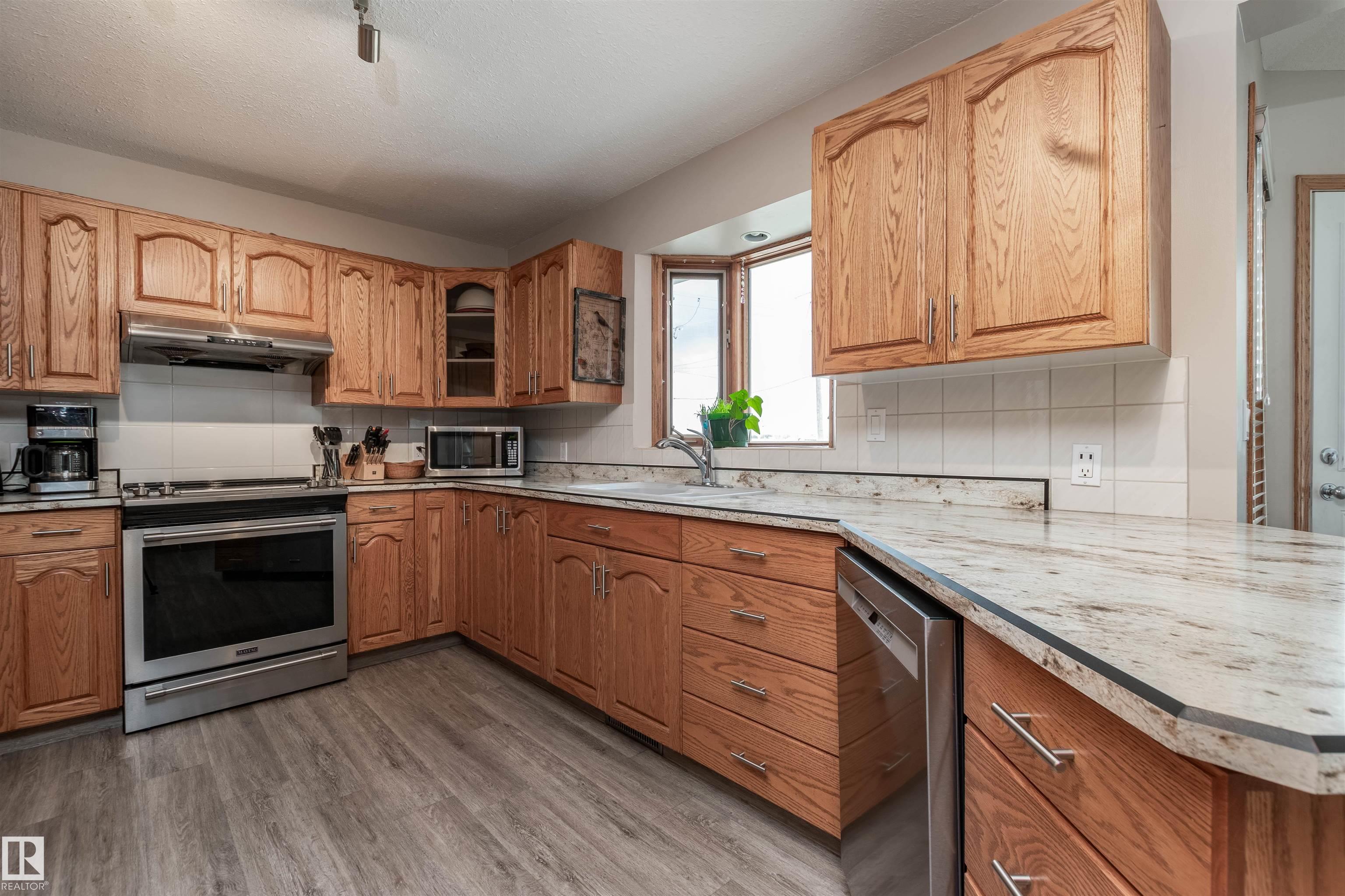This 1990 beauty has 3 bedrooms up and 1 bedroom down- 3.5 bathrooms, Main floor laundry as you enter from the double attached garage. This 2 story home boasts fully finished basement with hot water on demand, weeping tile and back water flow value installed plus central Air Conditioning. A west facing kitchen overlooking the backyard and open to the Huge dining area with gas fireplace, spacious living room with plenty of natural light. The backyard is fully fenced with vinyl fencing, firepit area and a 16x24 shed, with back alley access.