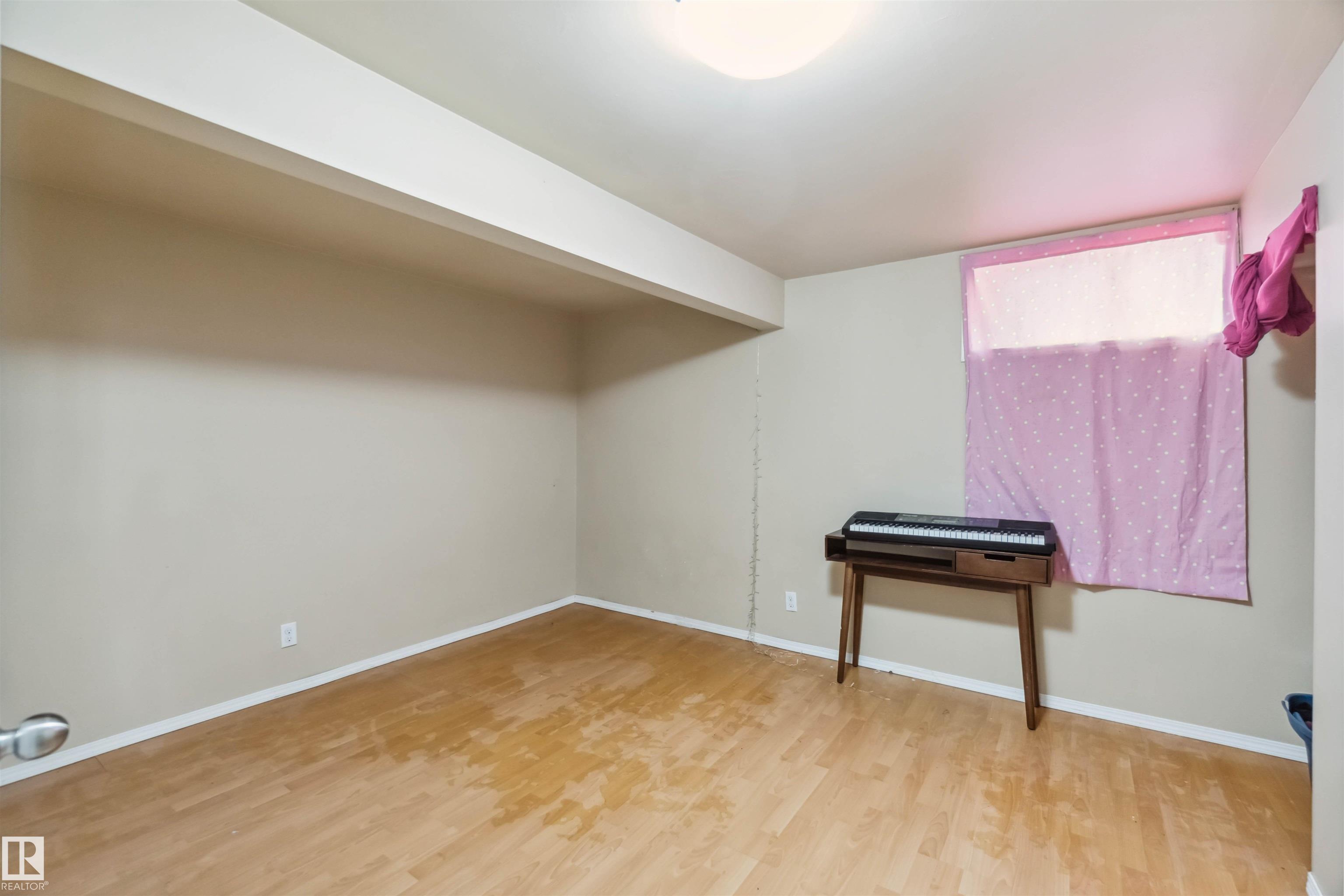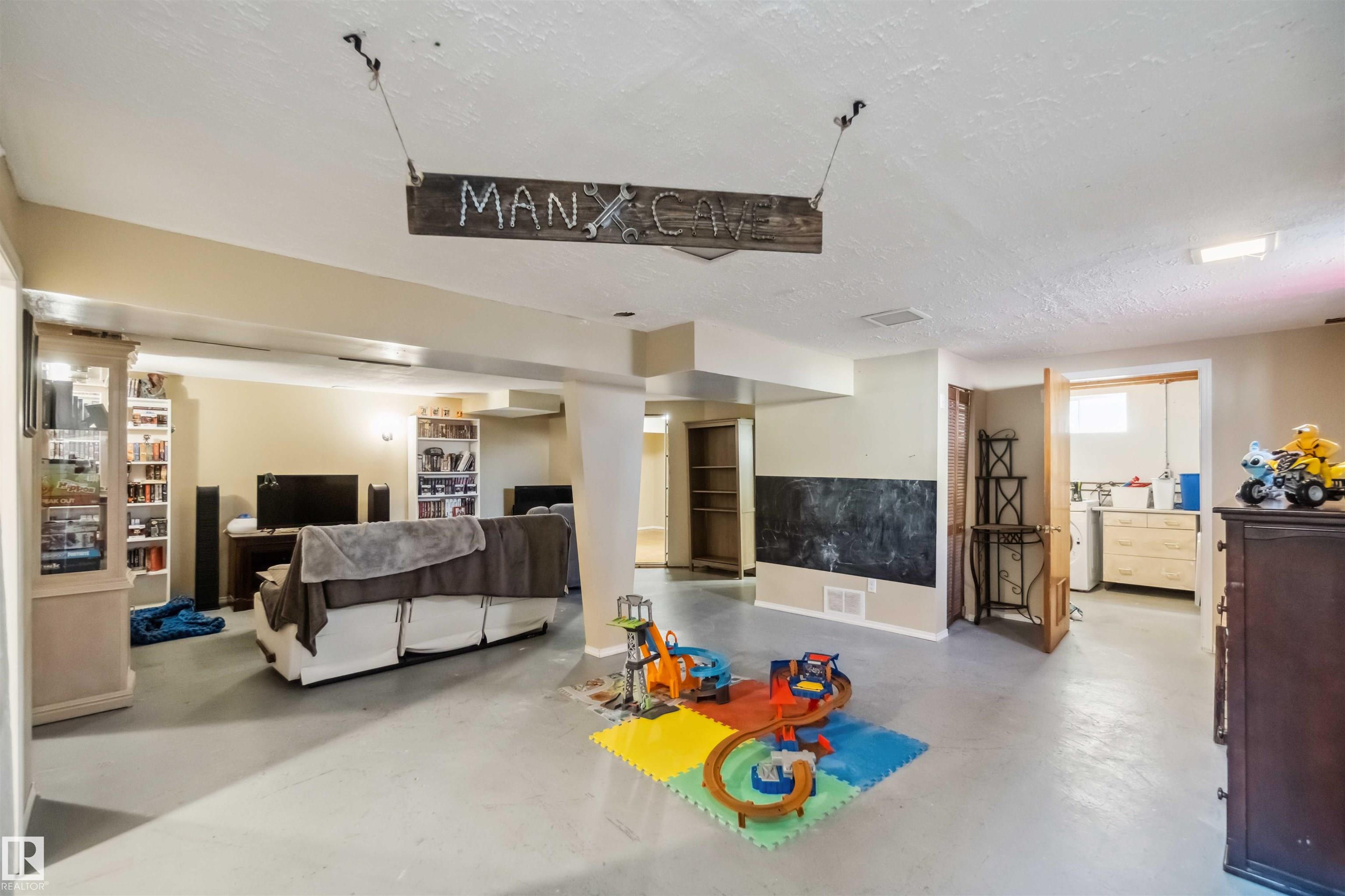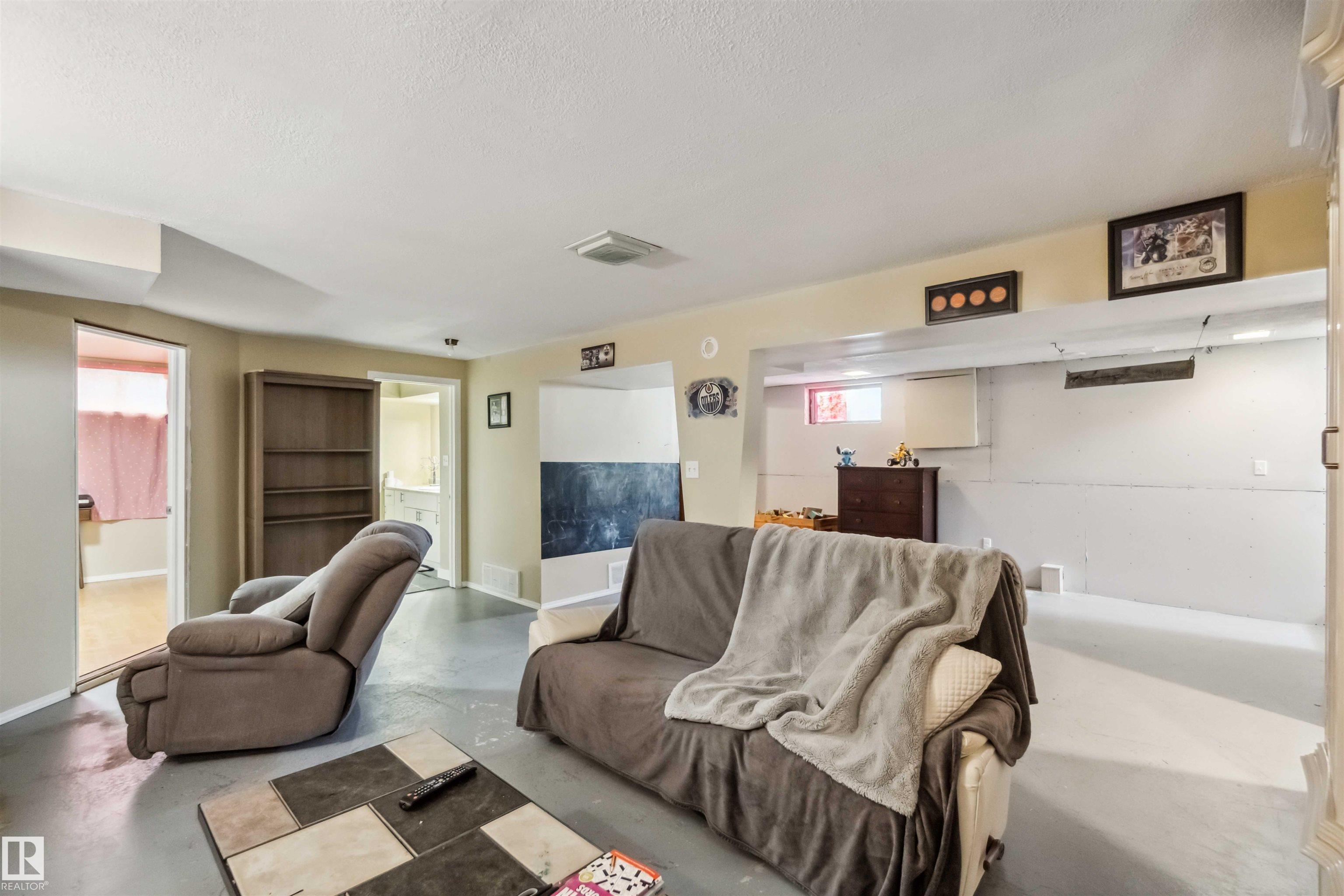 Spacious 3+1 bedroom bungalow backing onto an open field, offering peaceful views and added privacy. The main floor features an open-concept layout with a bright kitchen, cozy living room, 4-piece main bathroom, primary bedroom with 2-piece ensuite, and two additional bedrooms. The basement is mostly finished?just flooring needed?and includes a large rec room, 4-piece bathroom, laundry room, fourth bedroom, and a versatile flex space. Upgrades over the past 10 years include shingles, windows, doors, furnace, and central A/C. Situated on a generous lot with a double detached garage, this home combines comfort, space, and value in a great location.
