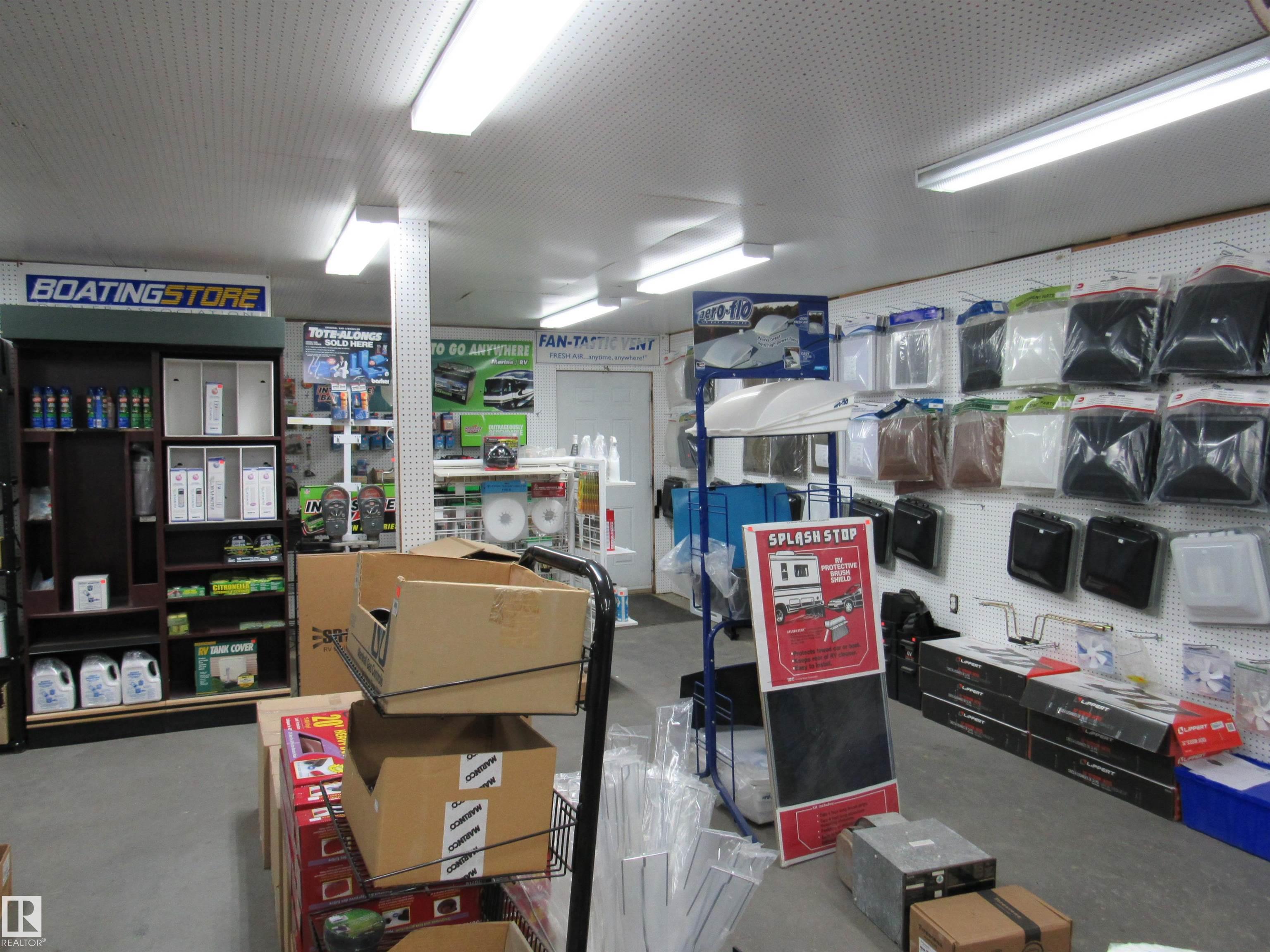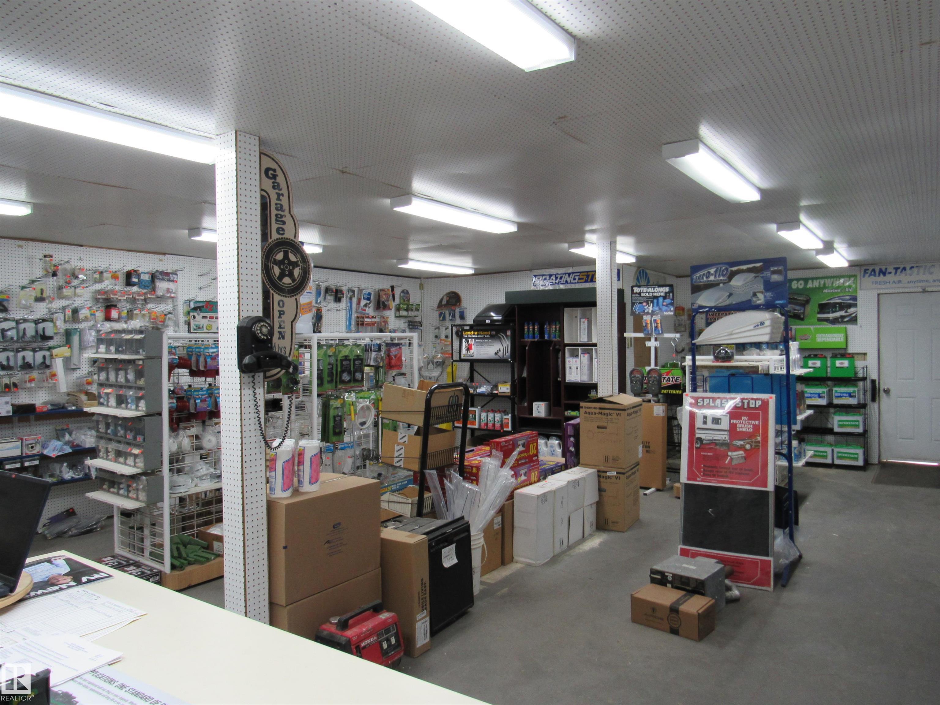 2800 sqft with 16'x16' overhead door on two lots in Barrhead's Industrial park! The space currently features a retail/parts area, a large shop area as well as loft space that can be utilized for storage or office, the entire building has infloor heat. The possibilities are endless with this well constructed property.