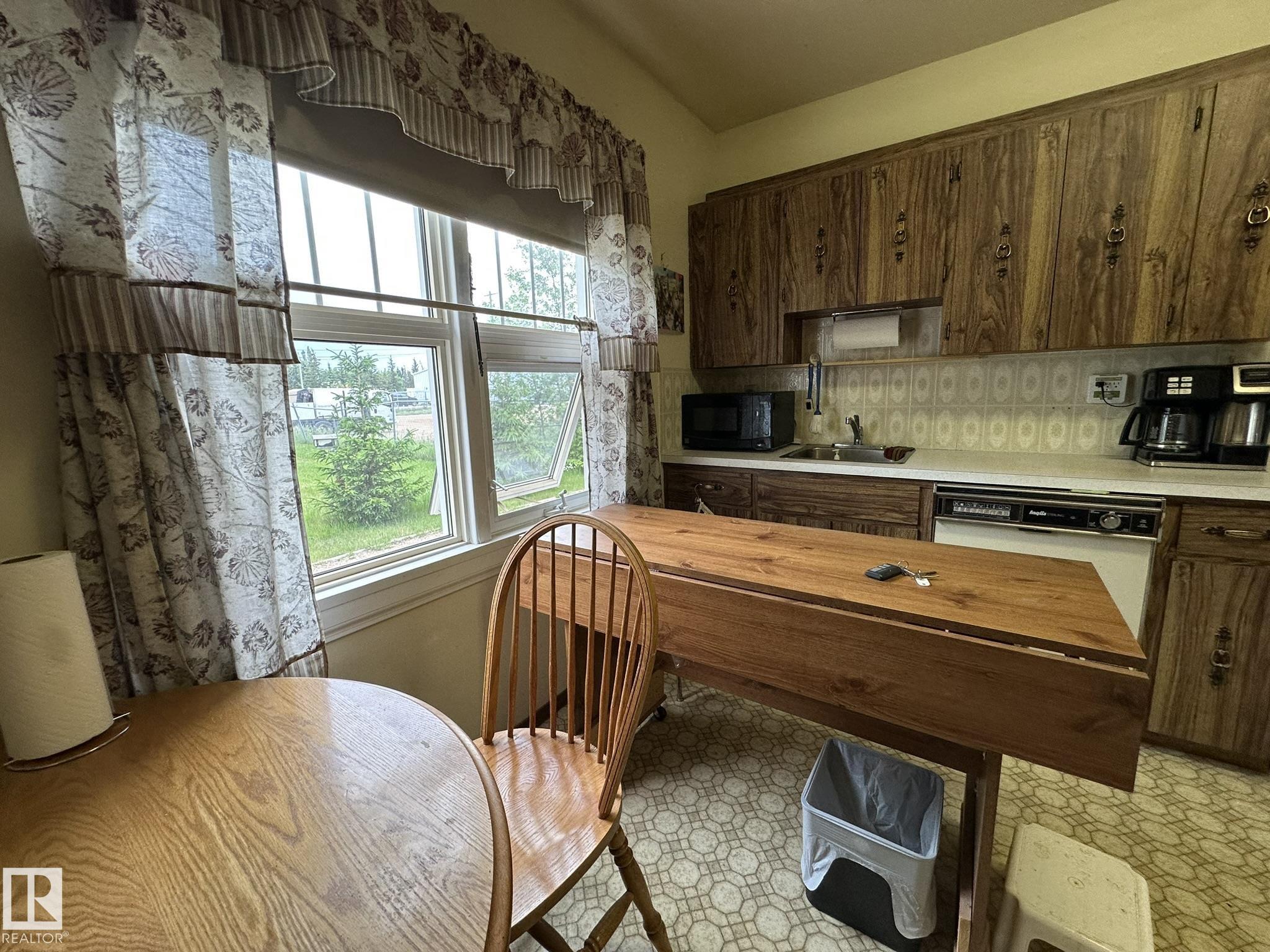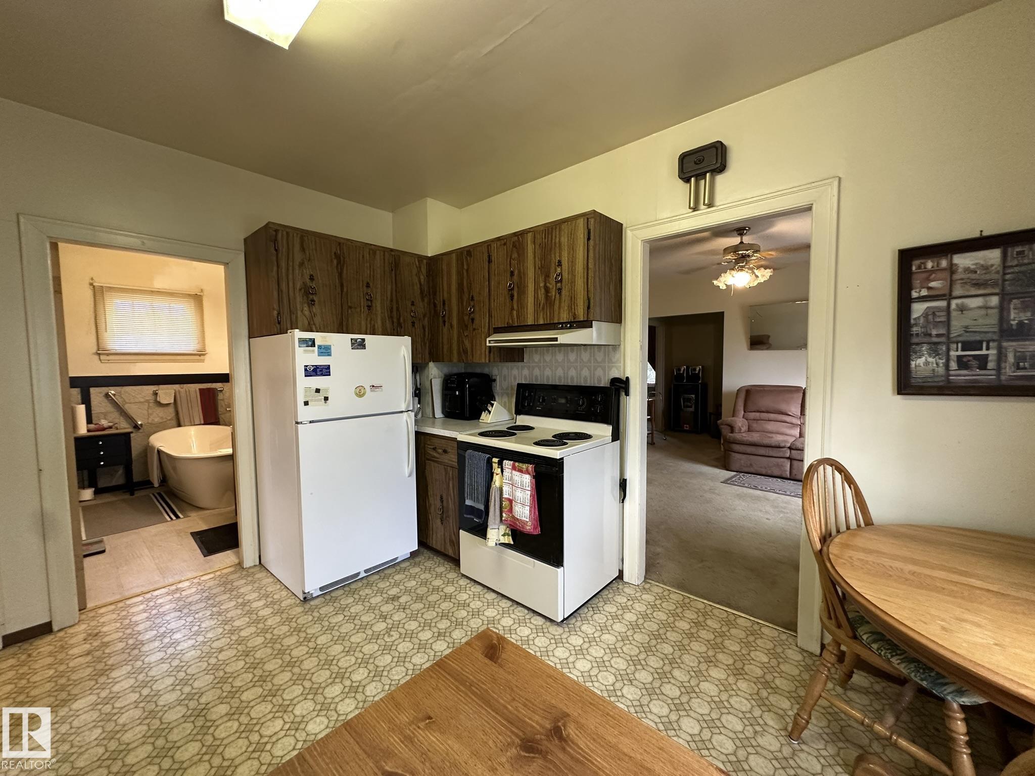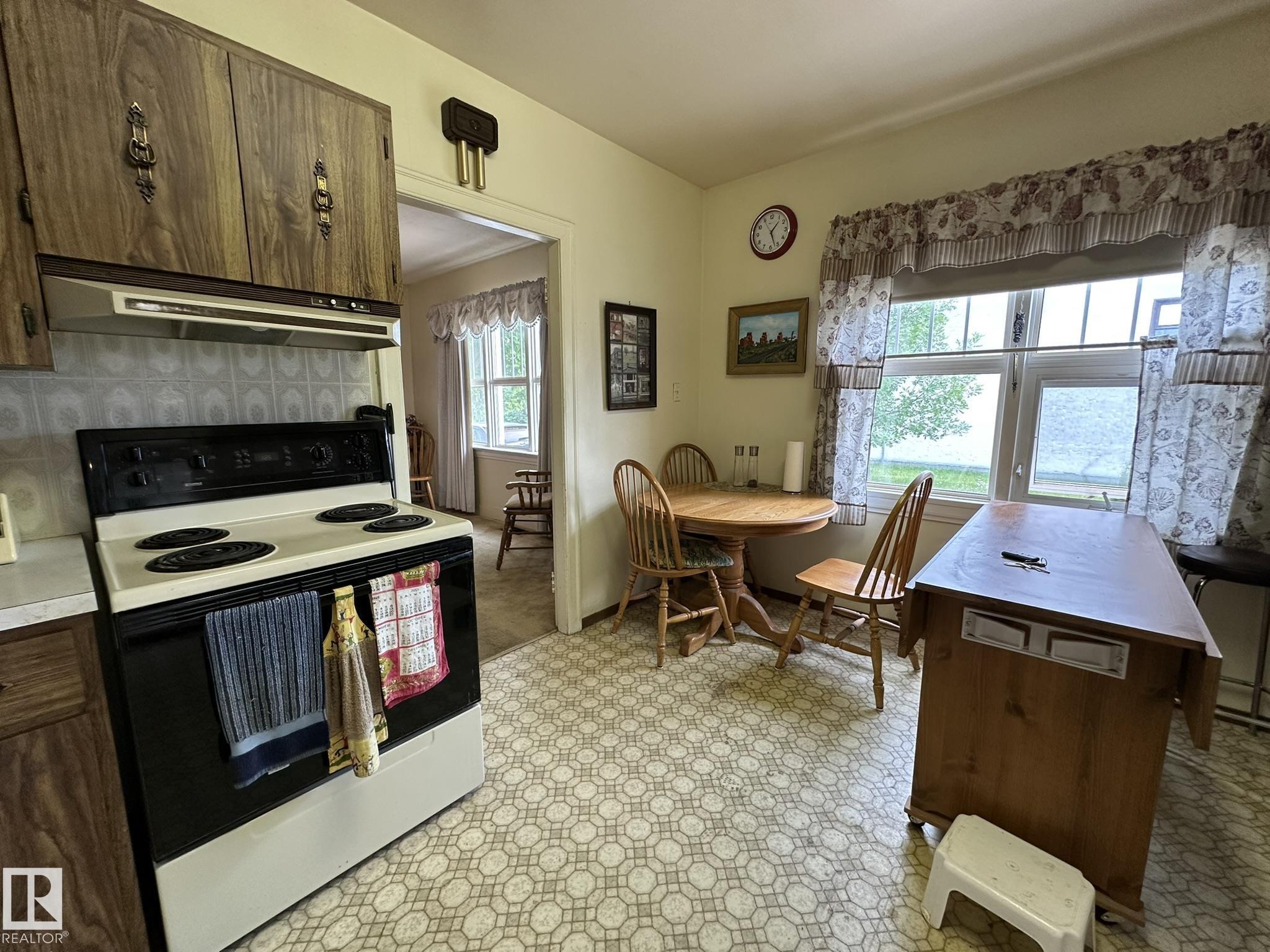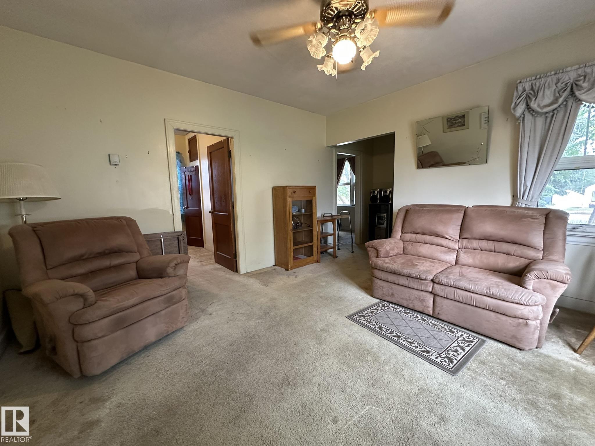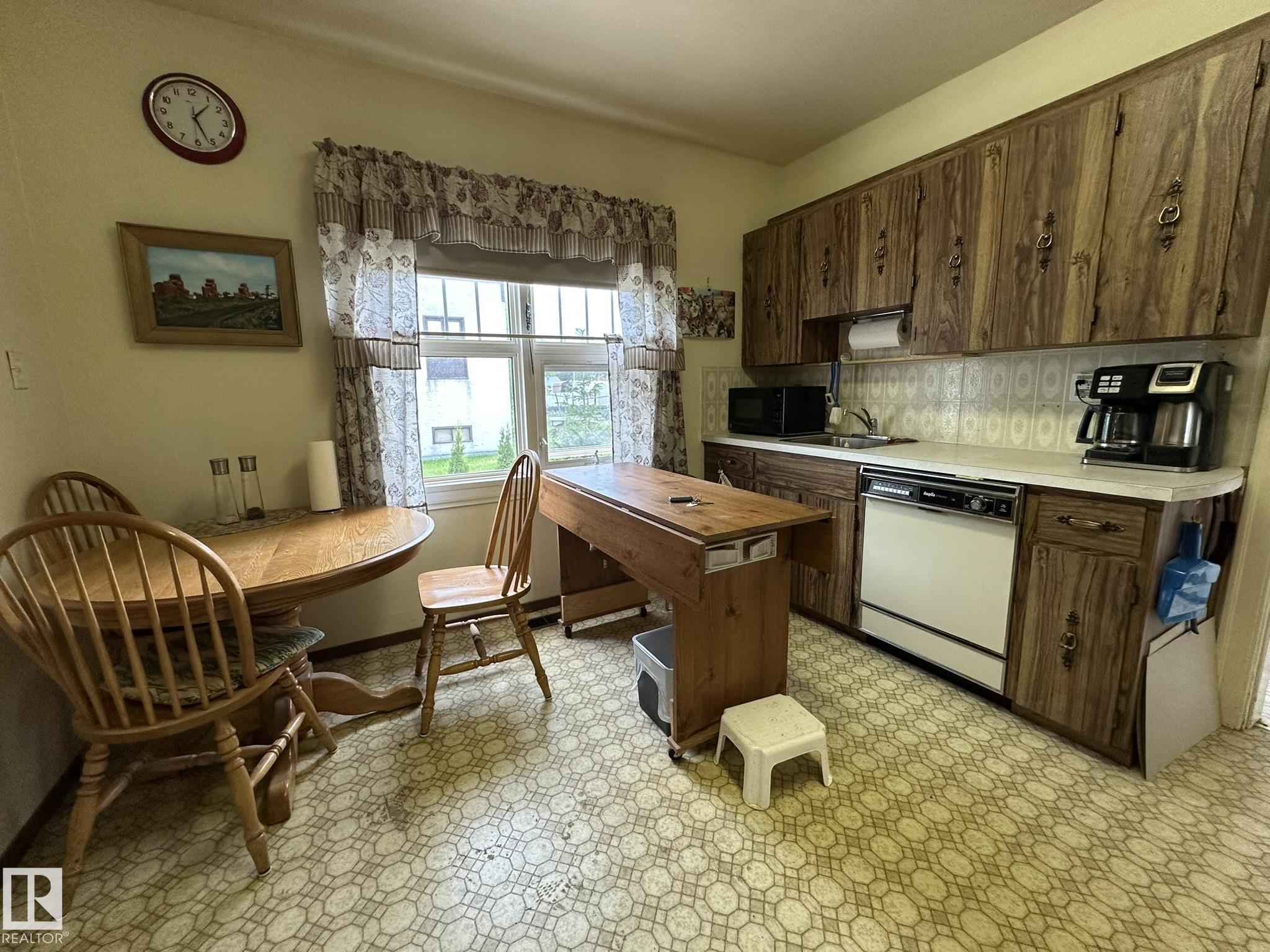 One of a kind single detached home on a huge lot near everything in Smoky Lake. This charmer has had several updates within the last few years, including windows and roof. You'll appreciate the large eat-in kitchen with access to the backyard, the living room is roomy and comfortable, there are also 2 bedrooms on the main floor as well as an updated bathroom and pantry. The basement boasts full height ceiling and large windows as well as another bedroom, shower, bathroom, laundry facilities and tons of storage. The land is private and well landscaped, the long driveway can accommodate several vehicles and the garage has power. The half acre yard is there to realize any of your landscaping dreams.