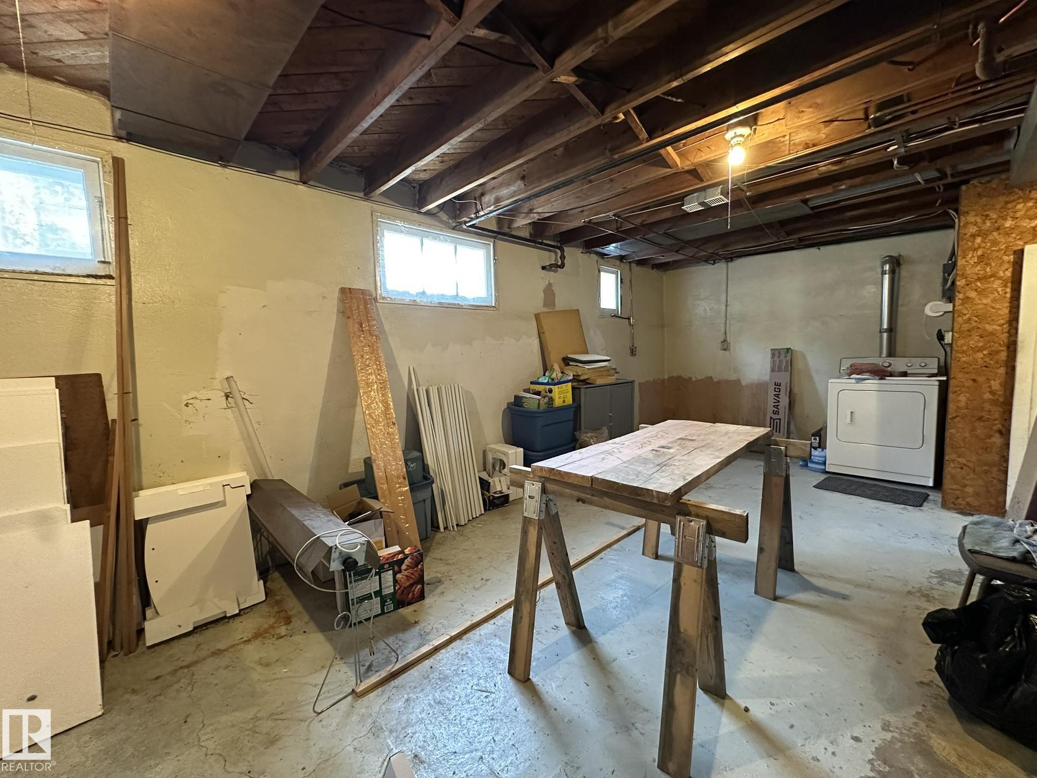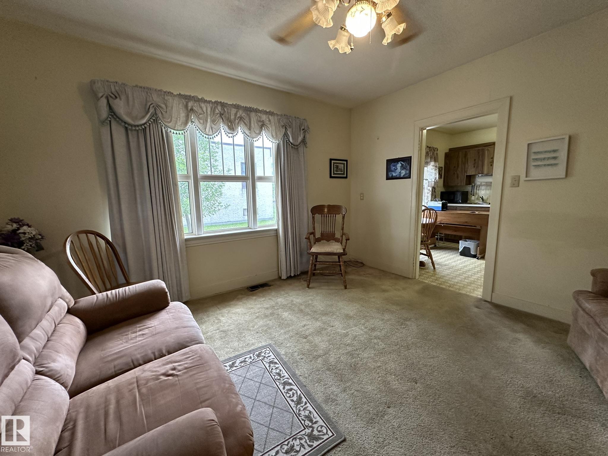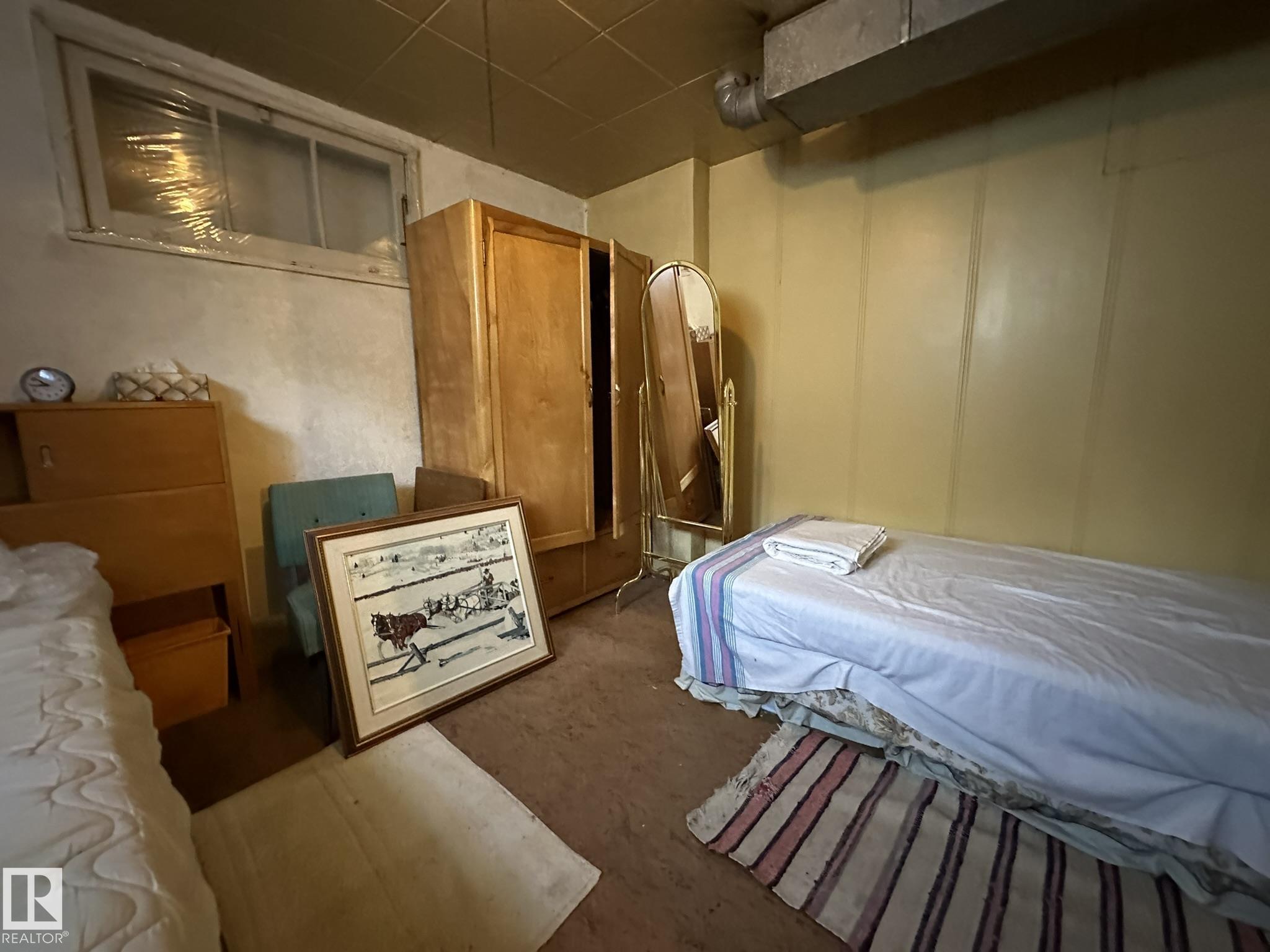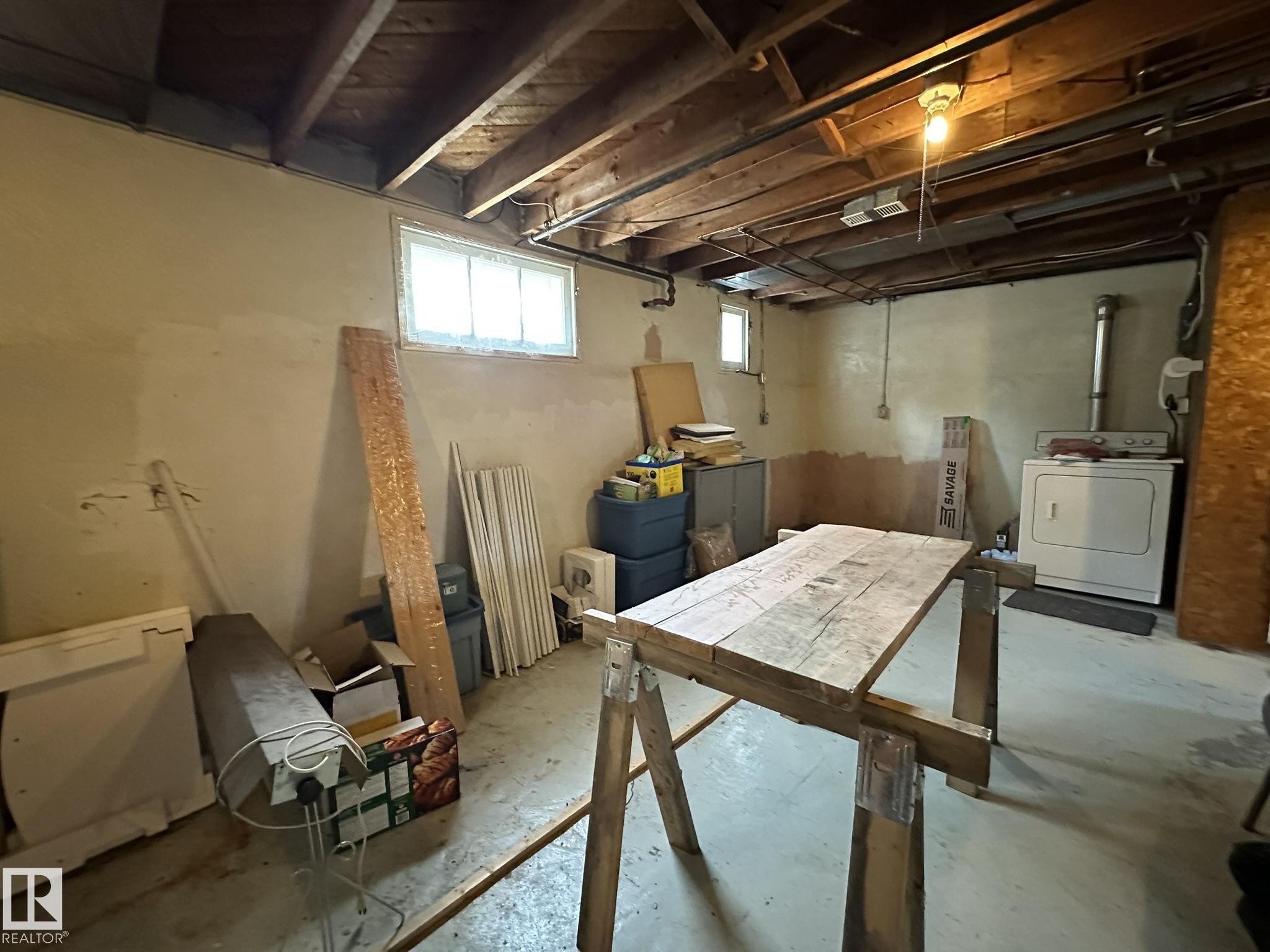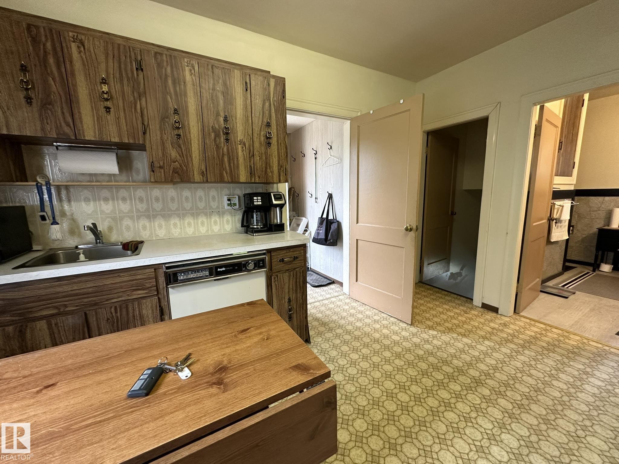 One of a kind single detached home on a huge lot near everything in Smoky Lake. This charmer has had several updates within the last few years, including windows and roof. You'll appreciate the large eat-in kitchen with access to the backyard, the living room is roomy and comfortable, there are also 2 bedrooms on the main floor as well as an updated bathroom and pantry. The basement boasts full height ceiling and large windows as well as another bedroom, shower, bathroom, laundry facilities and tons of storage. The land is private and well landscaped, the long driveway can accommodate several vehicles and the garage has power. The half acre yard is there to realize any of your landscaping dreams.