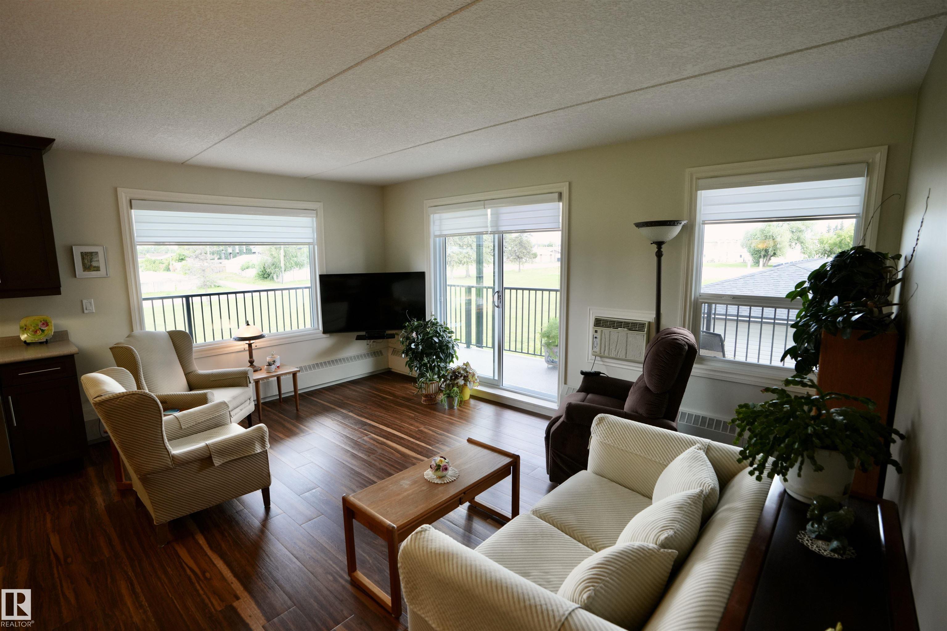 Savour the simplicity of ADULT living in this spacious 1000+ sq ft corner unit condo! Featuring 2 bedrooms and 2 bathrooms, this home boasts upgraded vinyl plank and lino flooring for low-maintenance living, and an open-concept layout ideal for everyday comfort. The kitchen is equipped with stainless steel appliances, added cabinetry, and a full pantry - perfect for staying organized. Enjoy the peace of mind of air conditioning, a double-sided balcony with storage on each end, and a master suite complete with a 3-piece ensuite and walk-in glass shower. This secure building offers elevator service, two parking stalls (one indoor, one outdoor), and fantastic amenities: a party room with a washroom for large gatherings, a workshop for hobbyists, an exercise room, and in-house mailboxes. Located across from the lake and scenic boardwalk - perfect for peaceful strolls. No shoveling, no yard work - just carefree living at its best!