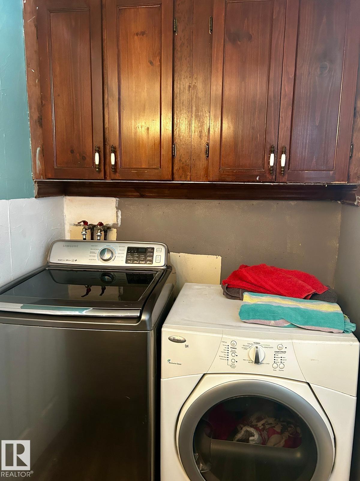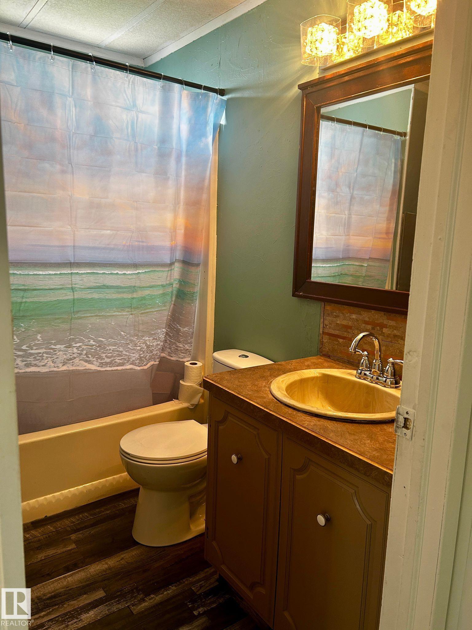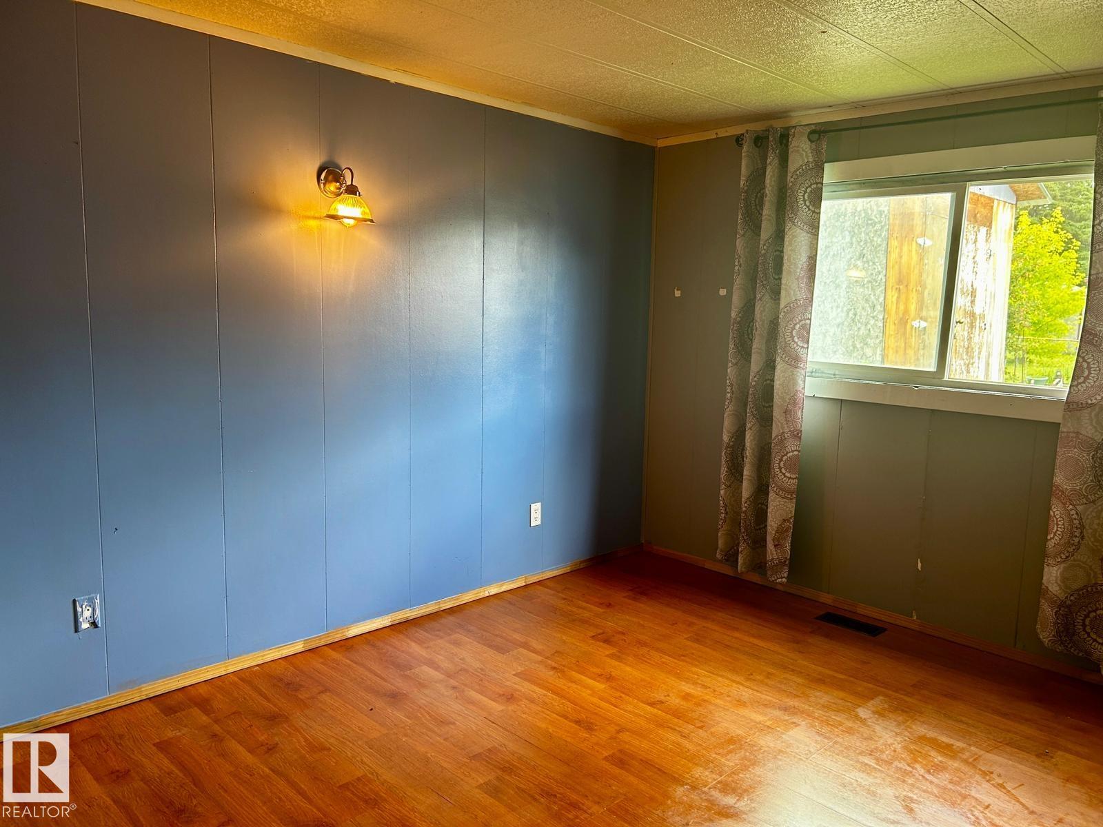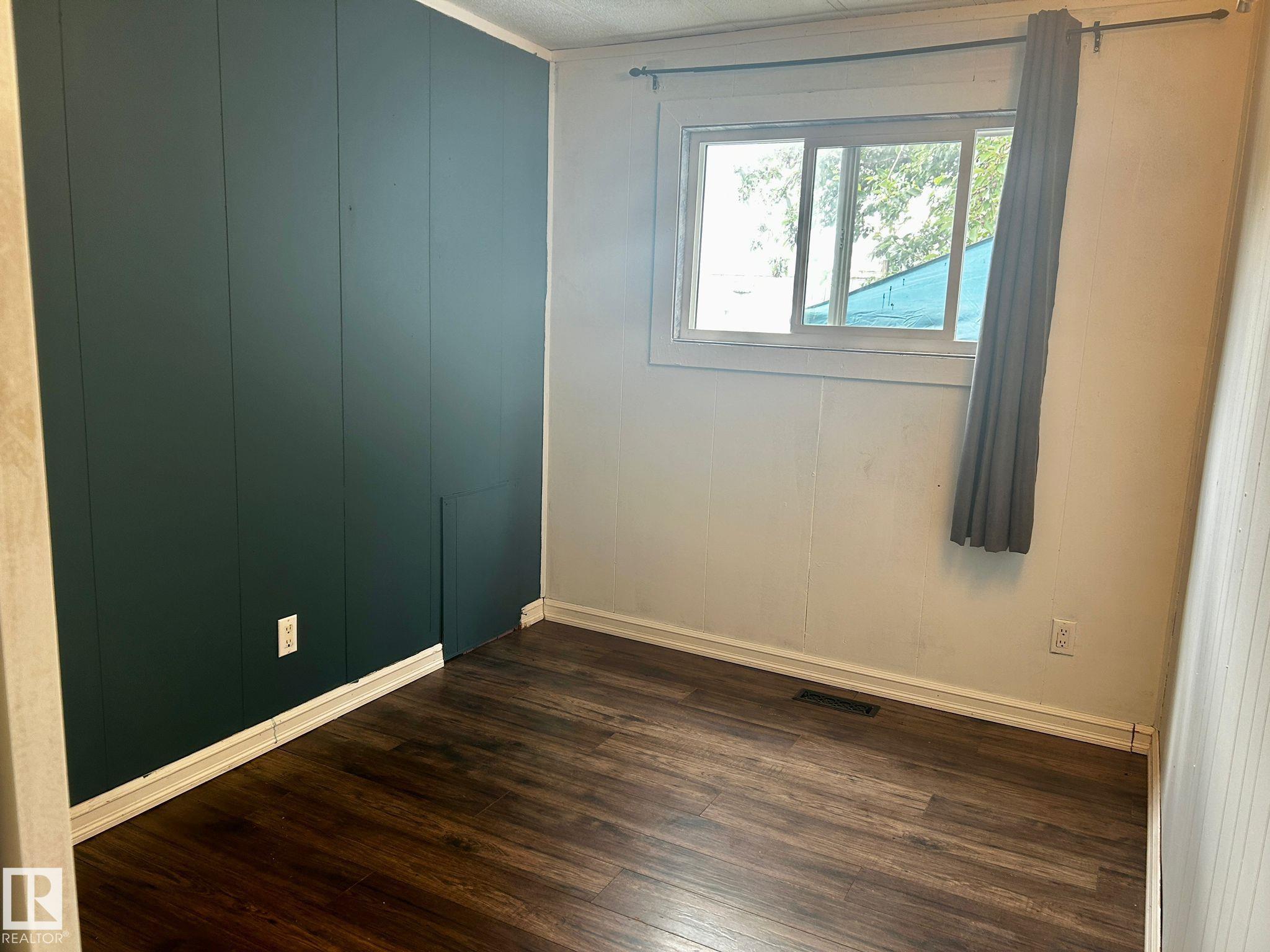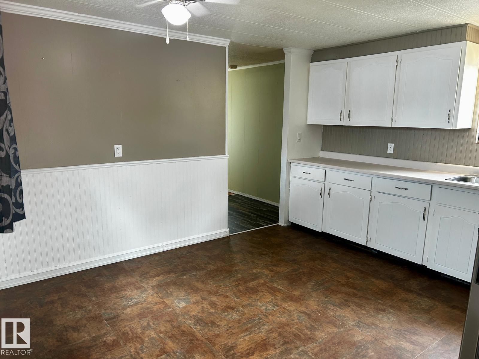 Move in and make it your own! This affordable 3 bedroom 1 bathroom mobile is located on a leased lot so close to walking trails to the Omniplex, pool, and newer playground! All while still situated close to all other amenities. There have been many upgrades such as windows, hwt, furnace, toilet, peaked tin roof and some new flooring. The South facing living room window lets in loads of light and the eat in kitchen is bright, welcoming and boasts newer appliances. The bathroom/laundry room has a high window allowing nice natural light in. The primary bedroom closet takes up an entire wall, excellent storage! Two more bedrooms finish everything off. A large mud room addition adds plentiful space and has power as well! Outside you have off street parking, a storage shed and a large deck next to two beautiful apple trees! Lot is also for sale separately see: E4447420