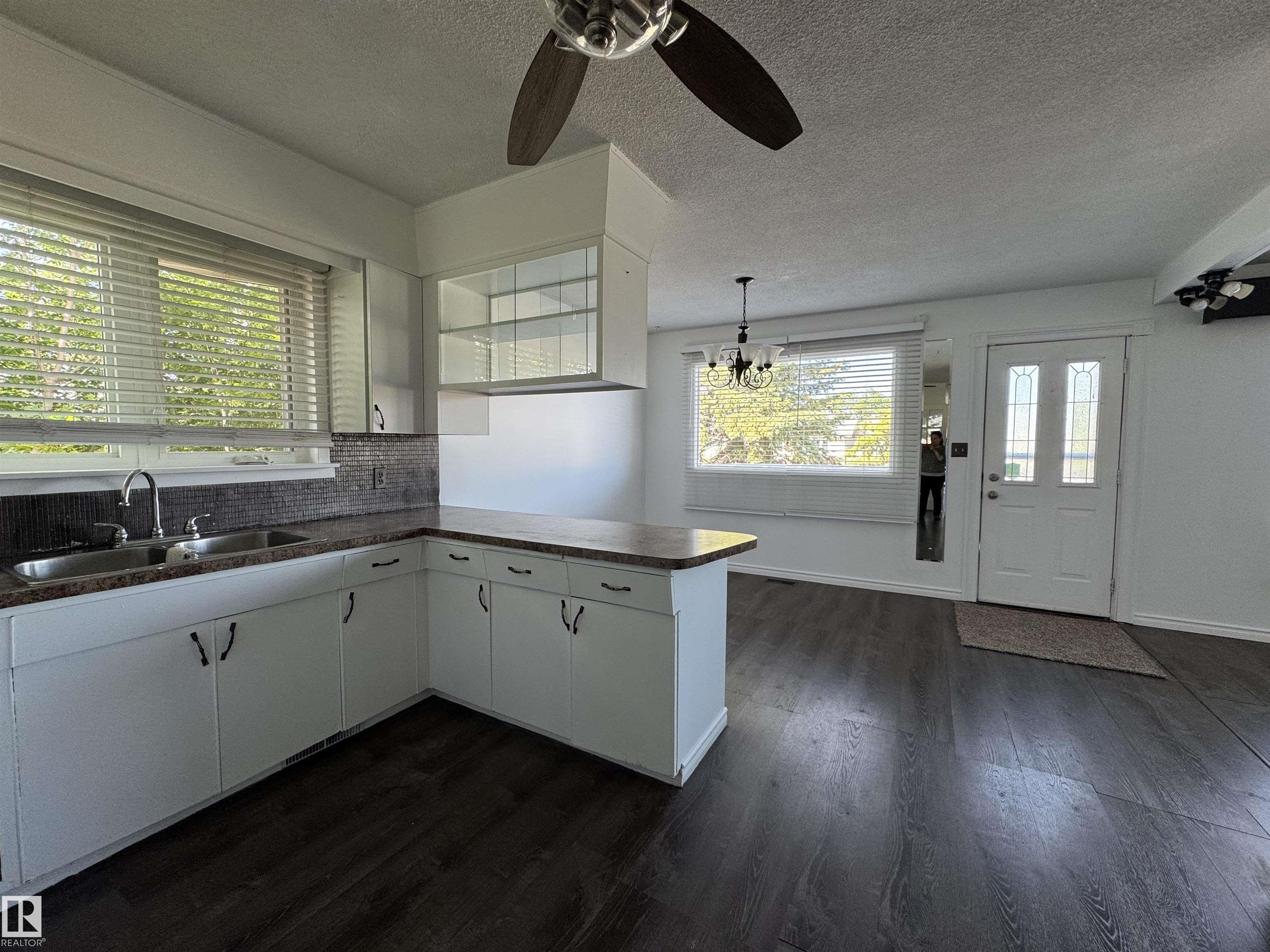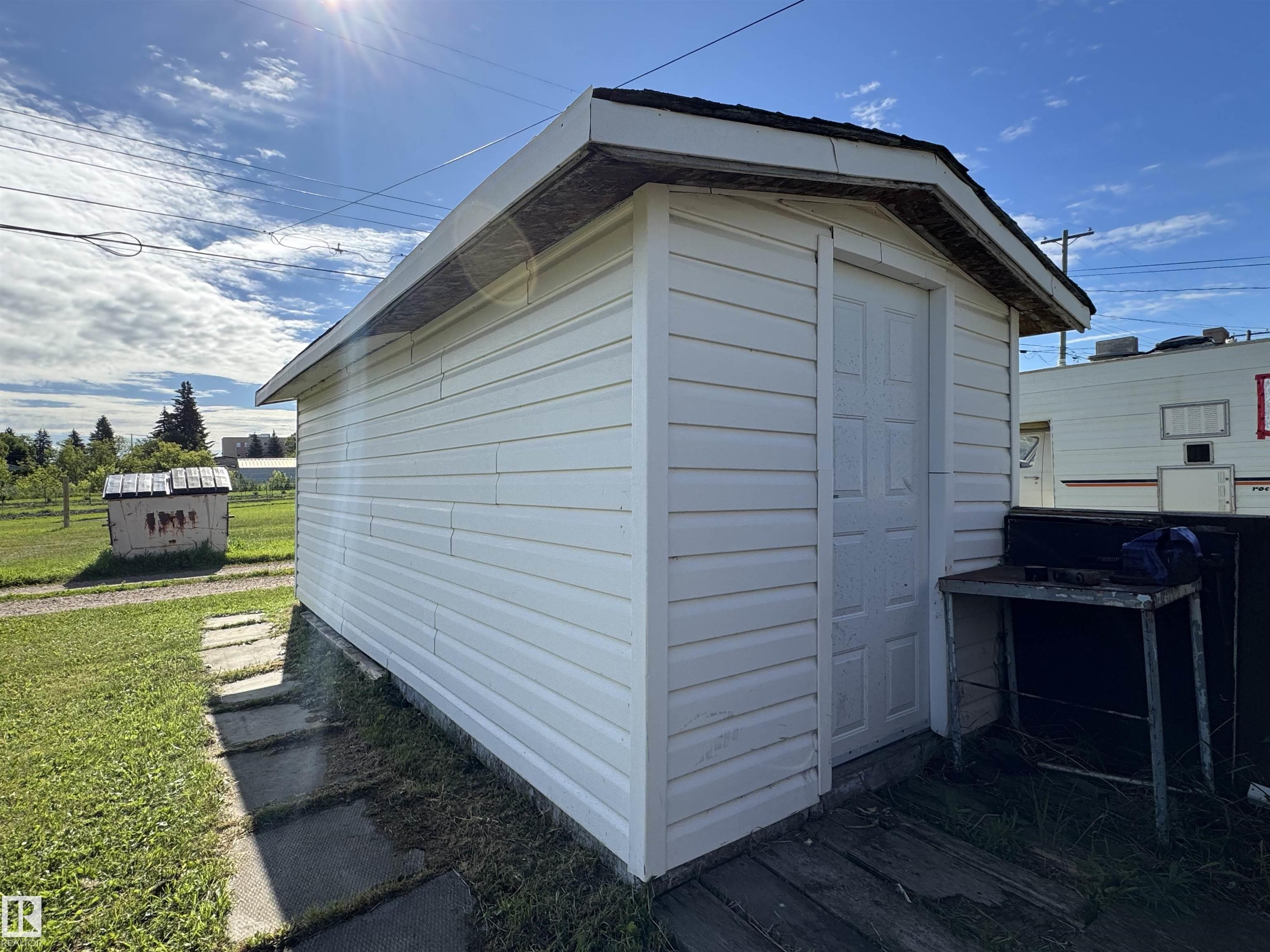 Located in the Town of Vegreville, close to the hospital, school and playground sits this wonderful family home. Situated on a 50x150 fenced lot this home is awaiting a new owner. As one enters the home you will notice the open concept kitchen and dining room and a bright spacious living room. Three good sized bedrooms and a full 4 pc bathroom complete the main floor. Downstairs one will find a spacious family room with attached den, two good sized bedrooms, another 4 pc bathroom and laundry room. Close to amenities and great location, you will never have neighbour behind you.