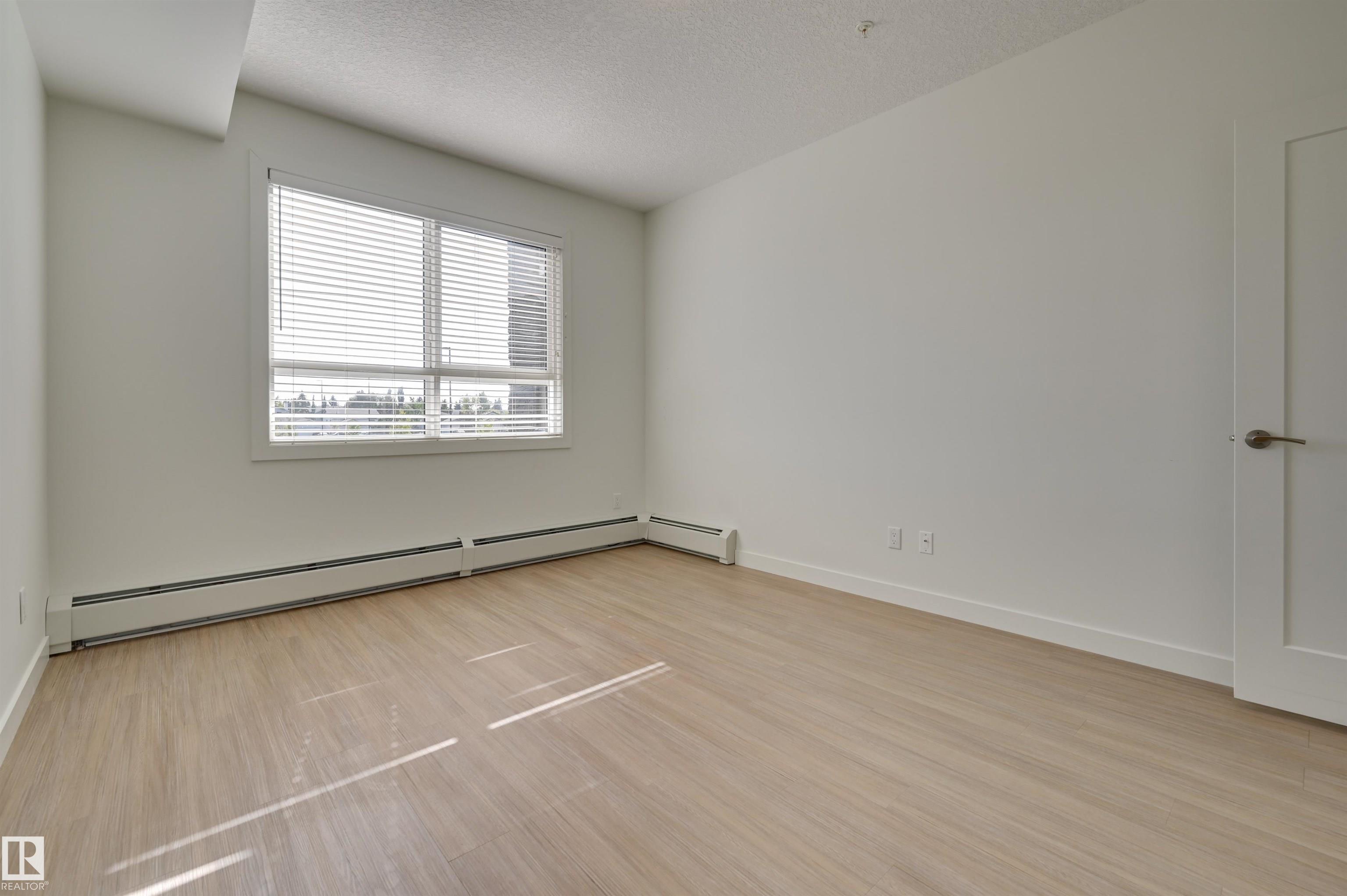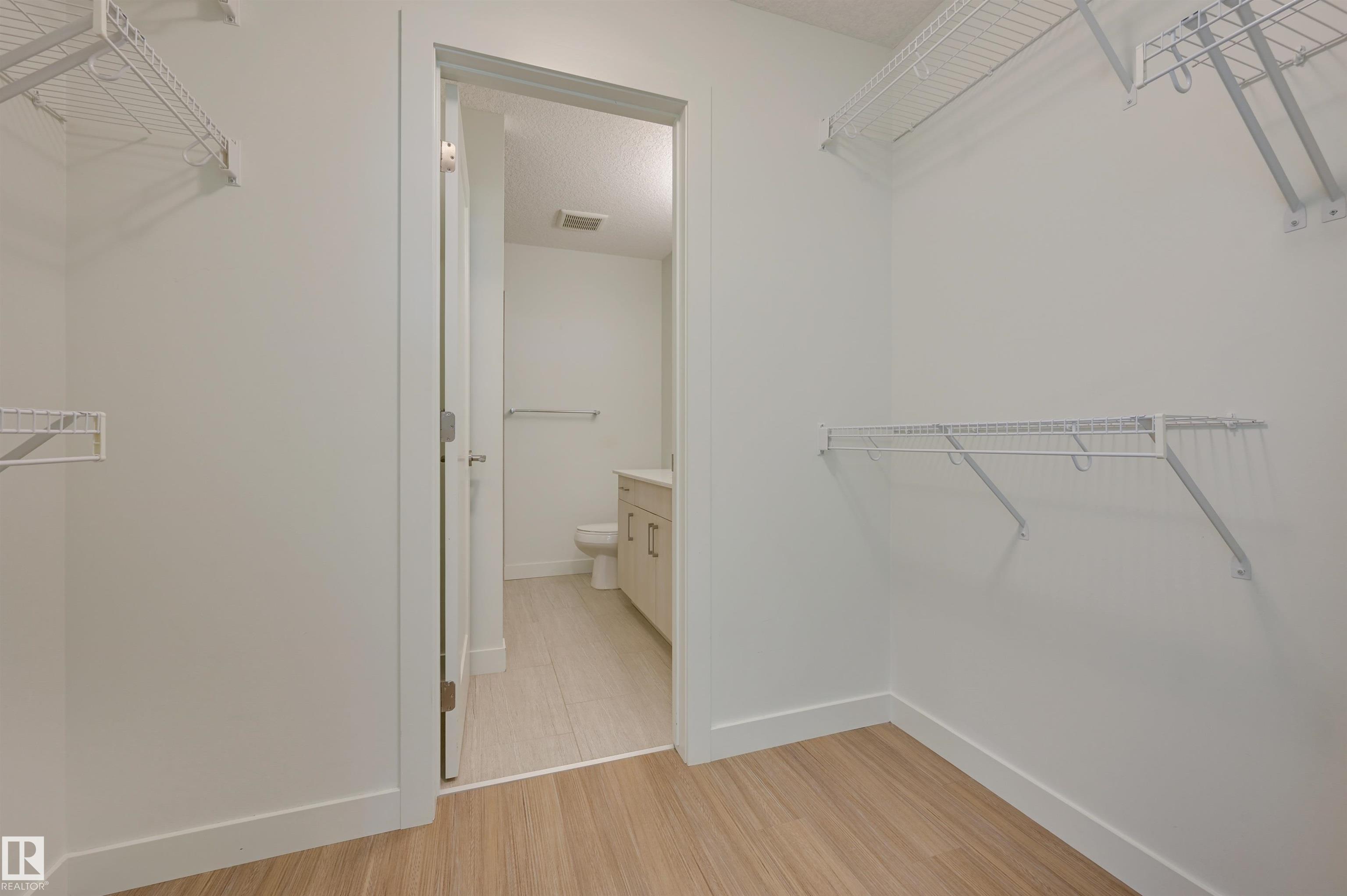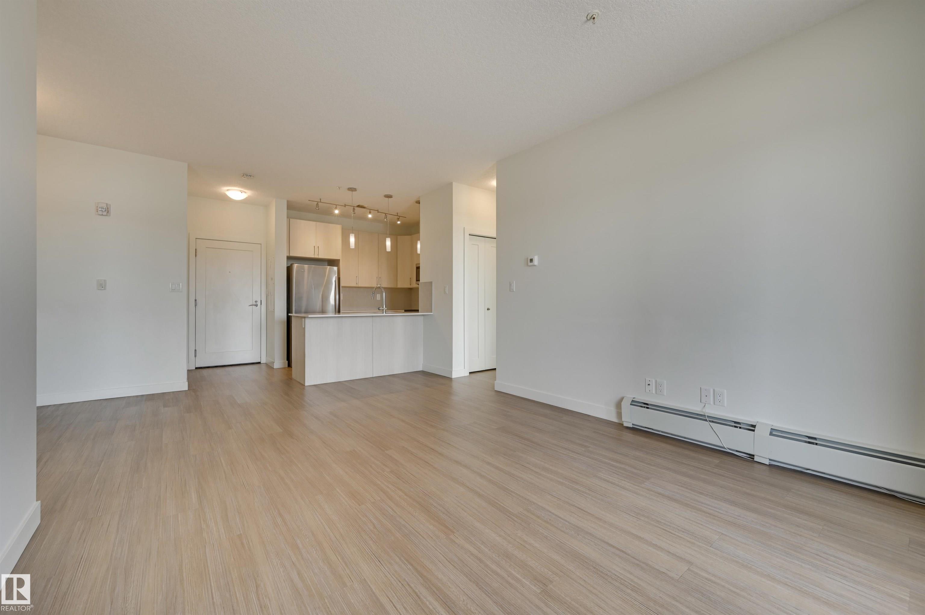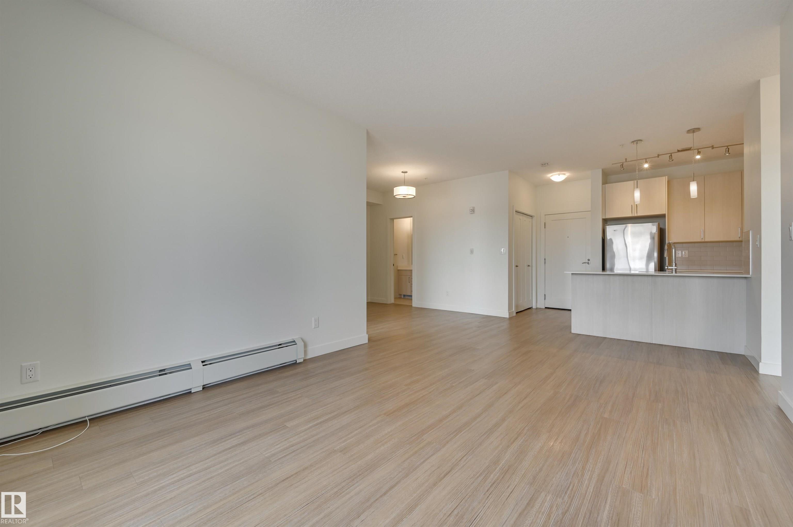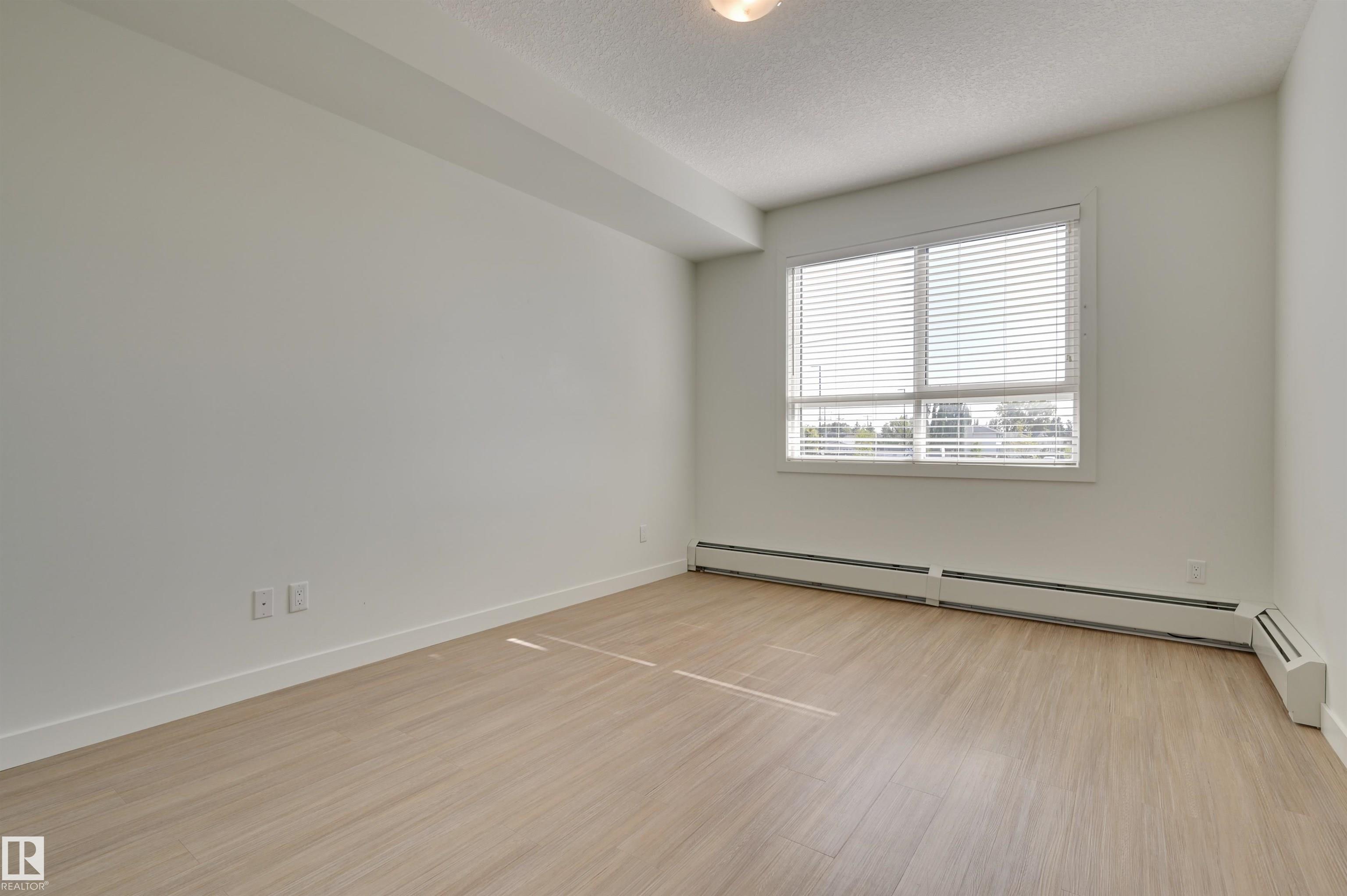 Welcome home to this sunny, spacious 2 bedroom 2 bathroom condo in THE RIDGE located in the heart of DEVON within walking distance to schools, parks, groceries, restaurants, outdoor pool, arena and river valley walking/biking trails. This open modern concept floor plan offers premium finishing throughout with 9' ceilings and the bedrooms at the opposite ends of the living room. The gourmet kitchen has quartz countertops, light color cabinetry with soft close cupboards and drawers with stainless steel appliances. South facing deck with a gas BBQ outlet. Vinyl plank flooring throughout except for tile in the bathrooms. Roughed in for A/C. Included is the fridge, glass top stove, built-in microwave, dishwasher, INSUITE WASHER AND DRYER and TITLED UNDERGROUND PARKING #52 with a storage cage. A great place to call home!