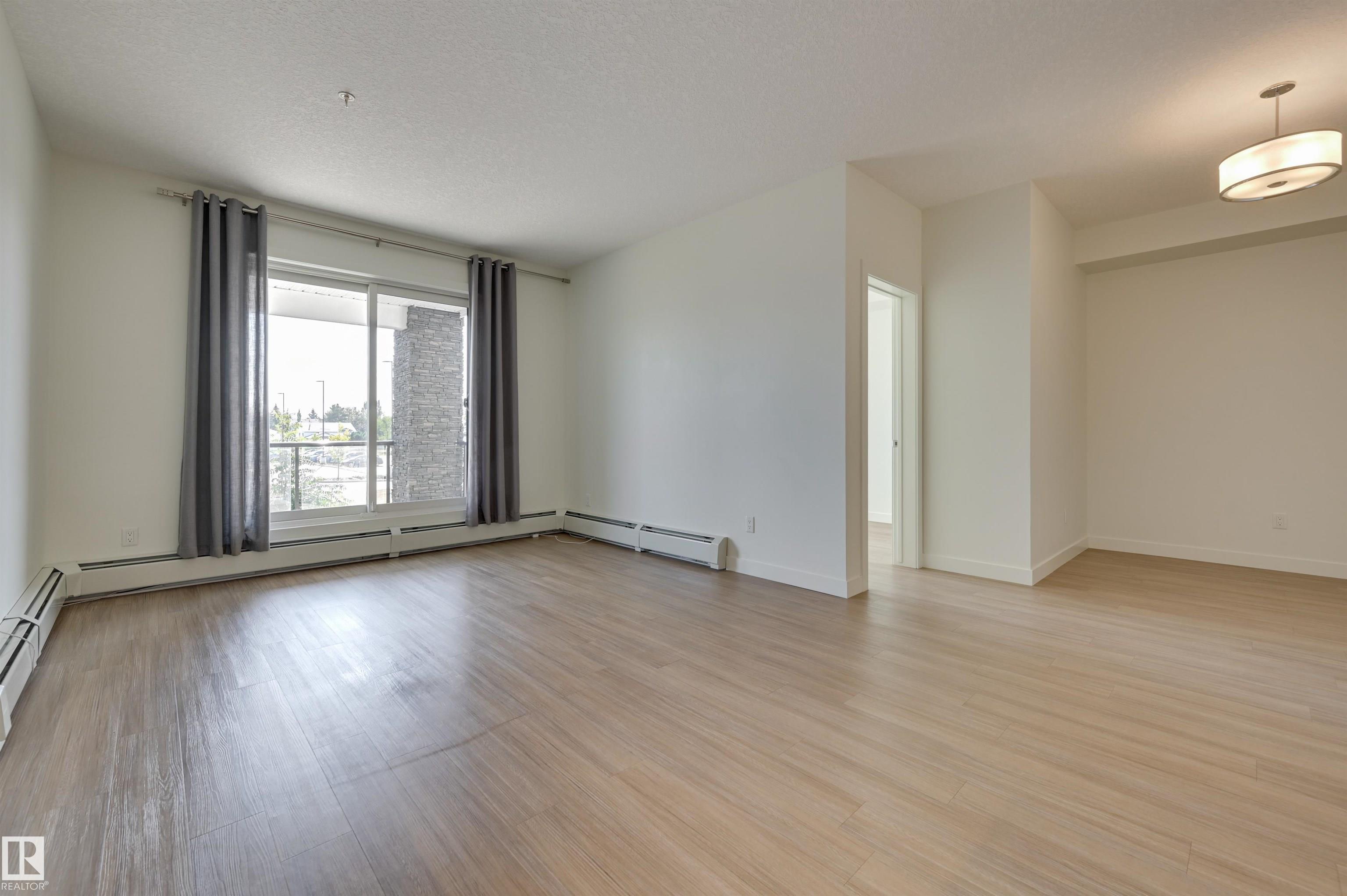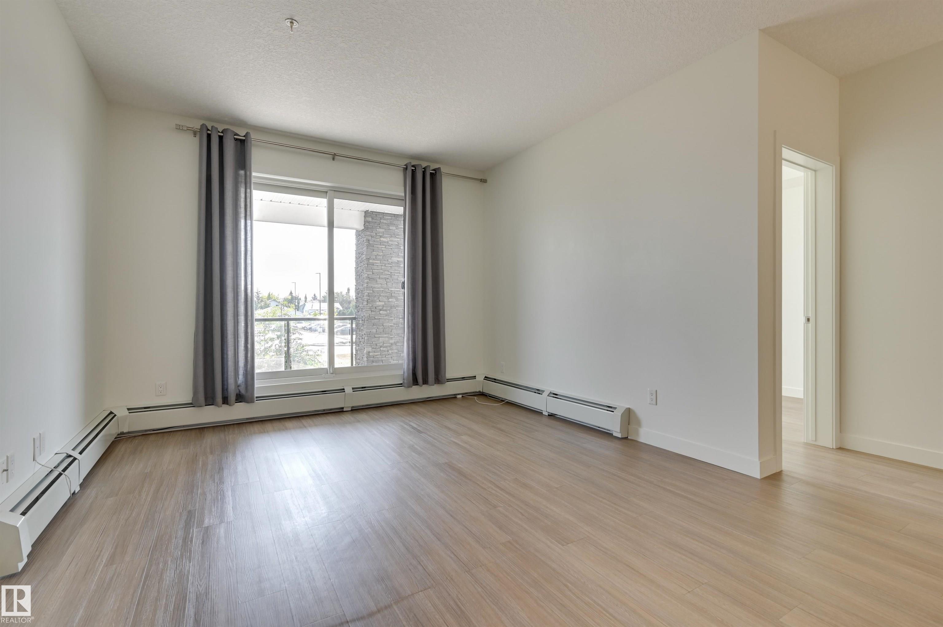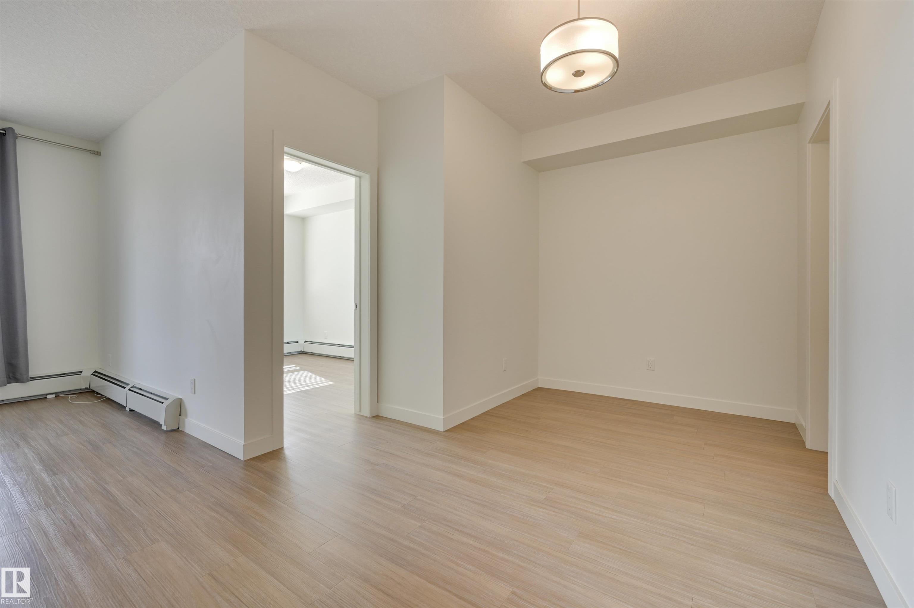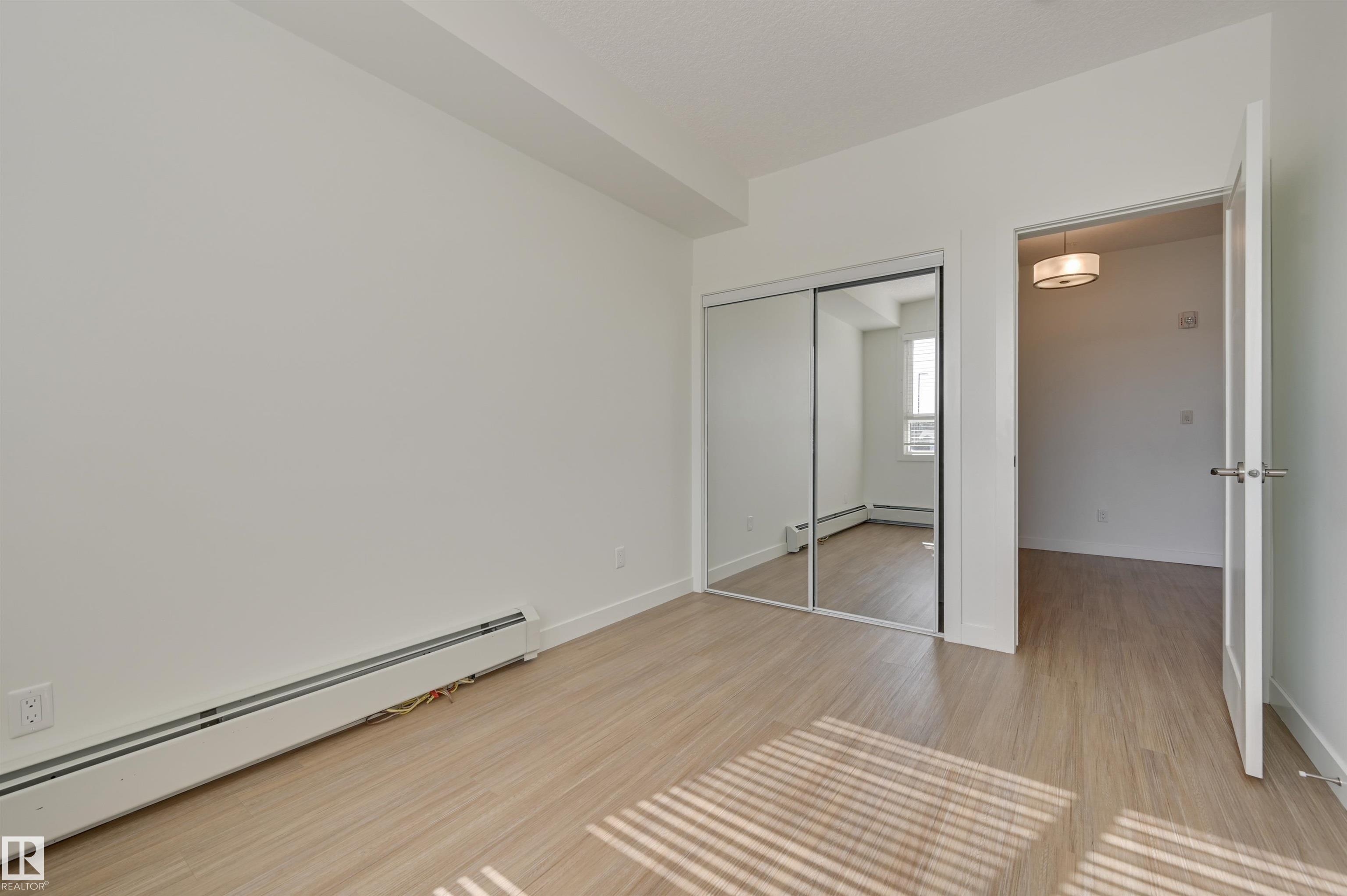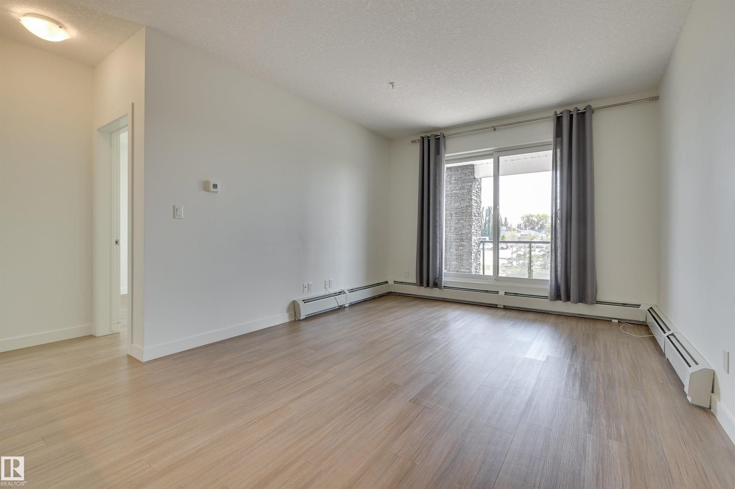 Welcome home to this sunny, spacious 2 bedroom 2 bathroom condo in THE RIDGE located in the heart of DEVON within walking distance to schools, parks, groceries, restaurants, outdoor pool, arena and river valley walking/biking trails. This open modern concept floor plan offers premium finishing throughout with 9' ceilings and the bedrooms at the opposite ends of the living room. The gourmet kitchen has quartz countertops, light color cabinetry with soft close cupboards and drawers with stainless steel appliances. South facing deck with a gas BBQ outlet. Vinyl plank flooring throughout except for tile in the bathrooms. Roughed in for A/C. Included is the fridge, glass top stove, built-in microwave, dishwasher, INSUITE WASHER AND DRYER and TITLED UNDERGROUND PARKING #52 with a storage cage. A great place to call home!