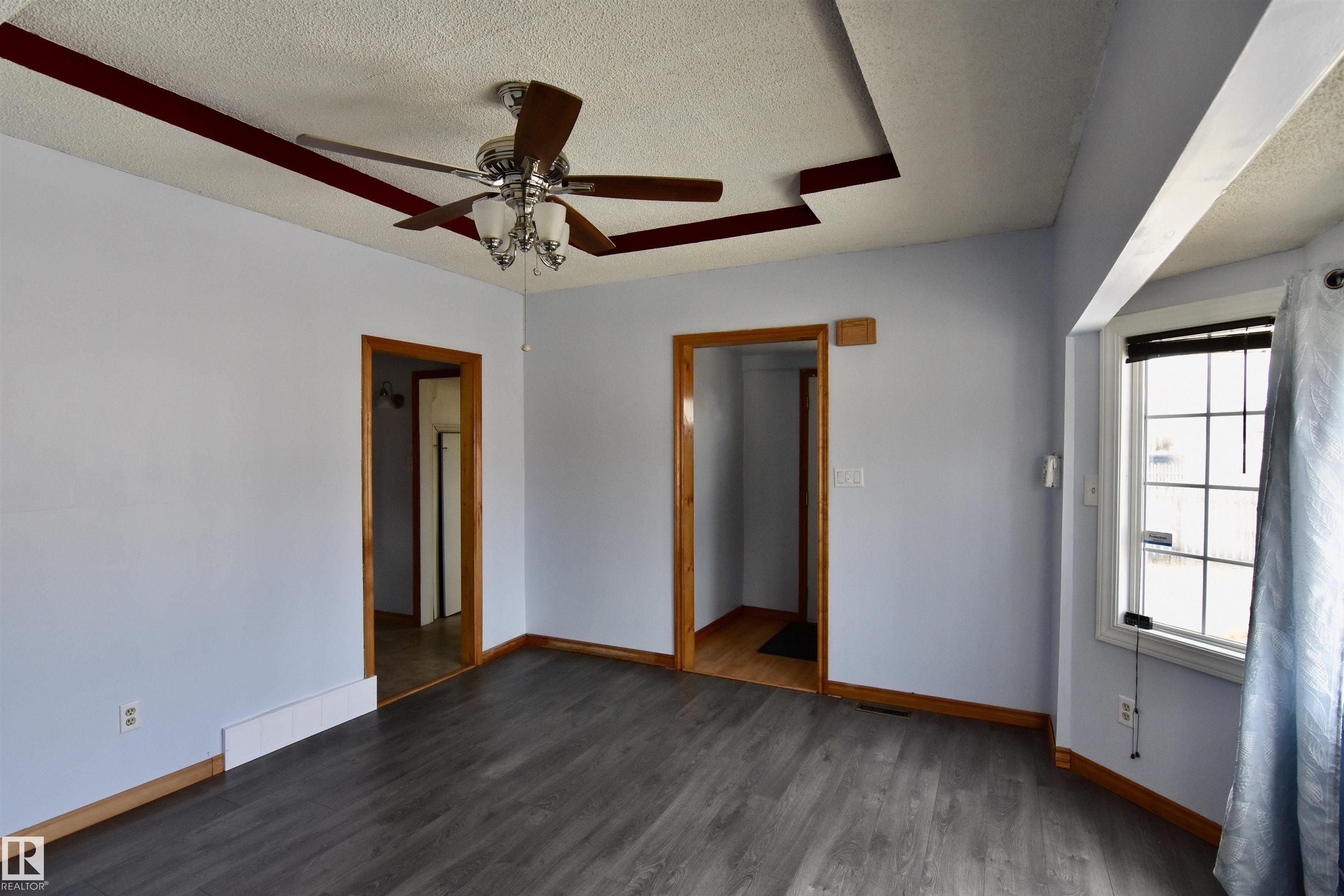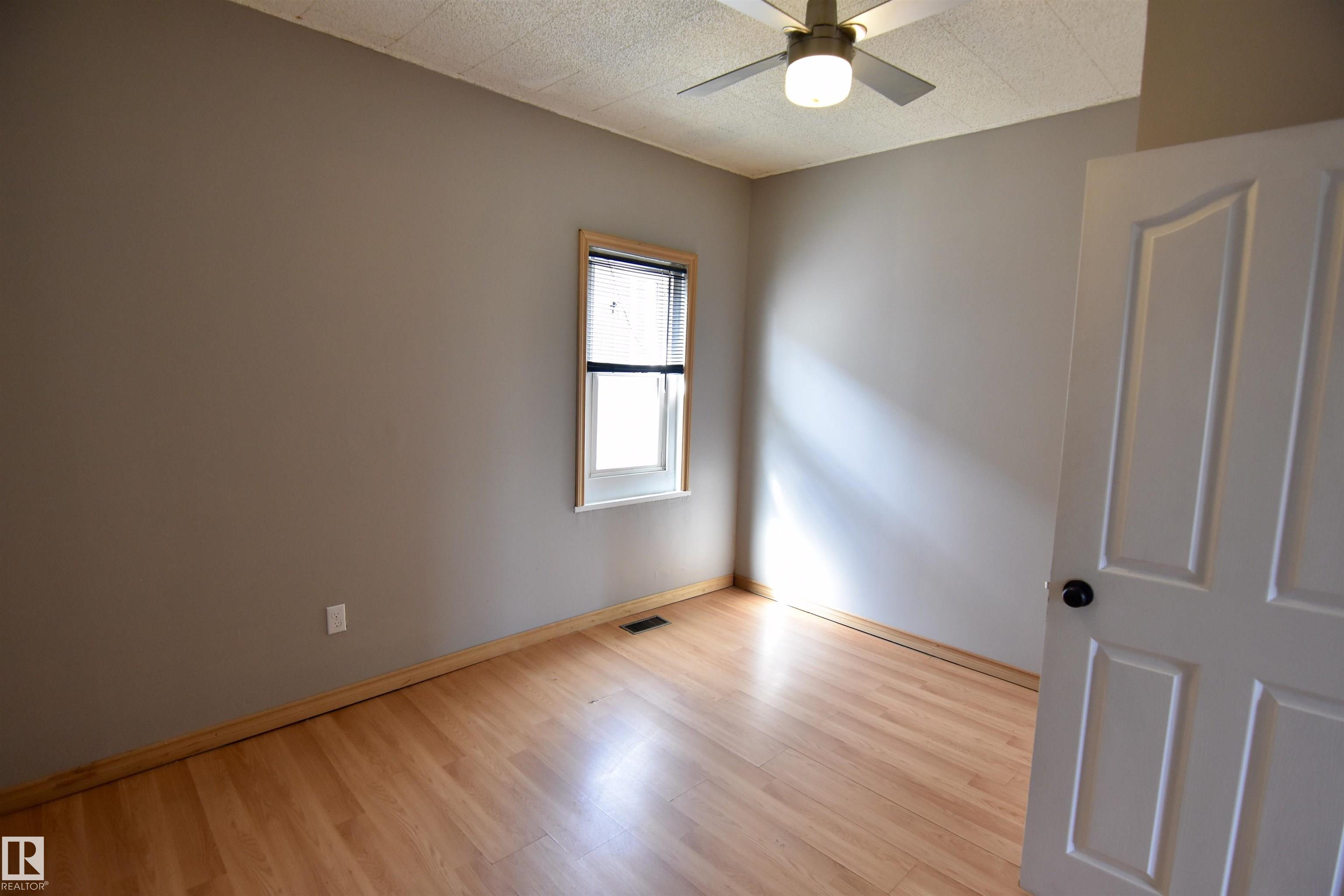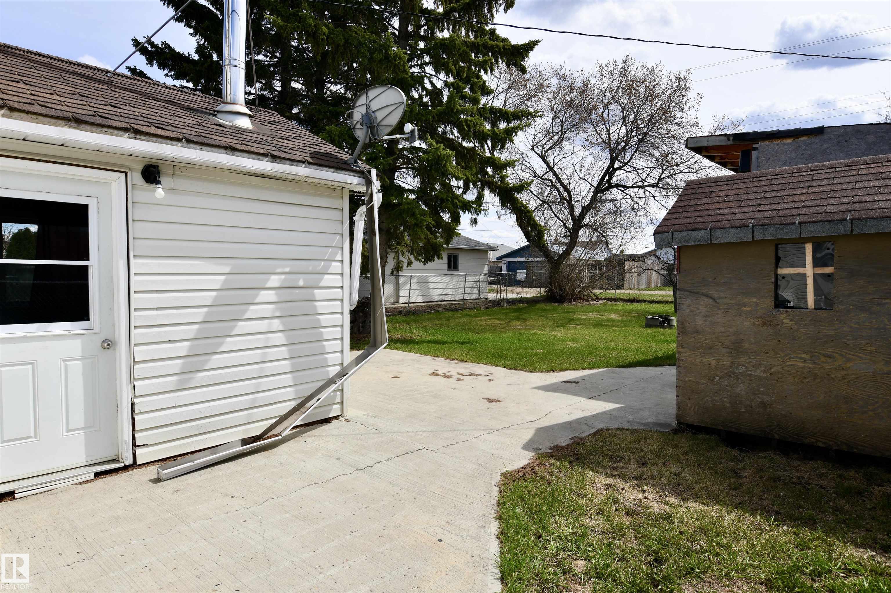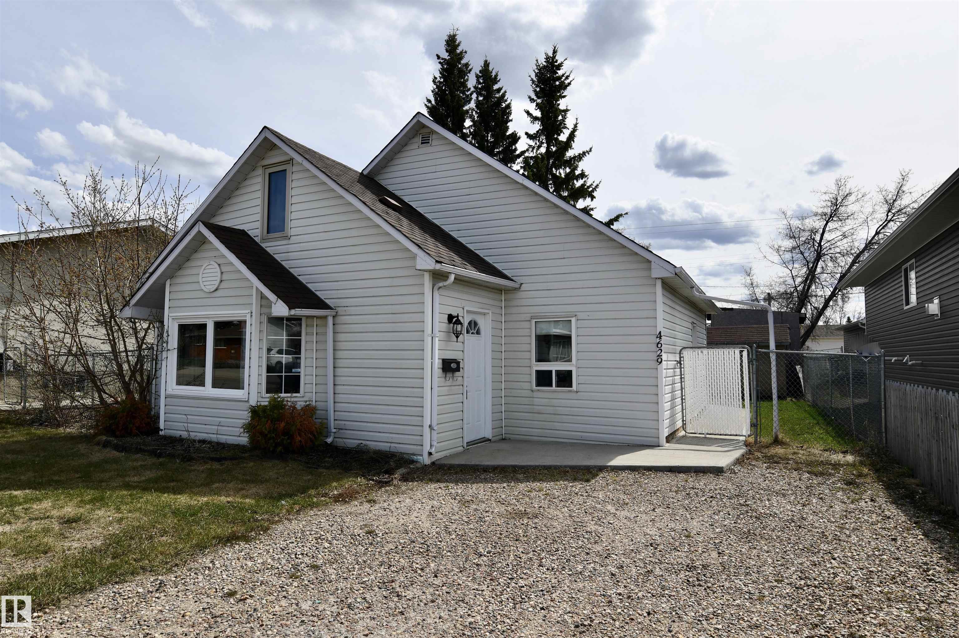 Unique character home close to schools! Tired of cookie-cutter homes? This 1940, 3 bedroom home is apt to catch your attention. The front living room boasts vinyl plank flooring, a bright bay window and a traditional tray ceiling. The eat-in kitchen has seen some updates and features white cabinetry, modern back splash & stainless steel appliances. The back entrance is is cozy with its wood stove and seating area. You'll find 2 bedrooms on the main floor, one featuring the laundry facilities. Upstairs is one more charming bedroom and flex space that's ideal for a play area, reading area or extra storage. Outside is fully fenced with 2 storage sheds and a small patio area. With a bit of your own elbow grease and imagination, this could be your ideal first home or possibly a rental for some additional income.