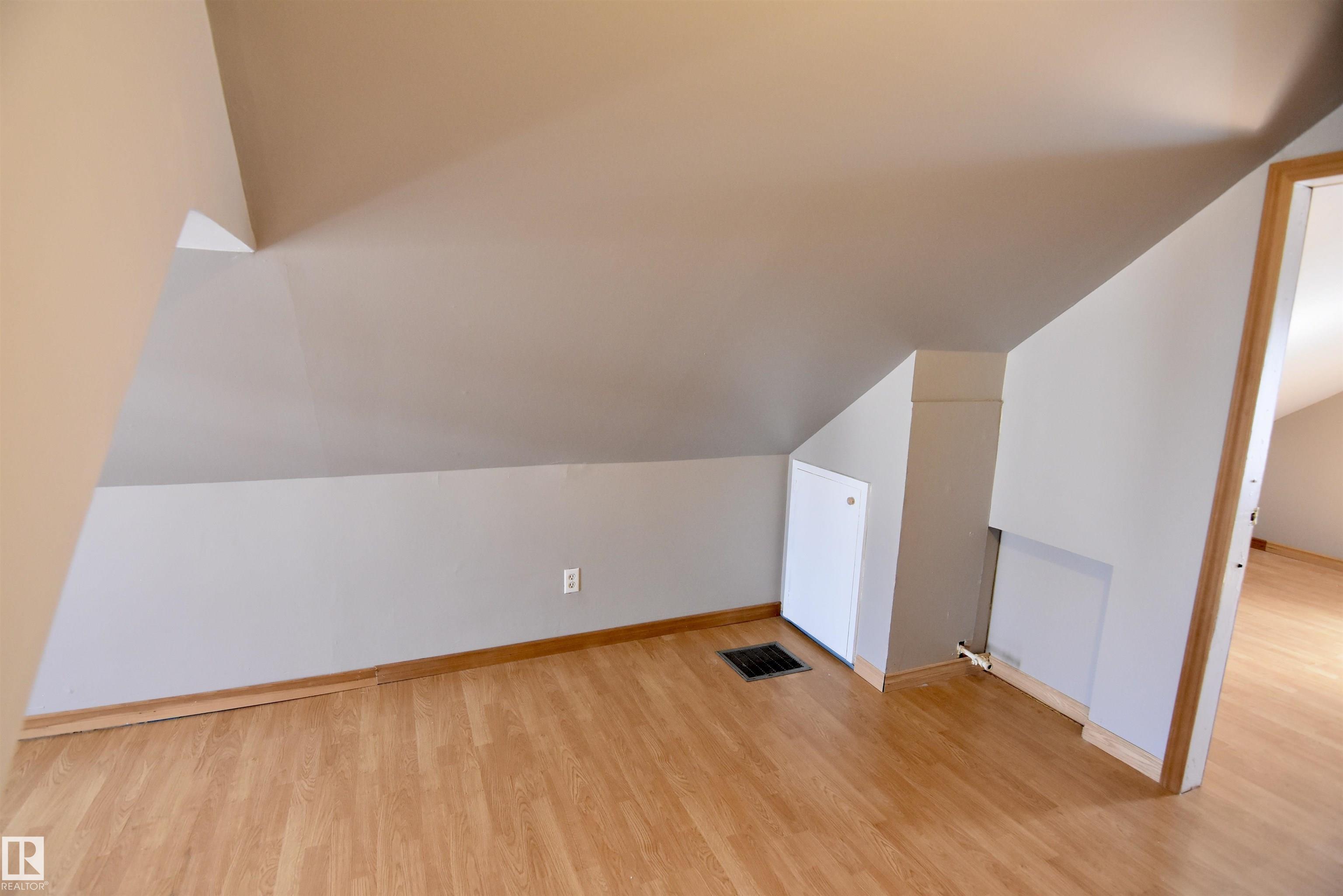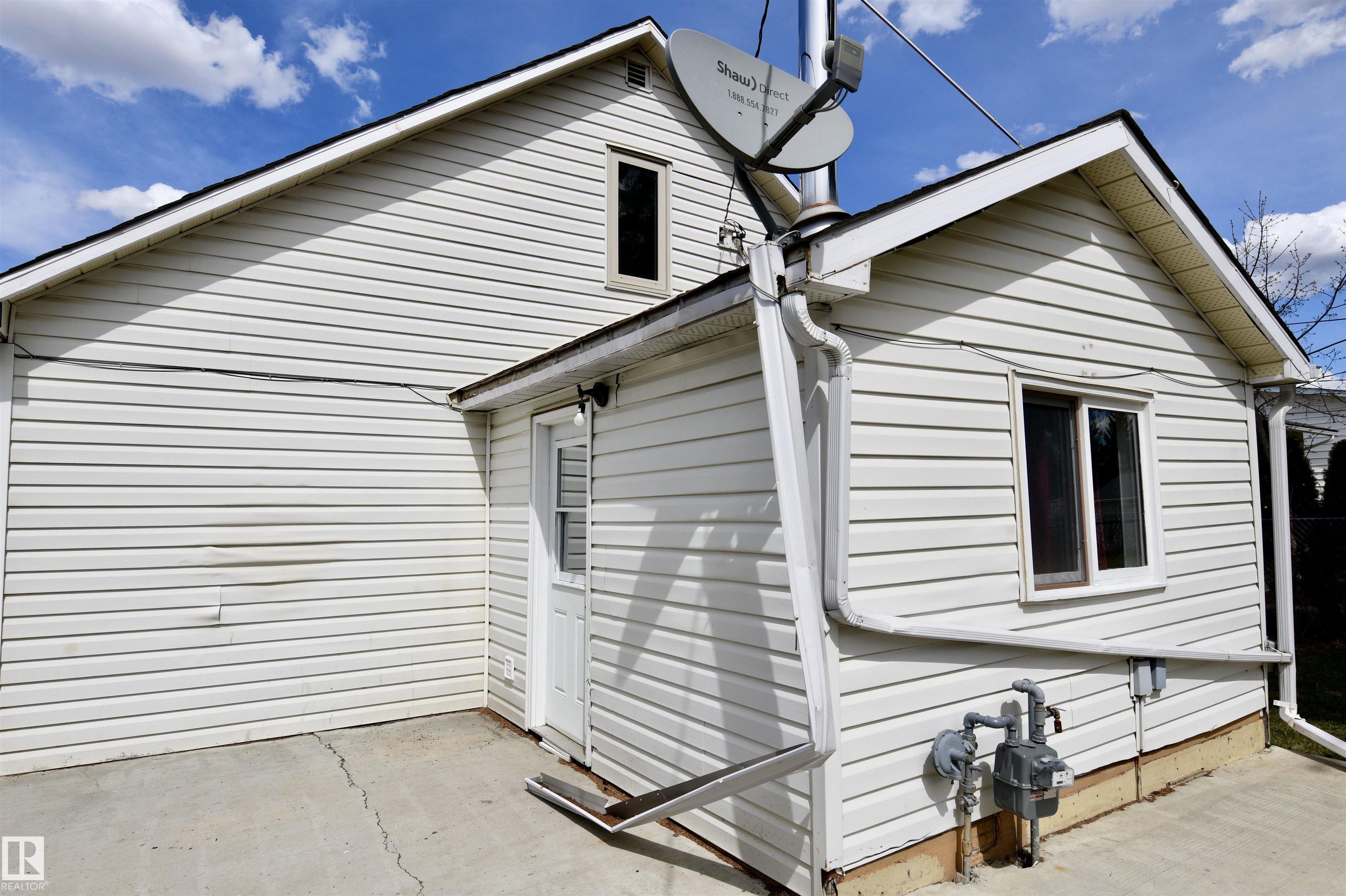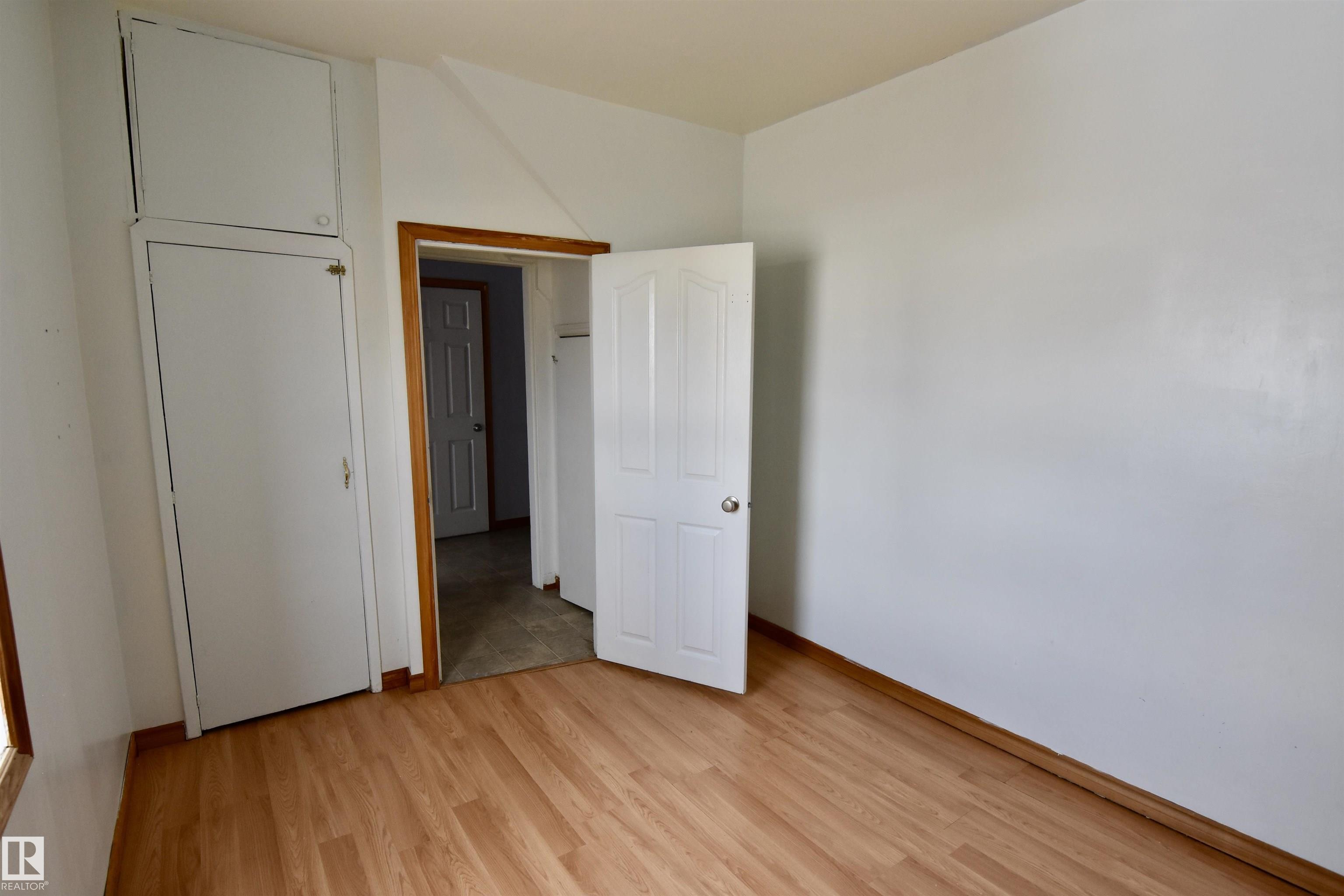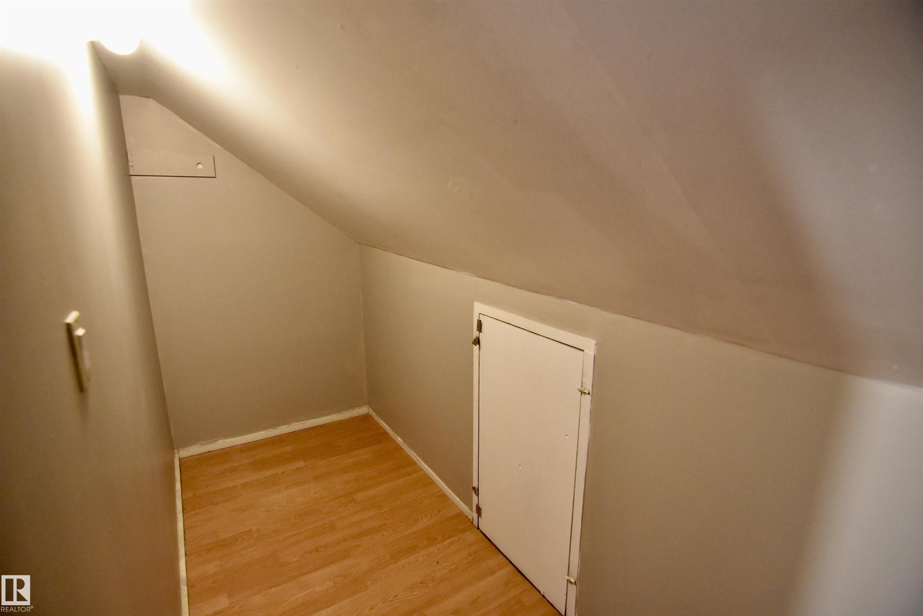 Unique character home close to schools! Tired of cookie-cutter homes? This 1940, 3 bedroom home is apt to catch your attention. The front living room boasts vinyl plank flooring, a bright bay window and a traditional tray ceiling. The eat-in kitchen has seen some updates and features white cabinetry, modern back splash & stainless steel appliances. The back entrance is is cozy with its wood stove and seating area. You'll find 2 bedrooms on the main floor, one featuring the laundry facilities. Upstairs is one more charming bedroom and flex space that's ideal for a play area, reading area or extra storage. Outside is fully fenced with 2 storage sheds and a small patio area. With a bit of your own elbow grease and imagination, this could be your ideal first home or possibly a rental for some additional income.