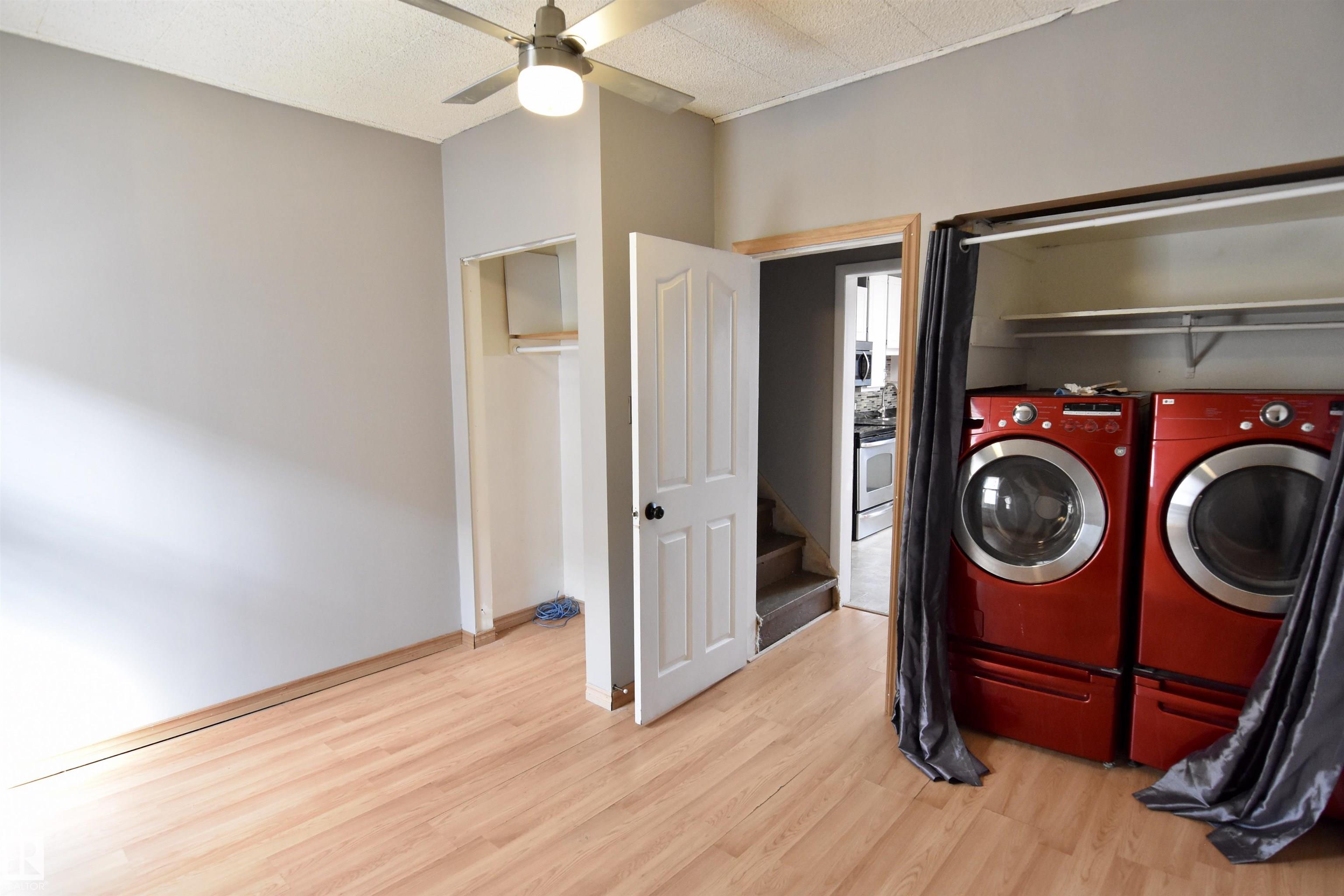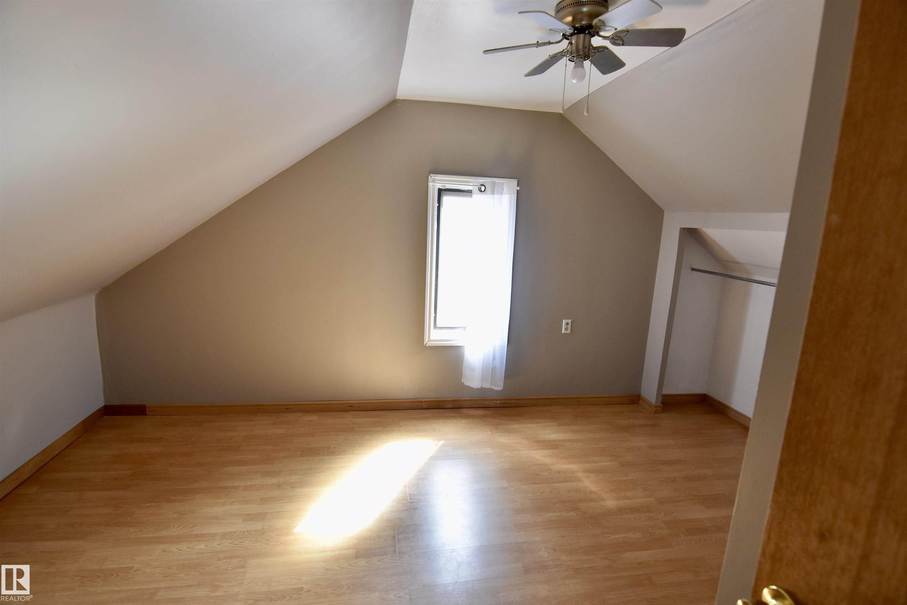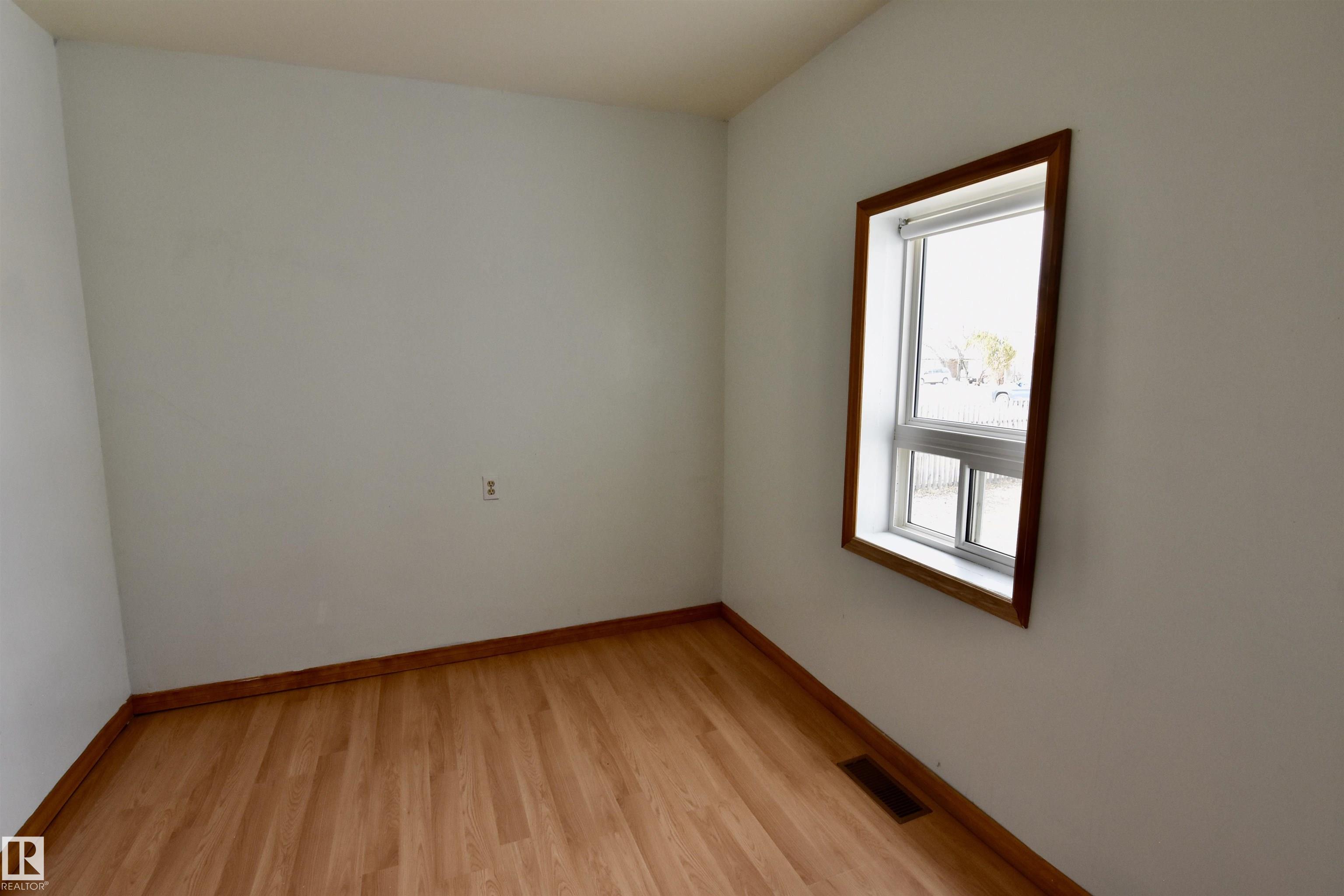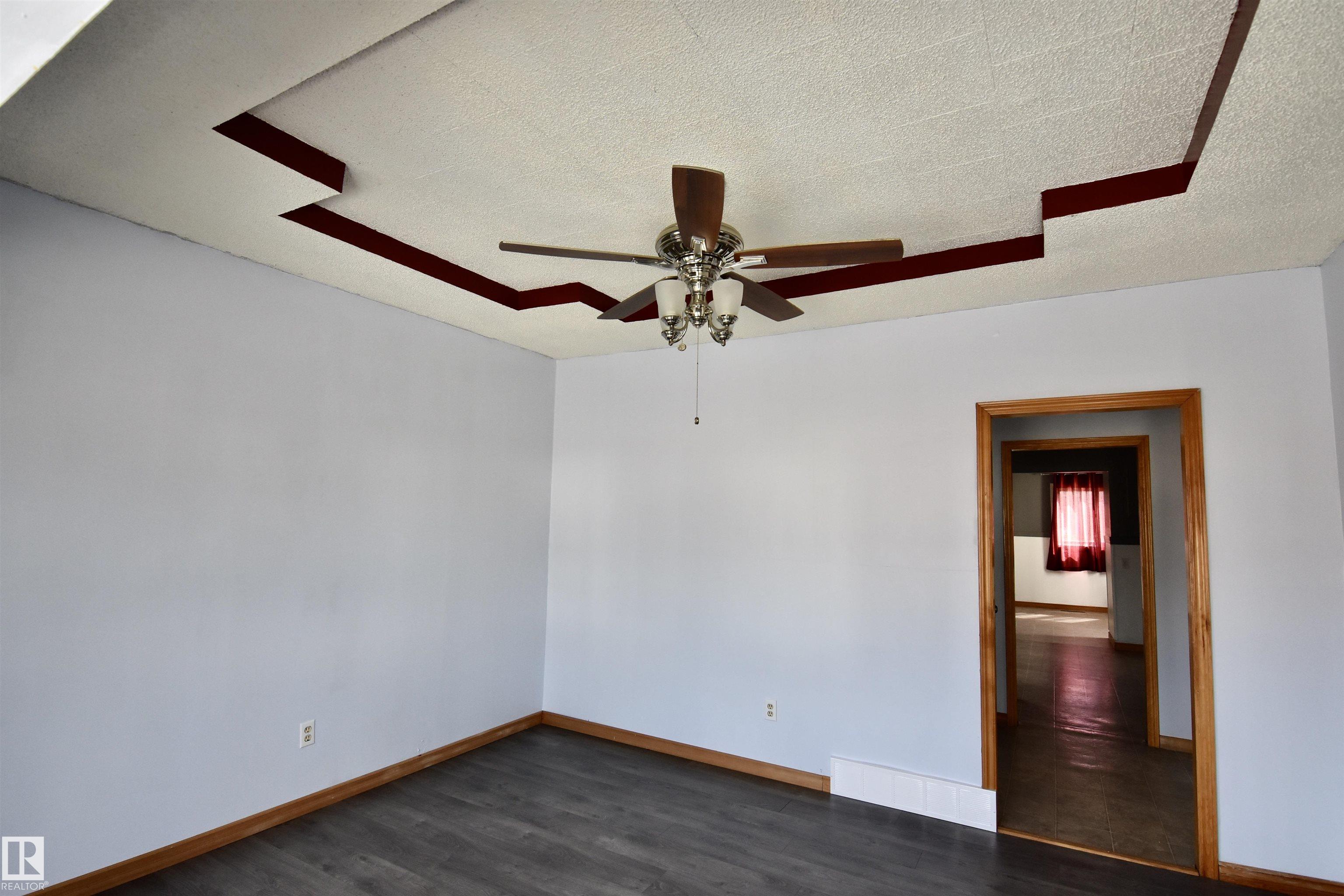 Unique character home close to schools! Tired of cookie-cutter homes? This 1940, 3 bedroom home is apt to catch your attention. The front living room boasts vinyl plank flooring, a bright bay window and a traditional tray ceiling. The eat-in kitchen has seen some updates and features white cabinetry, modern back splash & stainless steel appliances. The back entrance is is cozy with its wood stove and seating area. You'll find 2 bedrooms on the main floor, one featuring the laundry facilities. Upstairs is one more charming bedroom and flex space that's ideal for a play area, reading area or extra storage. Outside is fully fenced with 2 storage sheds and a small patio area. With a bit of your own elbow grease and imagination, this could be your ideal first home or possibly a rental for some additional income.