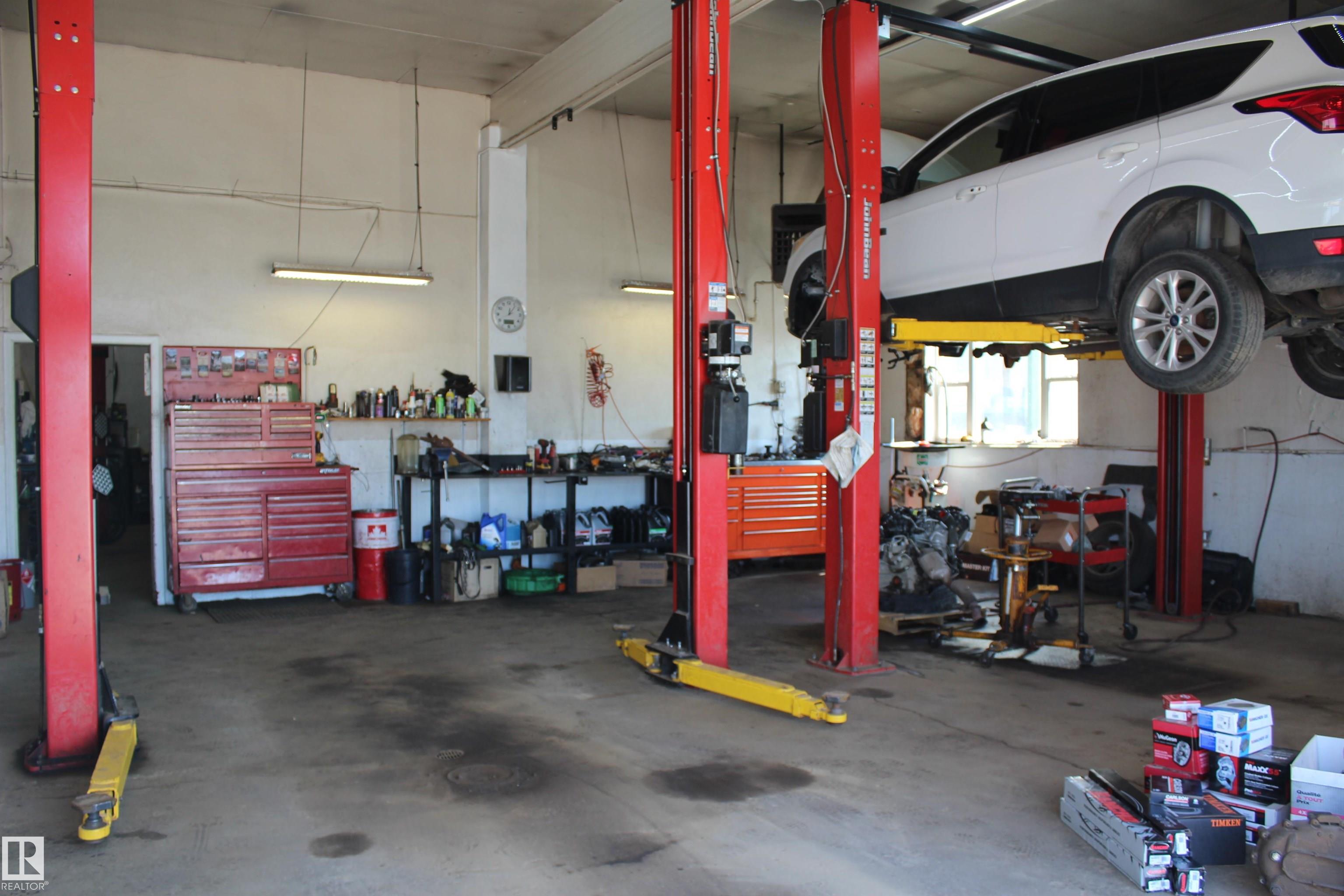 Turnkey Automotive Shop ? Small Town Gem! Busy, well-established automotive repair shop in the heart of a thriving small town! This turnkey operation includes a front lobby and separate office and storage rooms, fully equipped 3 bay (27x27 and 36x29) , 2- 2 pole hoists and 1 - 4 pole hoist, tire machines, air compressor, diagnostic tools, and all essential equipment. The sale includes all contents ? tools, inventory, parts, office furniture, and more. Loyal customer base, strong local reputation, and high traffic location ensure steady business. Perfect opportunity for a mechanic looking to own and operate their own shop or an investor seeking a proven income generator. Visible from the busy highway running through Mundare. Don't miss this rare chance to own a fully loaded, ready-to-go auto shop with huge potential! BONUS -this property has a space leased out to a long term tenant who wants to stay!
