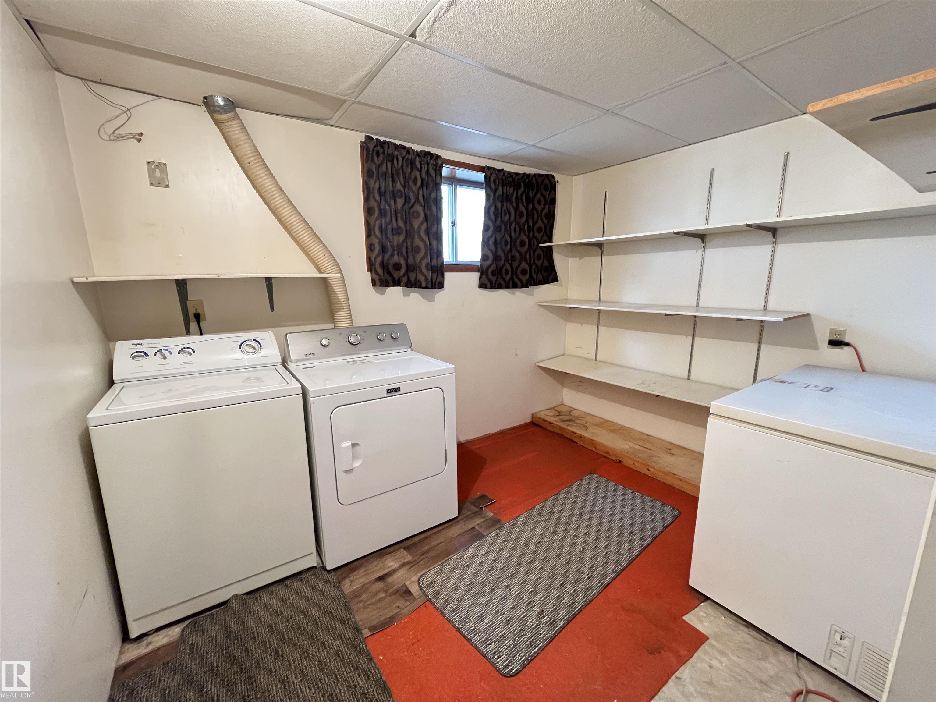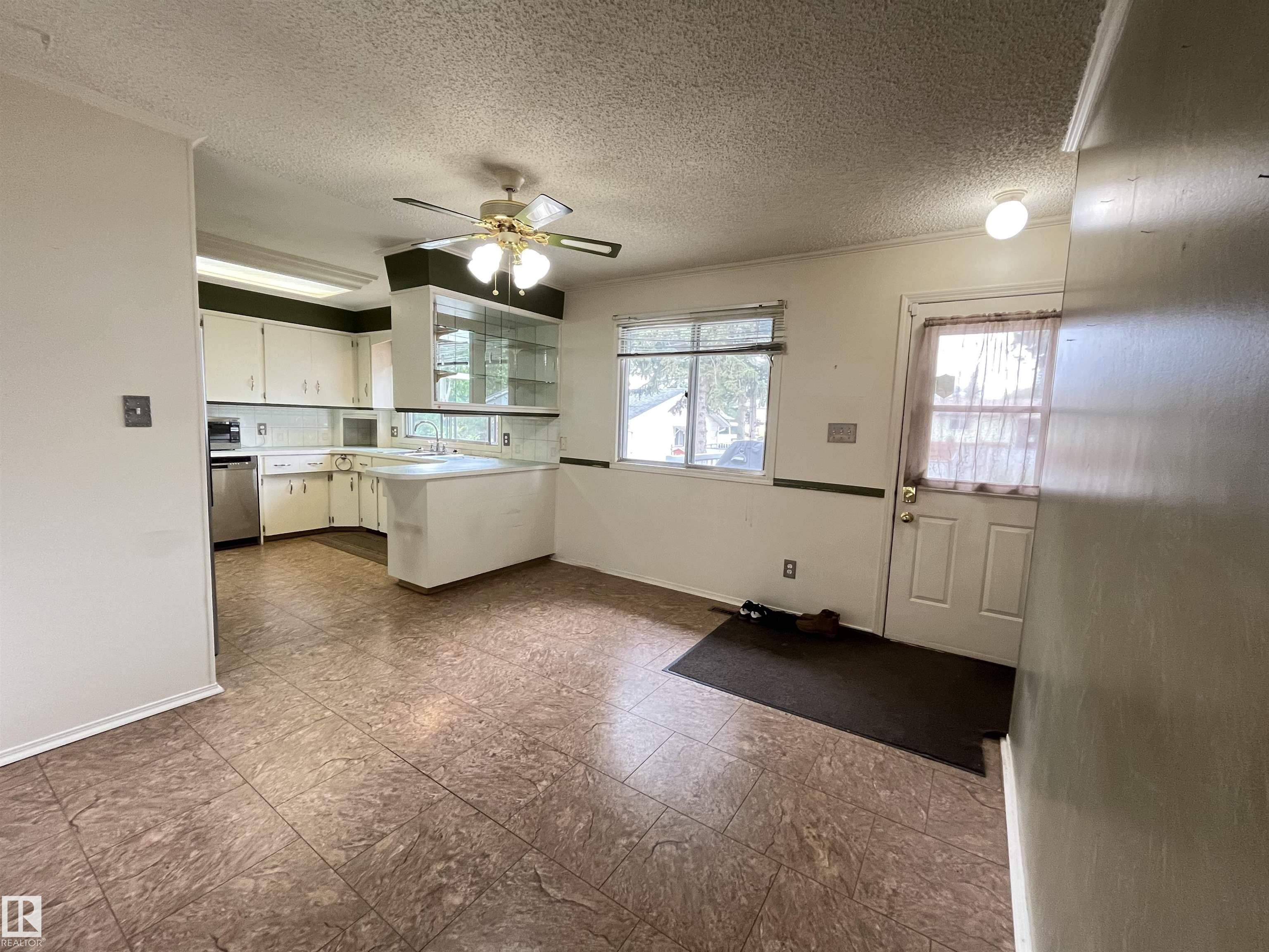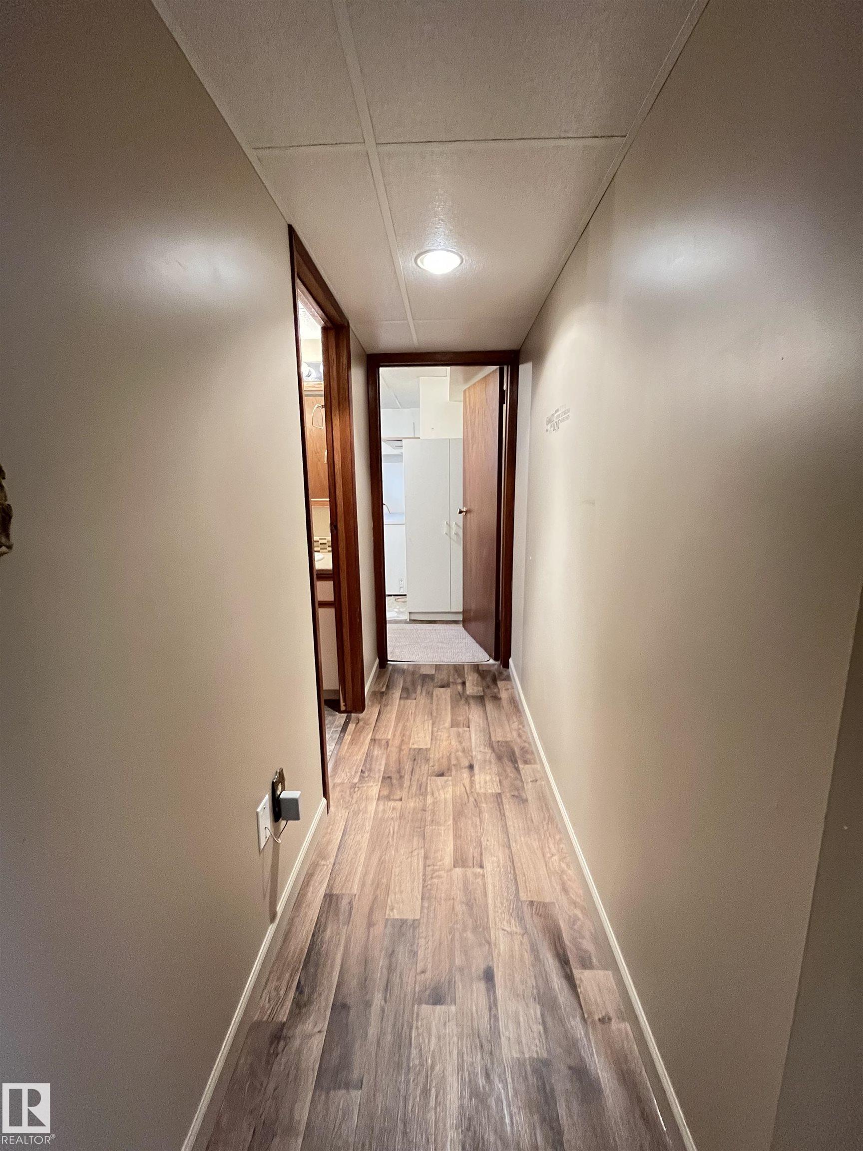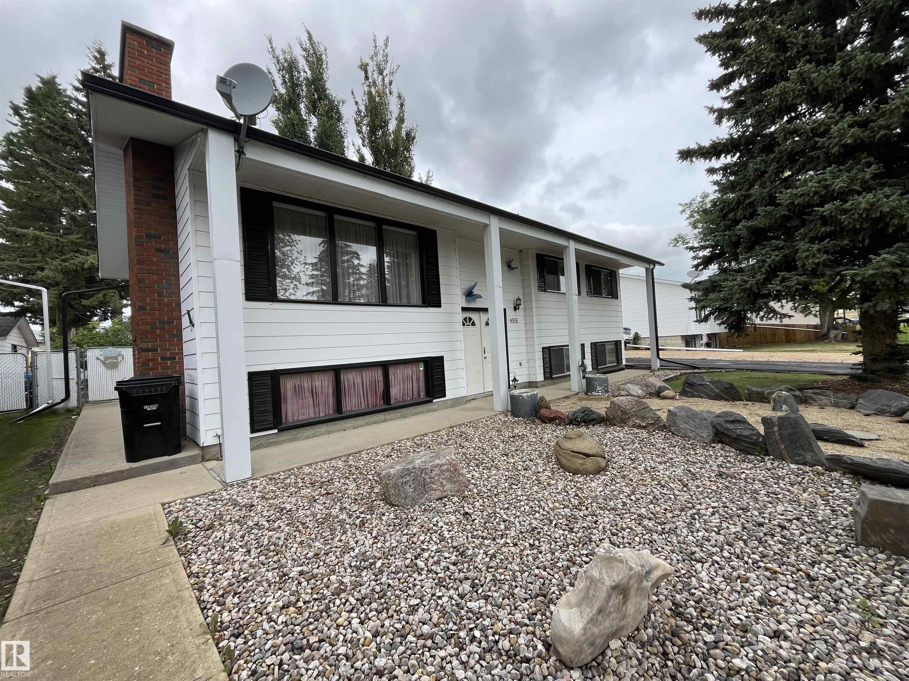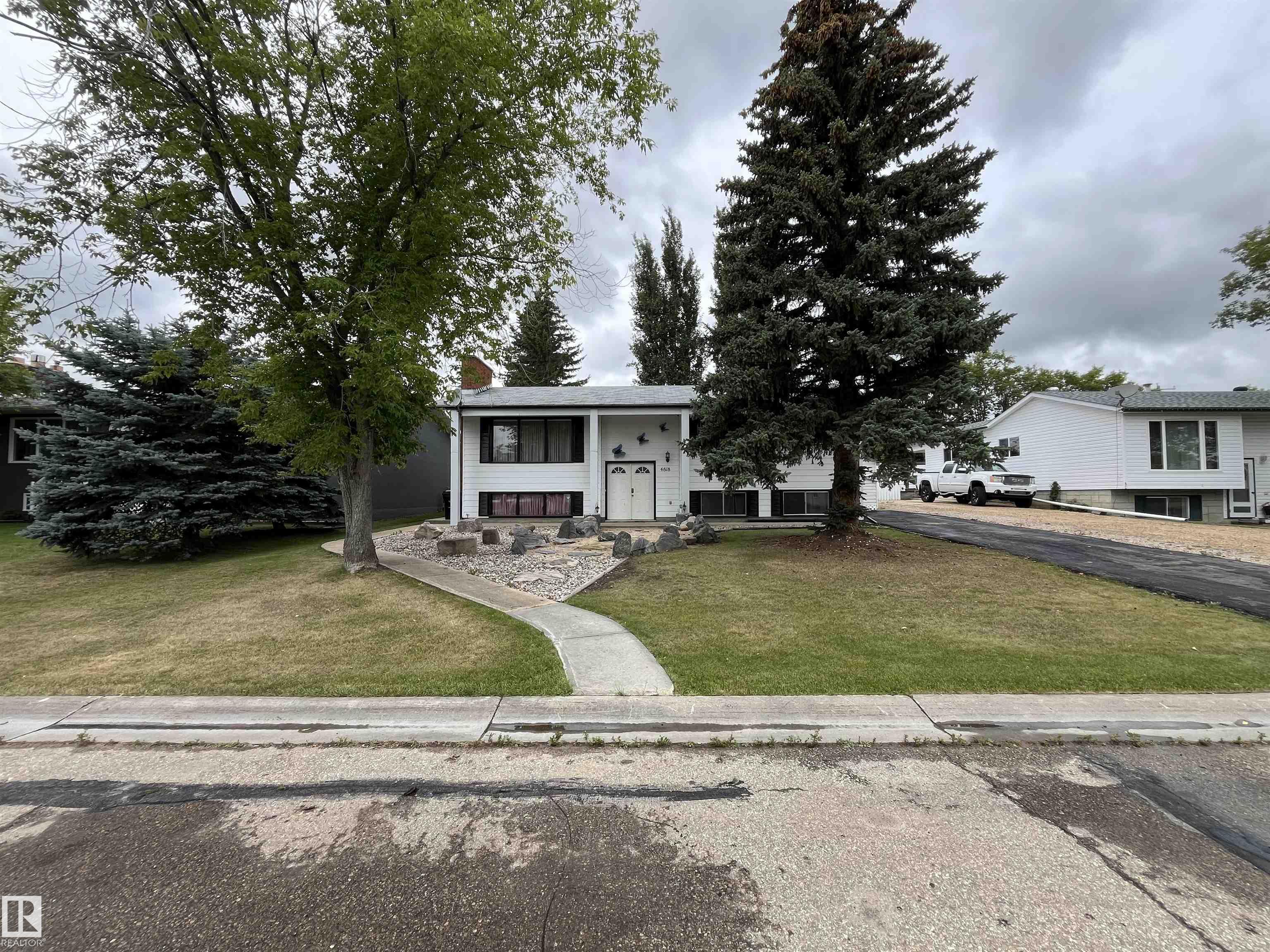 Welcome to this 4 bedroom, 3 bath Bi-level home on a nice sized lot in Barrhead. Walking distance to the golf course, with a playground and walking path nearby along the Paddle River. Nice size primary bedroom with 2pc ensuite. Updated bedroom and bathroom in the basement. Good size laundry room. Wood burning fire place to enjoy on those cold winter days. Basement has a spot roughed in and ready for a fireplace as well. With a little bit of love and updating this could be the perfect home for your growing family. New Hot water tank in fall of 2024. Shingles done 2 years ago. Well maintained exterior. Low maintenance landscape. Beautiful mature trees. An abundance of parking. Two sheds for storage ( larger shed has power).