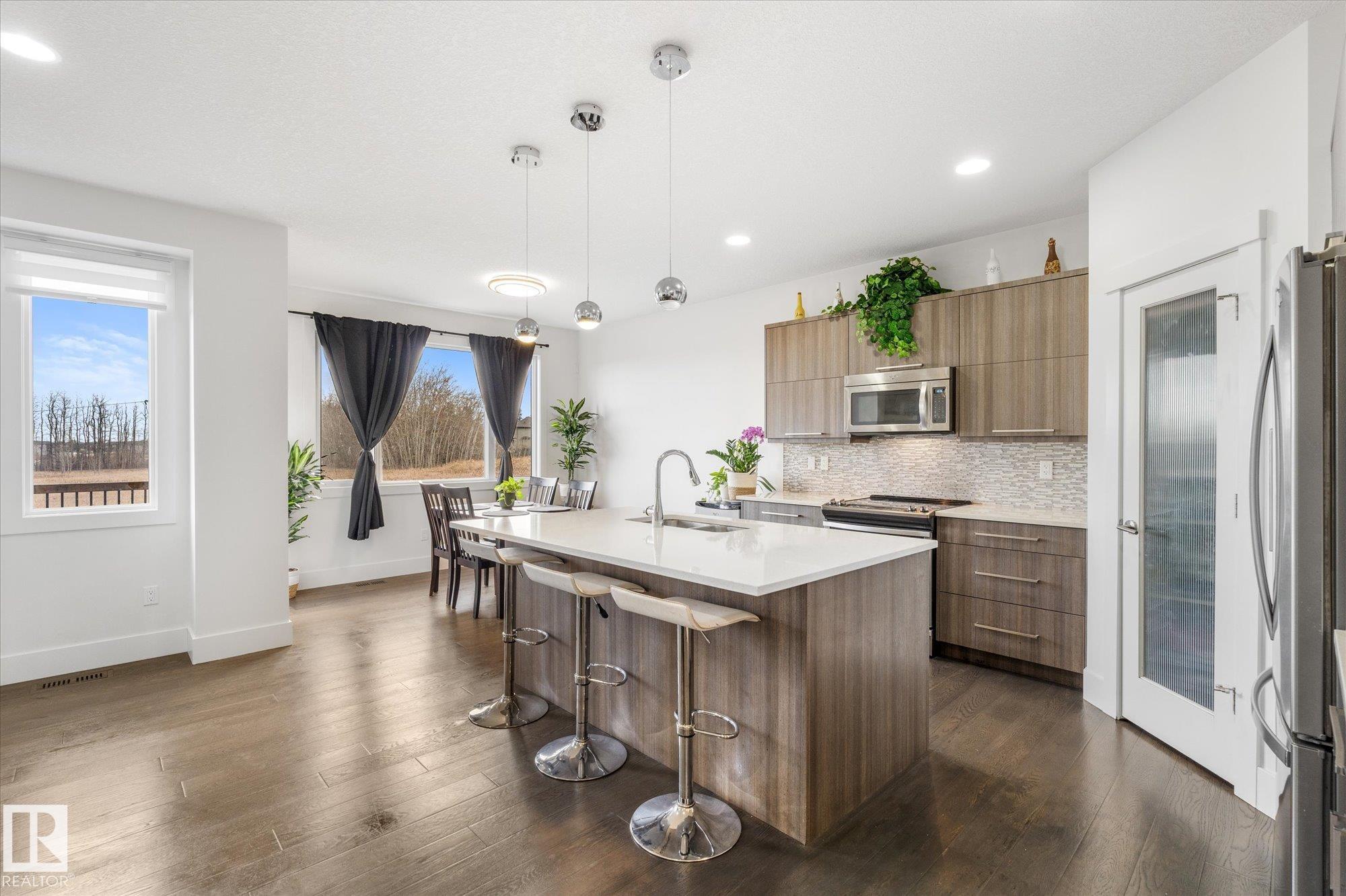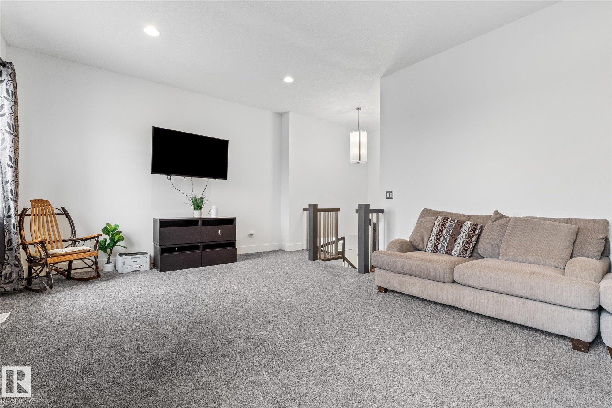 This lovely home built by San Rufo Homes has so much to offer! The main level boasts a huge great room with 9 foot ceilings and offers a beautiful center island, corner pantry, dining area and a large living room with gas fireplace plus 2 pc bathroom and main floor laundry. Up the stairs you will find a massive bonus room with 9 foot ceilings as well. Up the split stairs there are 3 good sized bedrooms! The primary bedroom has a stunning ensuite with two sinks, shower and soaker tub plus a walk in closet. The two other bedrooms are separated by a Jack and Jill 4 pc bathroom with the rub and toilet have a door to separate them from the sink. The unfinished basement has 9 ft ceilings, roughed in plumbing and FOUR windows and is ready for your ideas. Located on a quiet street and backing a field, it's a perfect location. Easy commute to either highway and close to many amenities, trails, parks and the brand new Heavy Metal Place! Main floor and bonus room recently painted!