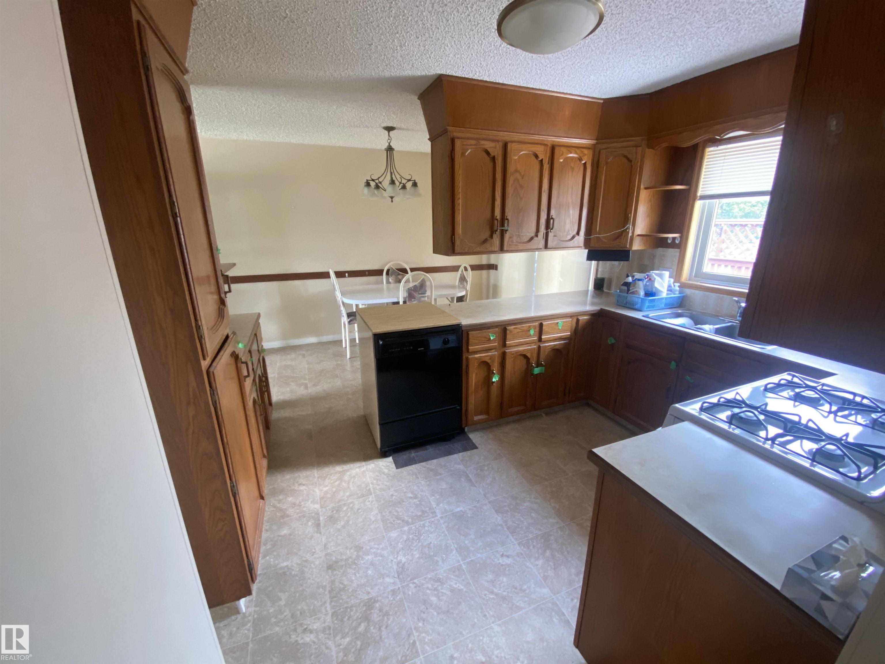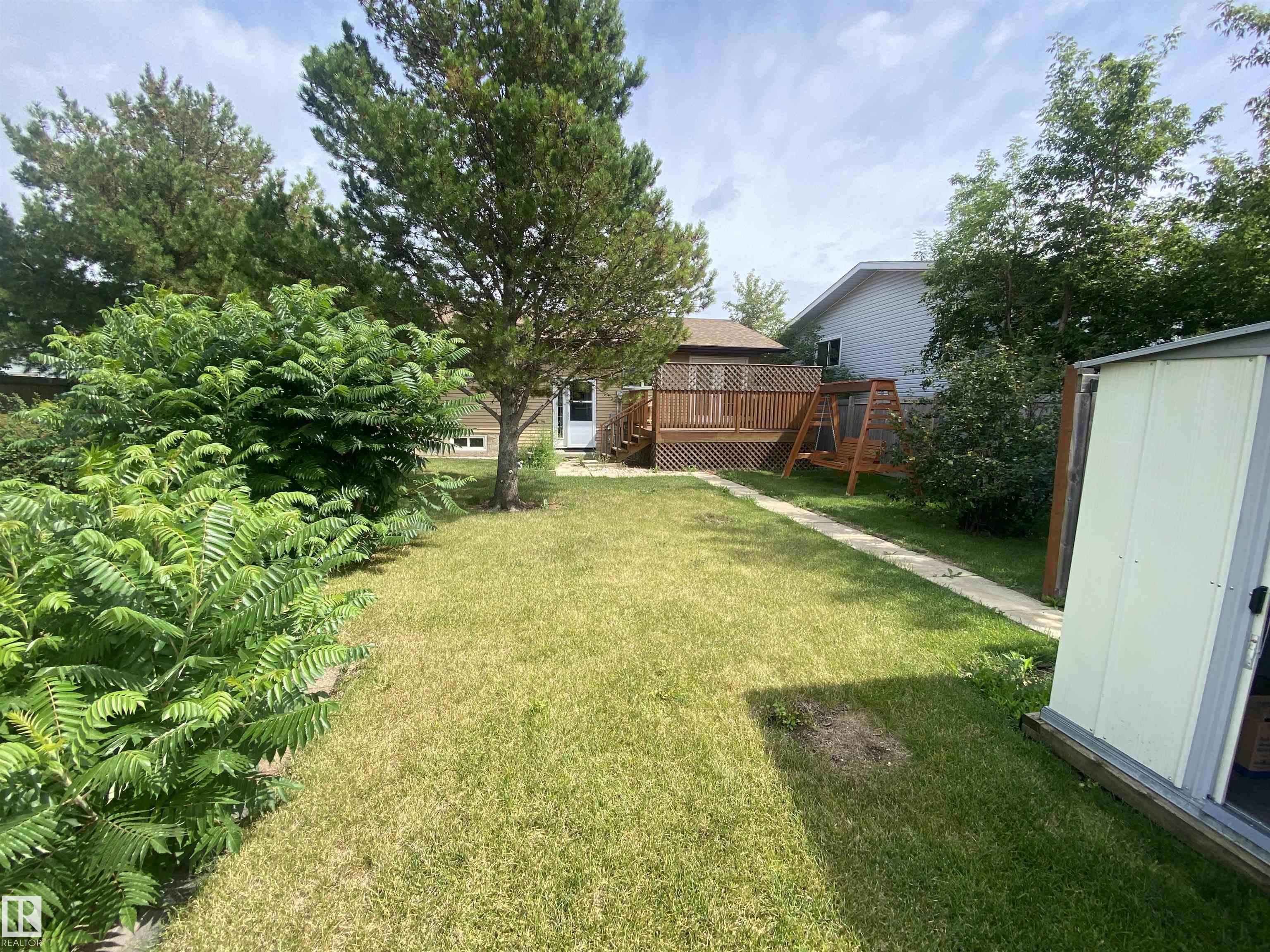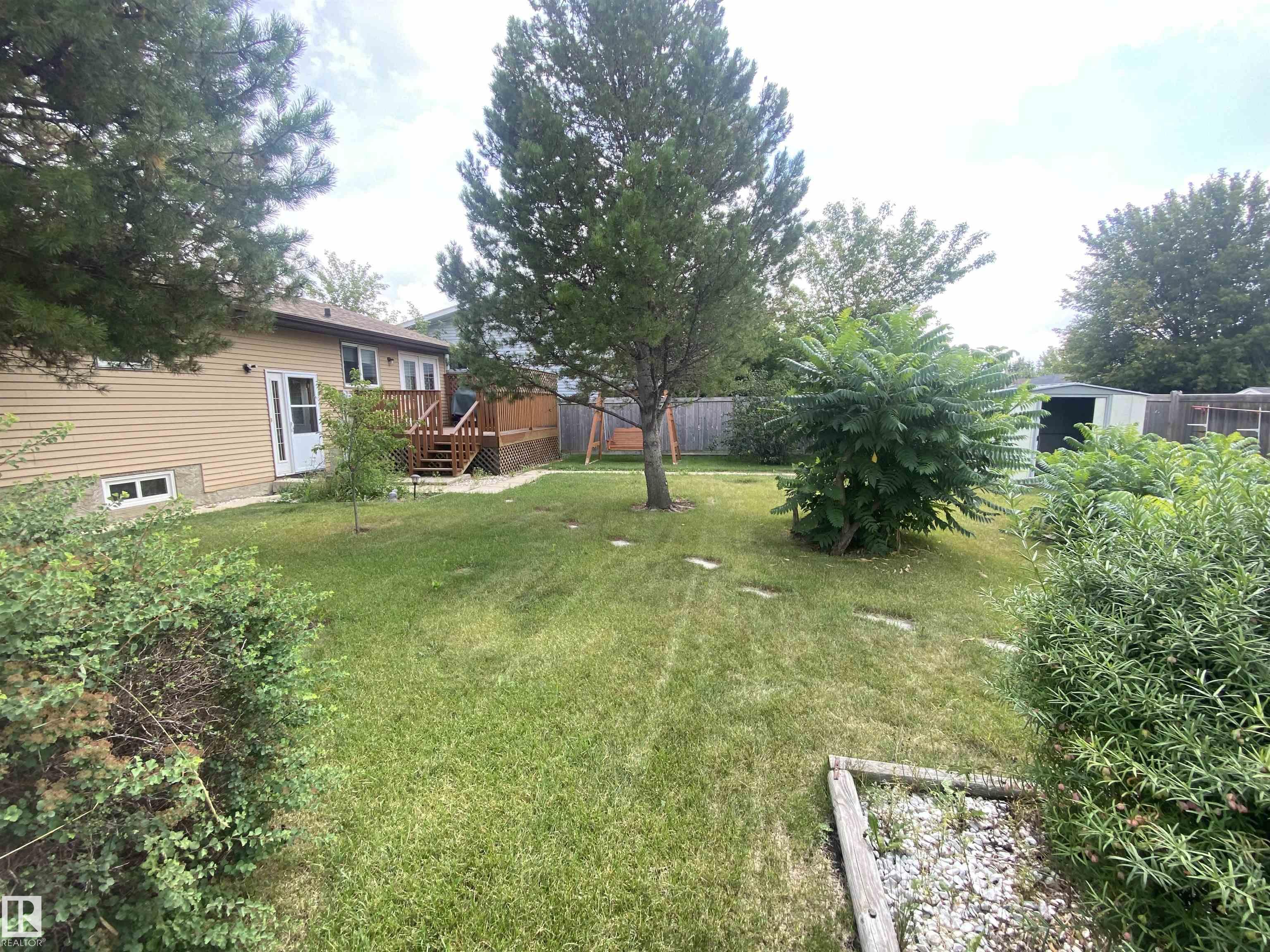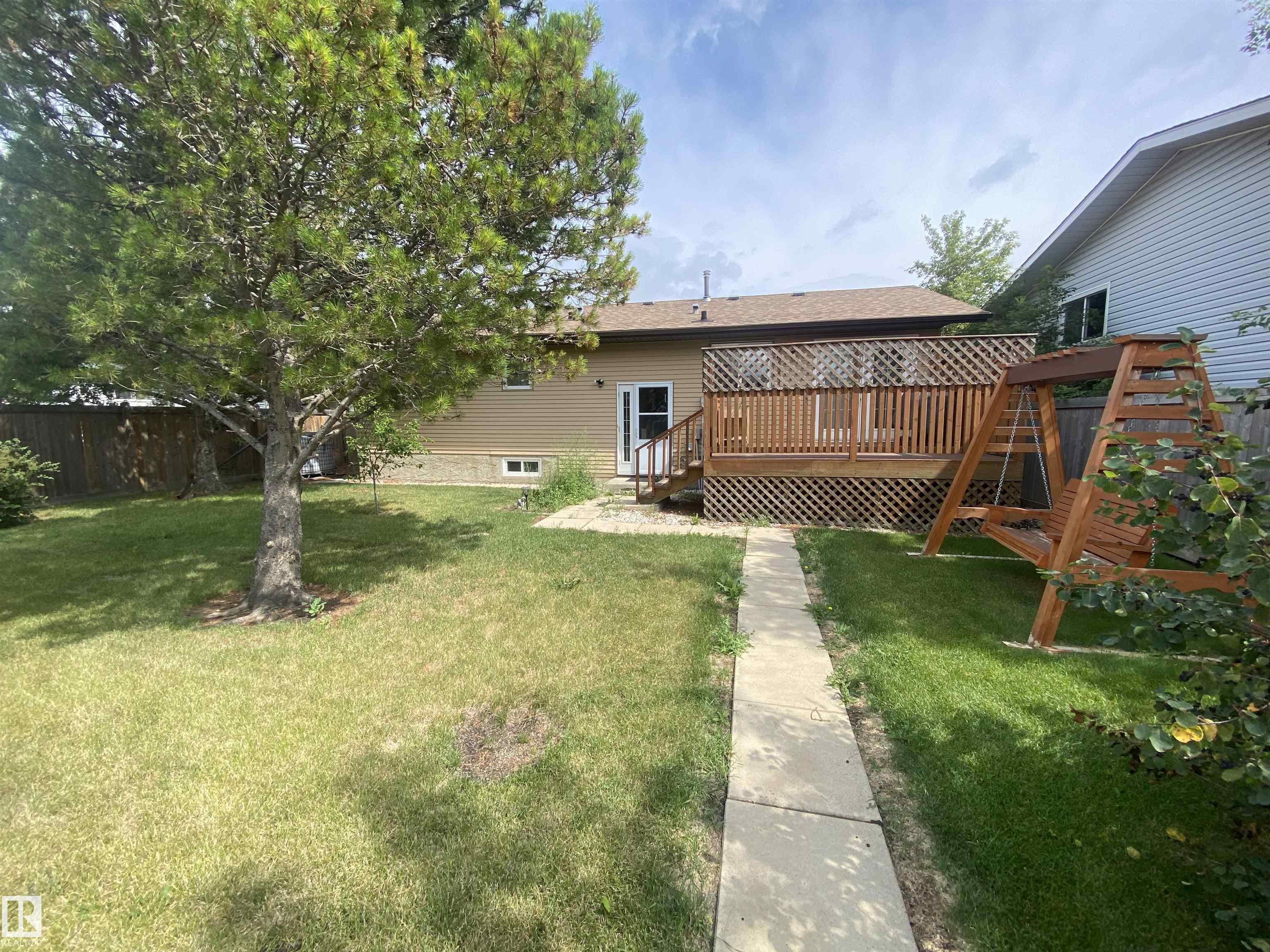 Check out this well setup bungalow located in nice family neighborhood on the North side of Vegreville. Home features 2 large bedrooms up and one down with the possibility of making it 3 up. Comfortable living room, dining room and kitchen. Basement is developed with extra large rumpus room and bedroom. Property has a large nice deck, and huge backyard with garage possibilities.
