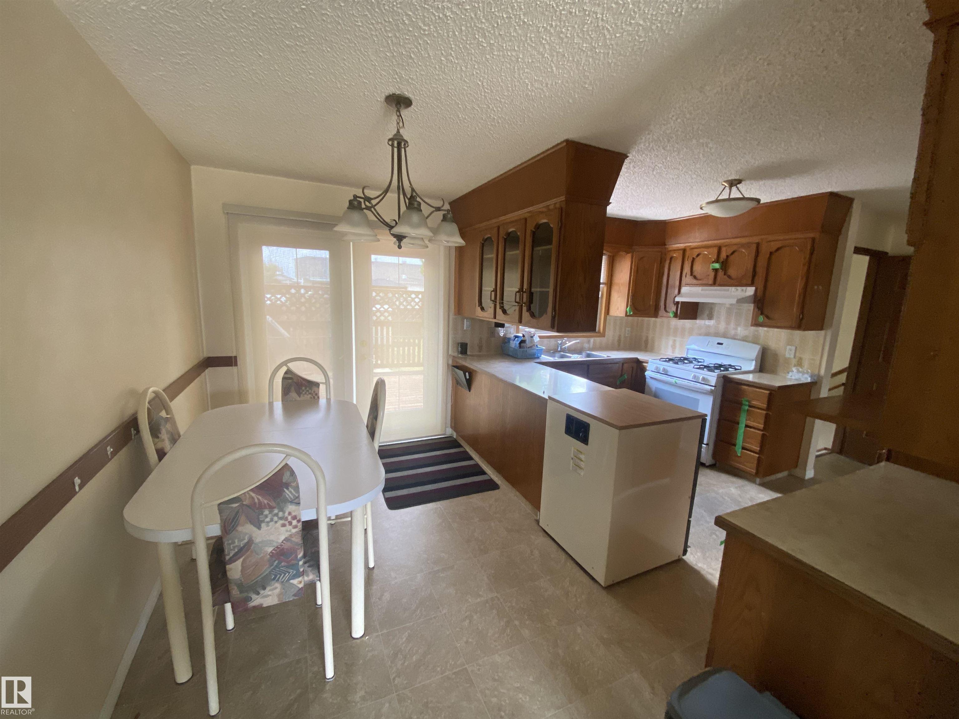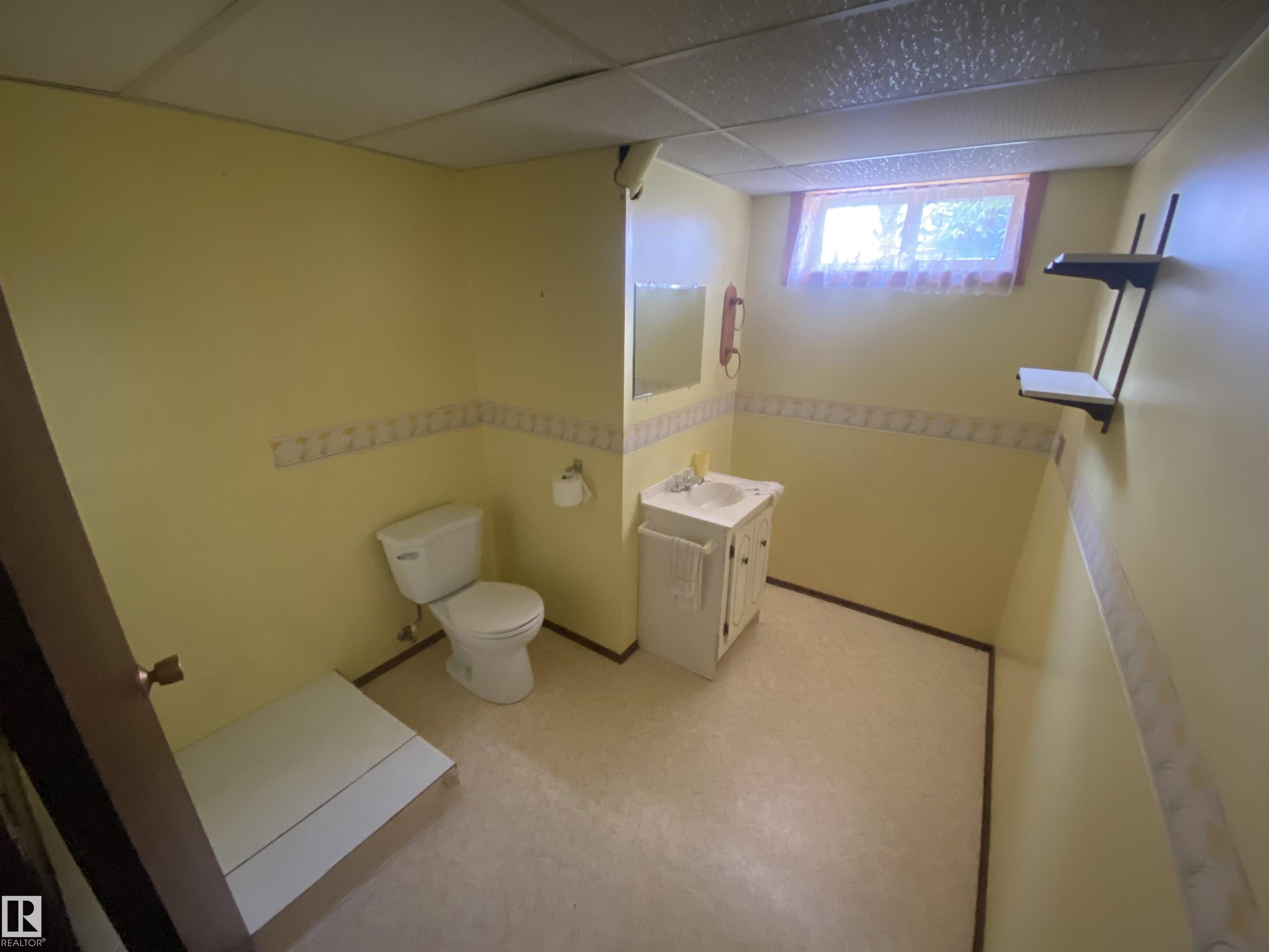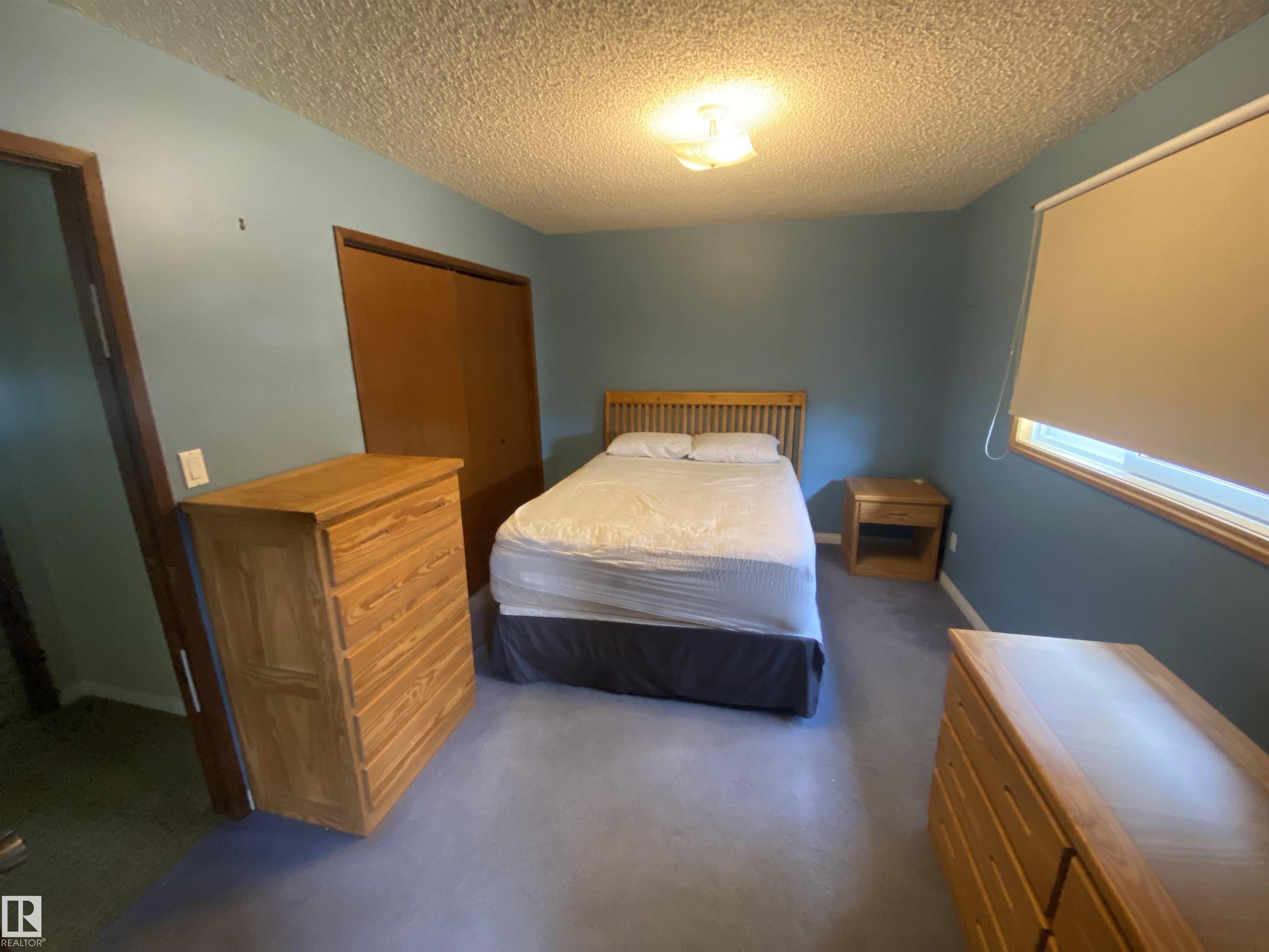 Check out this well setup bungalow located in nice family neighborhood on the North side of Vegreville. Home features 2 large bedrooms up and one down with the possibility of making it 3 up. Comfortable living room, dining room and kitchen. Basement is developed with extra large rumpus room and bedroom. Property has a large nice deck, and huge backyard with garage possibilities.