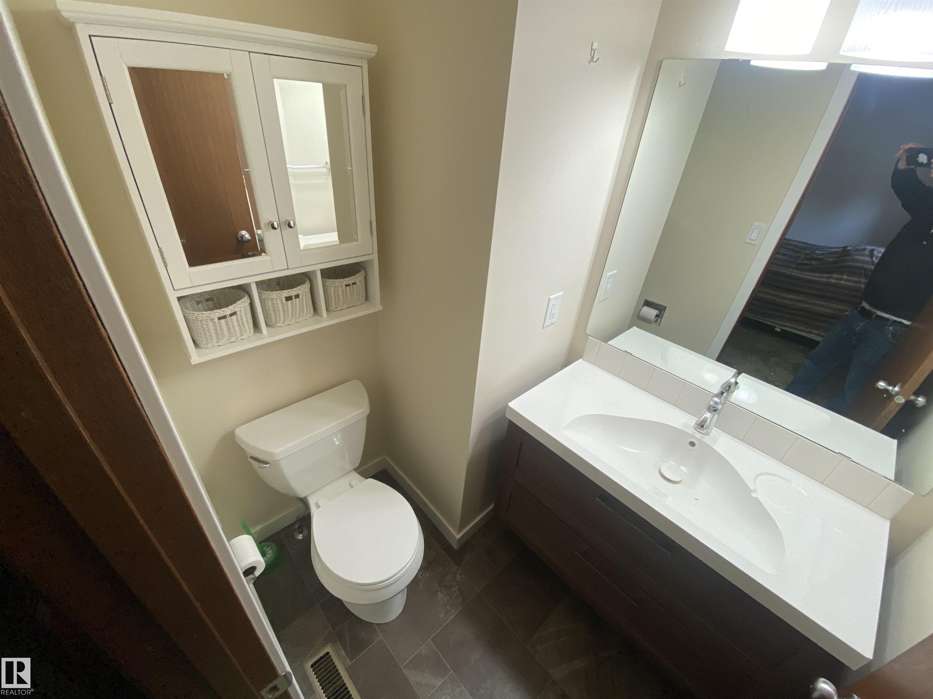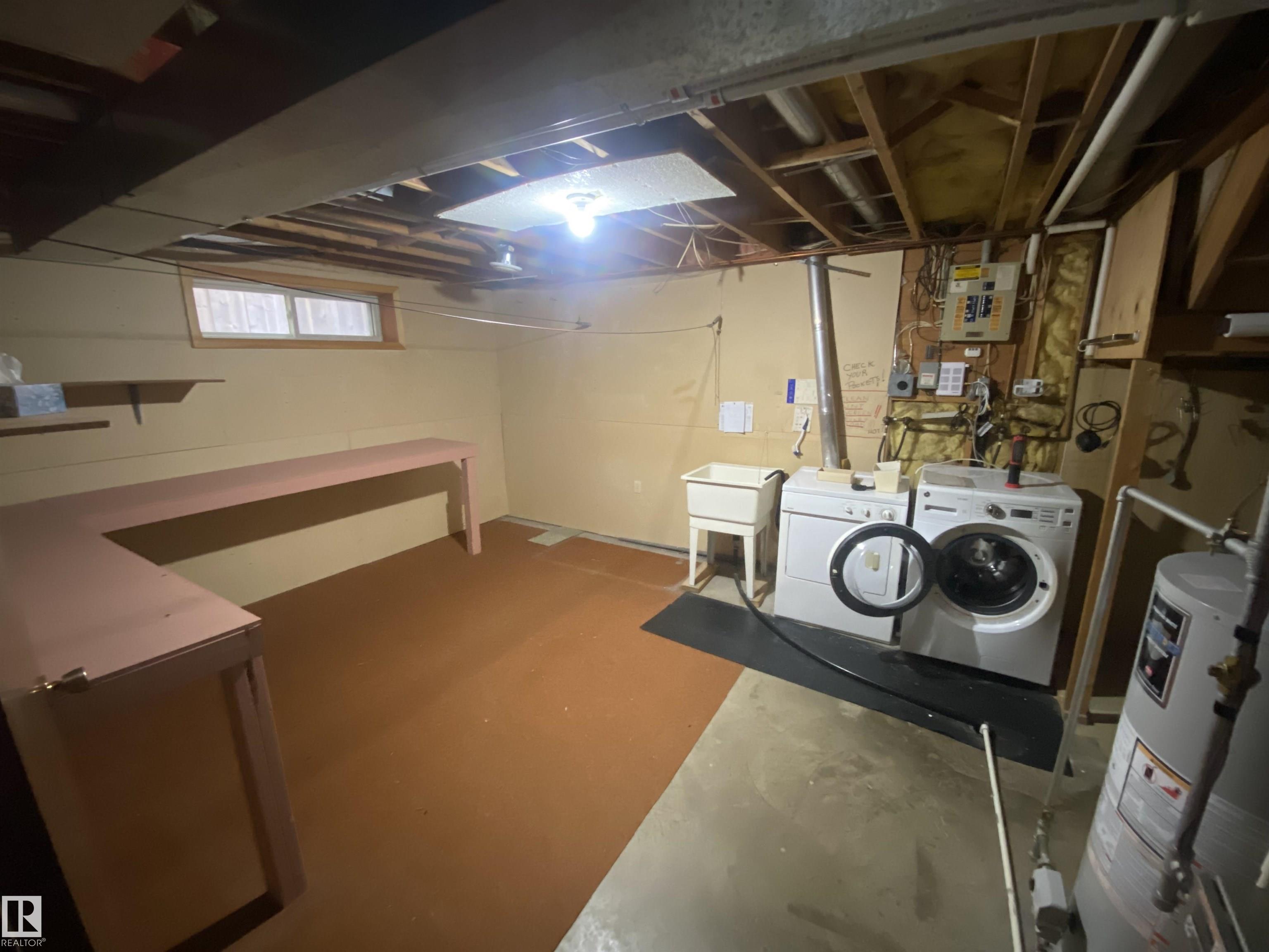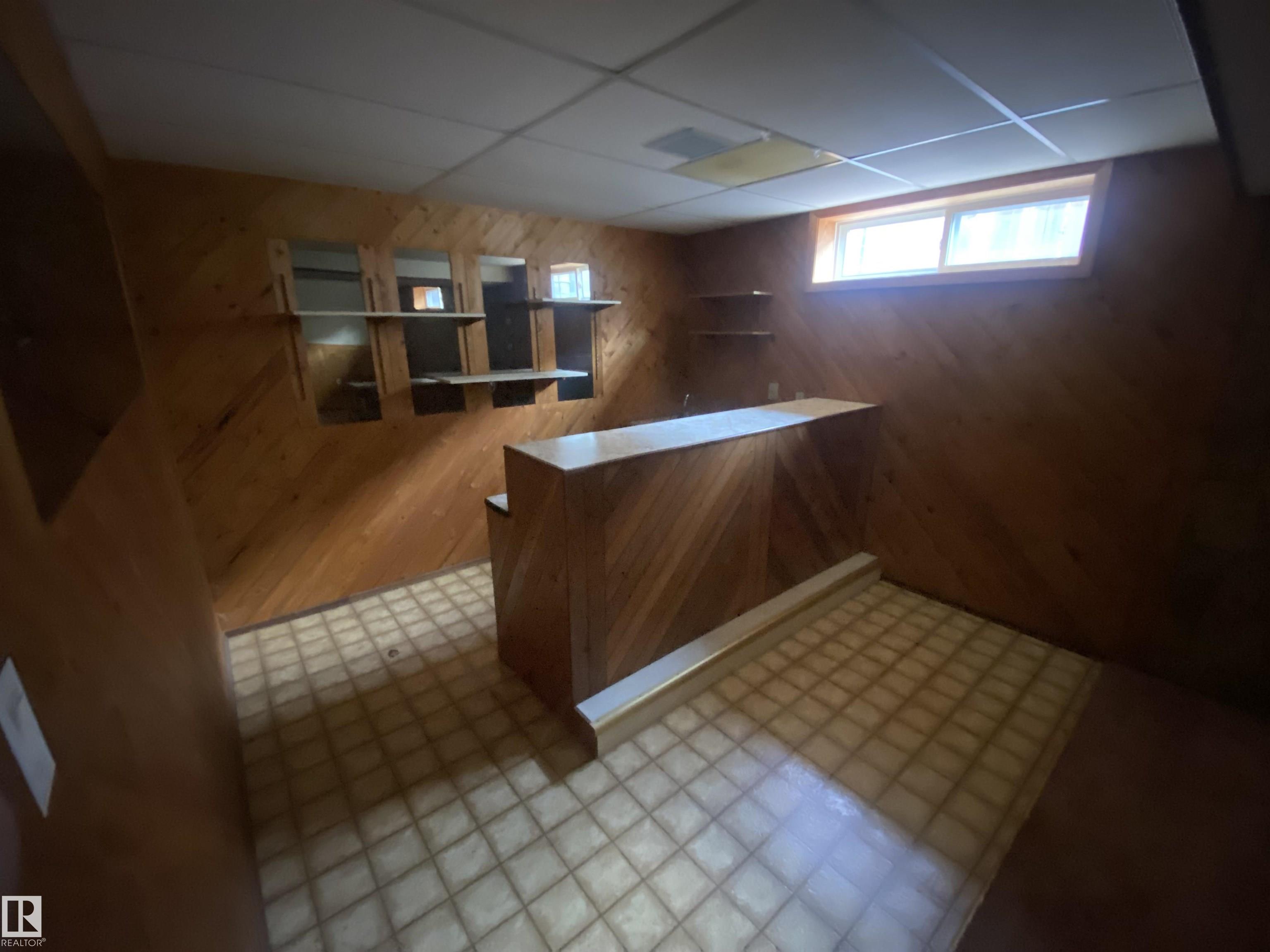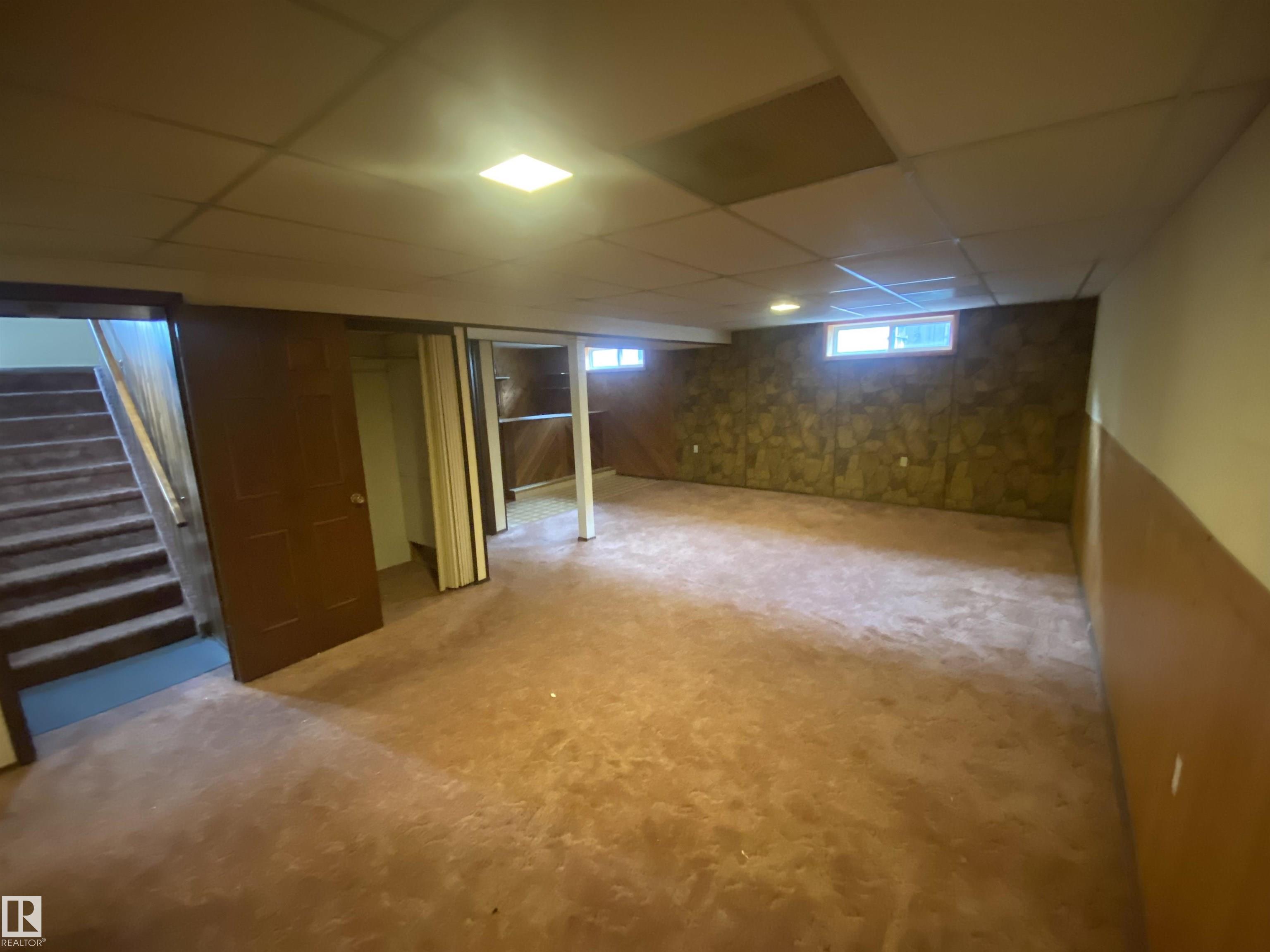 Check out this well setup bungalow located in nice family neighborhood on the North side of Vegreville. Home features 2 large bedrooms up and one down with the possibility of making it 3 up. Comfortable living room, dining room and kitchen. Basement is developed with extra large rumpus room and bedroom. Property has a large nice deck, and huge backyard with garage possibilities.