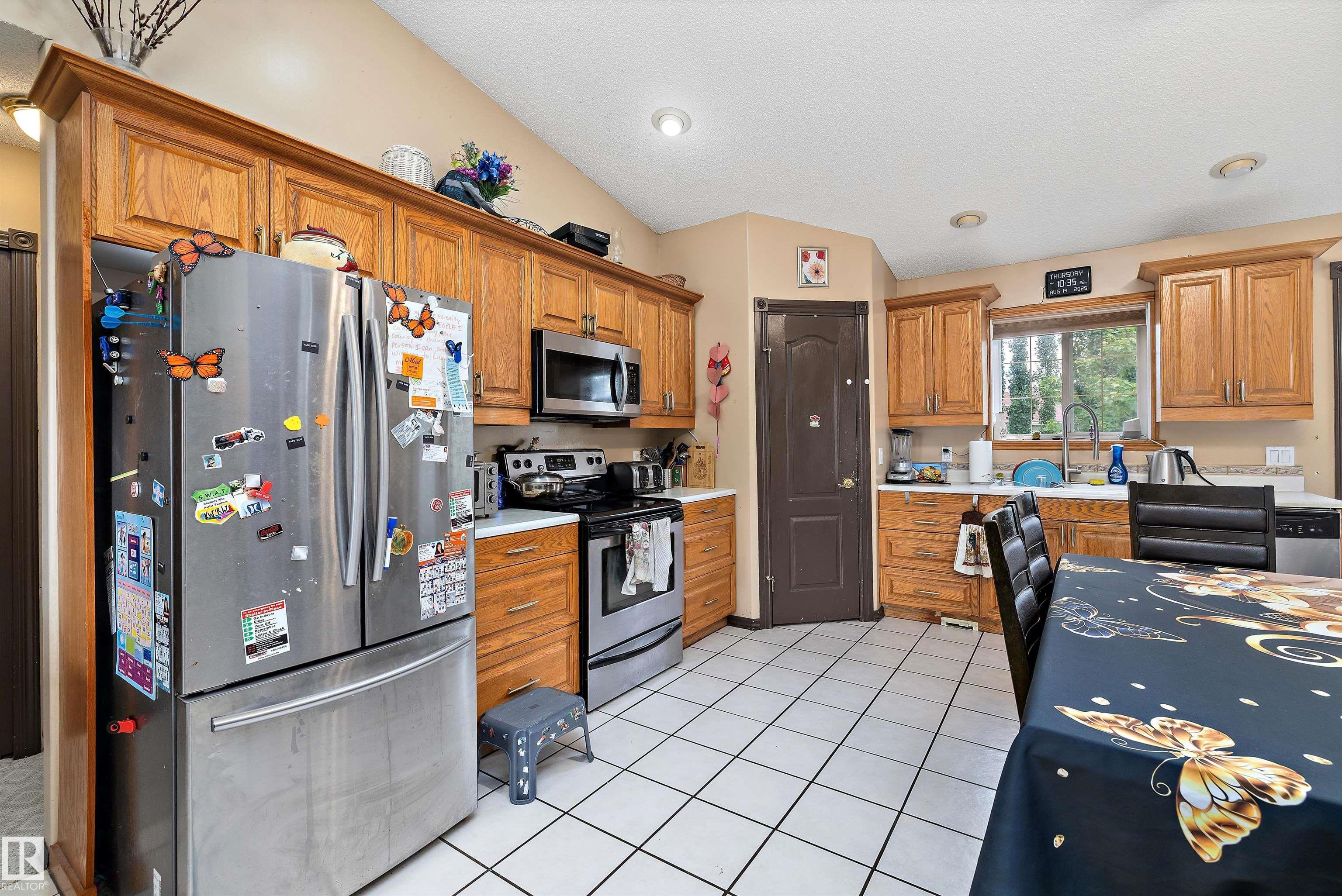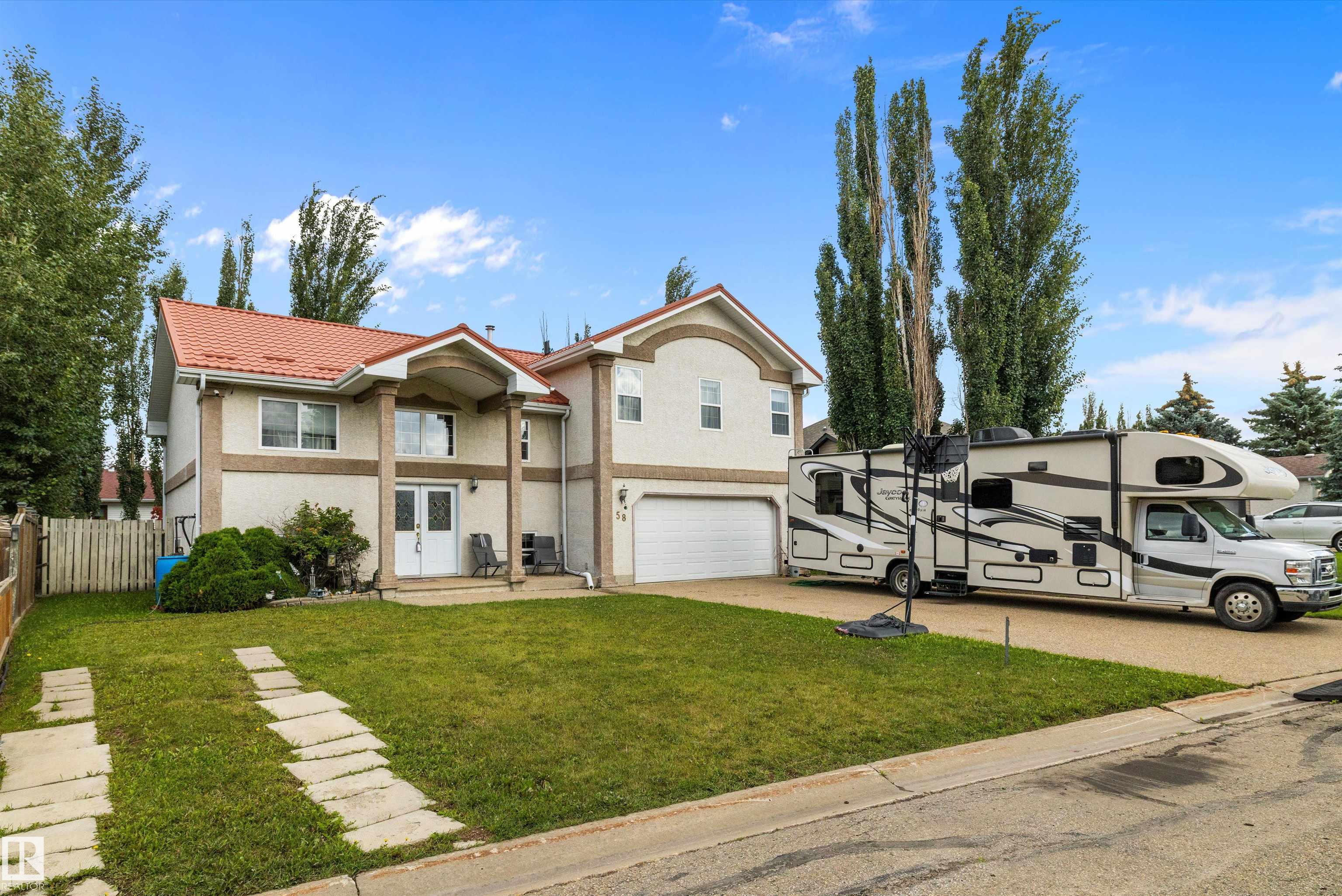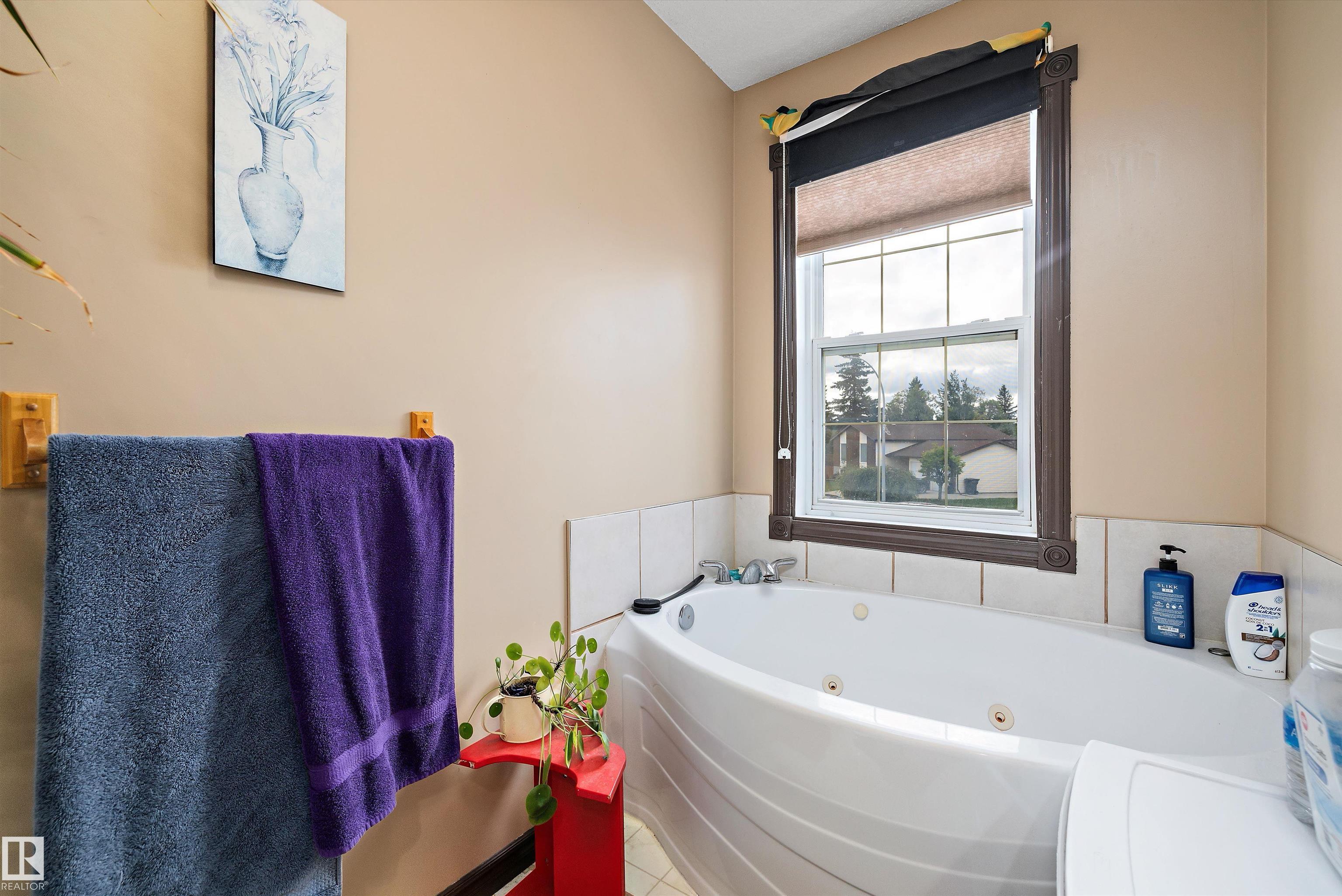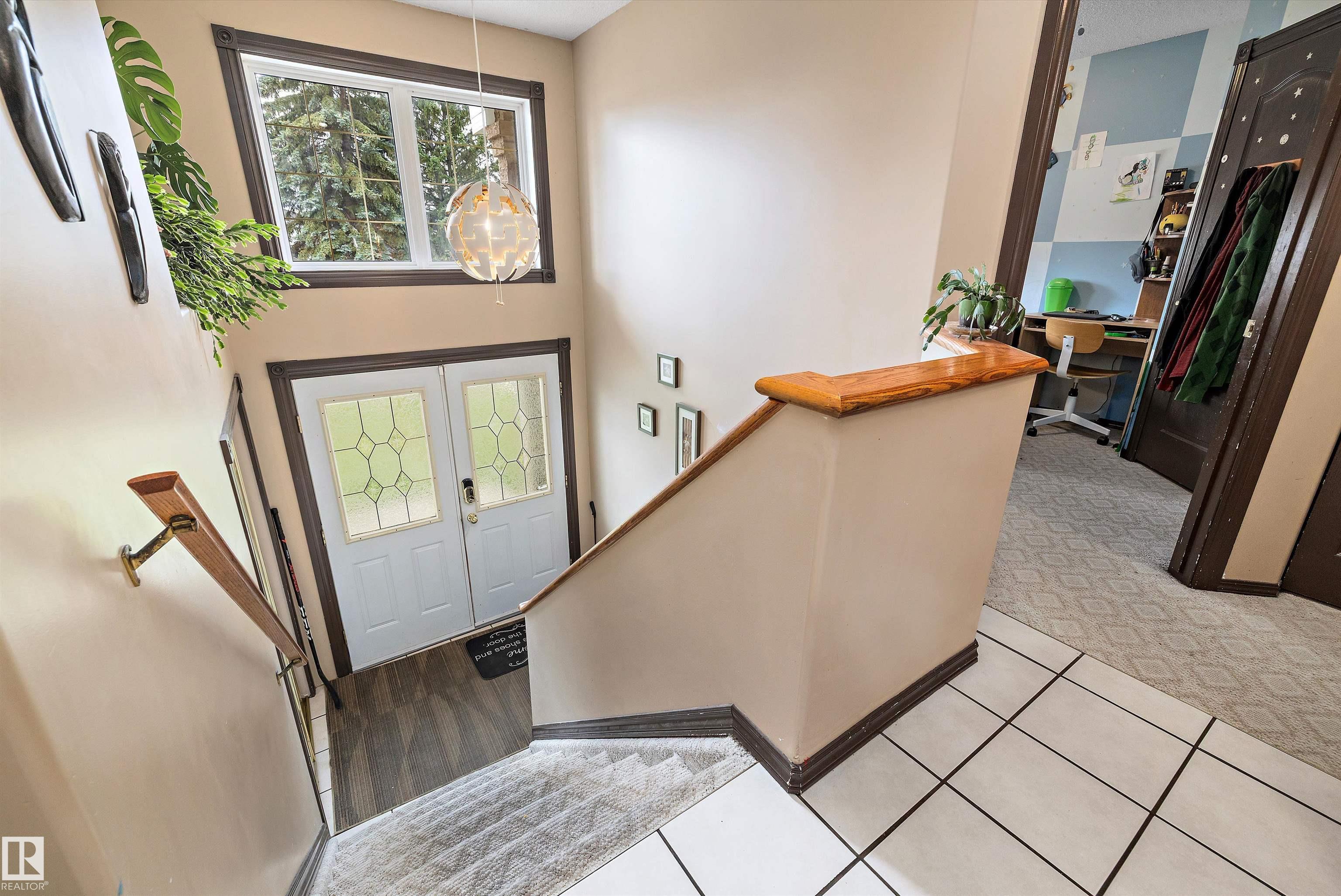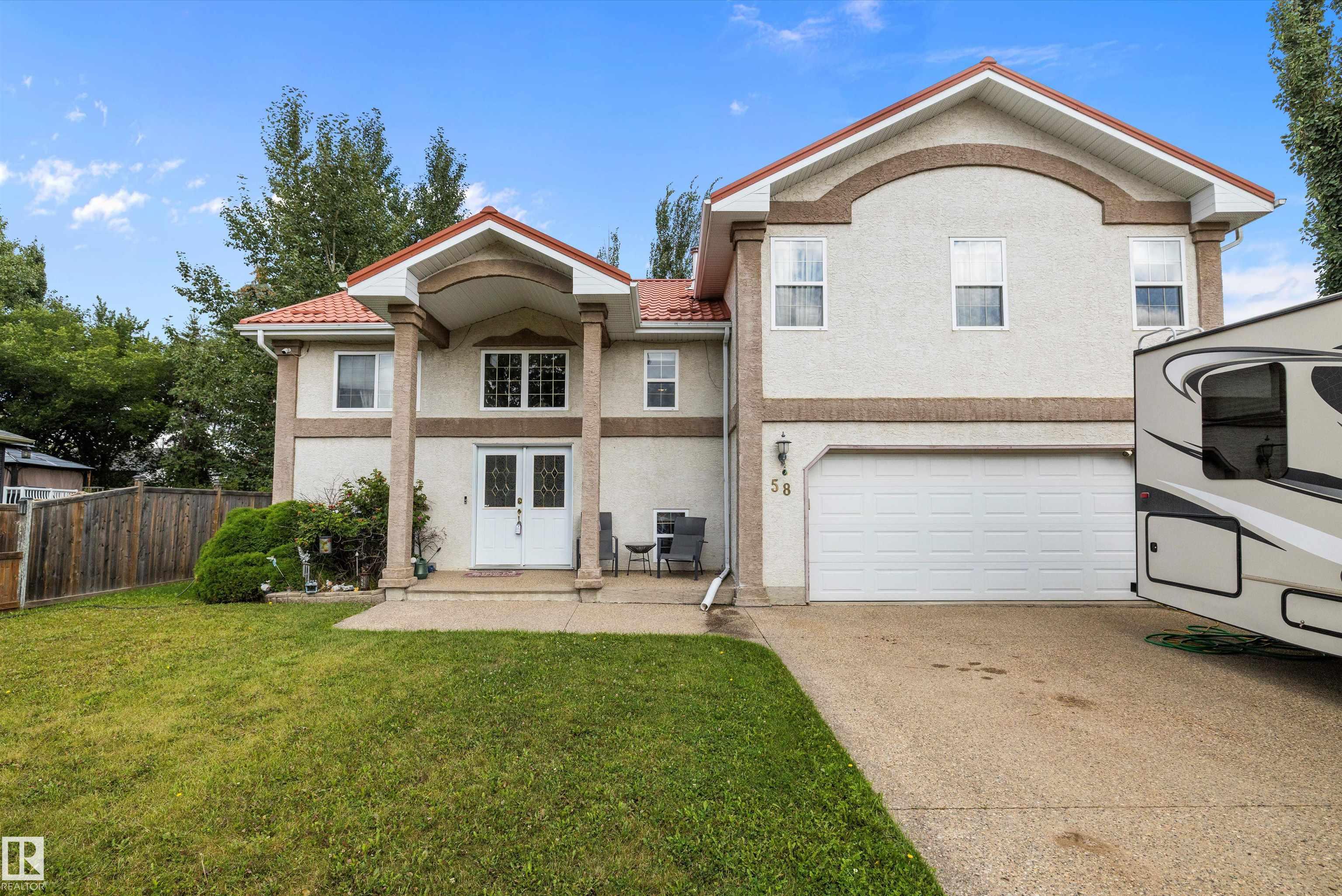 Custom Bi-Level in Desirable Cardiff Echoes! Just 15 minutes north of St. Albert, this beautifully custom-built bi-level is located in the sought-after community of Cardiff Echoes. Situated on a huge fully fenced lot, this home offers space, comfort, & value. The spacious eat-in kitchen features ceramic tile flooring & ample cabinetry for all your storage needs. A few steps up, the bright living room is enhanced w/glass inserts overlooking the kitchen, adding to the home's open-concept feel. With 4 bedrooms total, you?ll find 2 bedrooms on the main level and a private primary suite over the garage, complete w/walk-in closet & a 4-piece ensuite featuring a jet tub. The fully finished basement includes a cozy family room with a corner gas fireplace, 4th bedroom, 3-piece bath, and a spacious entryway leading to the oversized double attached garage. Recent upgrades include a newer metal roof and hot water tank. Located on a picturesque street, home offers small-town charm with easy access to city amenities!