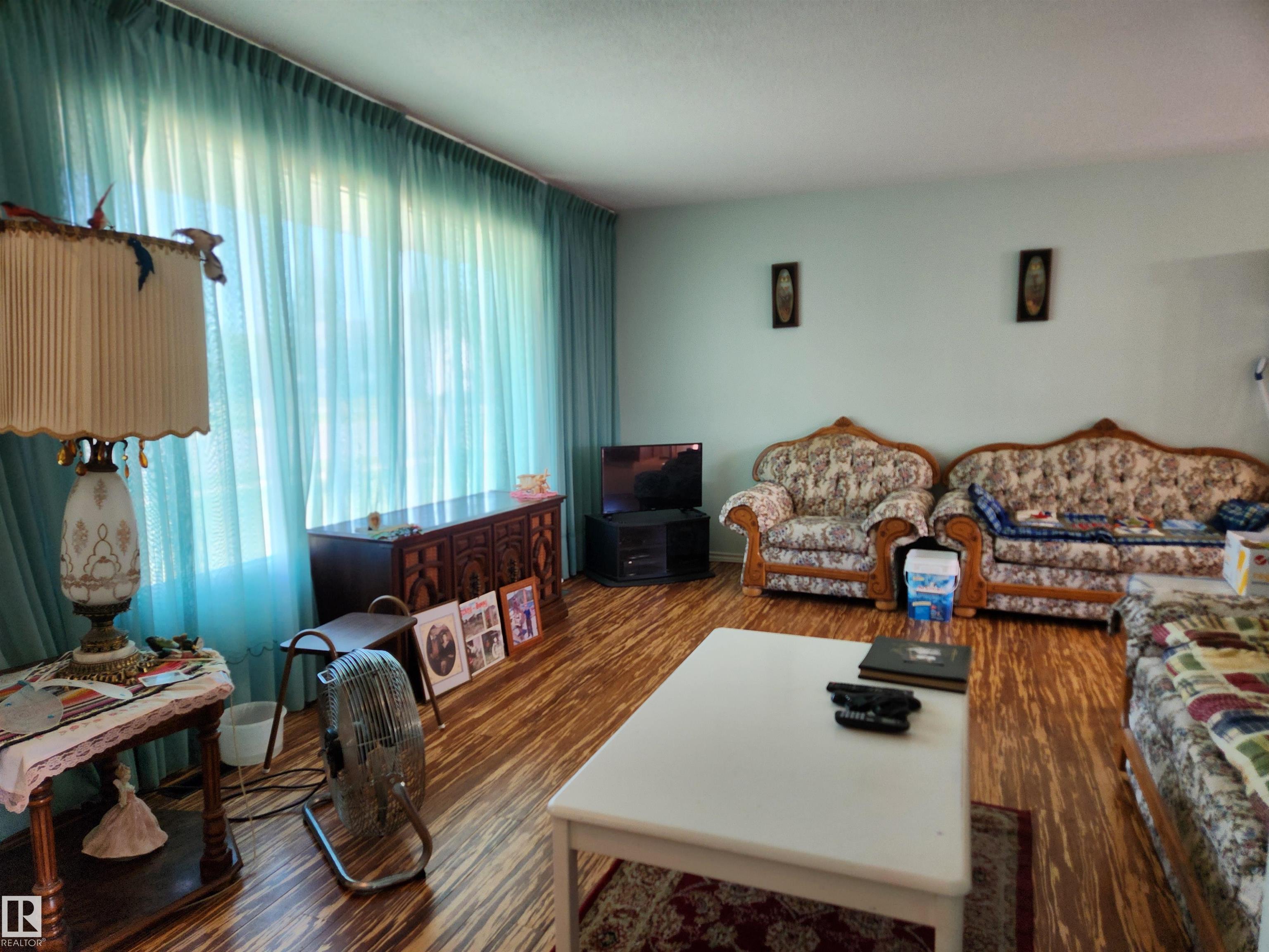 "Well Like Location and More" Convenient location, schools nearby, walking to shopping & other amenities. 1076sqft bungalow featuring 2 bedrooms (3rd on main floor converted to laundry) could again be 3rd bedroom laundry moved back to basement, cozy kitchen with ample kitchen cabinets, 4 pc. bath, mostly completed basement has a large recreation room, one bedroom, 3 piece bath & good storage. Outside you will have a landscaped yard with a large garden space, double detached garage, additional off street front parking & a neighbourhood park right across the street. Most furniture stays with the property.