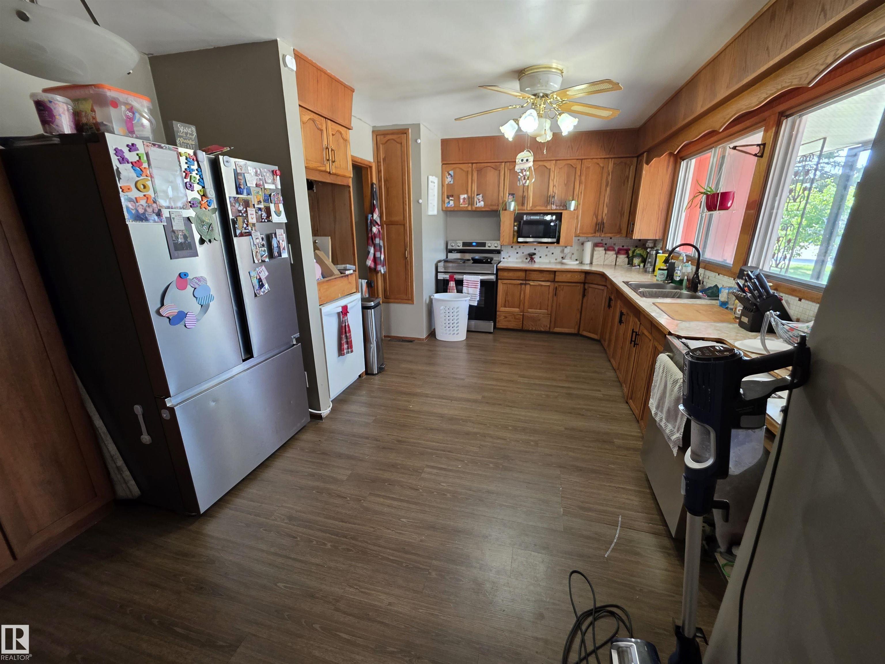 A rare find for families looking for space! This 5-bedroom bungalow offers over 1,450 sq ft on the main floor, making it significantly larger than most homes in the area and a true standout near downtown. The extra-large bedrooms provide plenty of room for kids, guests, or a home office, while the bright and functional layout makes family living easy. Important updates include a brand new furnace, central A/C, newer washer and dryer, plus several upgraded appliances and light fixtures throughout. The main bathroom has also been refreshed with an updated shower. Outdoors, enjoy a covered back patio that?s perfect for gatherings, an oversized attached single garage with extra storage, and an RV pad for your trailer or toys. With its unbeatable combination of size, location, and updates, this property is a rare opportunity for families who don?t want to compromise on space or comfort!