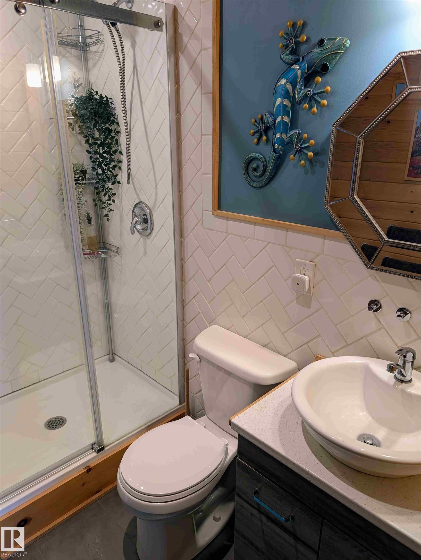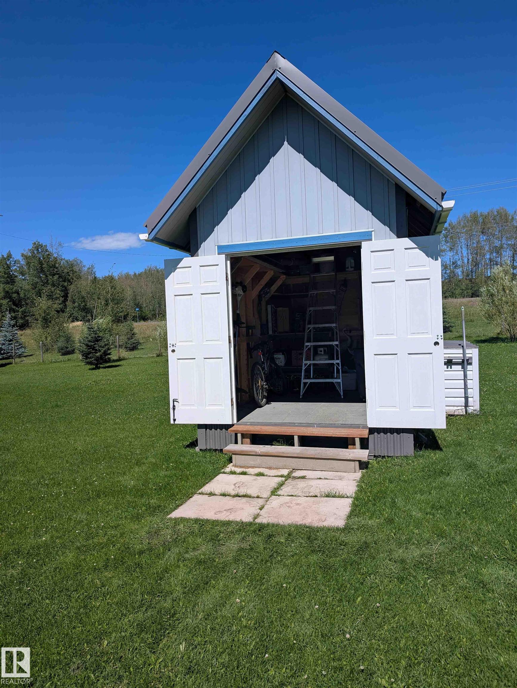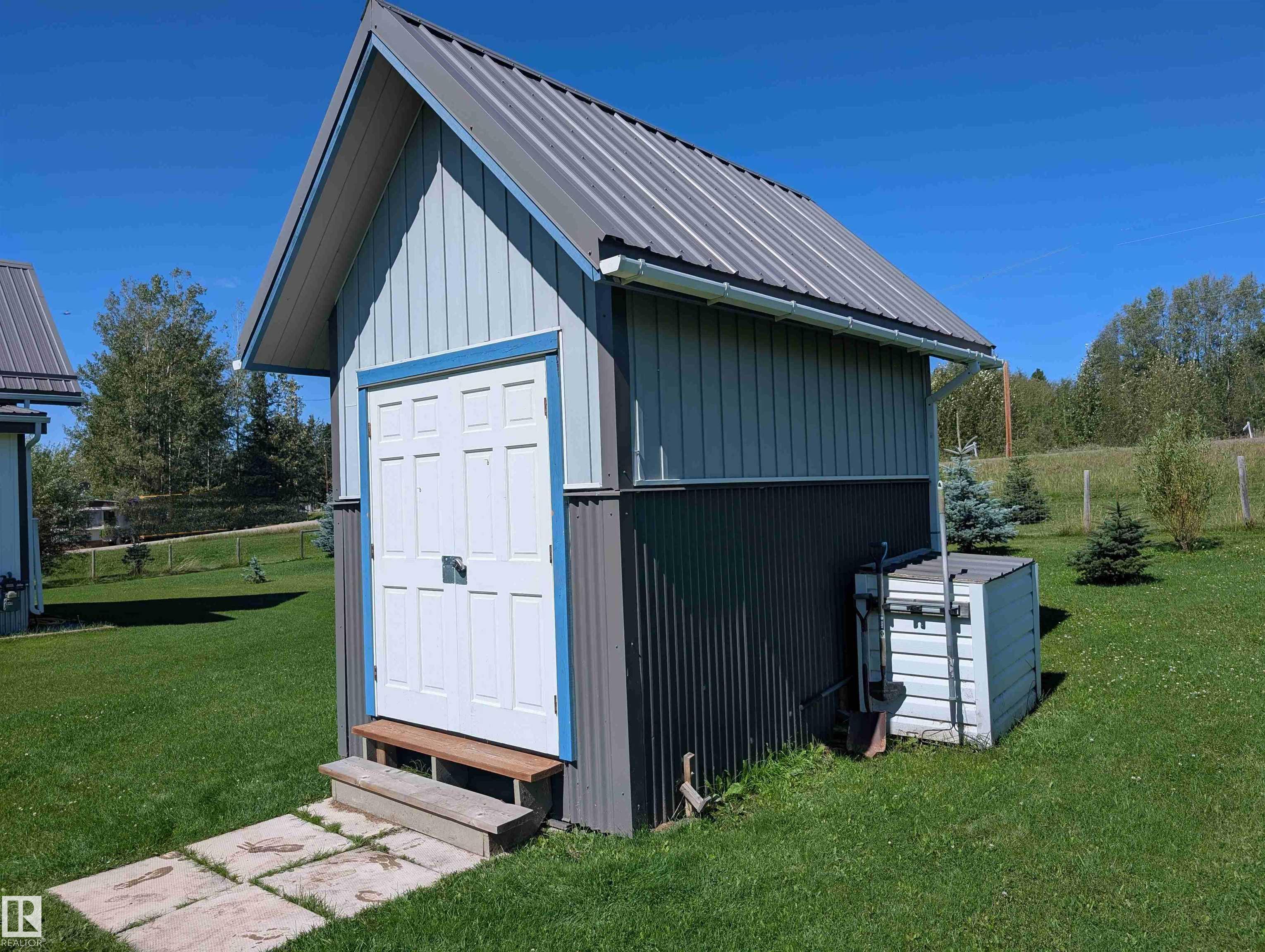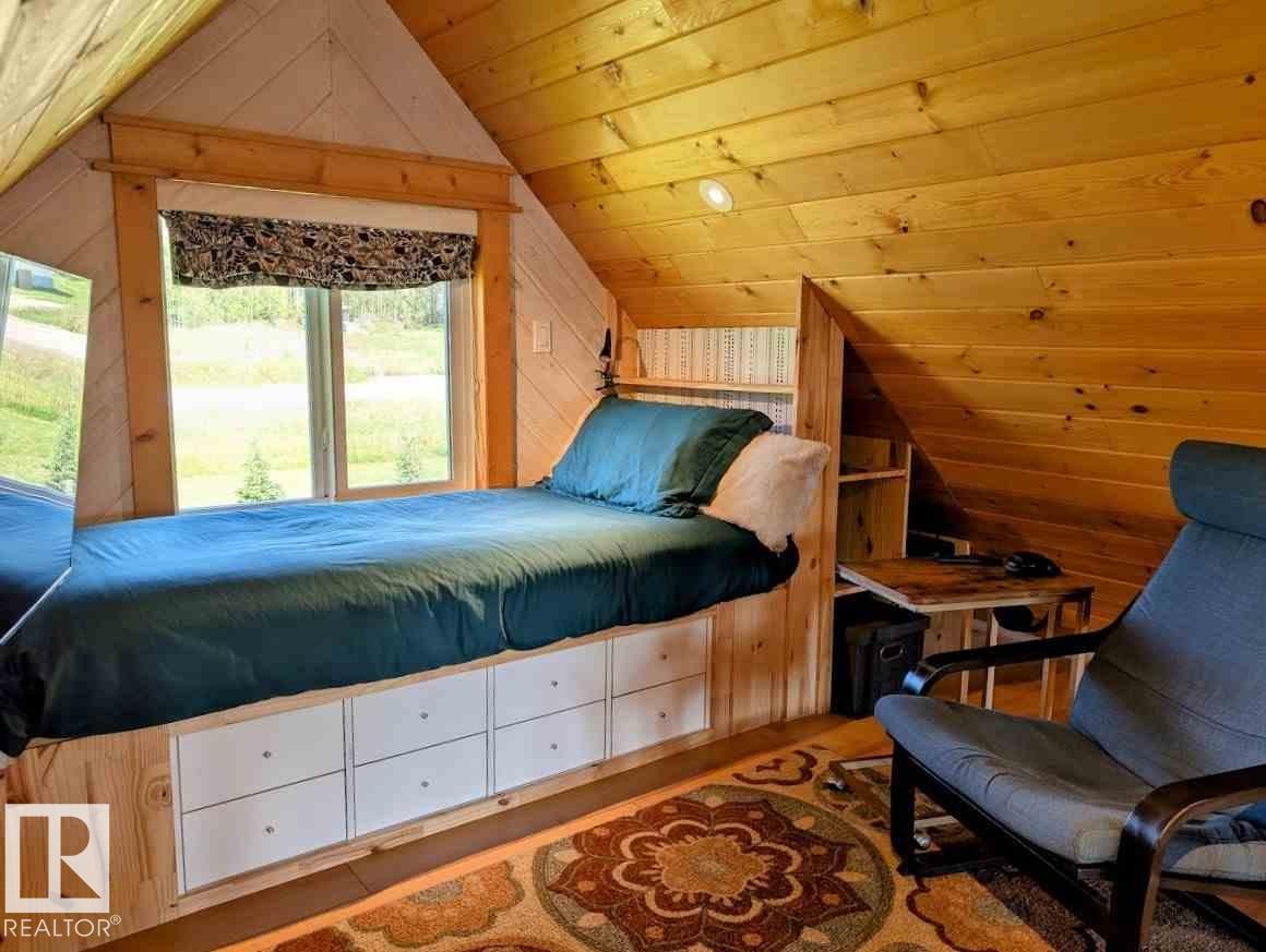 IT DOESN'T GET ANY CUTER THAN THIS! This immaculate property with meticulous attention to detail boasts a Knotty Pine cabin with the primary bedroom, a three piece bath, a cozy living space and a mechanical room with its own separate entrance on the main floor. The loft offers additional living space, perfect for guests or a quiet retreat. The home, built on a sturdy helical pile foundation, boasts high-end features including, in-floor heat, air conditioning, a HRV system, stainless steel appliances, quartz countertops, on demand hot water, and a security system with 4 cameras. Step outside onto the wraparound, maintenance-free, composite deck and enjoy your fully fenced yard-beautifully landscaped with many trees, perennials, raised garden beds, and a water feature. The yard also features a 8' x 12' garden shed and a 16' x 28' garage with 12' wide carport, offering plenty of storage and parking. Located in the charming hamlet of Winfield, this unique property is a must-see to be fully appreciated.