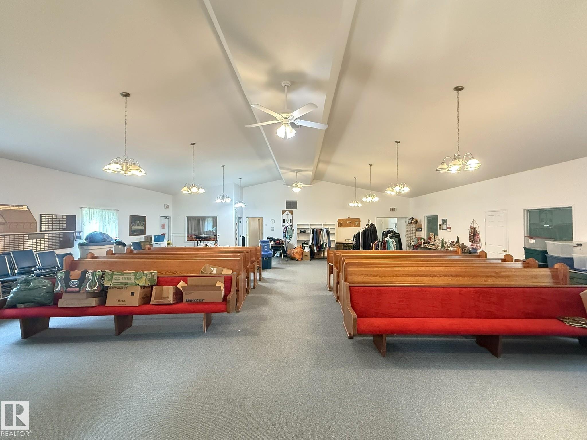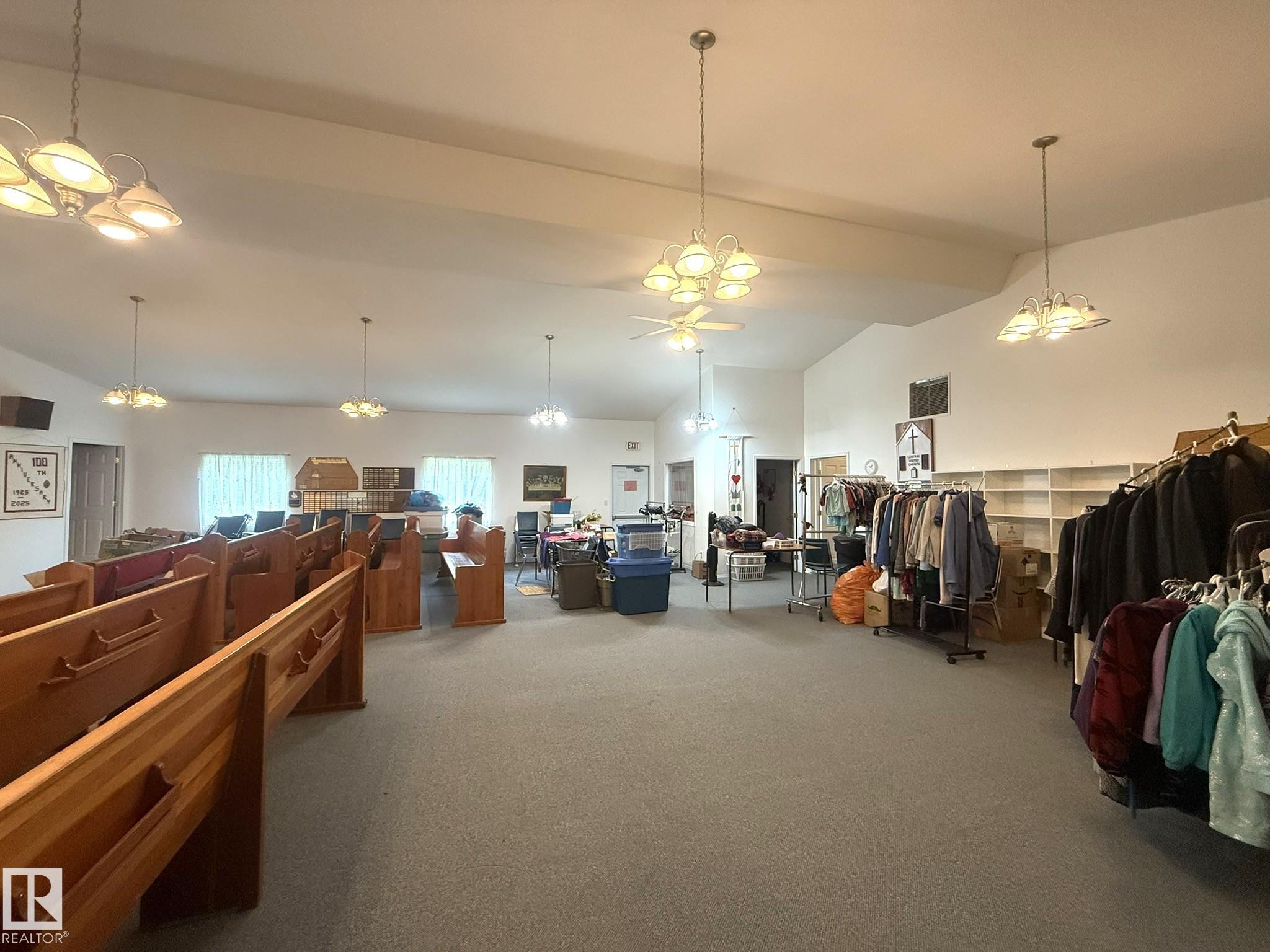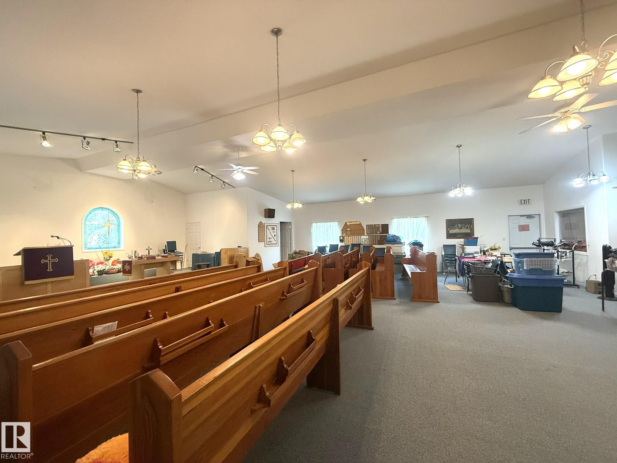 UNIQUE OPPORTUNITY ALERT! Here is your chance to turn a former church into your vision! Over 4000 square foot space with 1.3 acres in town! Built in 2001 with a massive open area and expansive vaulted ceilings, multiple rooms, kitchen, 2 washrooms, large entry. Currently zoned public, the town is open to consider a residential or commercial proposal.