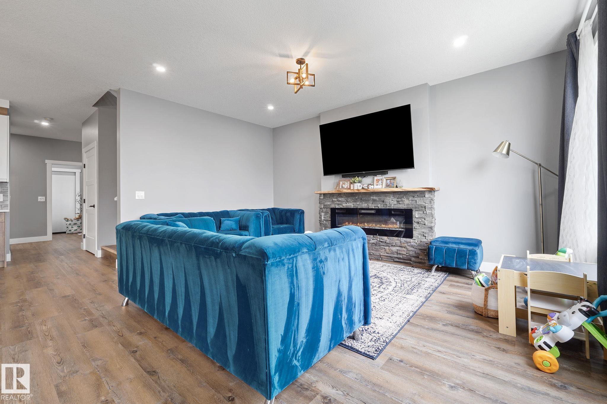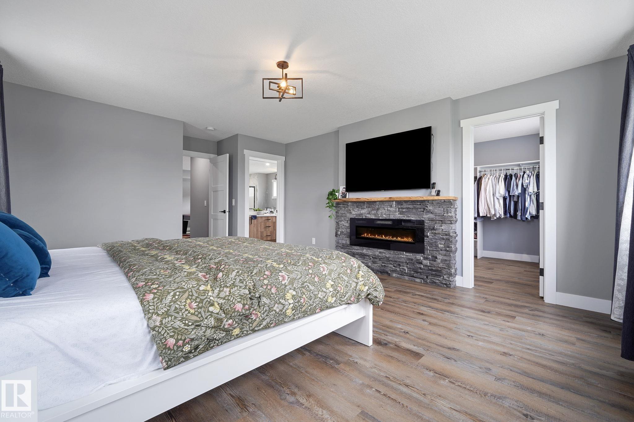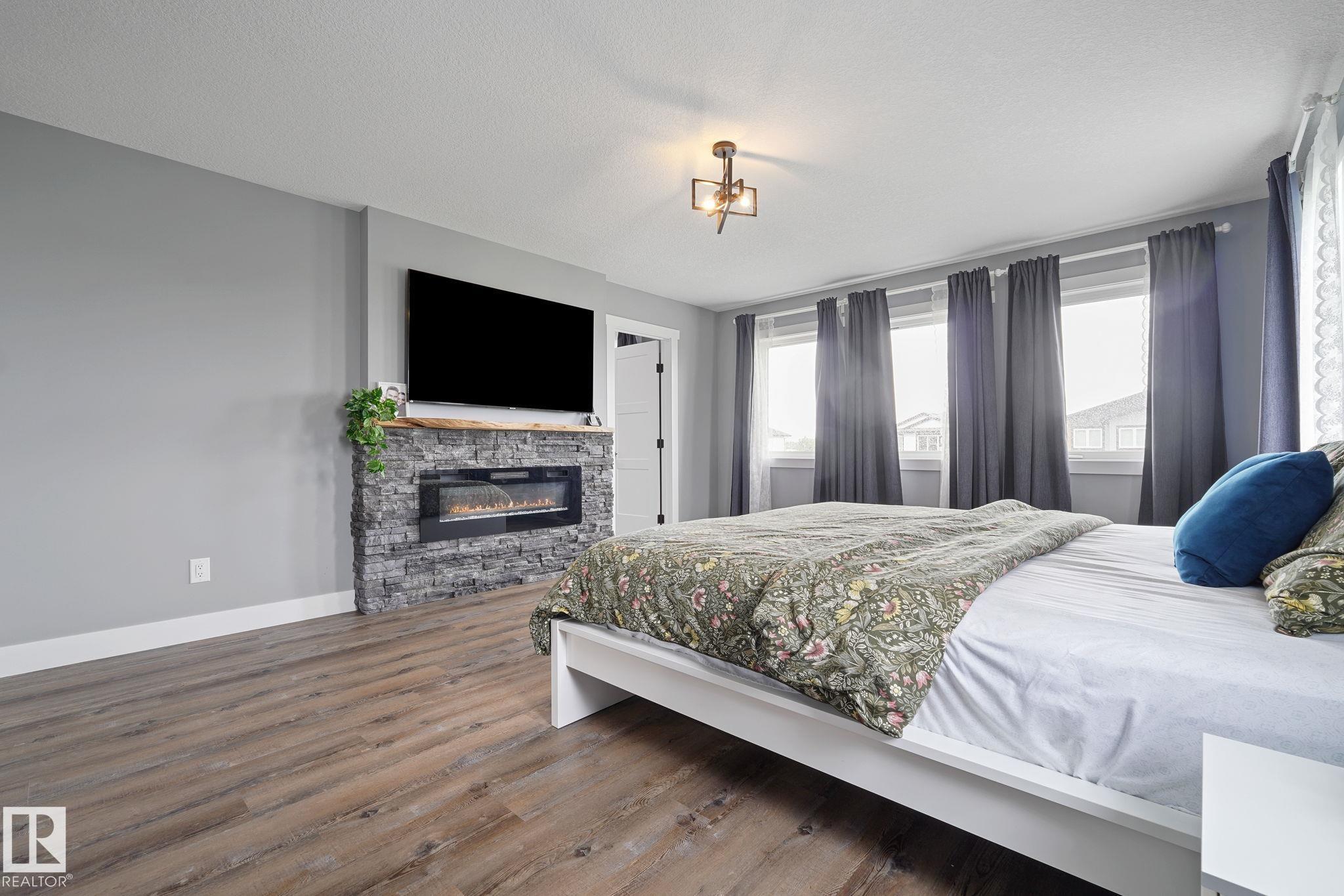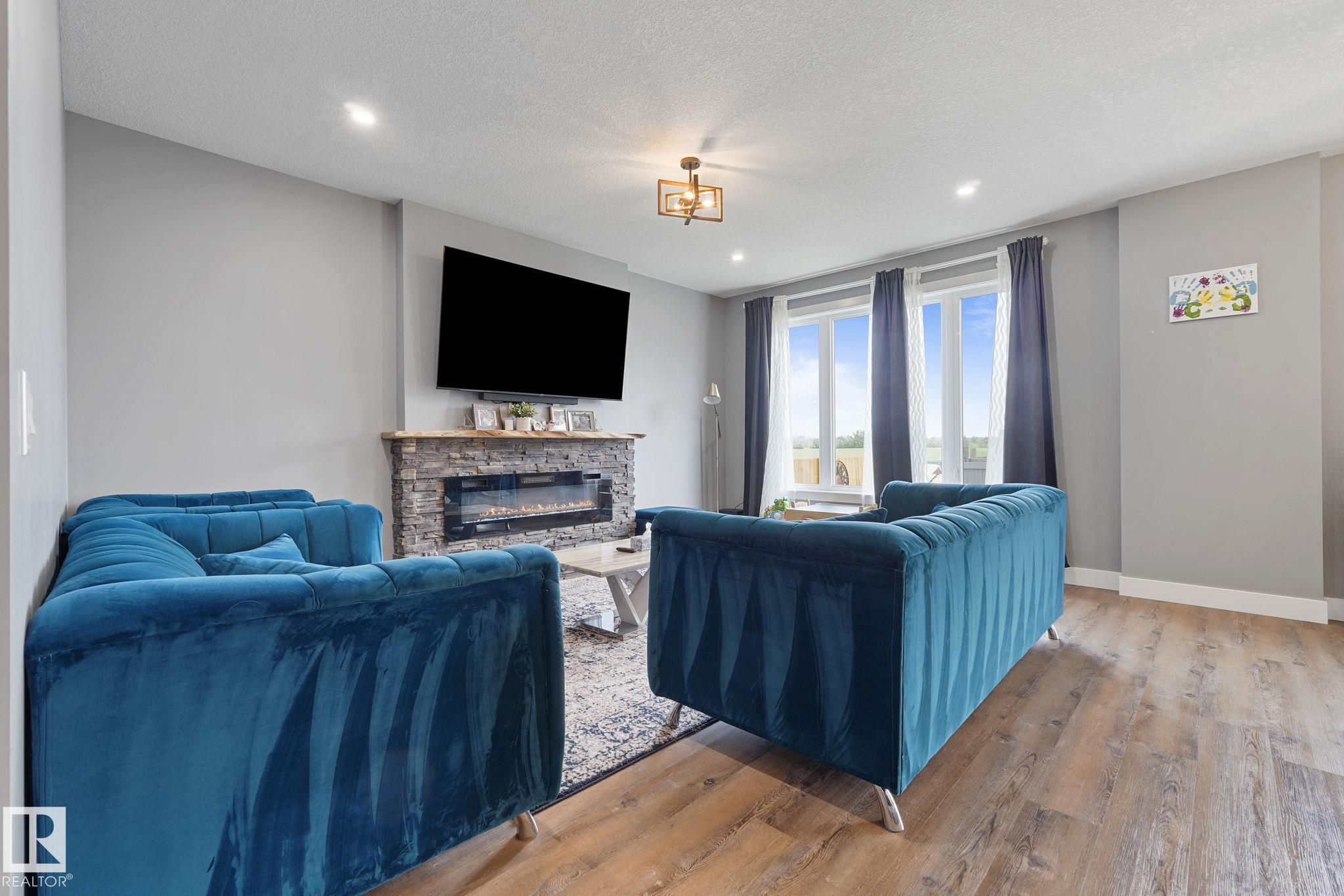 Welcome to this stunning 2,666 sqft no carpet home in Calmar featuring a rare triple car garage and striking design throughout. Perfect for families offering 5 bedrooms and 3 full baths! The main floor offers a spacious bedroom with full bath, open concept living anchored by a stone-layered fireplace, and a chef?s two-tone kitchen complete with pantry. Upstairs showcases a luxurious primary retreat highlighted by a second stone-layered fireplace, spa-inspired ensuite, and a massive walk-in closet designed to impress. Completing the upper level are 3 additional spacious bedrooms and a large bonus room, providing versatility for family living, guests, or office space. A wide 3-foot staircase and seamless laminate flooring flow through the home, elevating both style and function. Designed with today?s modern families in mind, this property blends comfort, elegance, and practicality, offering the perfect balance of space to entertain, relax, and grow for years to come.
