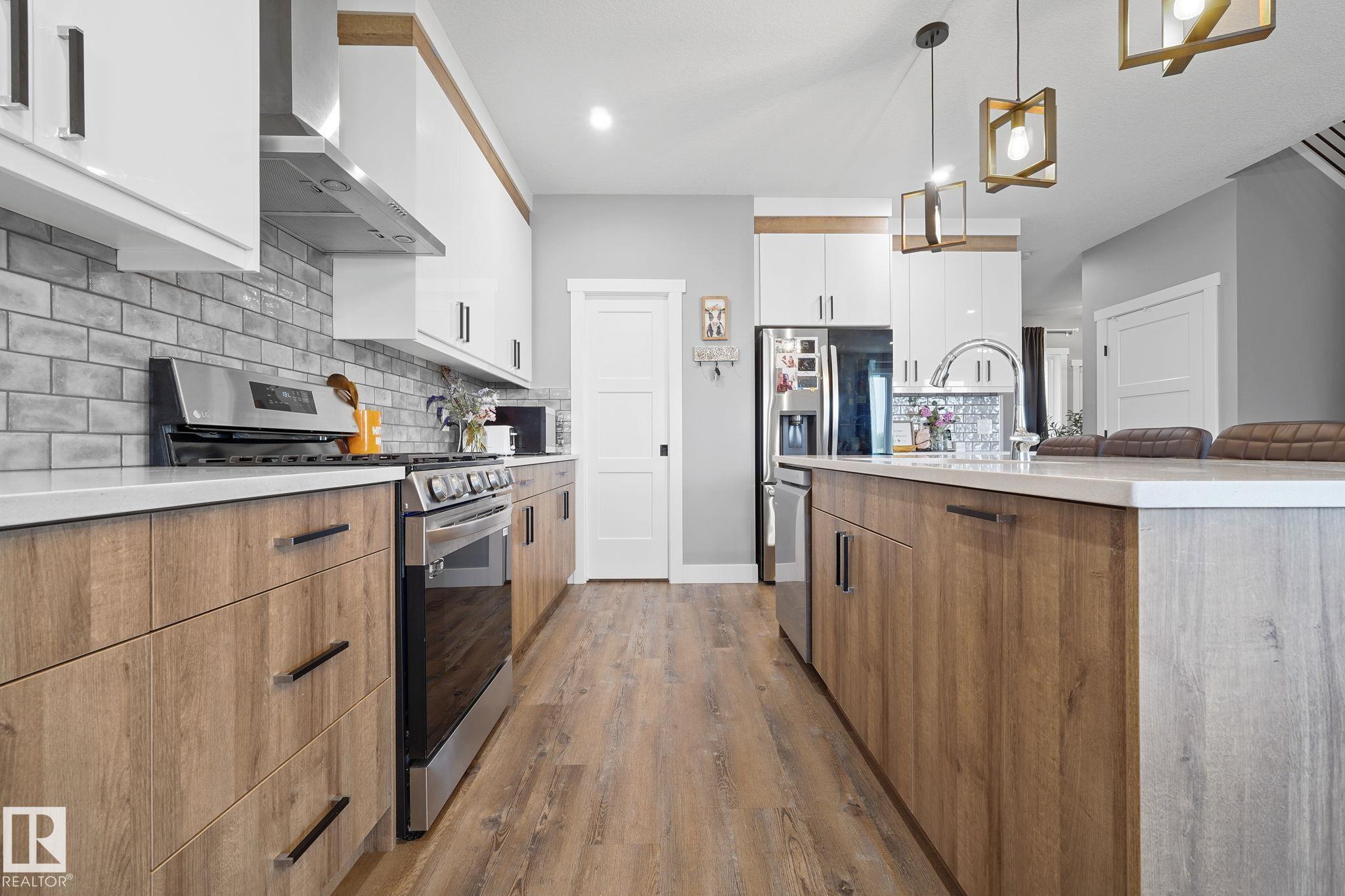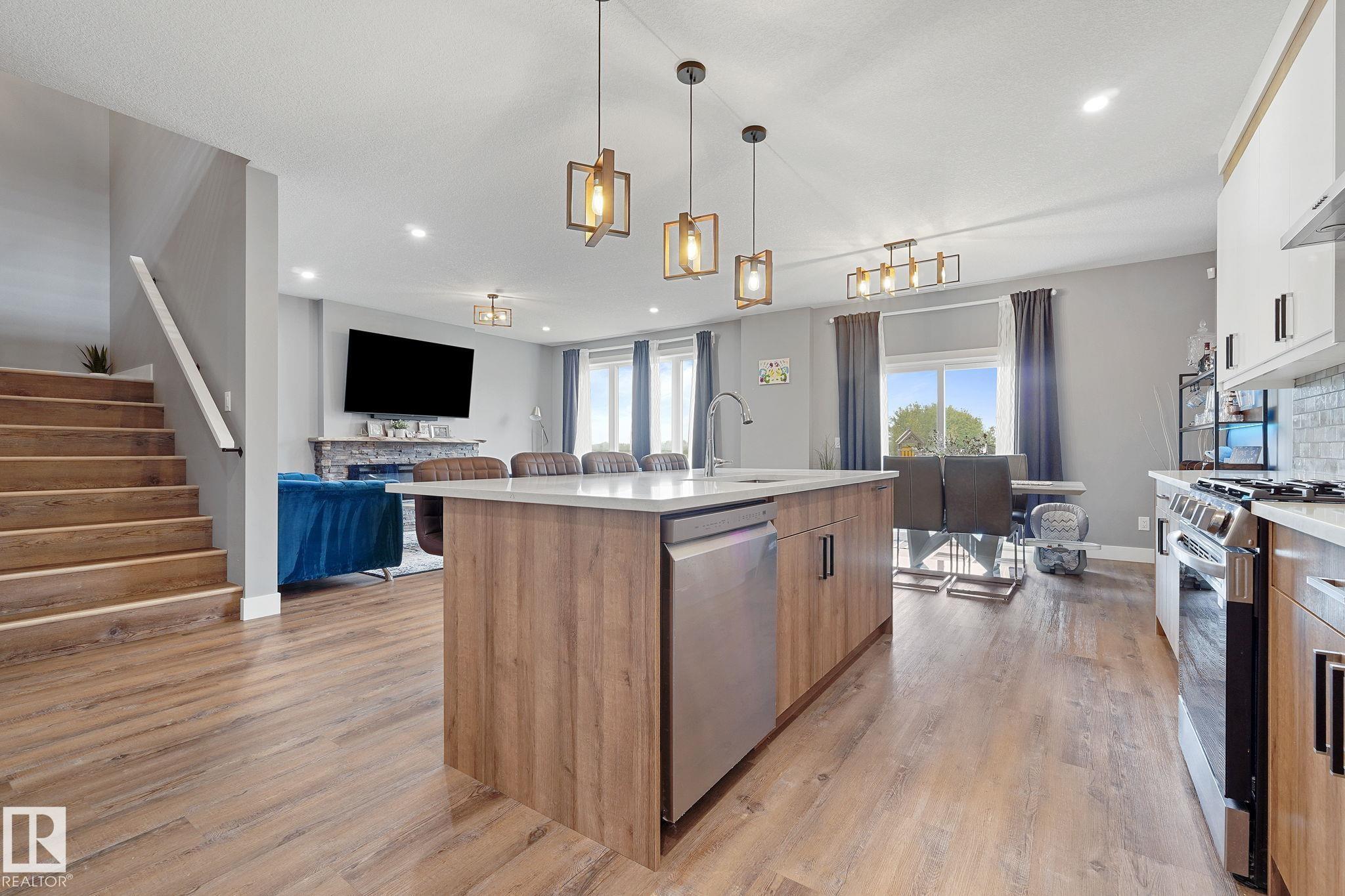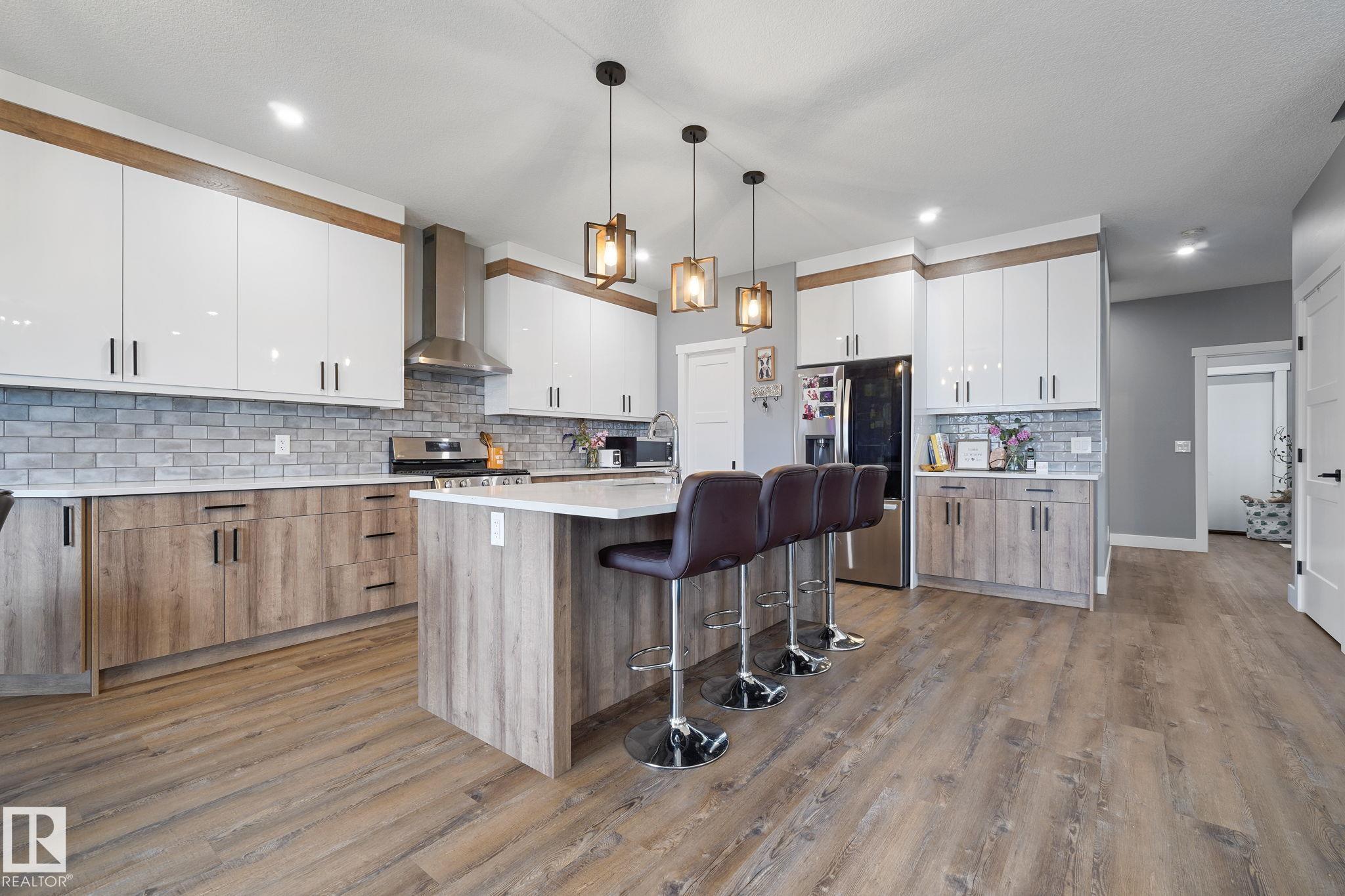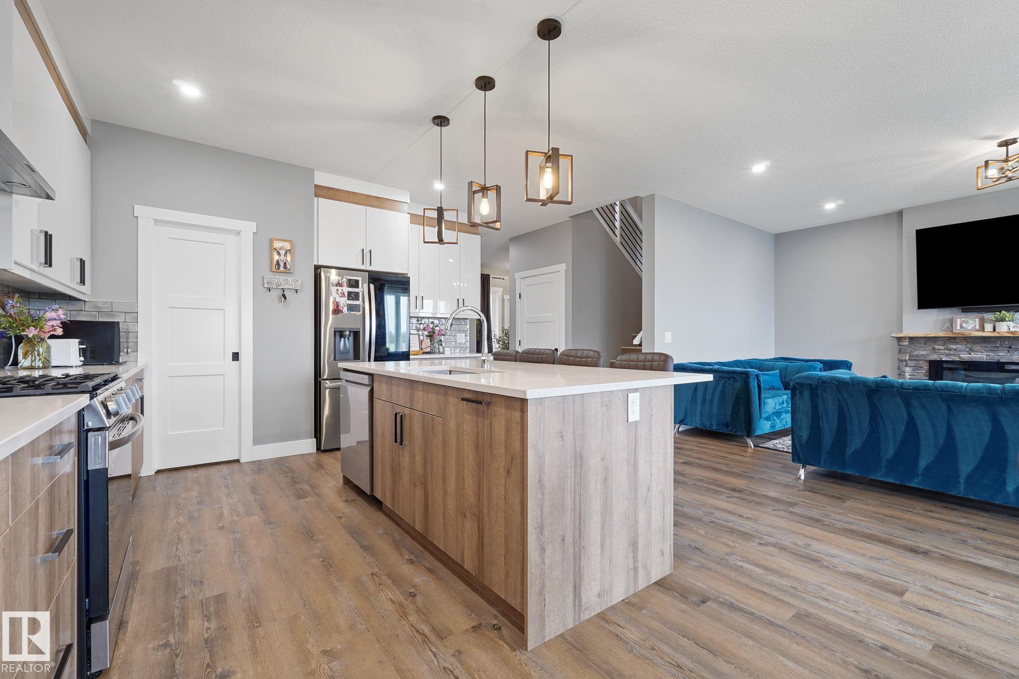 Welcome to this stunning 2,666 sqft no carpet home in Calmar featuring a rare triple car garage and striking design throughout. Perfect for families offering 5 bedrooms and 3 full baths! The main floor offers a spacious bedroom with full bath, open concept living anchored by a stone-layered fireplace, and a chef?s two-tone kitchen complete with pantry. Upstairs showcases a luxurious primary retreat highlighted by a second stone-layered fireplace, spa-inspired ensuite, and a massive walk-in closet designed to impress. Completing the upper level are 3 additional spacious bedrooms and a large bonus room, providing versatility for family living, guests, or office space. A wide 3-foot staircase and seamless laminate flooring flow through the home, elevating both style and function. Designed with today?s modern families in mind, this property blends comfort, elegance, and practicality, offering the perfect balance of space to entertain, relax, and grow for years to come.