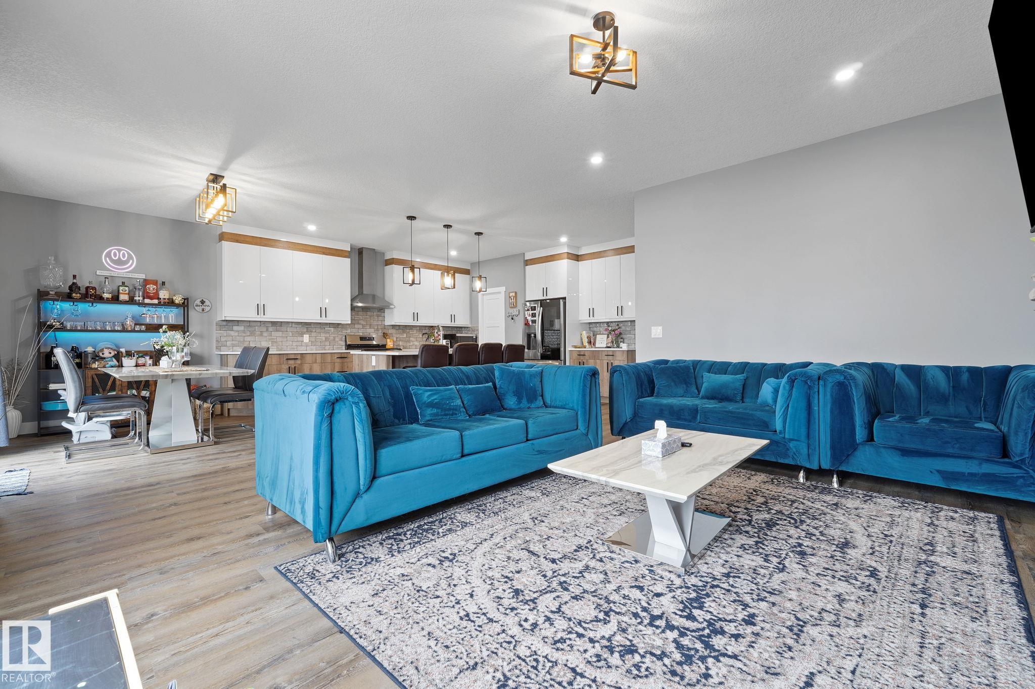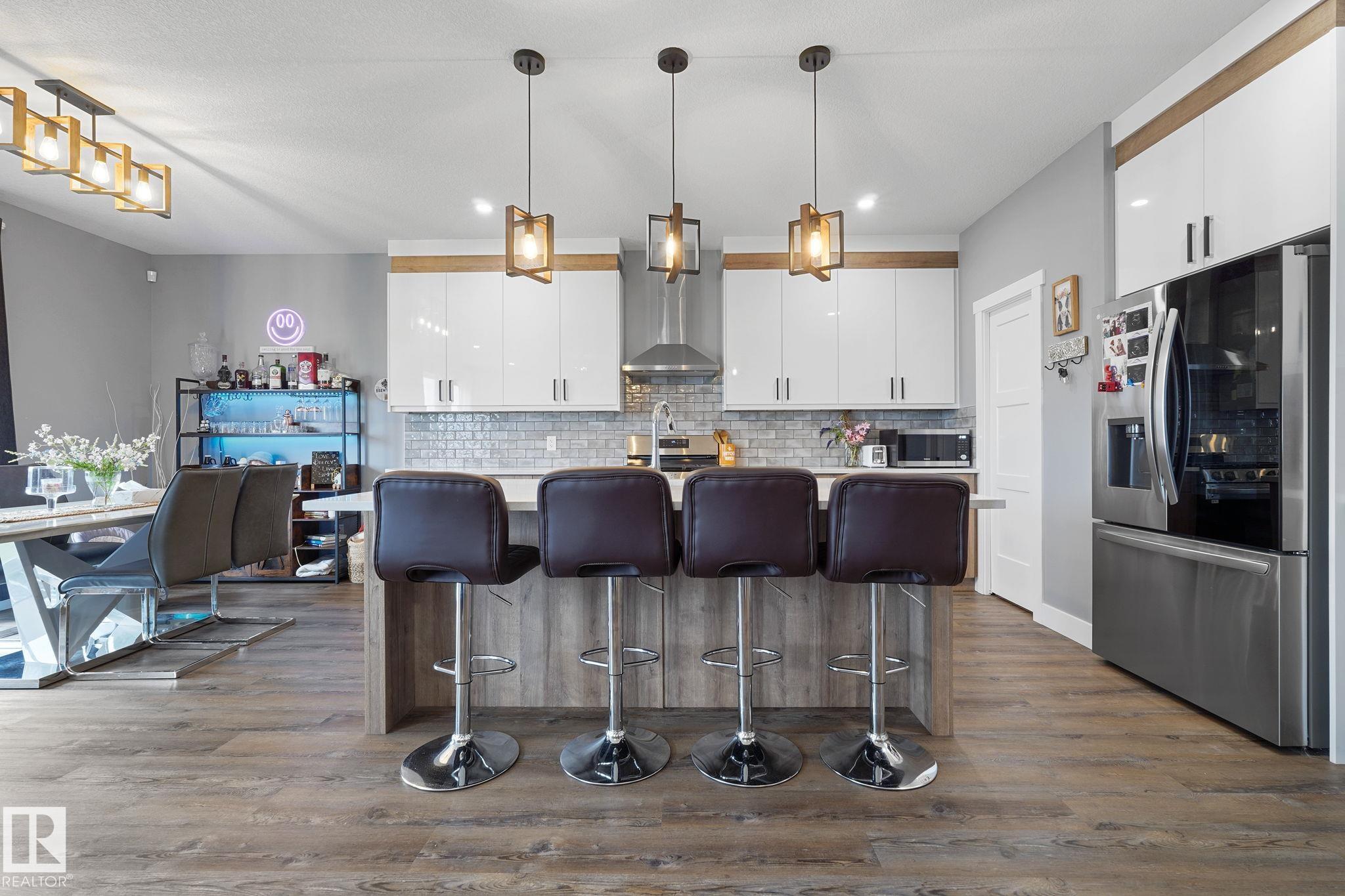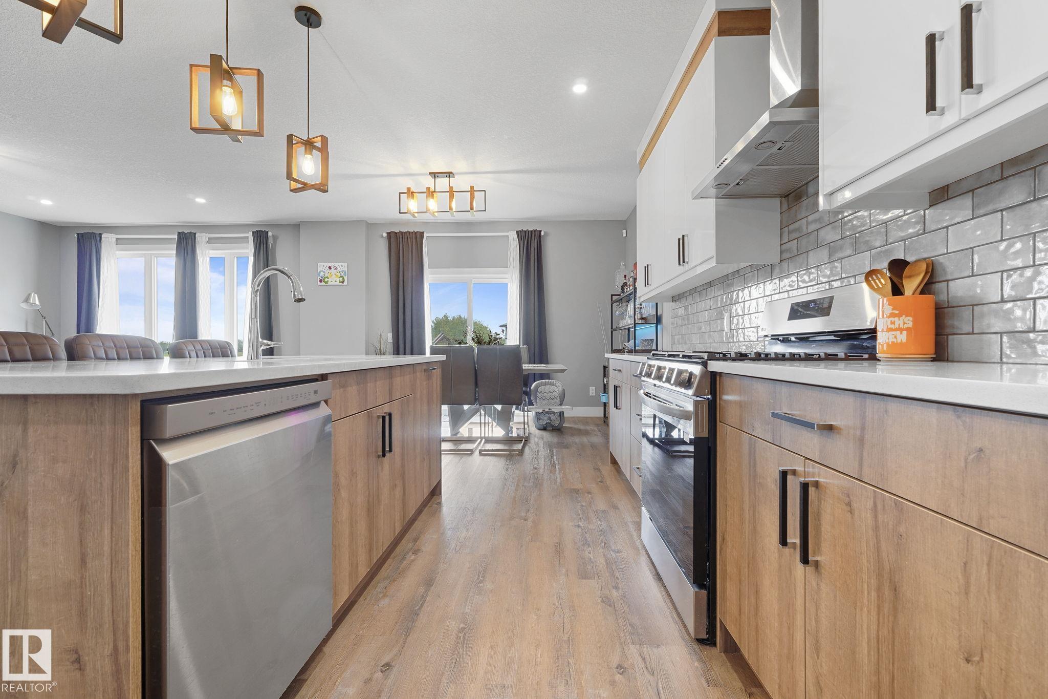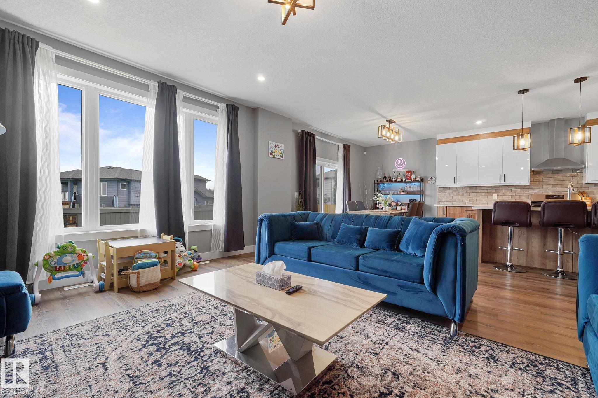 Welcome to this stunning 2,666 sqft no carpet home in Calmar featuring a rare triple car garage and striking design throughout. Perfect for families offering 5 bedrooms and 3 full baths! The main floor offers a spacious bedroom with full bath, open concept living anchored by a stone-layered fireplace, and a chef?s two-tone kitchen complete with pantry. Upstairs showcases a luxurious primary retreat highlighted by a second stone-layered fireplace, spa-inspired ensuite, and a massive walk-in closet designed to impress. Completing the upper level are 3 additional spacious bedrooms and a large bonus room, providing versatility for family living, guests, or office space. A wide 3-foot staircase and seamless laminate flooring flow through the home, elevating both style and function. Designed with today?s modern families in mind, this property blends comfort, elegance, and practicality, offering the perfect balance of space to entertain, relax, and grow for years to come.