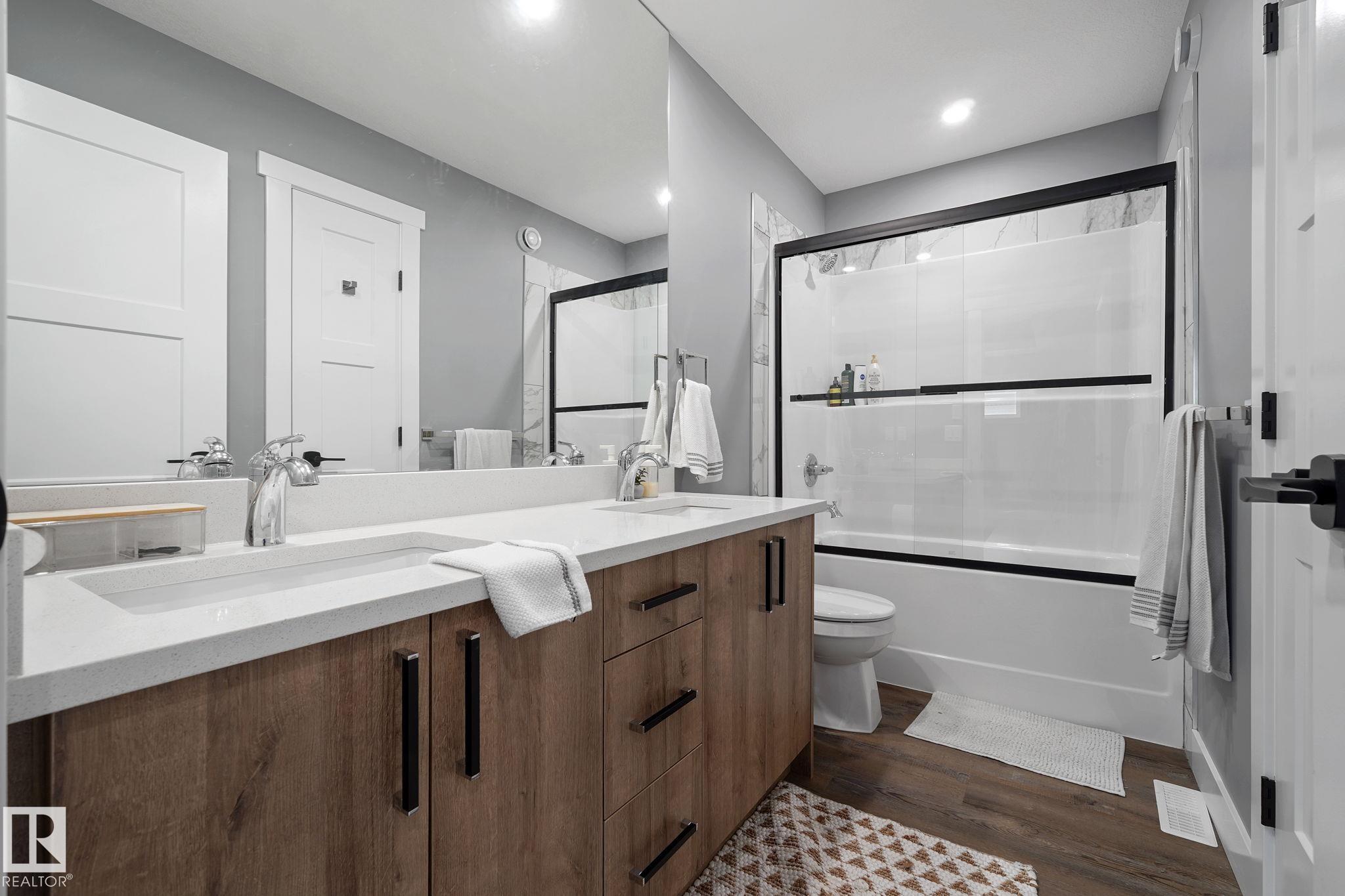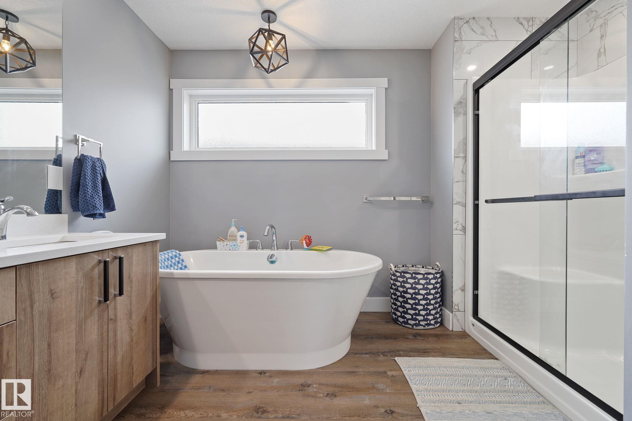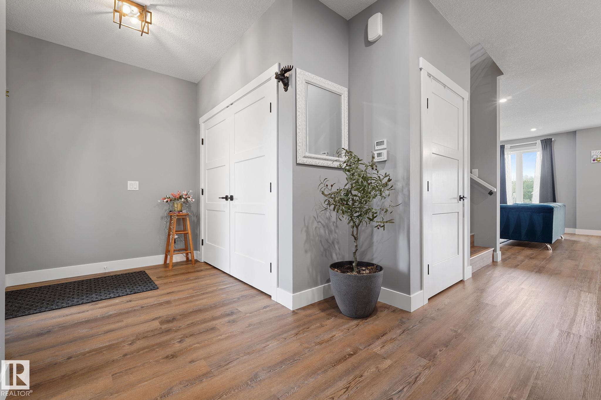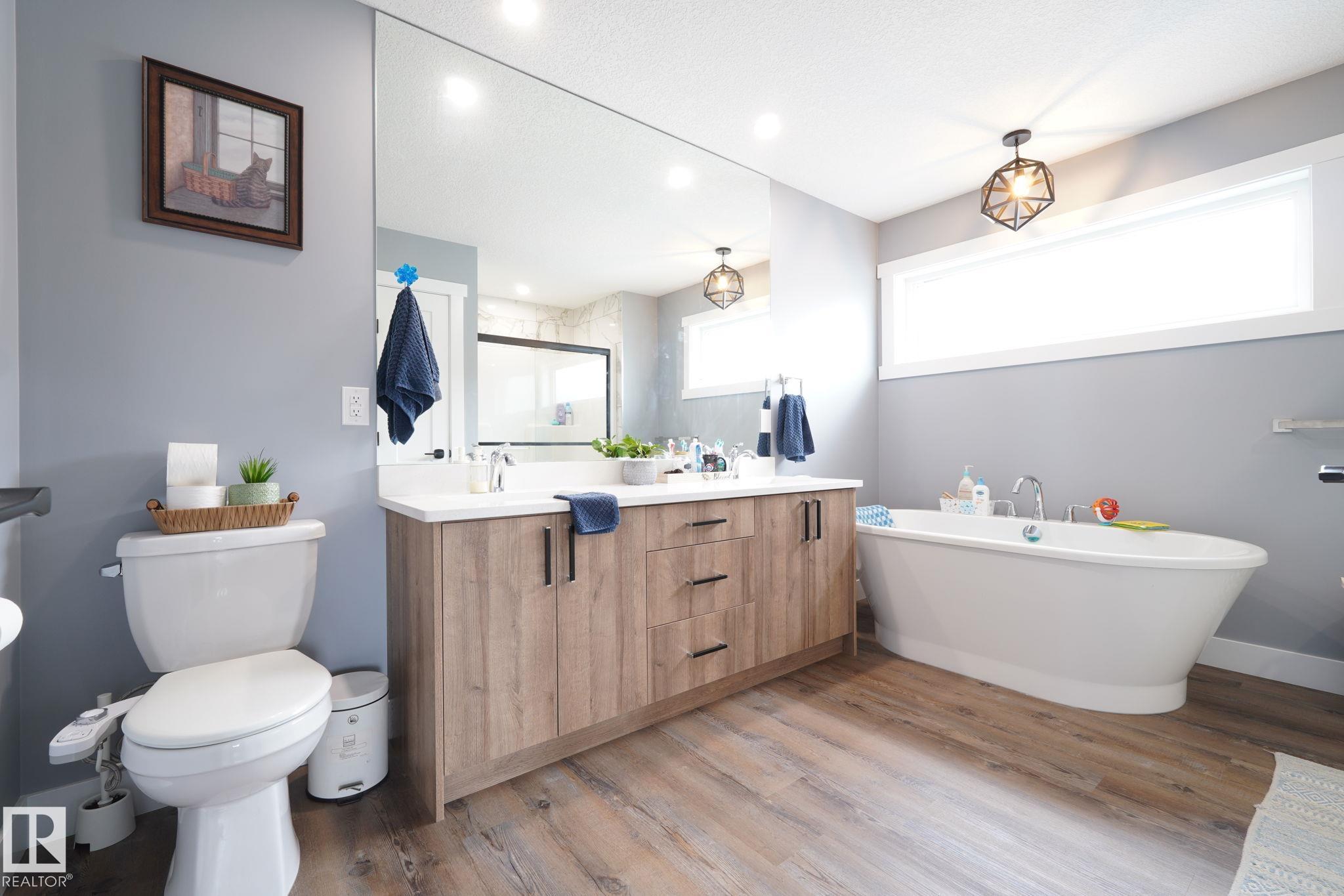 Welcome to this stunning 2,666 sqft no carpet home in Calmar featuring a rare triple car garage and striking design throughout. Perfect for families offering 5 bedrooms and 3 full baths! The main floor offers a spacious bedroom with full bath, open concept living anchored by a stone-layered fireplace, and a chef?s two-tone kitchen complete with pantry. Upstairs showcases a luxurious primary retreat highlighted by a second stone-layered fireplace, spa-inspired ensuite, and a massive walk-in closet designed to impress. Completing the upper level are 3 additional spacious bedrooms and a large bonus room, providing versatility for family living, guests, or office space. A wide 3-foot staircase and seamless laminate flooring flow through the home, elevating both style and function. Designed with today?s modern families in mind, this property blends comfort, elegance, and practicality, offering the perfect balance of space to entertain, relax, and grow for years to come.