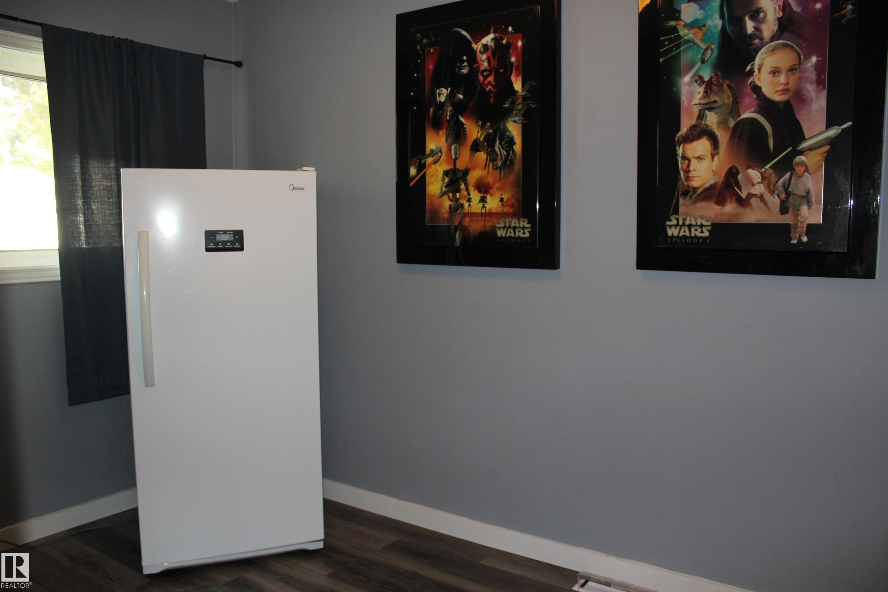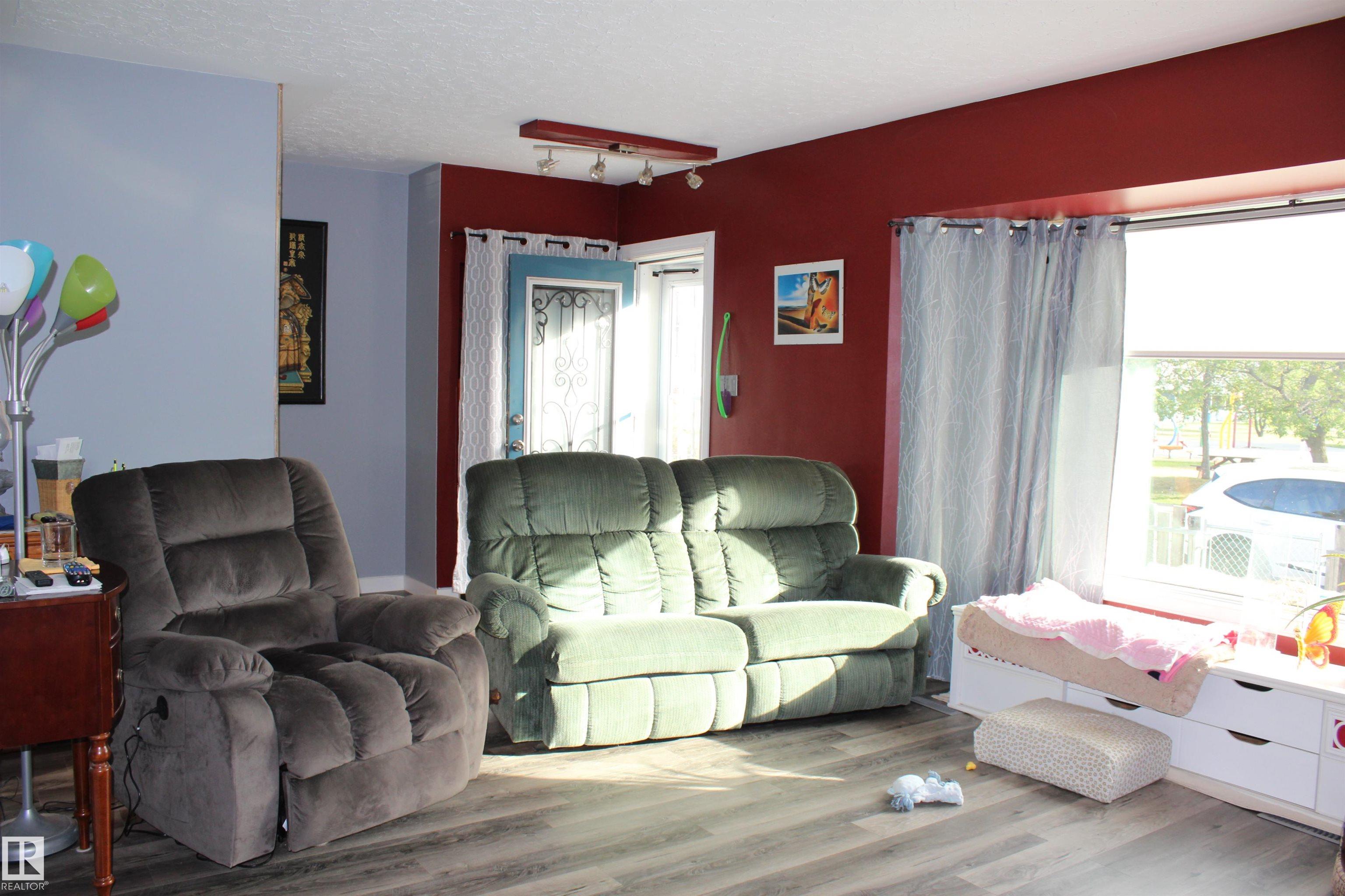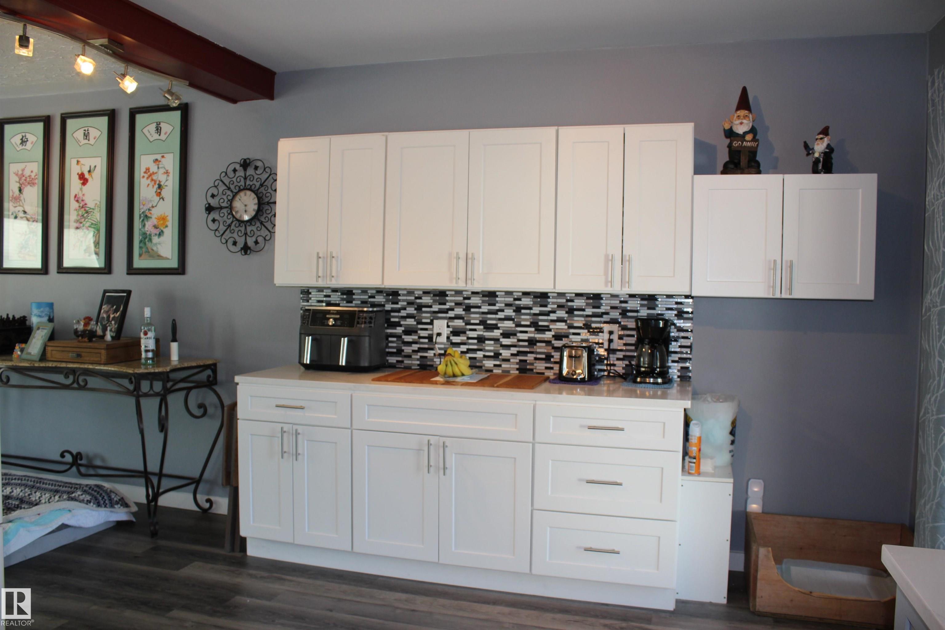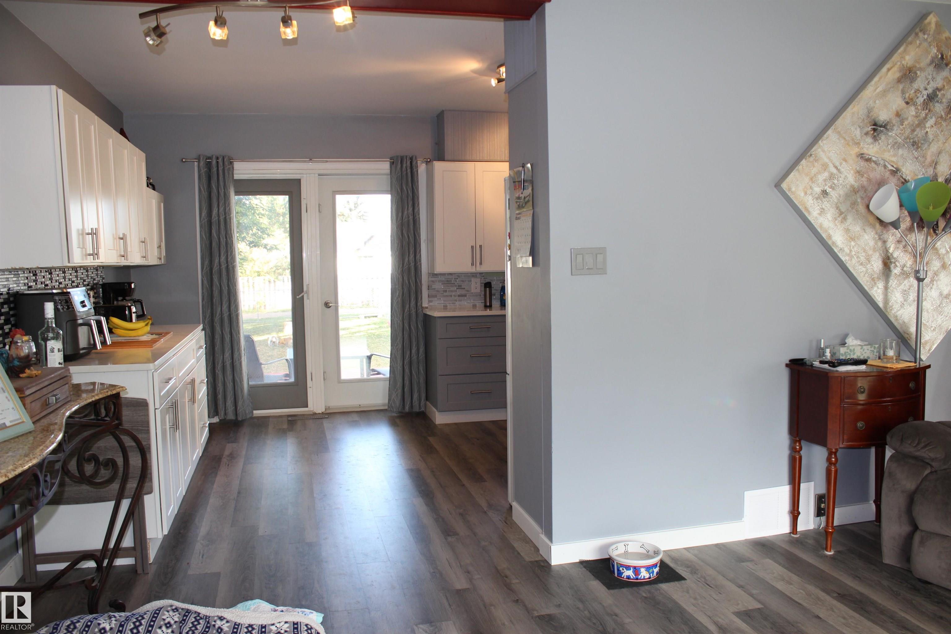 Enjoy life in a small town in this 3 bedroom bungalow home complete with a heated double garage! With a brand new kitchen and updated flooring, this home is so welcoming and ready to move into! With 2 bedrooms on the main floor plus another large bedroom in the basement, there is plenty of room for guests, kids or grandkids! The spacious kithen enjoys and abundance of brand new cabinets and countertops with garden doors leading to the large deck and fenced yard. Fully finished basement with a hobby/sitting area, family room, third bedroom, 2 piece bath and laundry room. You will love the double garage, fully finished and heated with brand new epoxy floors, nice and clean! The yard is fully fenced front and back, great for kids or pets. Across the street from the splash park , skatepark and pickle ball courts, super convenient for the kiddos or grandkids.