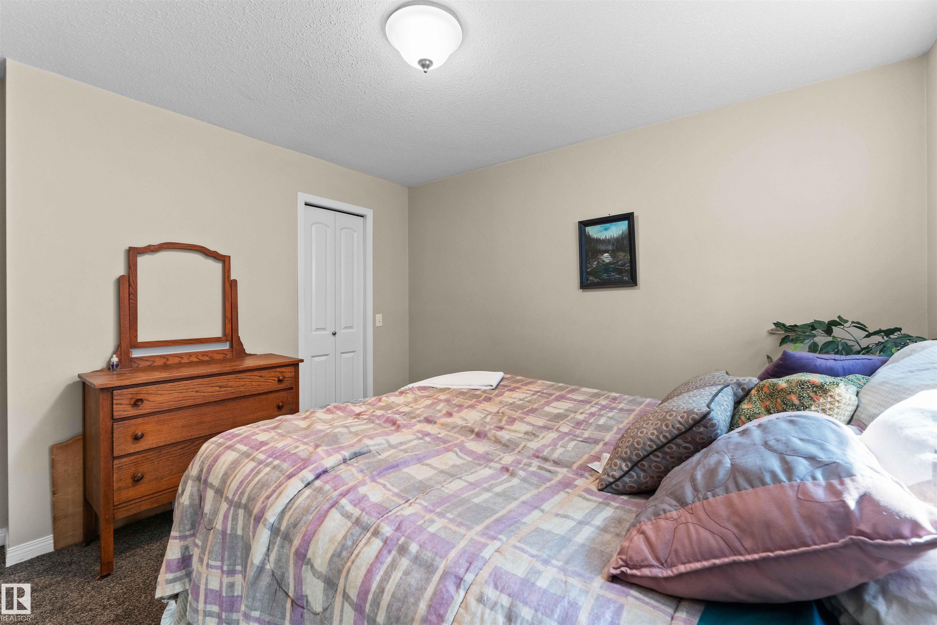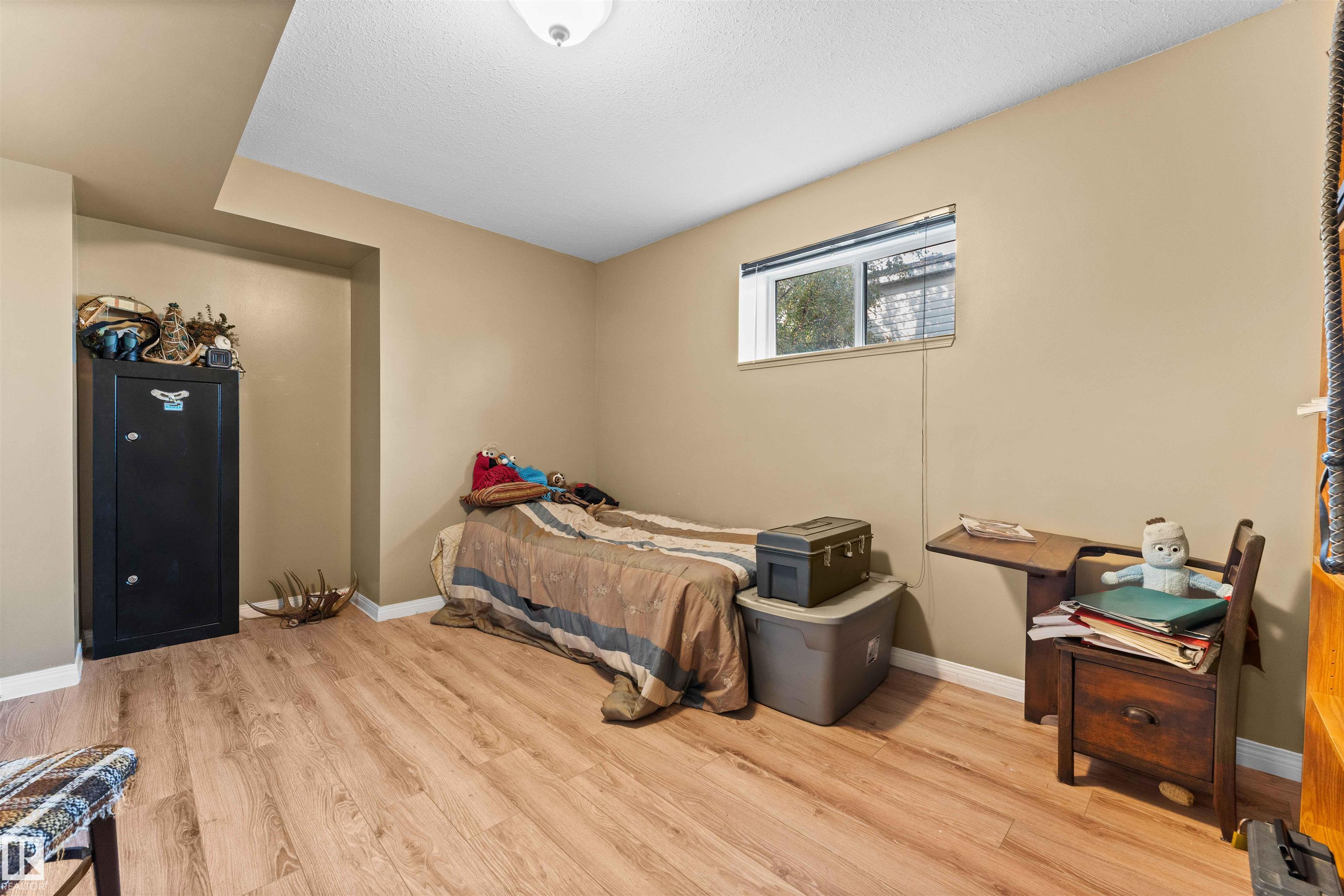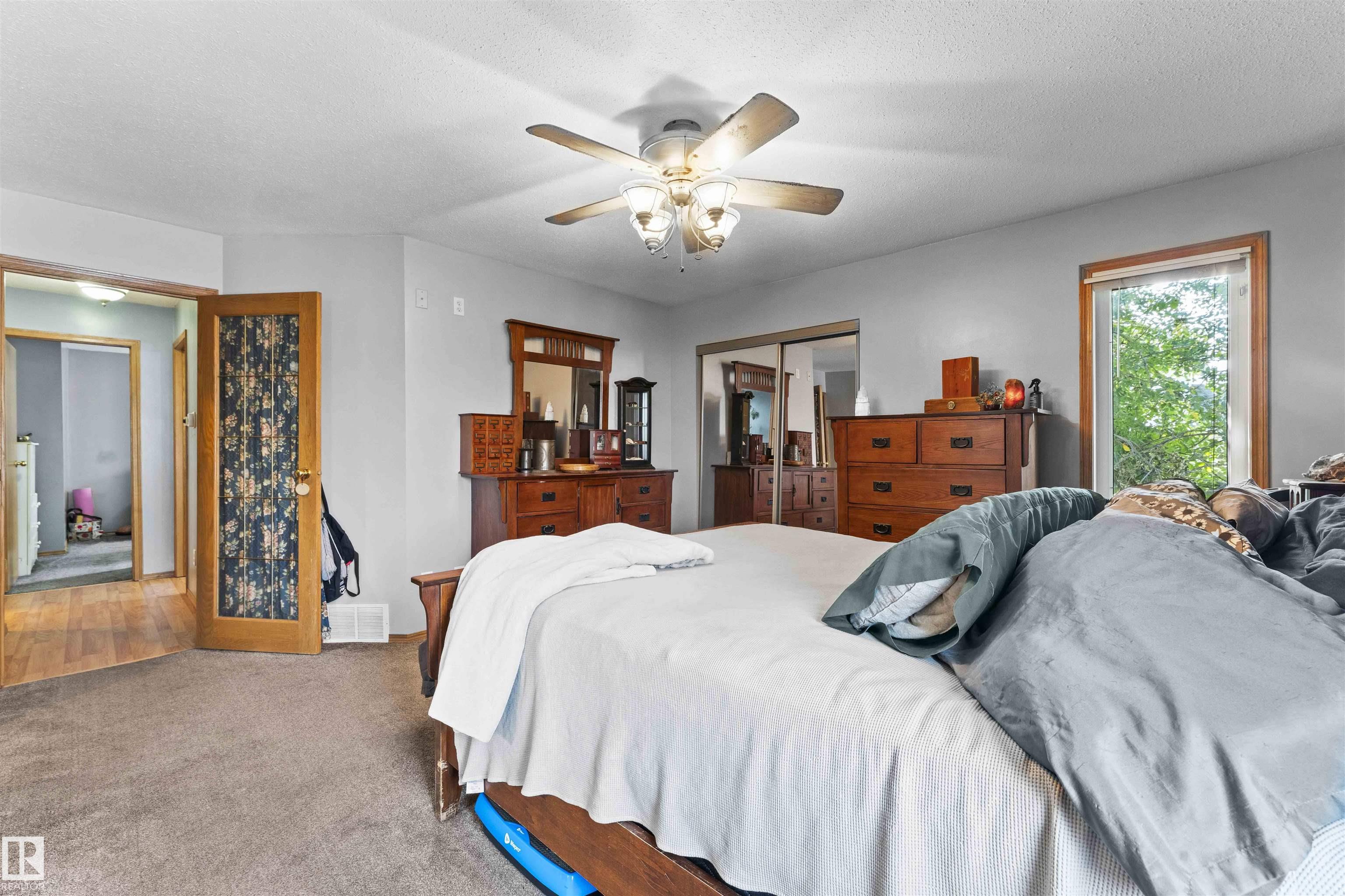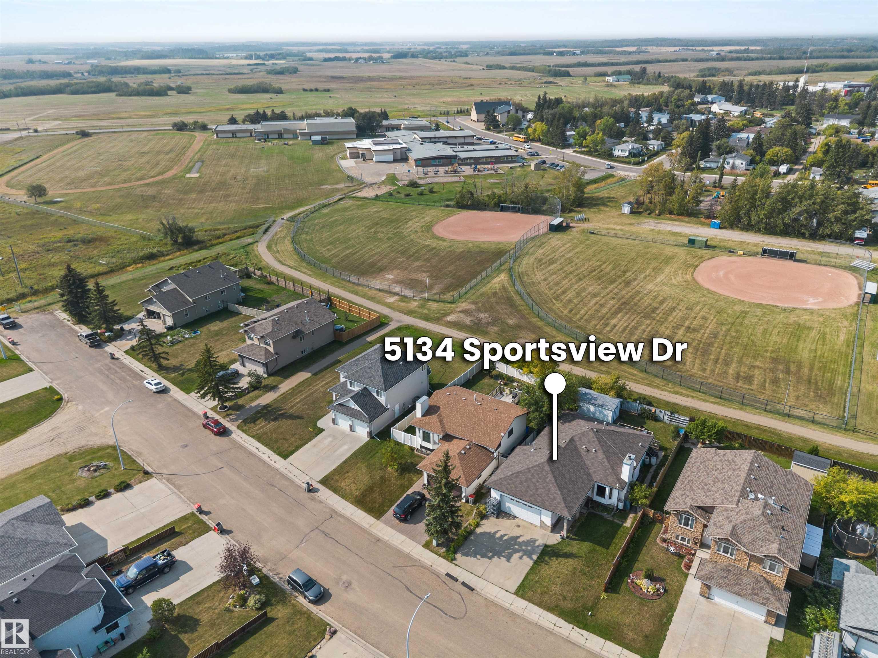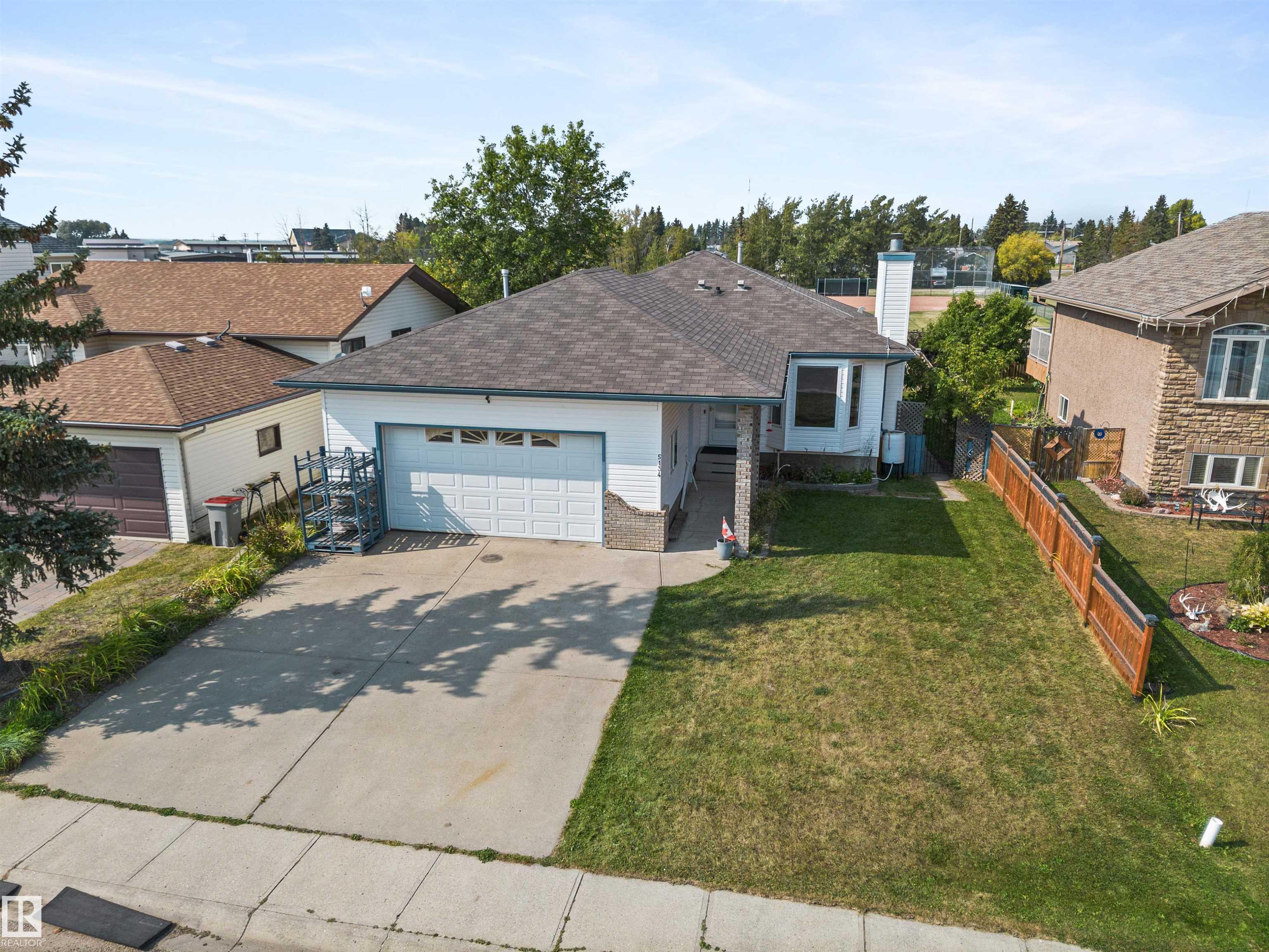 Welcome to this inviting 6-bedroom home in the heart of New Sarepta BACKING A FIELD!. Step inside to find new flooring throughout. The open kitchen offers plenty of cupboard space and storage, making it perfect for family living. The spacious living room features a large bay window and a wood-burning fireplace. The spacious master bedroom offers two closets and a private ensuite with a RELAXING JACUZZI TUB. Downstairs, the fully finished basement includes a huge family room with a WET BAR, plus three more bedrooms (one could be used as an office). Major updates include a new furnace (2023), hot water tank (2024), newer exterior doors, carpet (2025) and a roof replaced in 2000. Enjoy the charm of SMALL-TOWN LIVING with a great school, arena, trails, and local EMS/fire services just minutes away. This is a well-cared-for home with room to grow?don?t miss your chance to make it yours!
