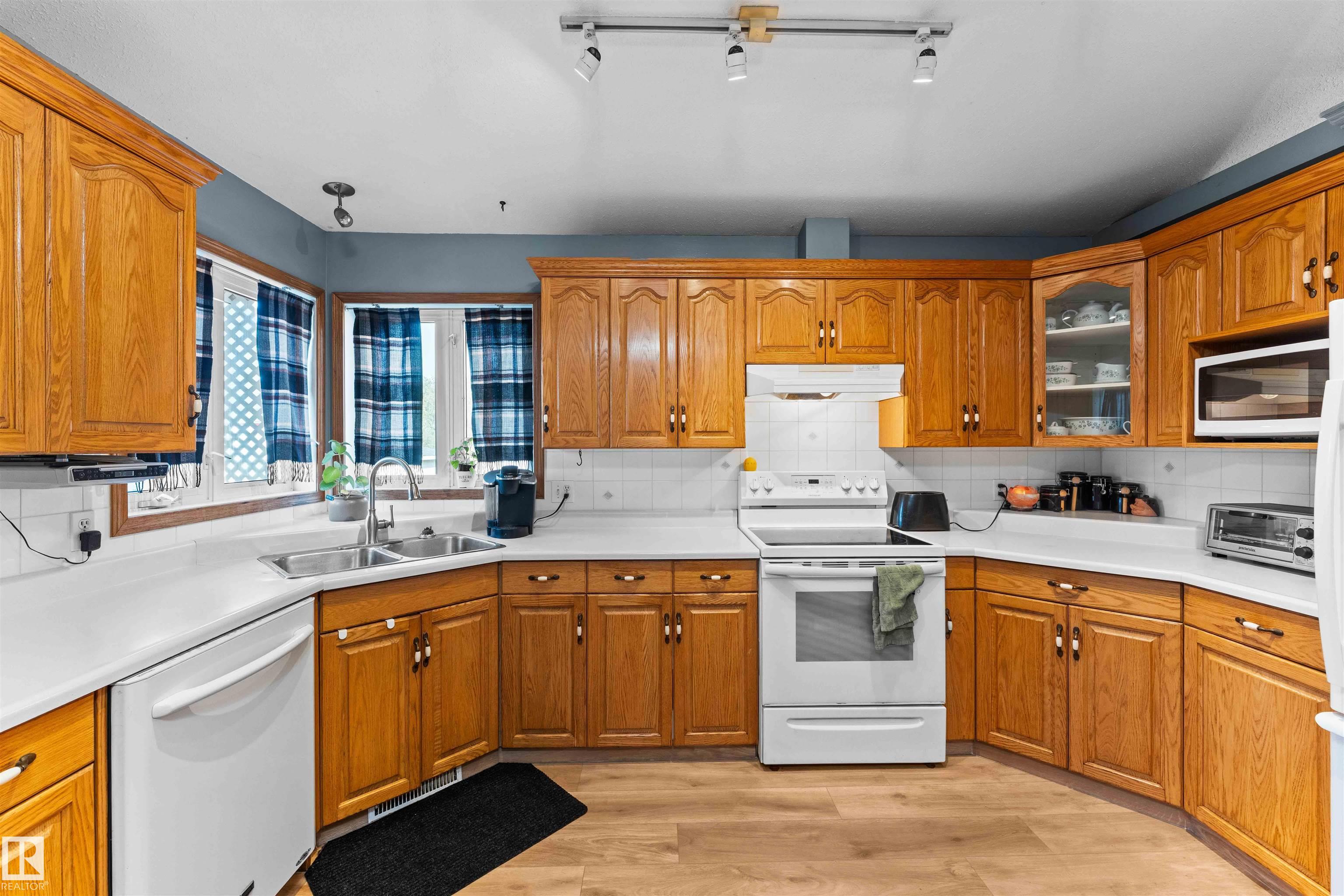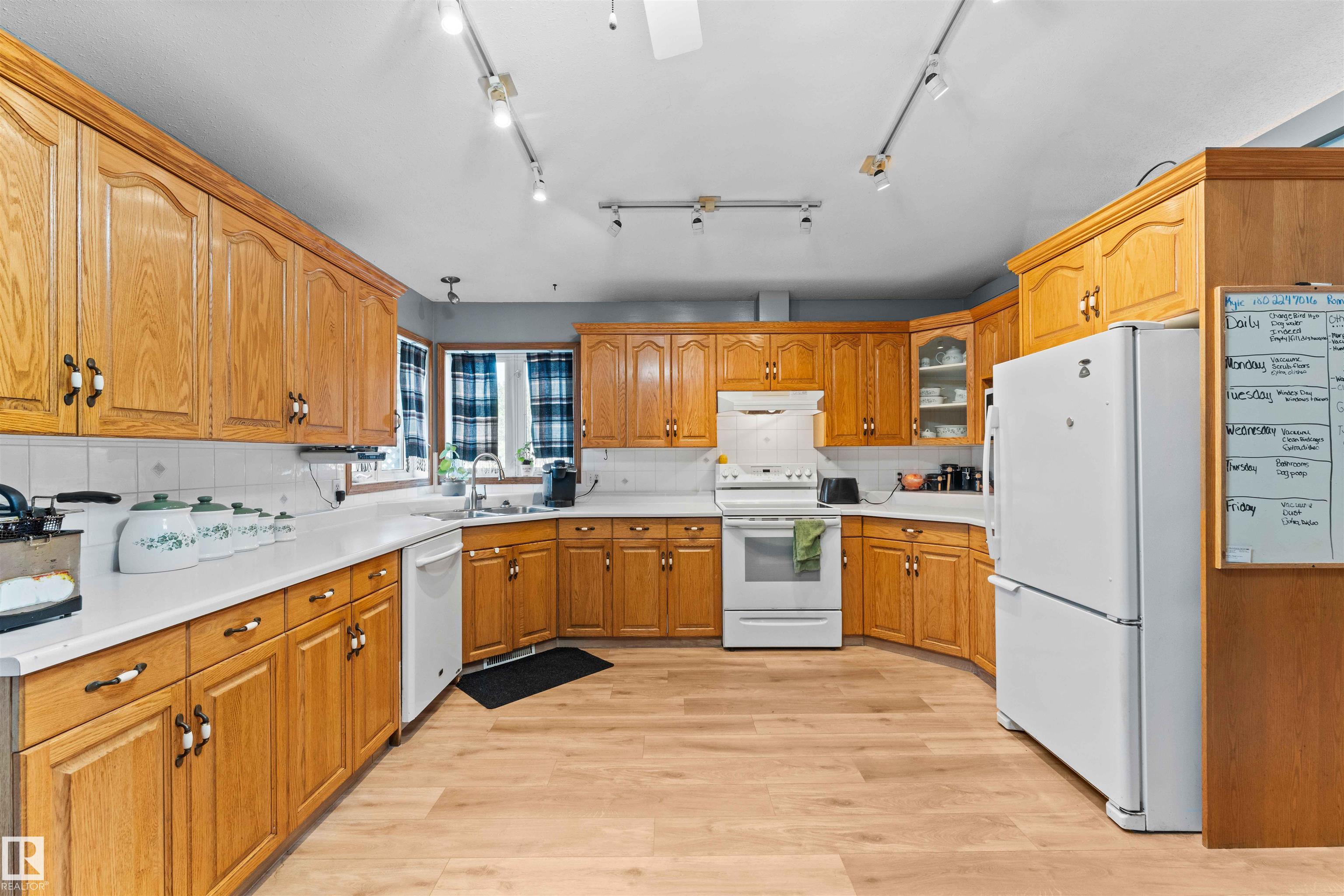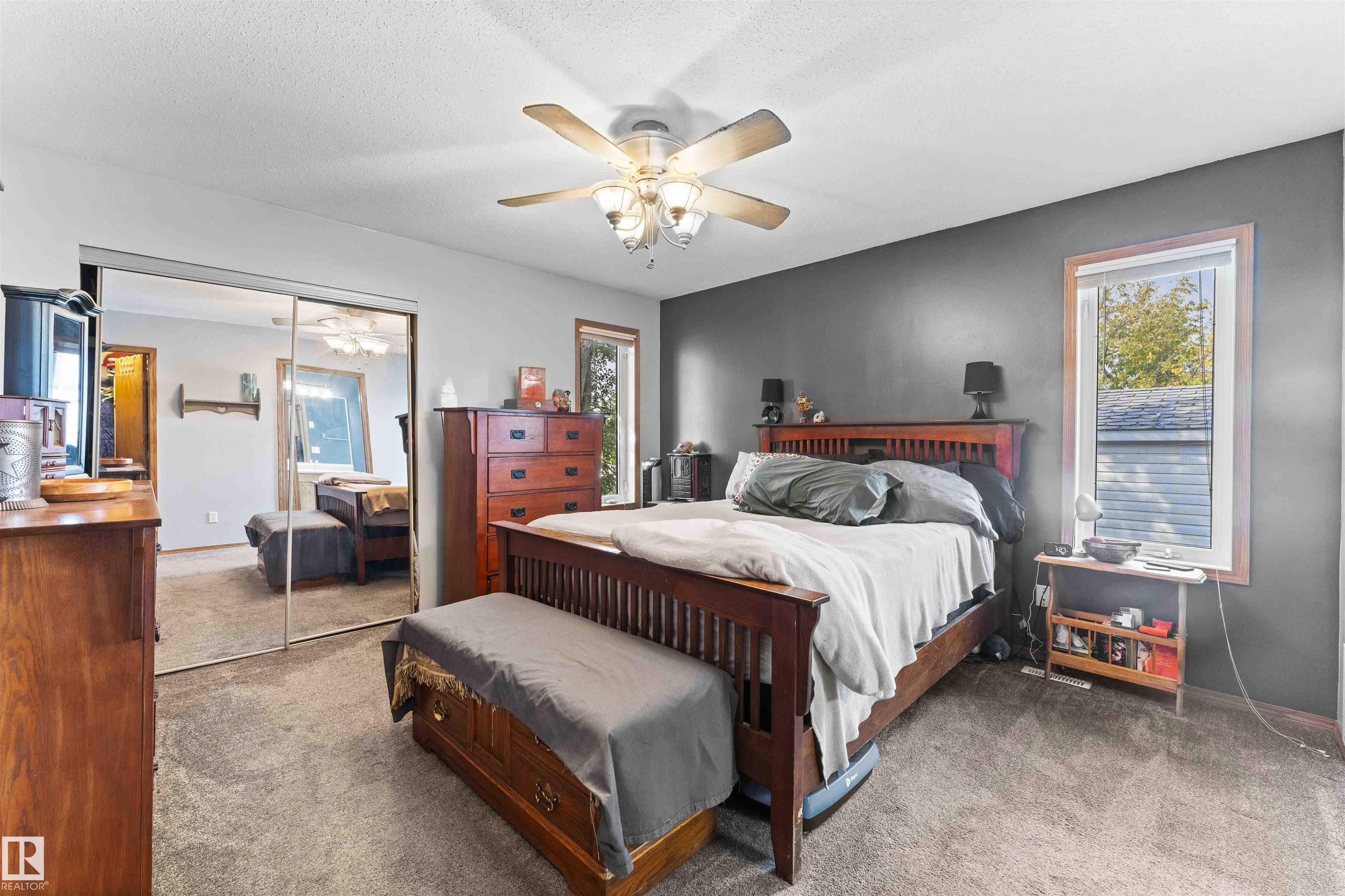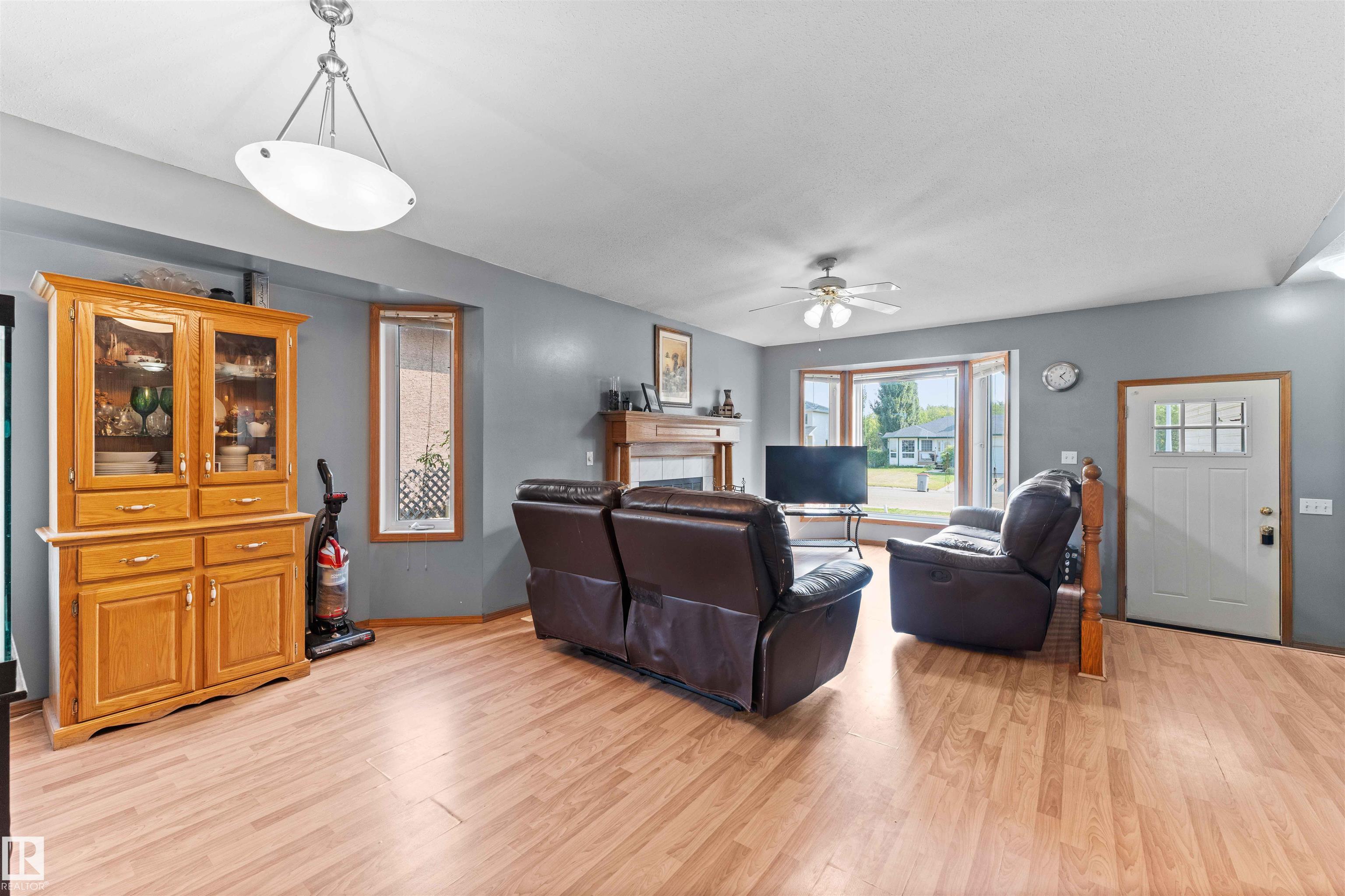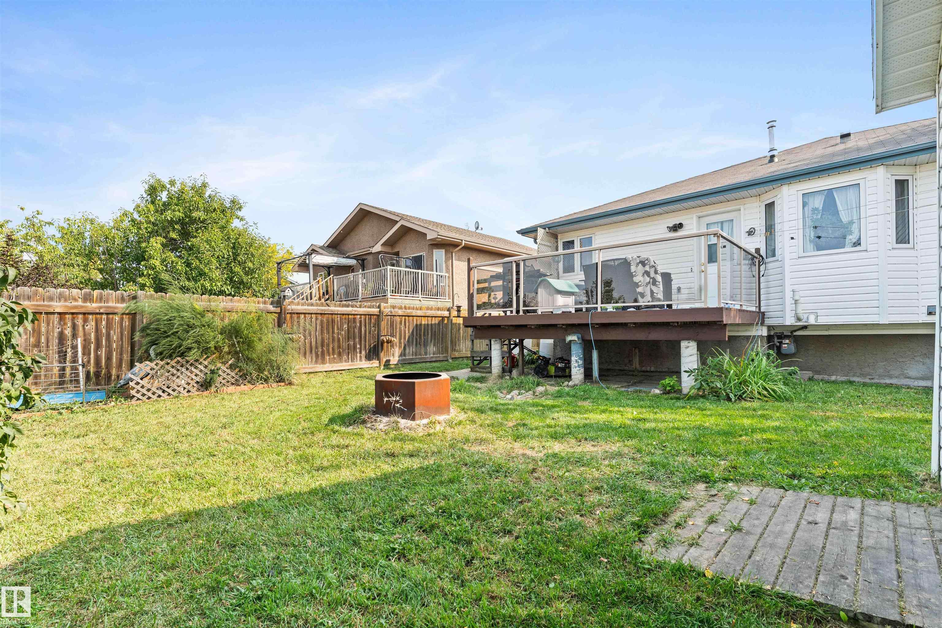 Welcome to this inviting 6-bedroom home in the heart of New Sarepta BACKING A FIELD!. Step inside to find new flooring throughout. The open kitchen offers plenty of cupboard space and storage, making it perfect for family living. The spacious living room features a large bay window and a wood-burning fireplace. The spacious master bedroom offers two closets and a private ensuite with a RELAXING JACUZZI TUB. Downstairs, the fully finished basement includes a huge family room with a WET BAR, plus three more bedrooms (one could be used as an office). Major updates include a new furnace (2023), hot water tank (2024), newer exterior doors, carpet (2025) and a roof replaced in 2000. Enjoy the charm of SMALL-TOWN LIVING with a great school, arena, trails, and local EMS/fire services just minutes away. This is a well-cared-for home with room to grow?don?t miss your chance to make it yours!