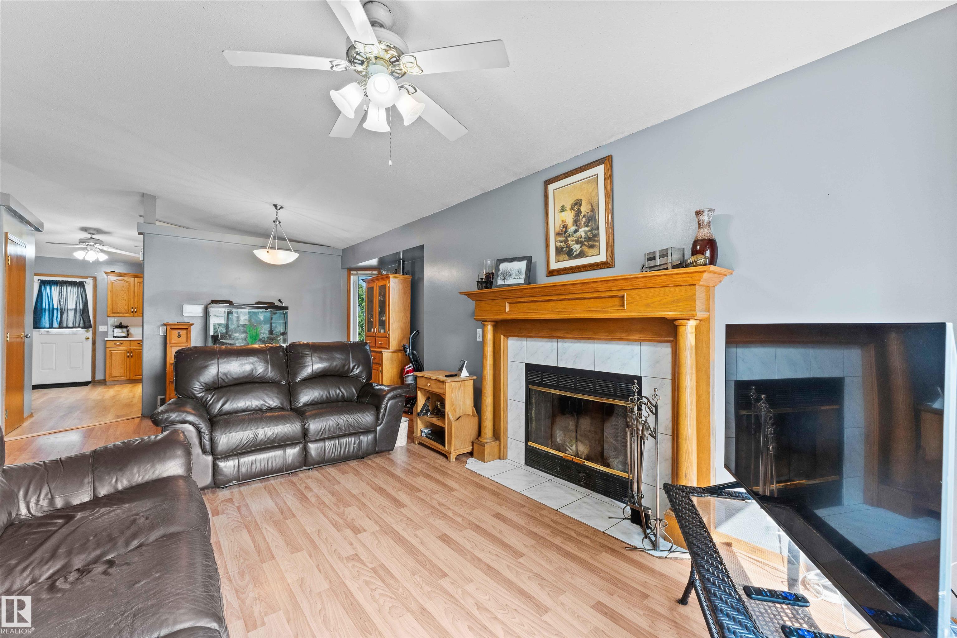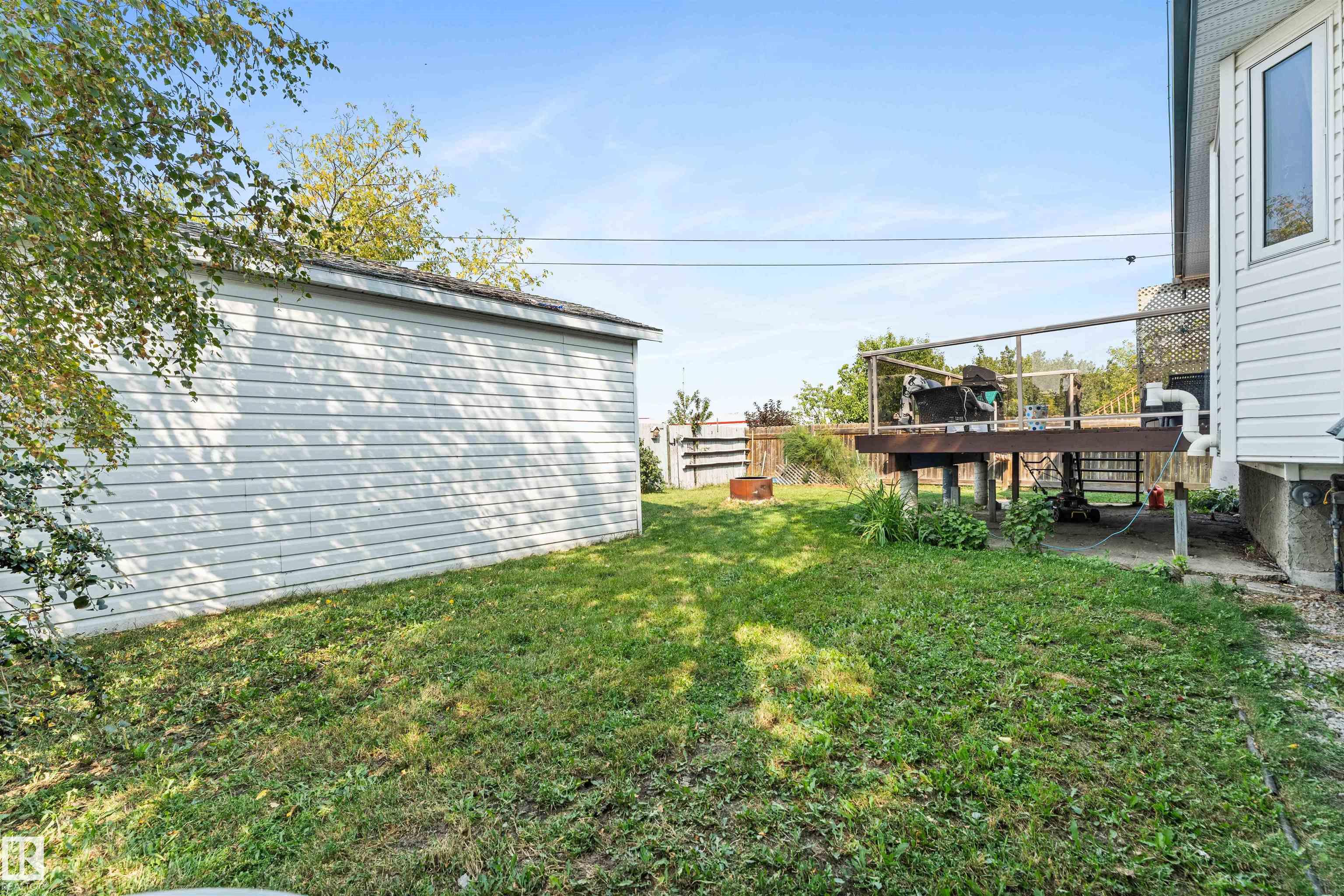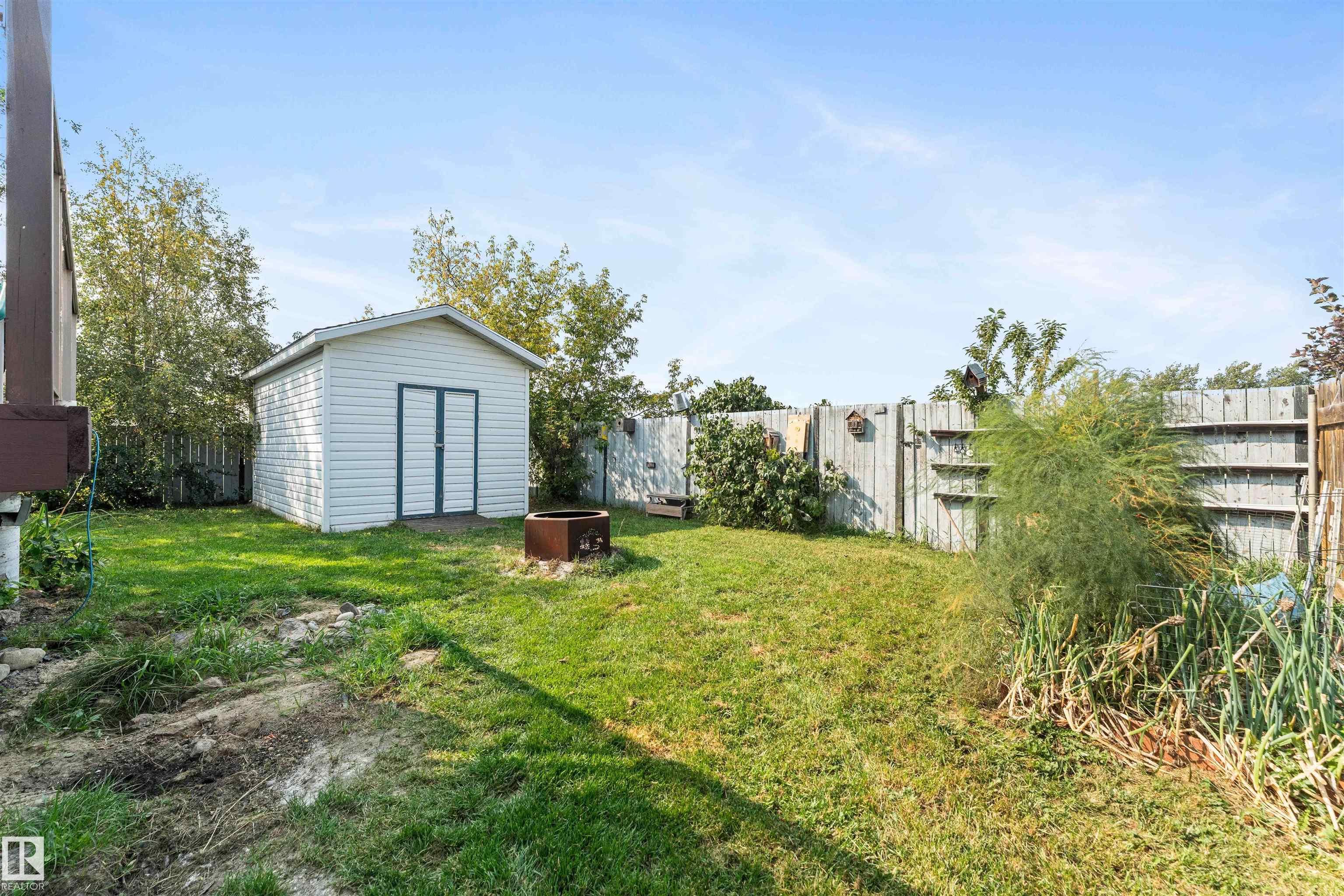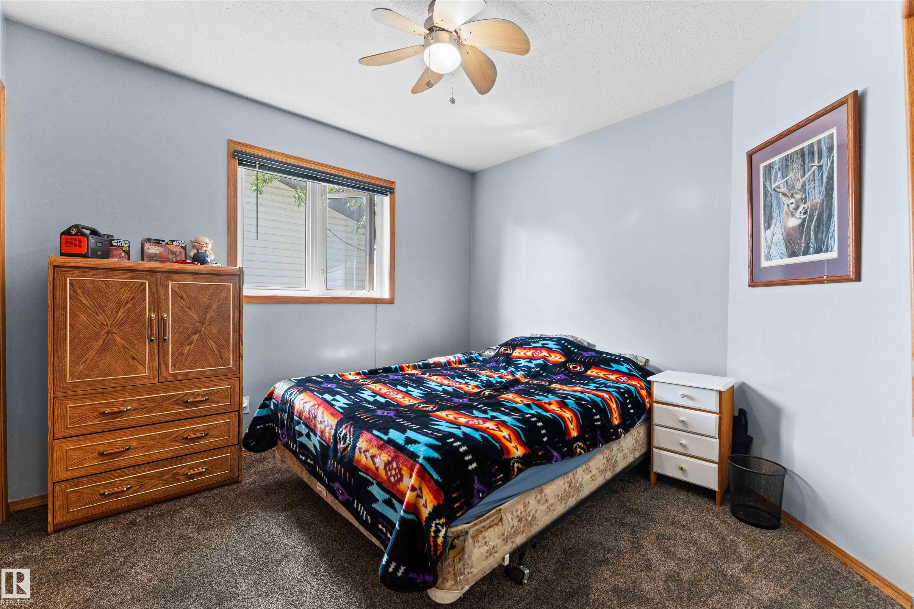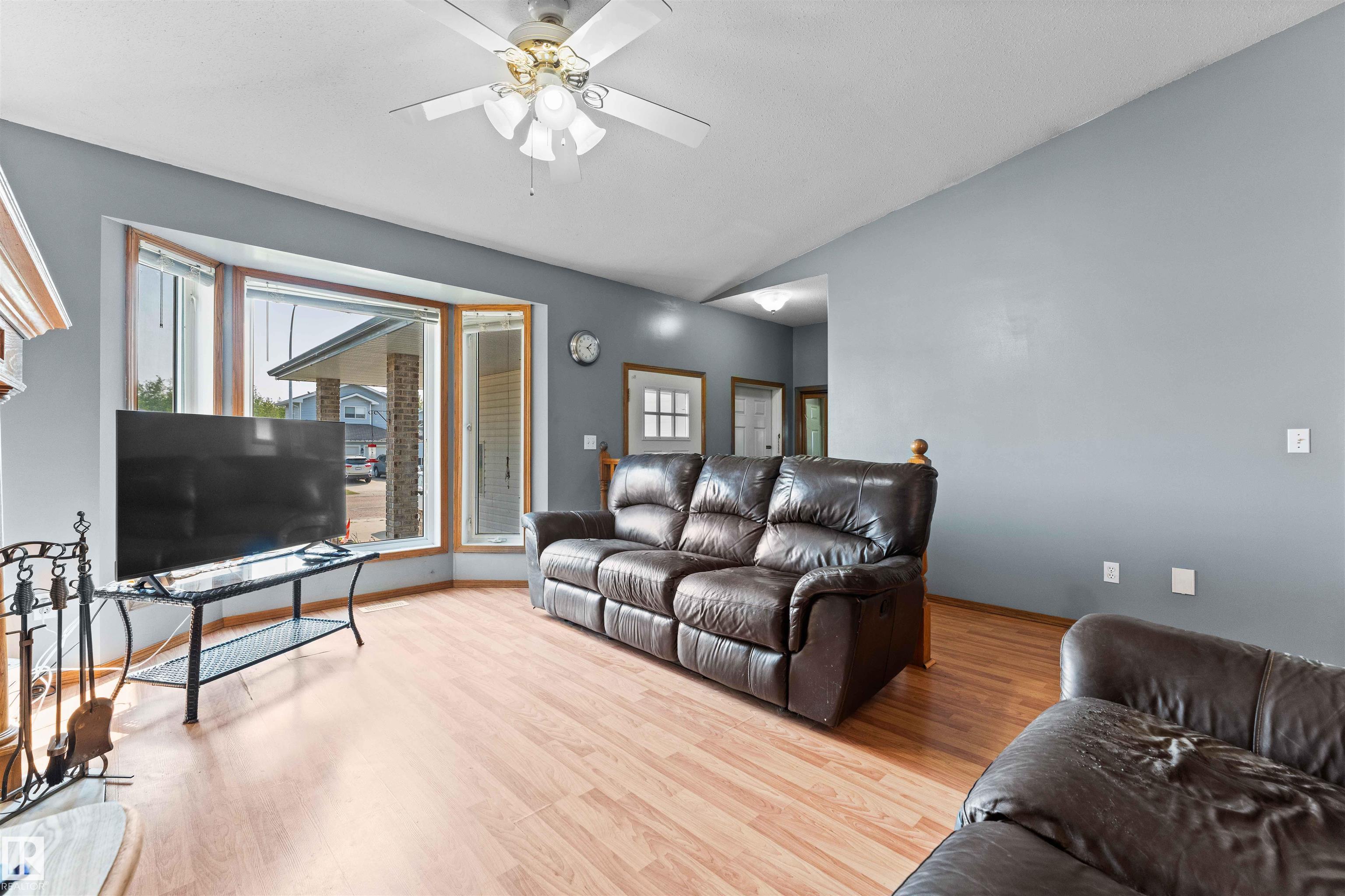Welcome to this inviting 6-bedroom home in the heart of New Sarepta BACKING A FIELD!. Step inside to find new flooring throughout. The open kitchen offers plenty of cupboard space and storage, making it perfect for family living. The spacious living room features a large bay window and a wood-burning fireplace. The spacious master bedroom offers two closets and a private ensuite with a RELAXING JACUZZI TUB. Downstairs, the fully finished basement includes a huge family room with a WET BAR, plus three more bedrooms (one could be used as an office). Major updates include a new furnace (2023), hot water tank (2024), newer exterior doors, carpet (2025) and a roof replaced in 2000. Enjoy the charm of SMALL-TOWN LIVING with a great school, arena, trails, and local EMS/fire services just minutes away. This is a well-cared-for home with room to grow?don?t miss your chance to make it yours!