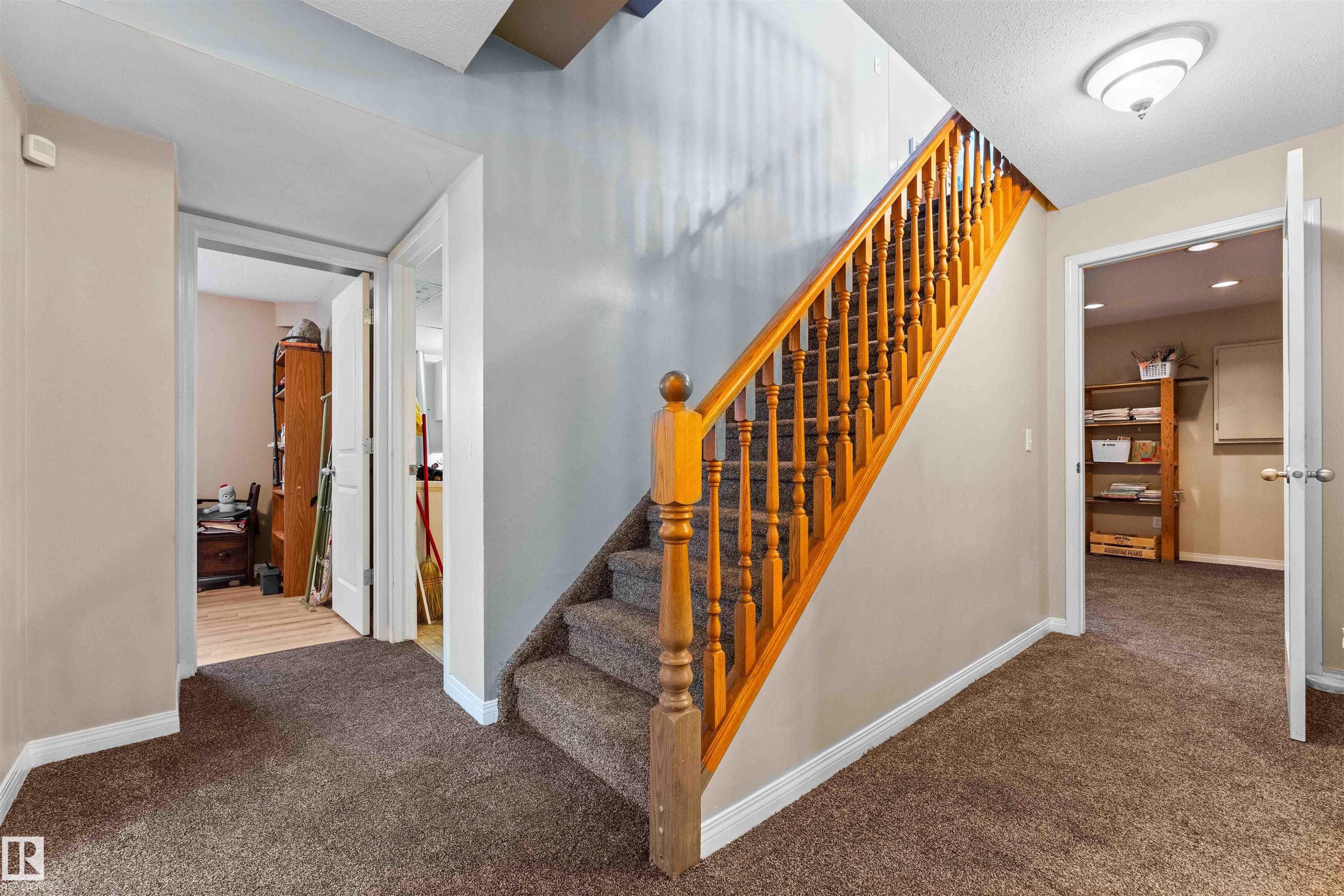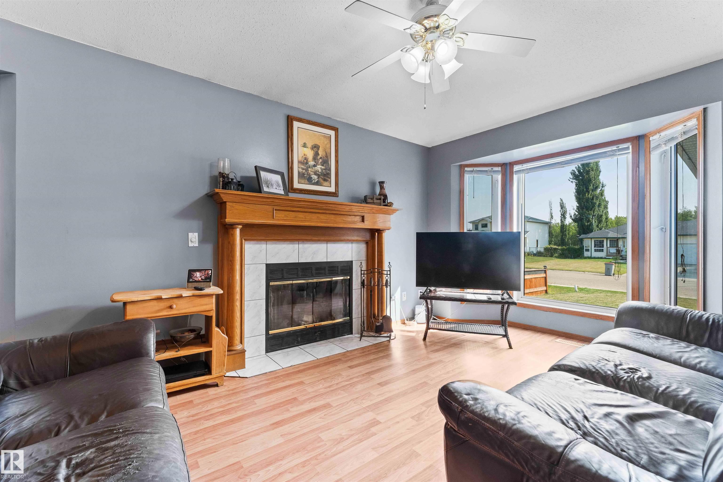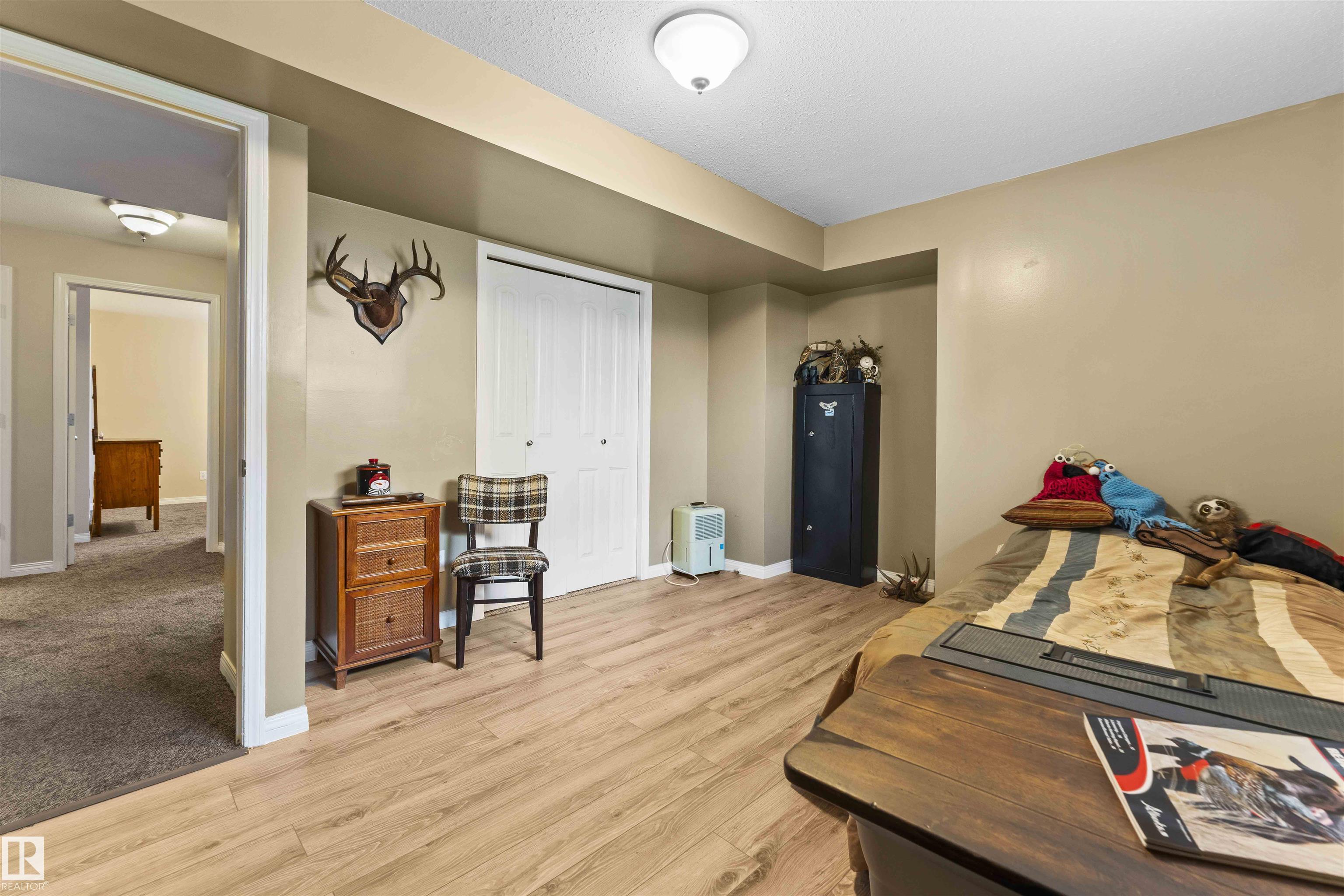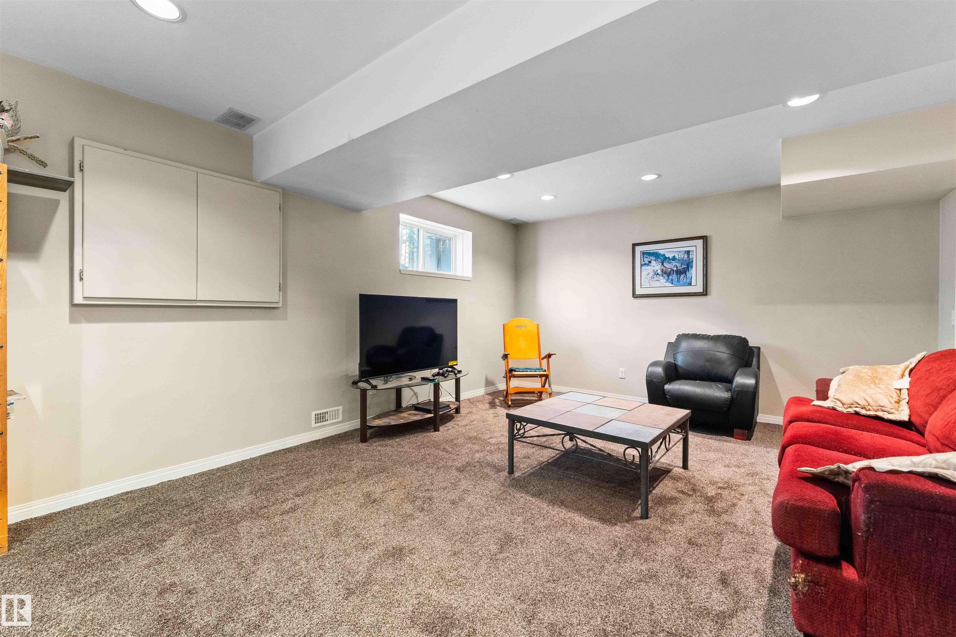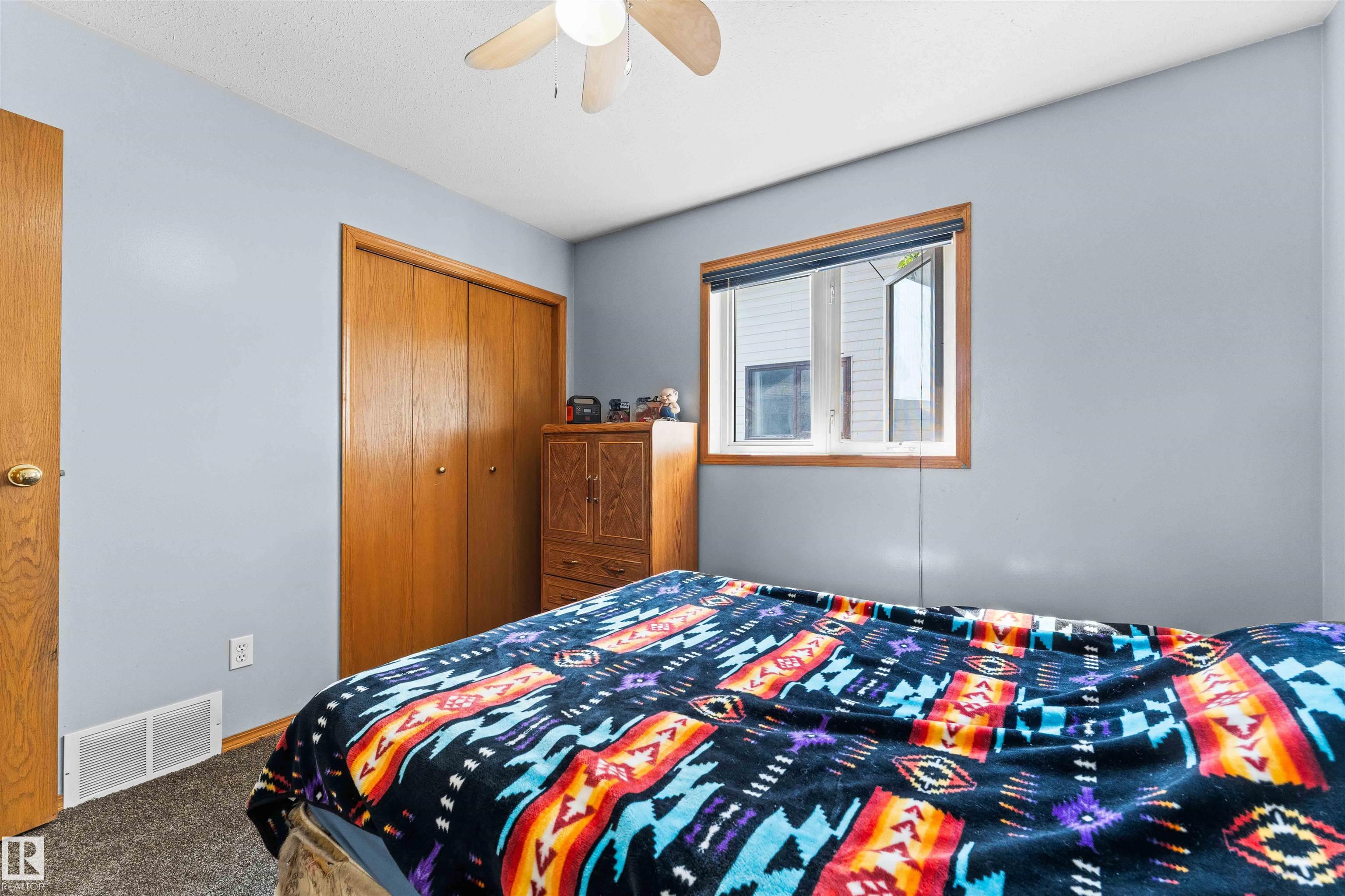Welcome to this inviting 6-bedroom home in the heart of New Sarepta BACKING A FIELD!. Step inside to find new flooring throughout. The open kitchen offers plenty of cupboard space and storage, making it perfect for family living. The spacious living room features a large bay window and a wood-burning fireplace. The spacious master bedroom offers two closets and a private ensuite with a RELAXING JACUZZI TUB. Downstairs, the fully finished basement includes a huge family room with a WET BAR, plus three more bedrooms (one could be used as an office). Major updates include a new furnace (2023), hot water tank (2024), newer exterior doors, carpet (2025) and a roof replaced in 2000. Enjoy the charm of SMALL-TOWN LIVING with a great school, arena, trails, and local EMS/fire services just minutes away. This is a well-cared-for home with room to grow?don?t miss your chance to make it yours!
