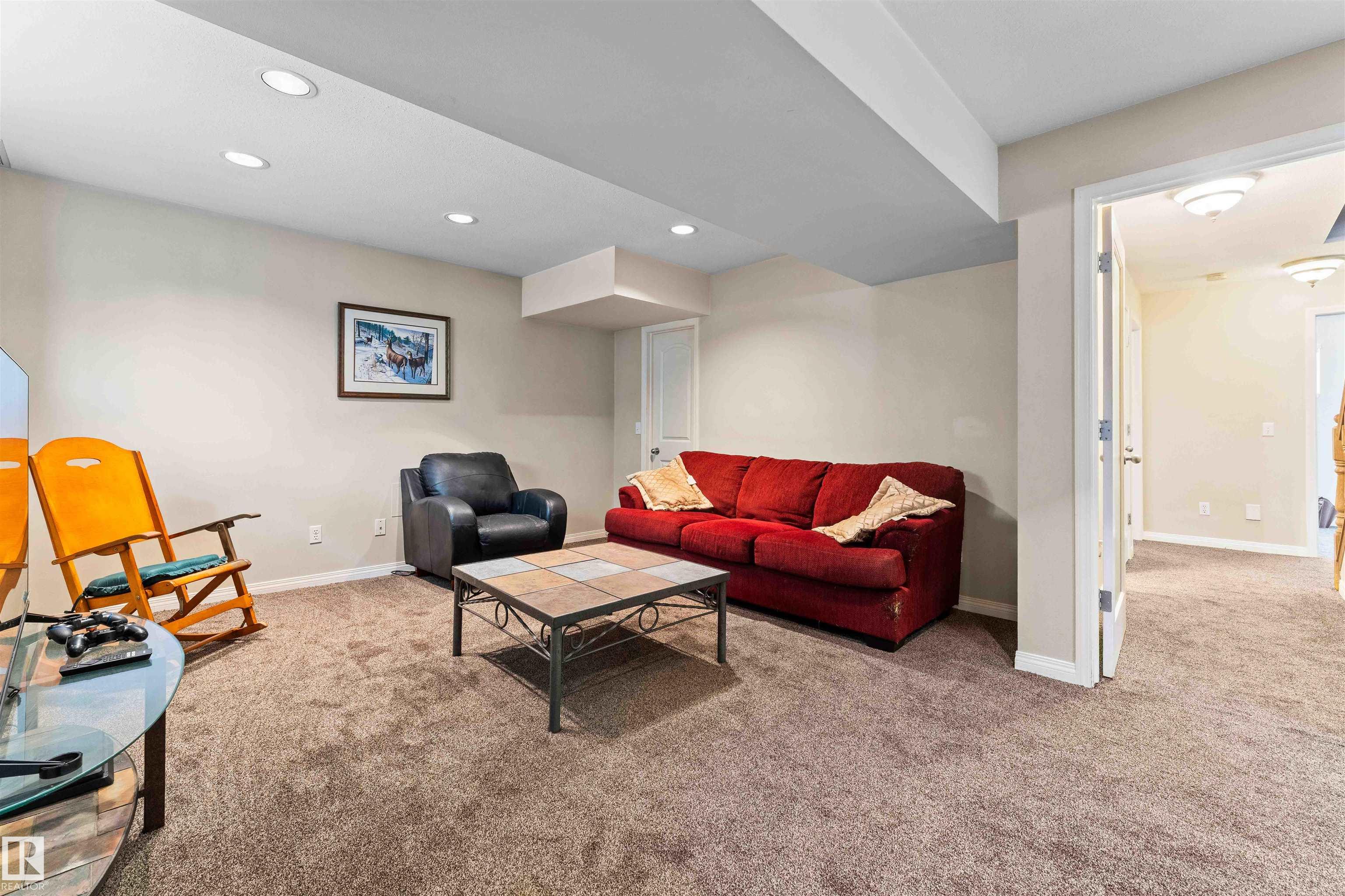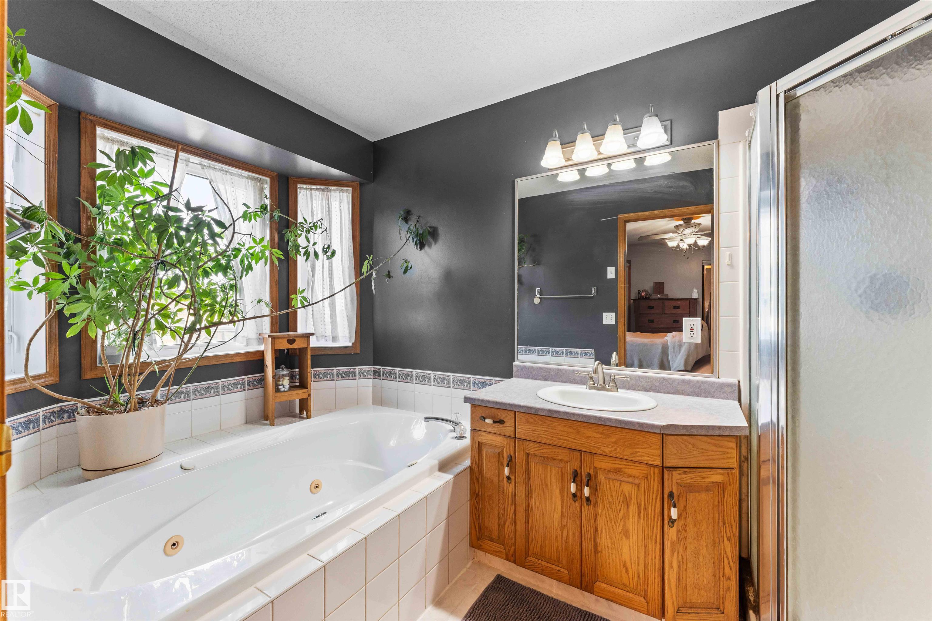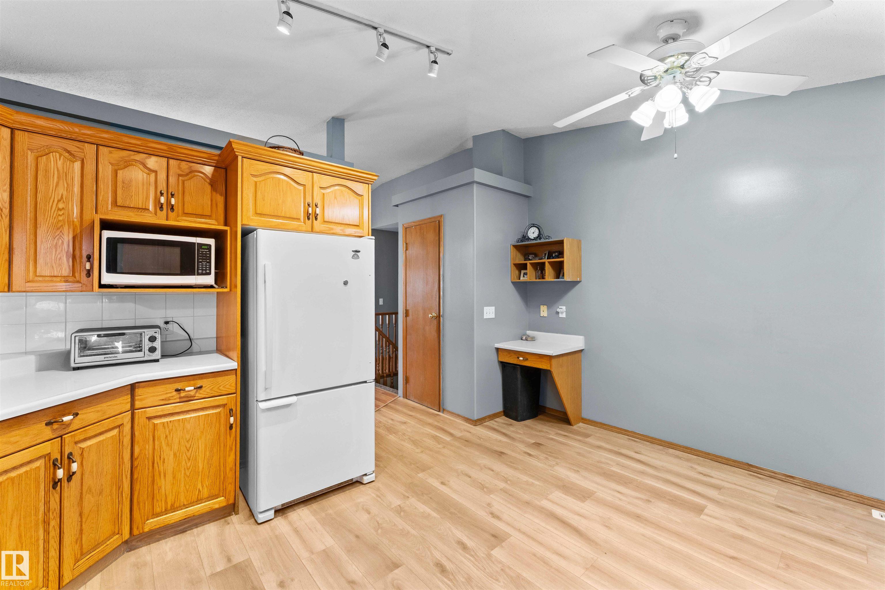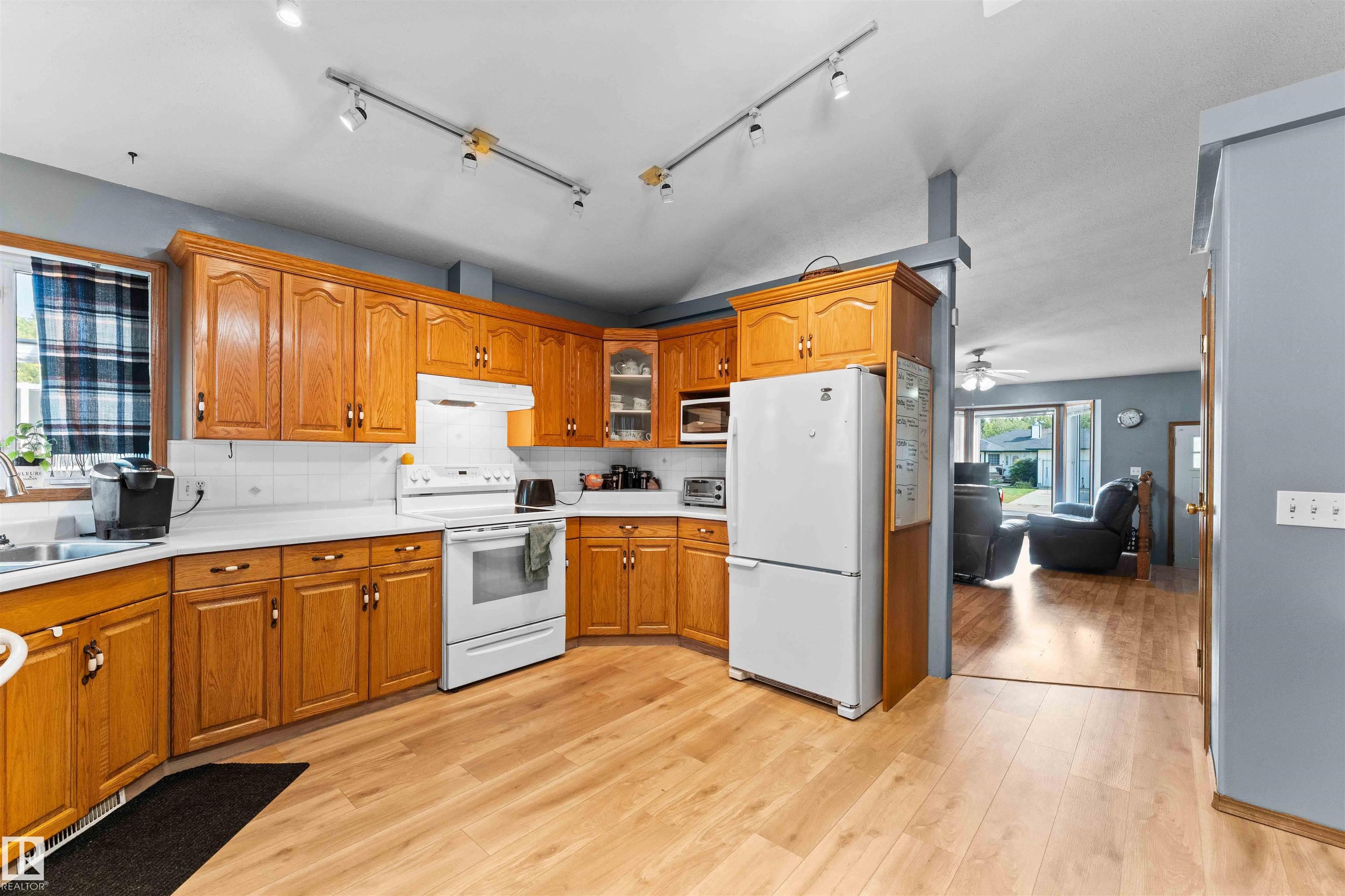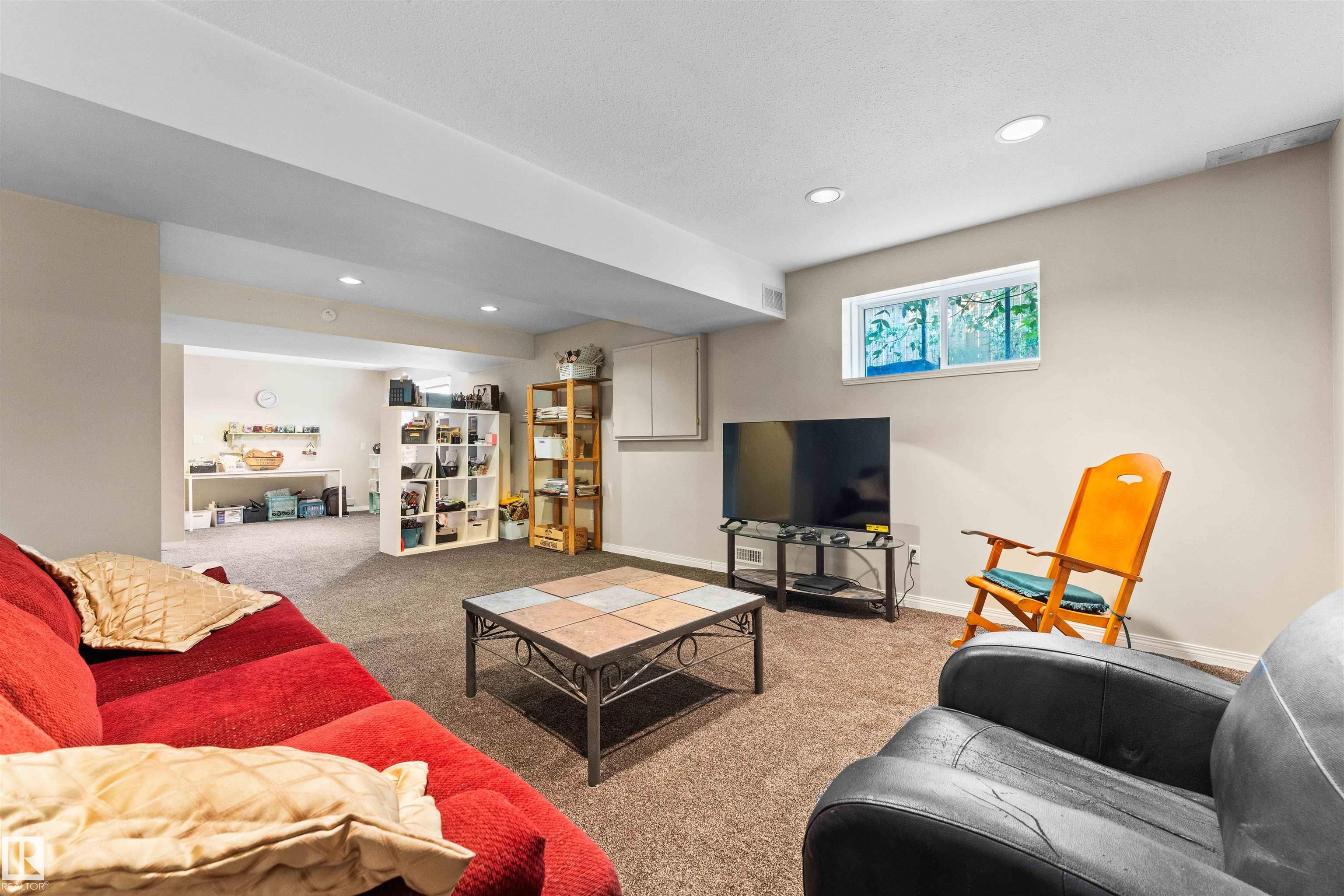 Welcome to this inviting 6-bedroom home in the heart of New Sarepta BACKING A FIELD!. Step inside to find new flooring throughout. The open kitchen offers plenty of cupboard space and storage, making it perfect for family living. The spacious living room features a large bay window and a wood-burning fireplace. The spacious master bedroom offers two closets and a private ensuite with a RELAXING JACUZZI TUB. Downstairs, the fully finished basement includes a huge family room with a WET BAR, plus three more bedrooms (one could be used as an office). Major updates include a new furnace (2023), hot water tank (2024), newer exterior doors, carpet (2025) and a roof replaced in 2000. Enjoy the charm of SMALL-TOWN LIVING with a great school, arena, trails, and local EMS/fire services just minutes away. This is a well-cared-for home with room to grow?don?t miss your chance to make it yours!