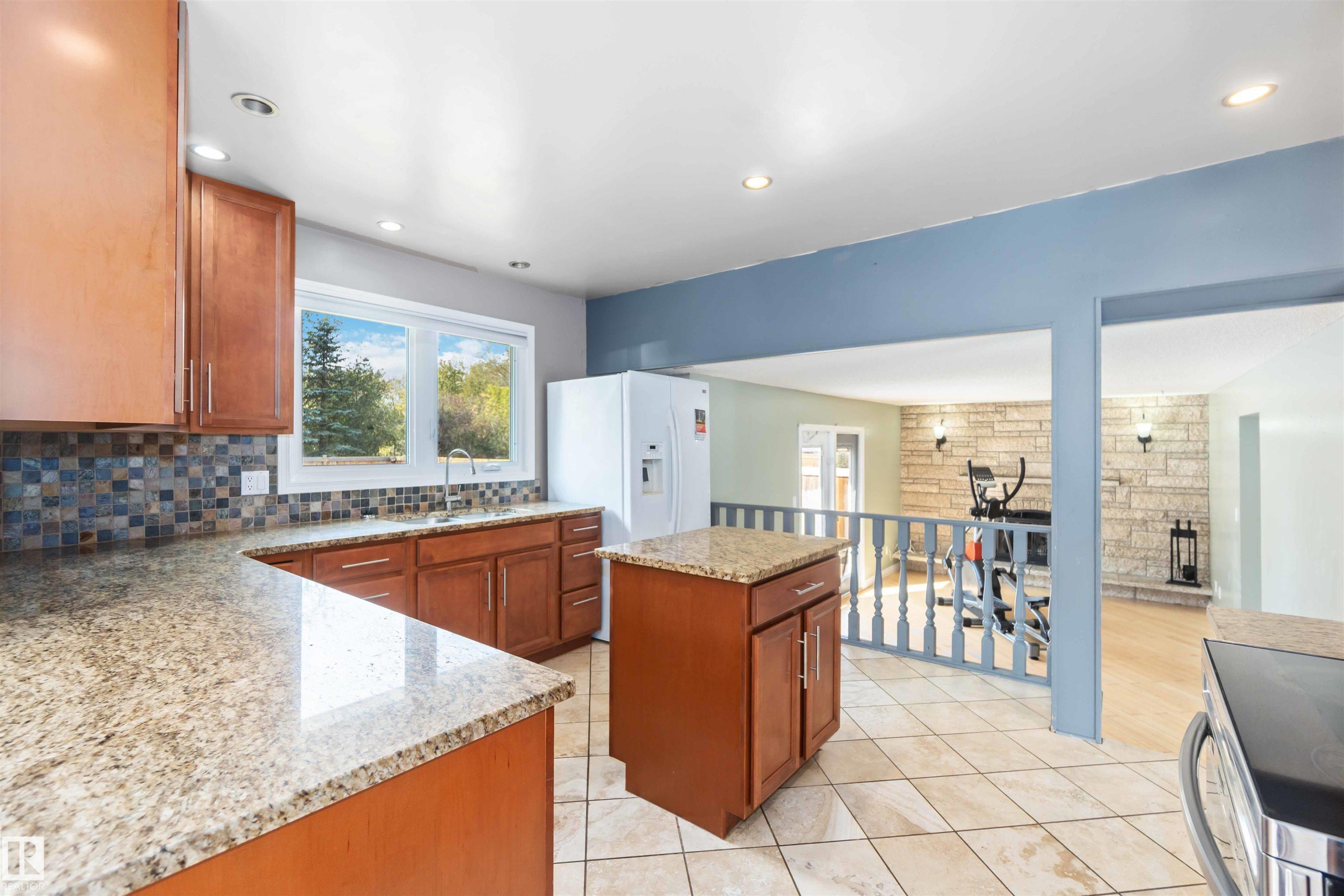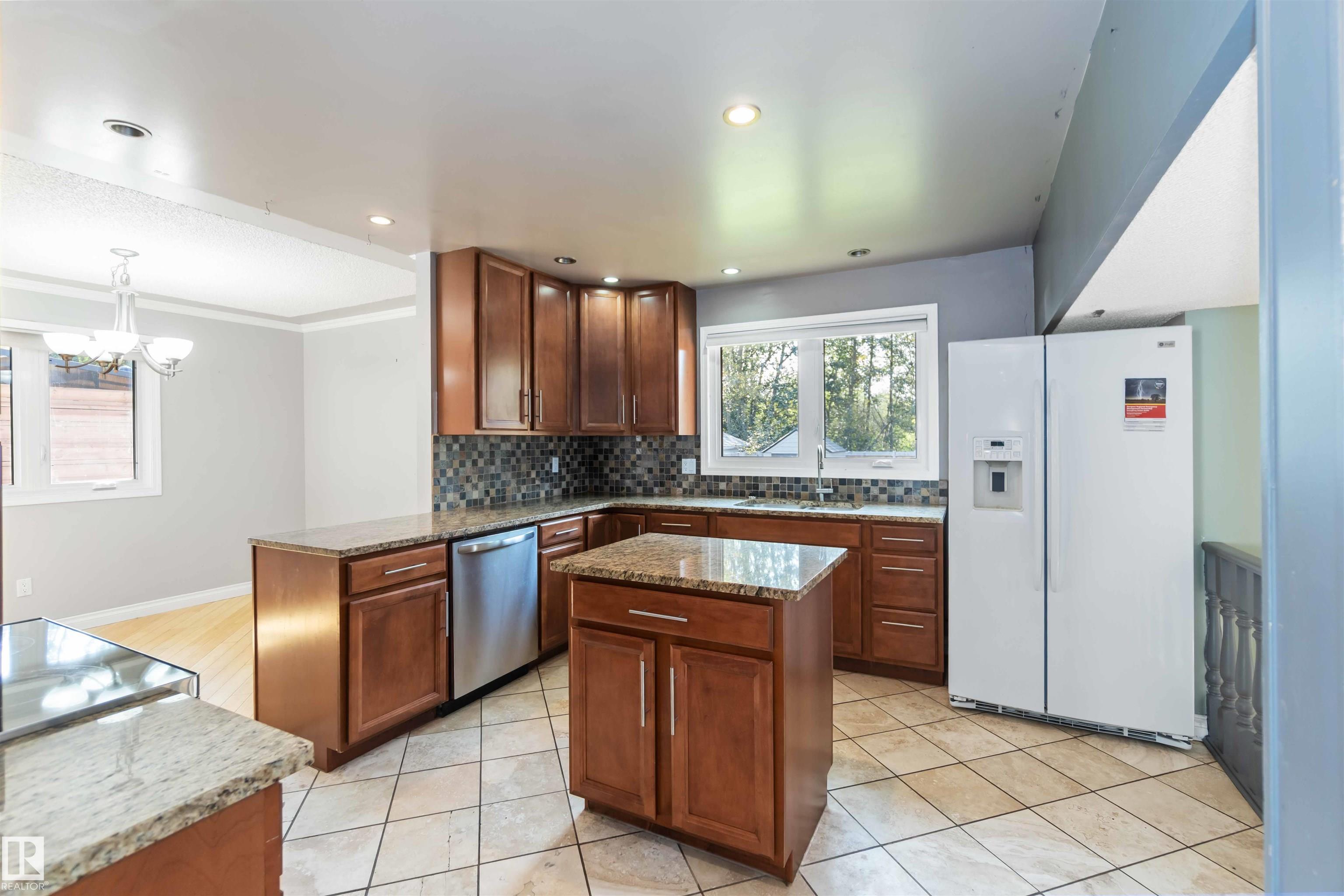 Spacious 5-Level Split Backing onto Trees in a Prime Location! This massive 5-level split backs onto a treed area that separates you from Ochre Park Elementary?s field, with just one neighbor and a walking path on the other side. The main level offers a large living room, dining area, and kitchen with newer cabinets and granite countertops. Upstairs you?ll find 3 bedrooms, including a primary suite with walk-in closet and 3-piece ensuite, plus a 4-piece main bath. The lower level features another bedroom, laundry, a 2-piece bath, and a cozy family room with a wood-burning fireplace. On the 4th level, there?s a spacious great room and an additional room ideal as a 5th bedroom or home office. The basement includes a rec room with 3-piece bath and a mechanical/storage room. Outside, enjoy a massive fenced yard with shed, along with a double attached garage. Plenty of room for family living?inside and out!