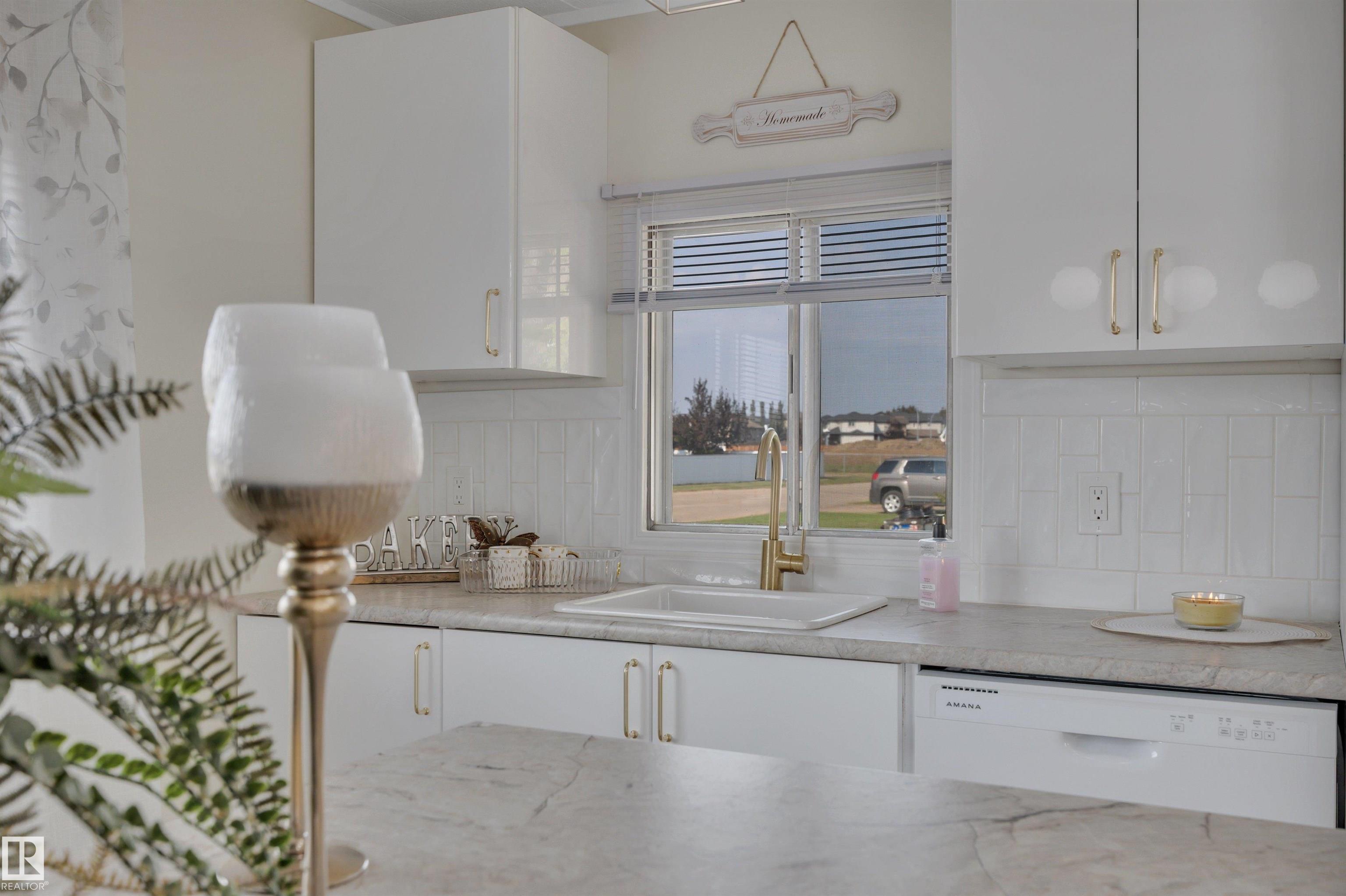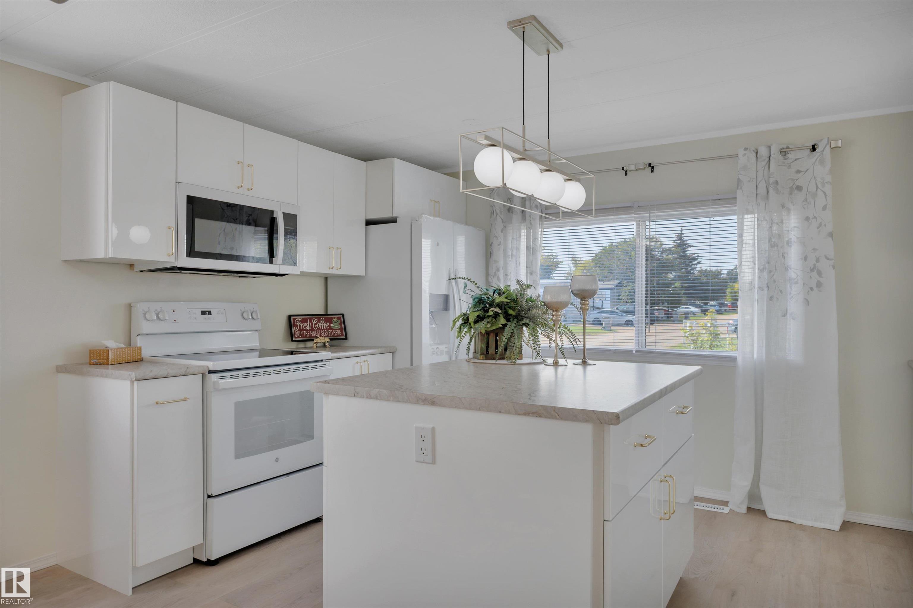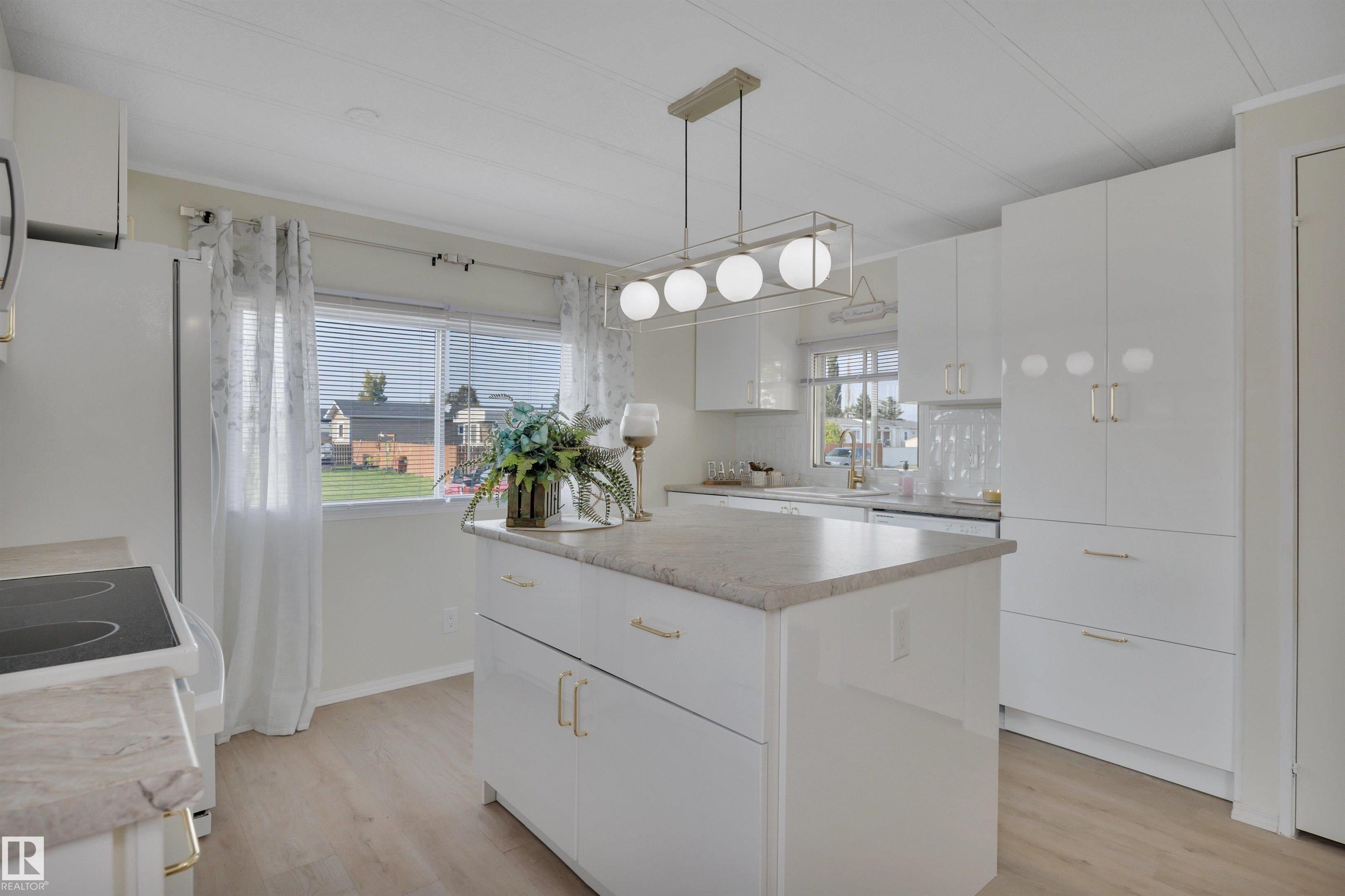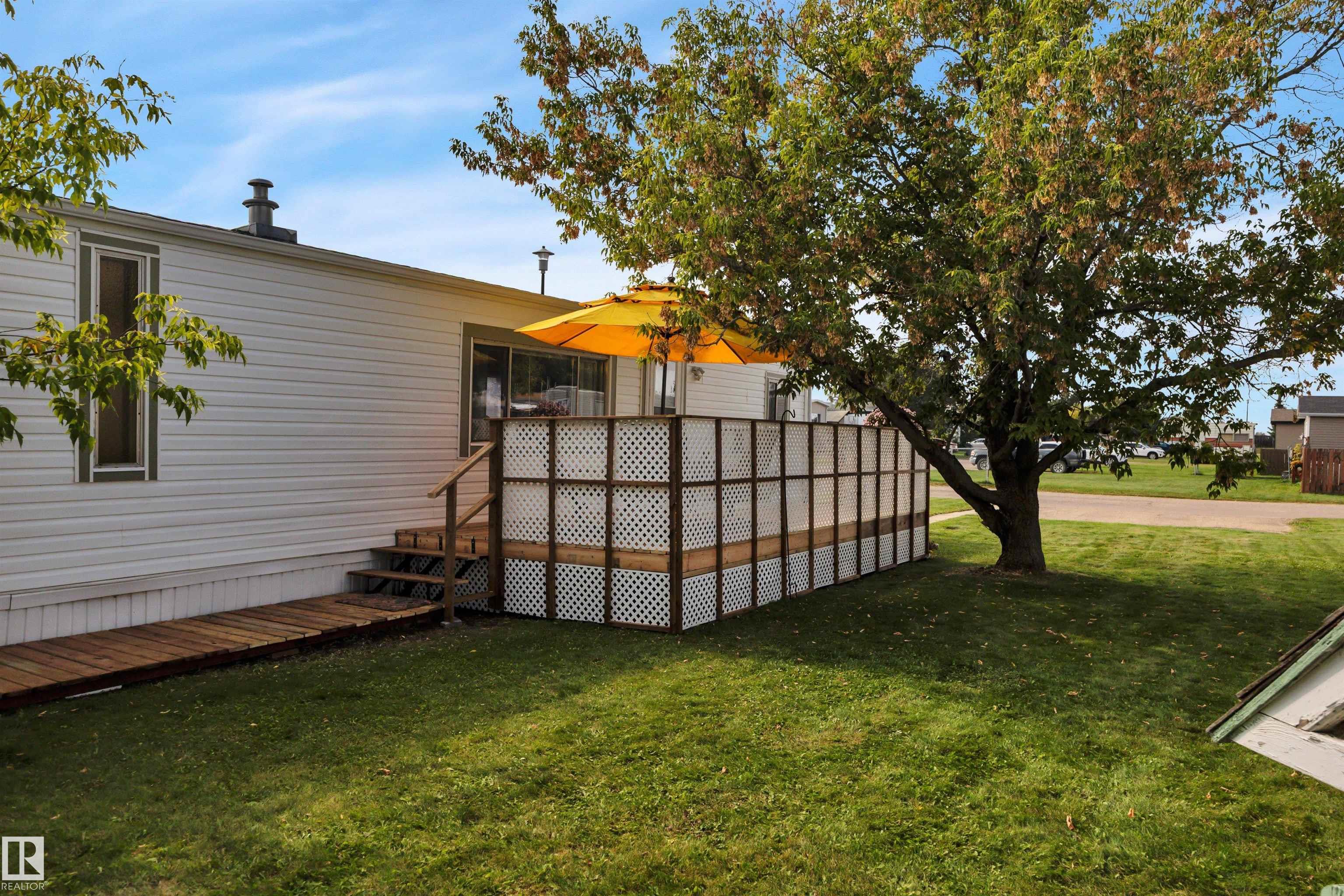 Looking for affordable living with modern updates in the desirable town of Calmar? This 3 bed, 1 bath mobile home offers unbeatable value with extensive renovations inside and out. Recent upgrades: electrical and plumbing completed by journeyman trades, brand new kitchen cabinets with a sleek modern design, a new 40' x 48' island, new fridge, dishwasher, stove, and microwave, soft-touch light switches, new blinds, neutral window coverings, fresh paint, waterproof laminate flooring, and carpet throughout. Comfort and efficiency were top of mind with heat tape and insulation installed under the unit, while the exterior shines with a new extended deck, updated siding (2025), water proof shed, and a large private yard. Major system updates include new shingles (2020), furnace (2010 with ducts cleaned in 2021), and a hot water tank (2021). This move-in ready home offers incredible value with low lot fees, a quiet community, and close proximity to city amenities, making it an excellent alternative to renting.