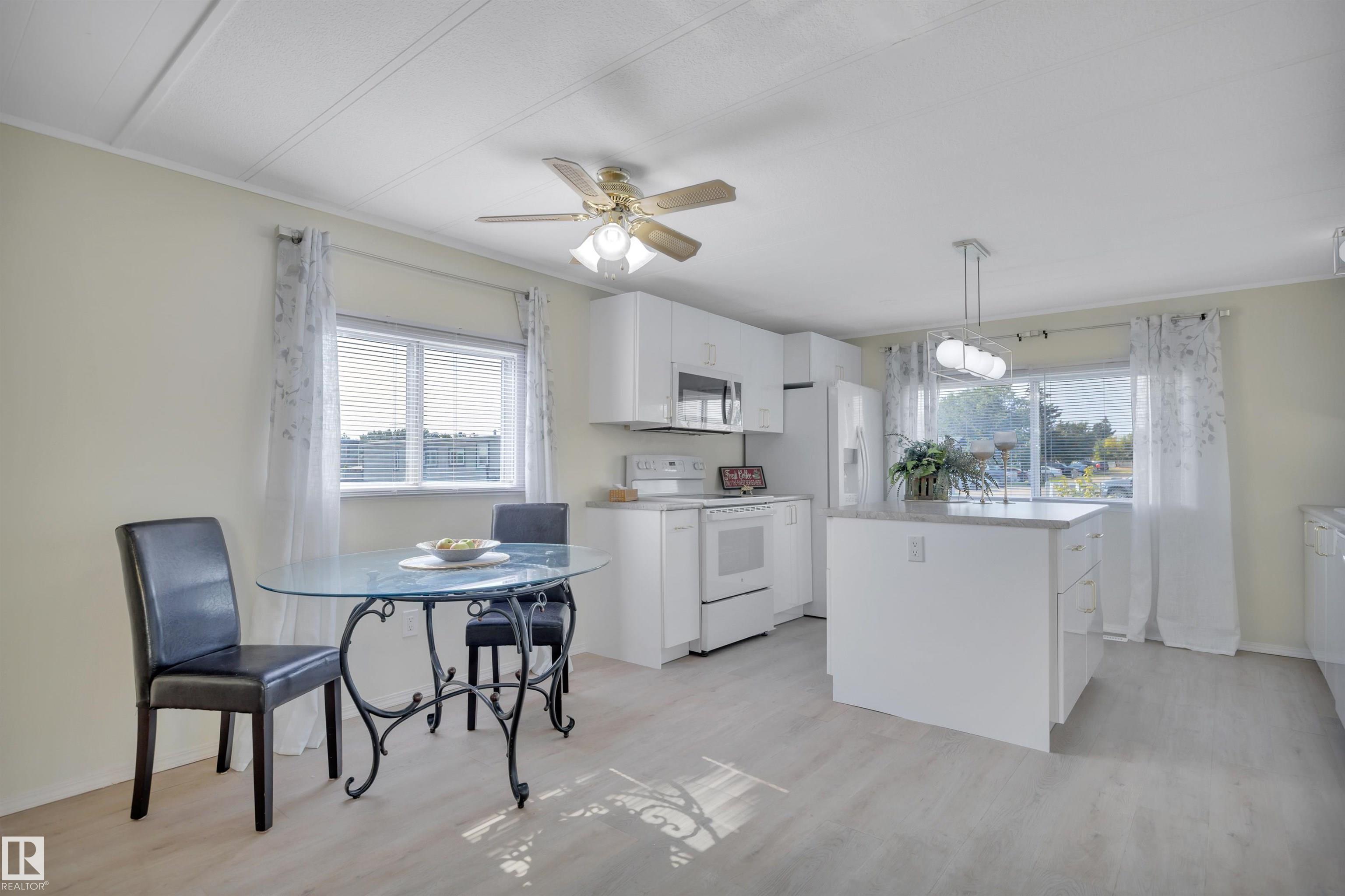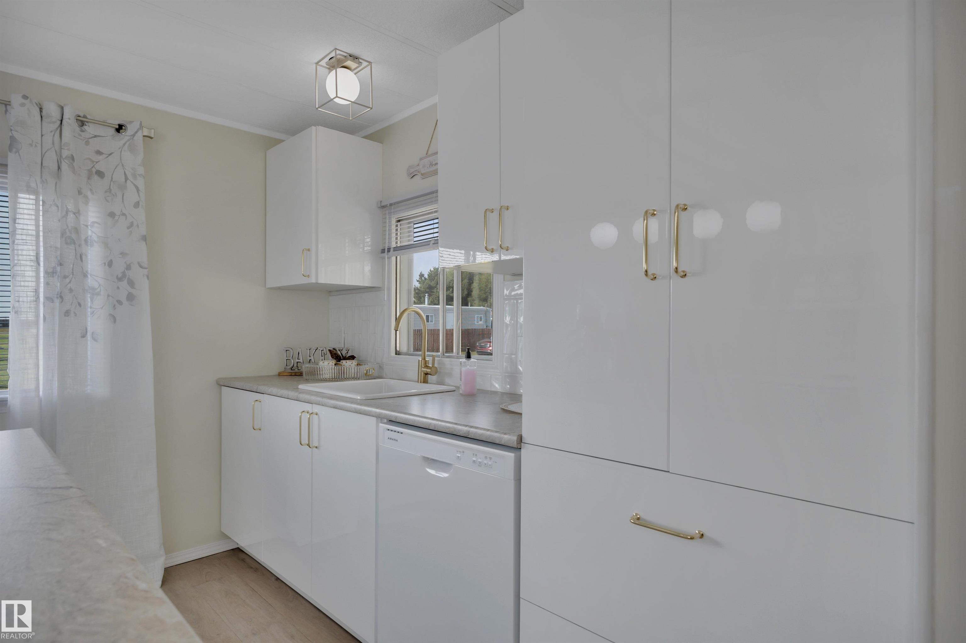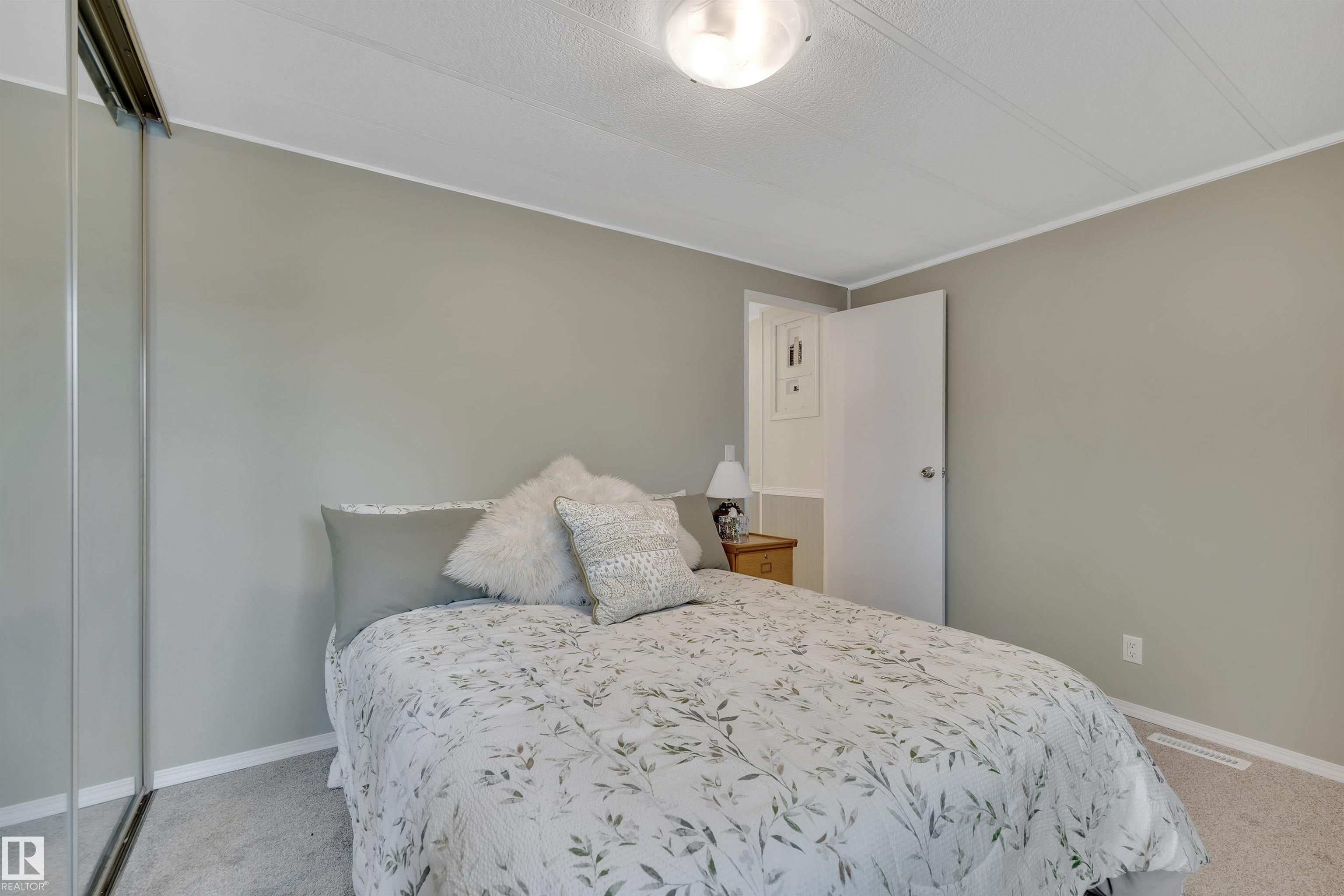 Looking for affordable living with modern updates in the desirable town of Calmar? This 3 bed, 1 bath mobile home offers unbeatable value with extensive renovations inside and out. Recent upgrades: electrical and plumbing completed by journeyman trades, brand new kitchen cabinets with a sleek modern design, a new 40' x 48' island, new fridge, dishwasher, stove, and microwave, soft-touch light switches, new blinds, neutral window coverings, fresh paint, waterproof laminate flooring, and carpet throughout. Comfort and efficiency were top of mind with heat tape and insulation installed under the unit, while the exterior shines with a new extended deck, updated siding (2025), water proof shed, and a large private yard. Major system updates include new shingles (2020), furnace (2010 with ducts cleaned in 2021), and a hot water tank (2021). This move-in ready home offers incredible value with low lot fees, a quiet community, and close proximity to city amenities, making it an excellent alternative to renting.
