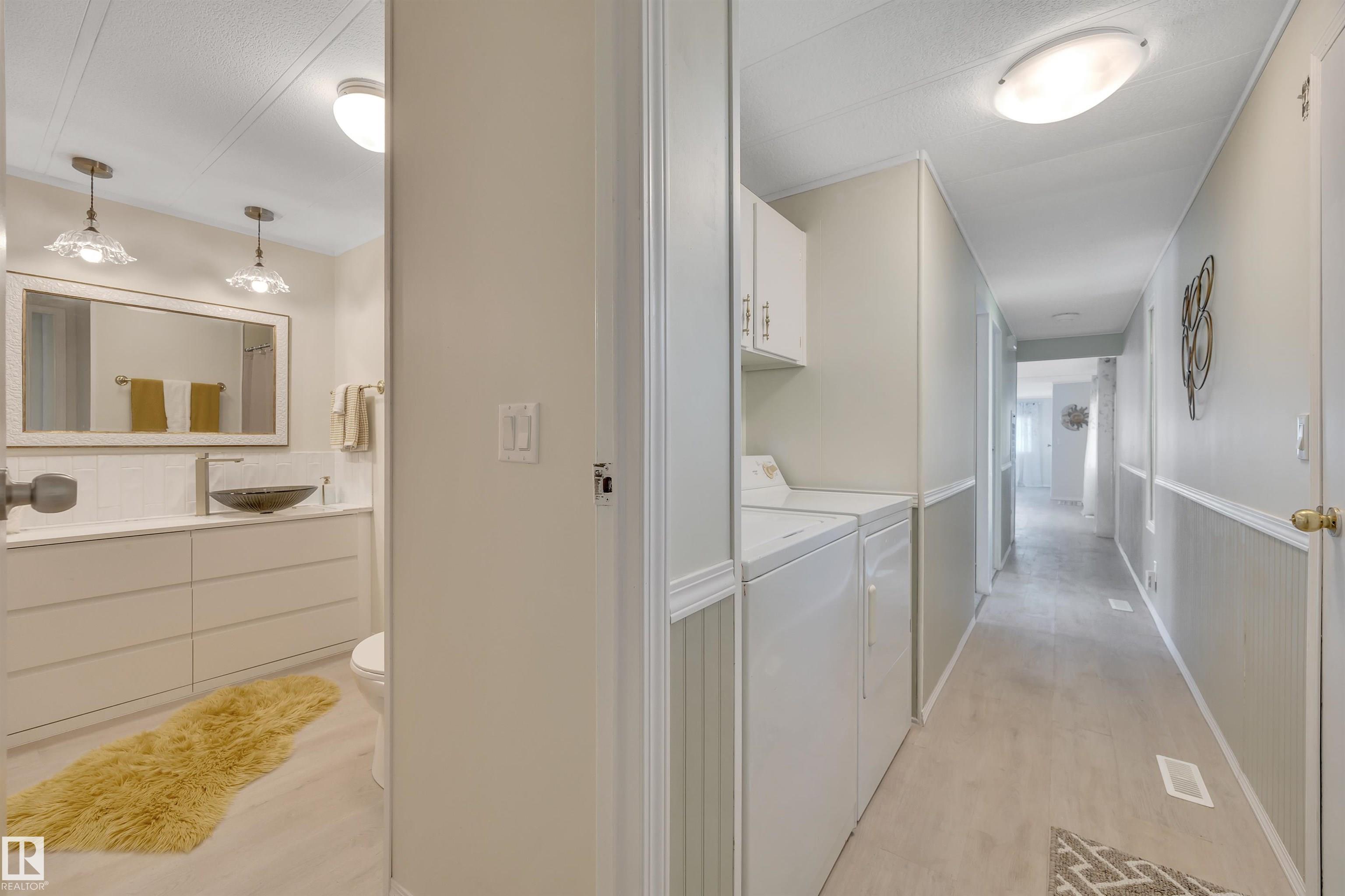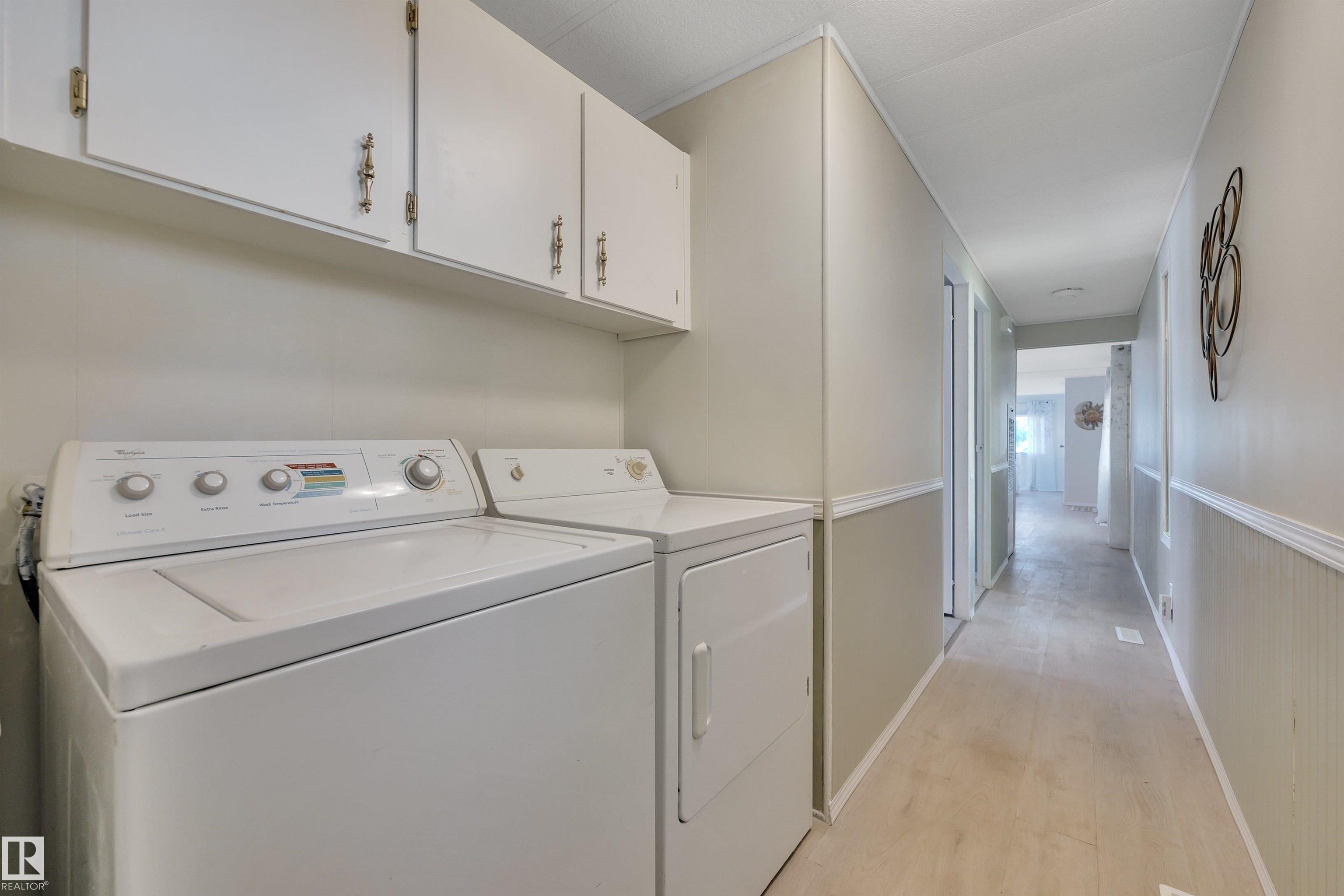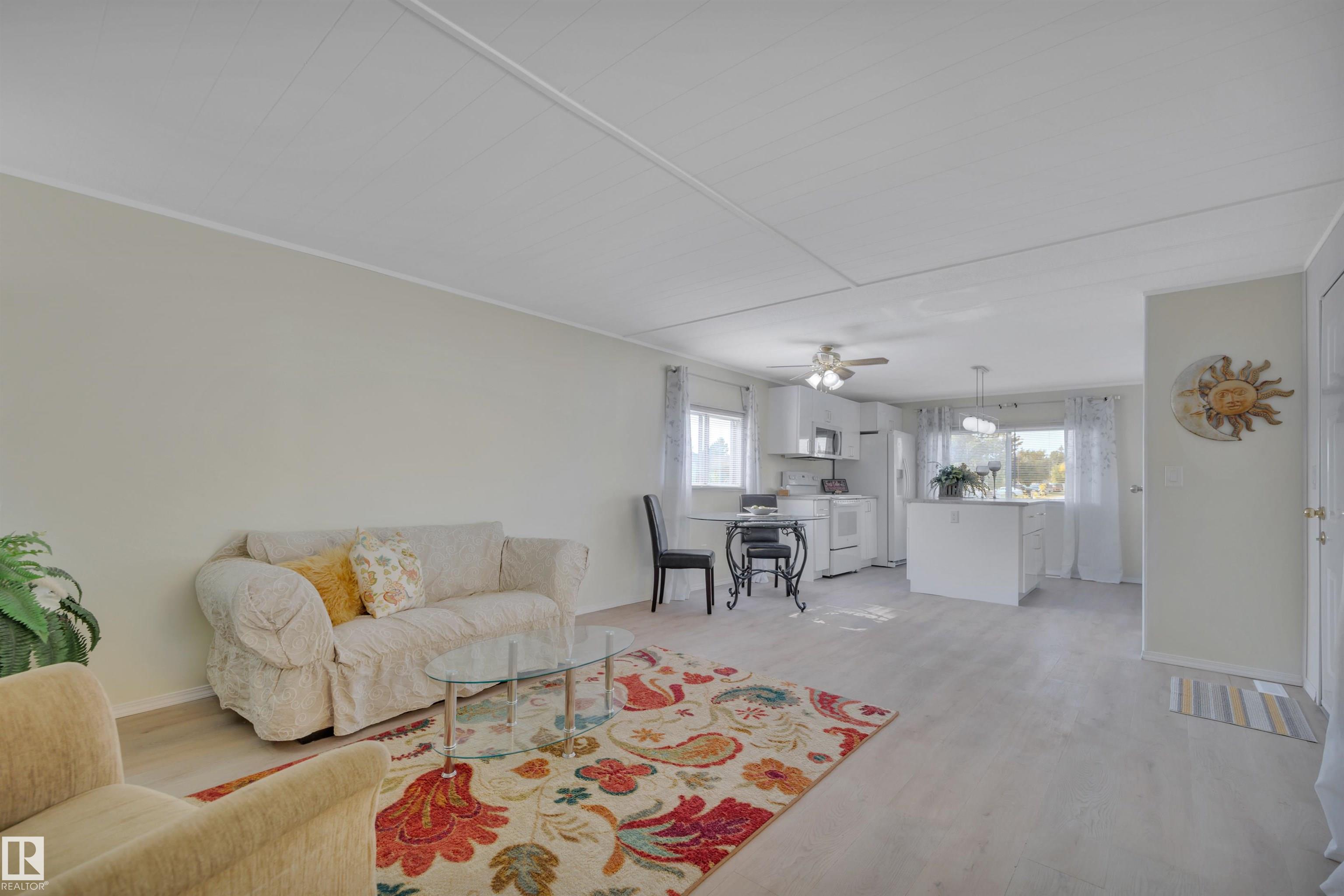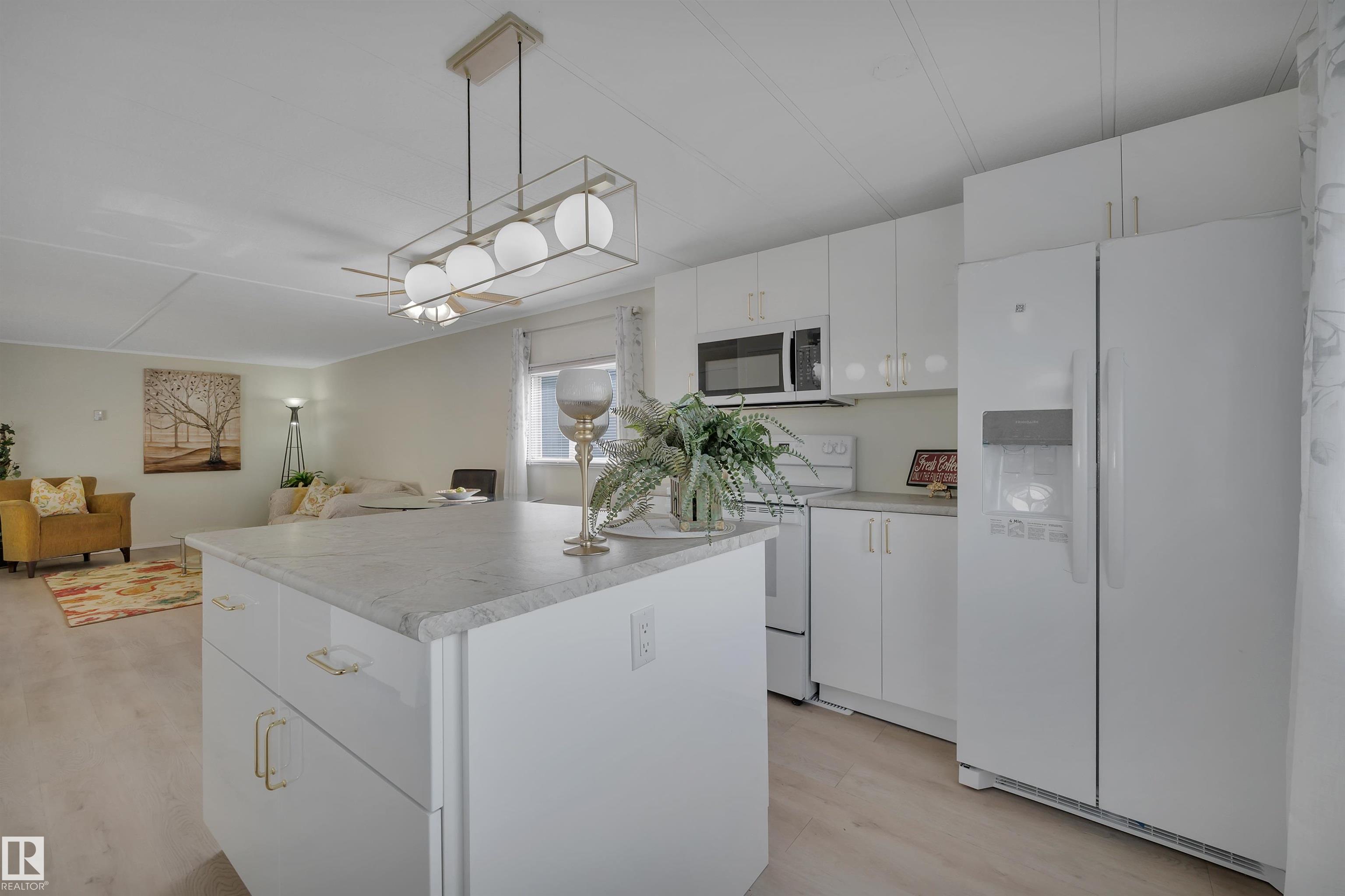 Looking for affordable living with modern updates in the desirable town of Calmar? This 3 bed, 1 bath mobile home offers unbeatable value with extensive renovations inside and out. Recent upgrades: electrical and plumbing completed by journeyman trades, brand new kitchen cabinets with a sleek modern design, a new 40' x 48' island, new fridge, dishwasher, stove, and microwave, soft-touch light switches, new blinds, neutral window coverings, fresh paint, waterproof laminate flooring, and carpet throughout. Comfort and efficiency were top of mind with heat tape and insulation installed under the unit, while the exterior shines with a new extended deck, updated siding (2025), water proof shed, and a large private yard. Major system updates include new shingles (2020), furnace (2010 with ducts cleaned in 2021), and a hot water tank (2021). This move-in ready home offers incredible value with low lot fees, a quiet community, and close proximity to city amenities, making it an excellent alternative to renting.