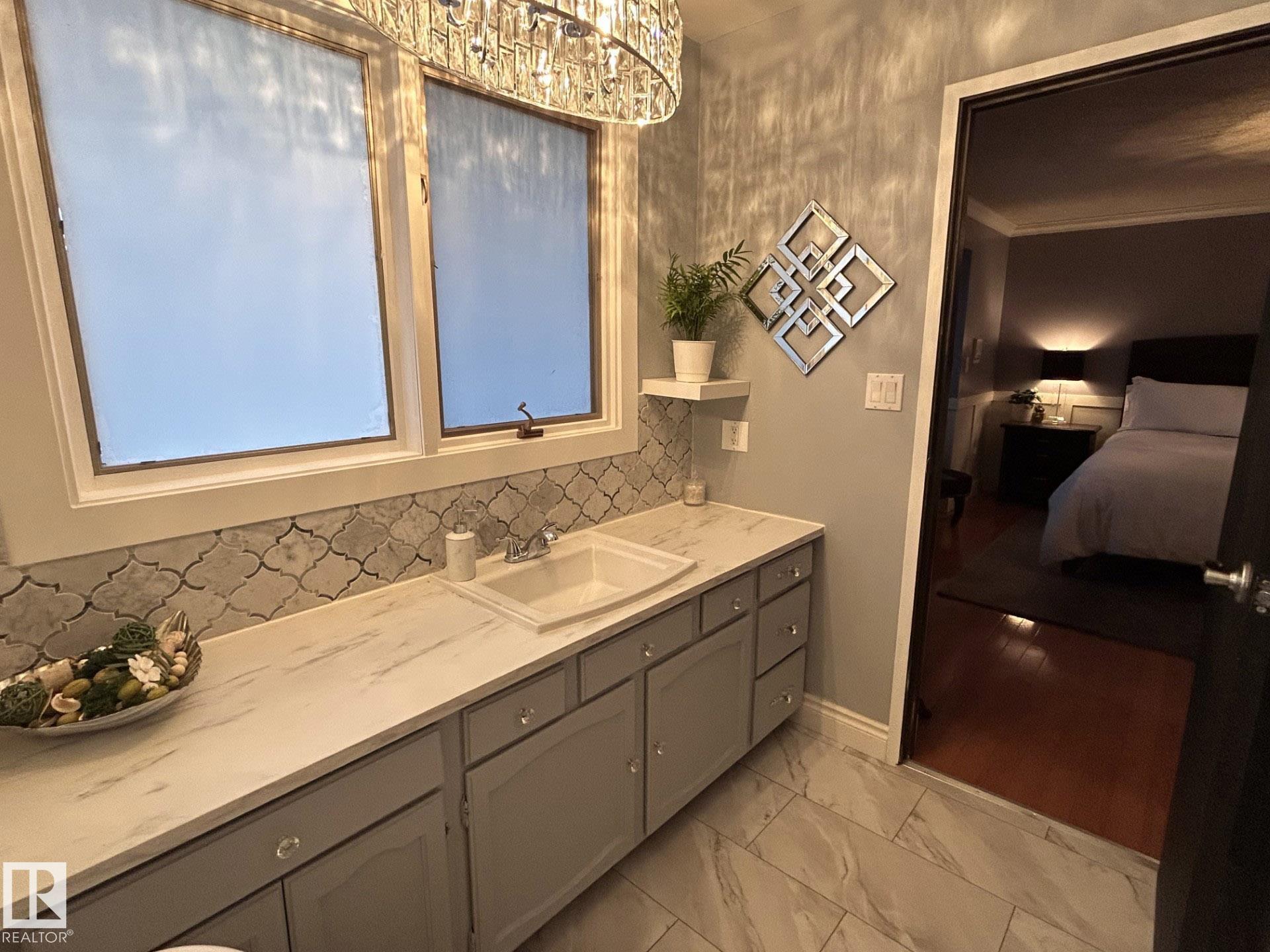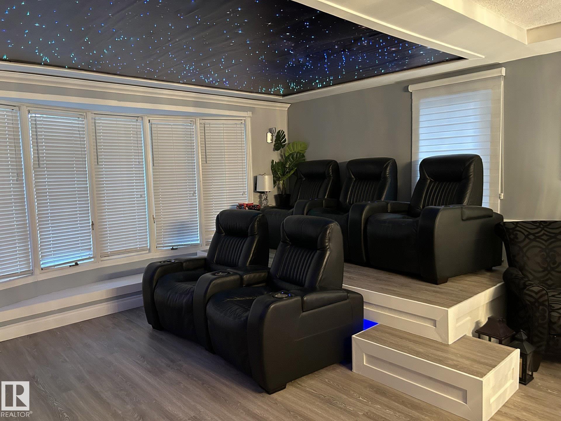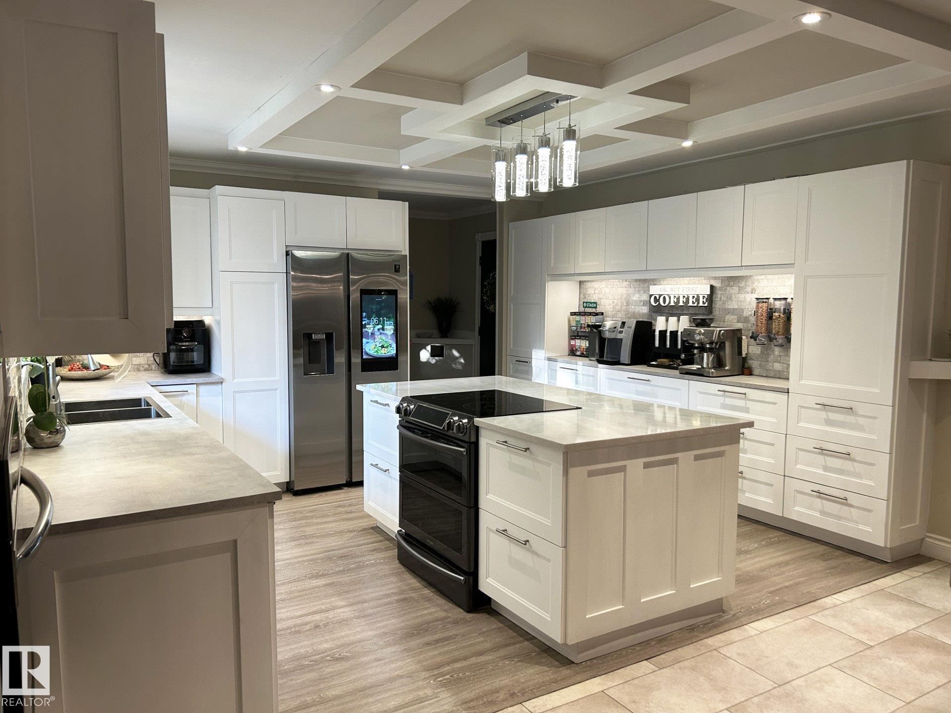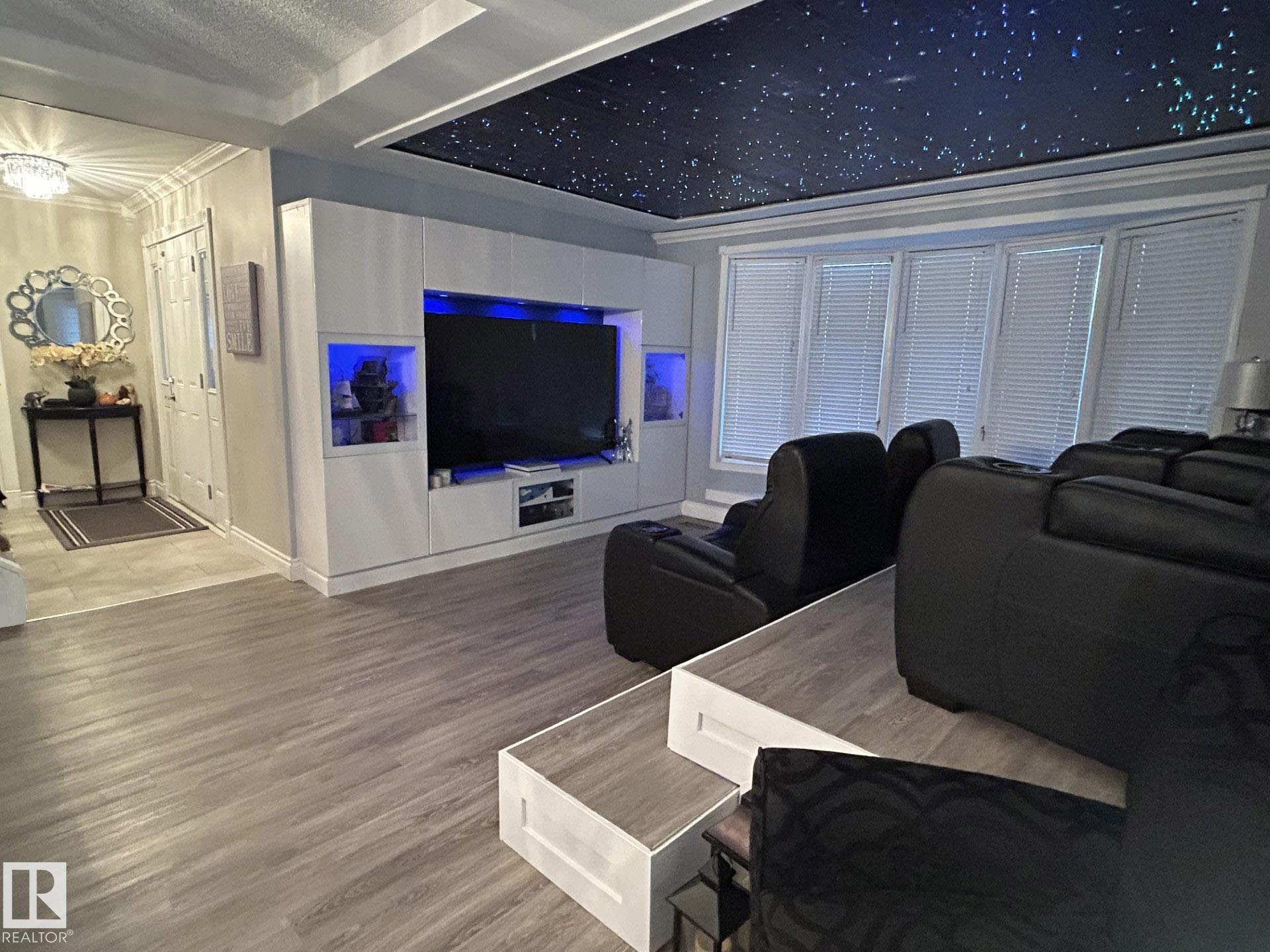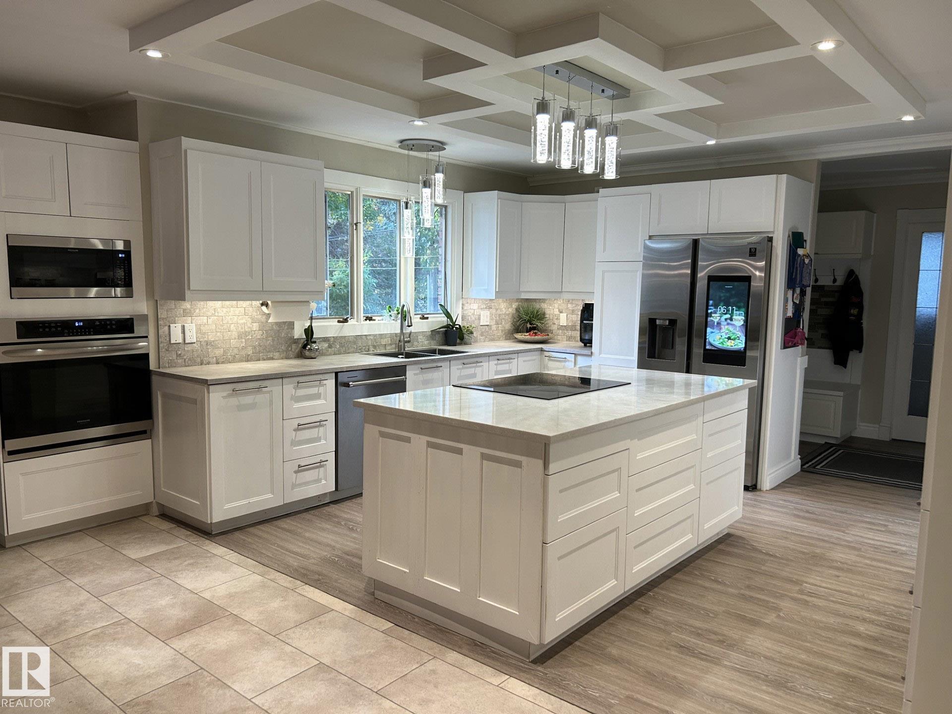 WOW! WOW! WOW!... this one is gorgeous place! An enormous 1977 - 2 story home that has been redone to a 10+. As you enter the home it opens to a beautiful foyer with seating and storage. Over to your right a spacious office and on your left a grand theater room complete with raised seating, pool table, mini bar and fish tank. Go up the stairs to find 4 beautiful bedrooms and 2 updated bathrooms. Now the kitchen boasting a massive island with counter top stove, 2 ovens, dishwasher, microwave and storage galore. Enjoy the crystal lighting throughout, a guest bathroom and main floor laundry. The sunken living room with a wood burning fireplace is just off the covered west facing deck with privacy netting overlooking the spacious backyard with pond, patio and mature trees. There is a double attached garage with built-ins and a single garage at the back with RV parking. Wait till you see the fully finished 2 bedroom in-law basement suite, complete with full kitchen, laundry room and workshop.