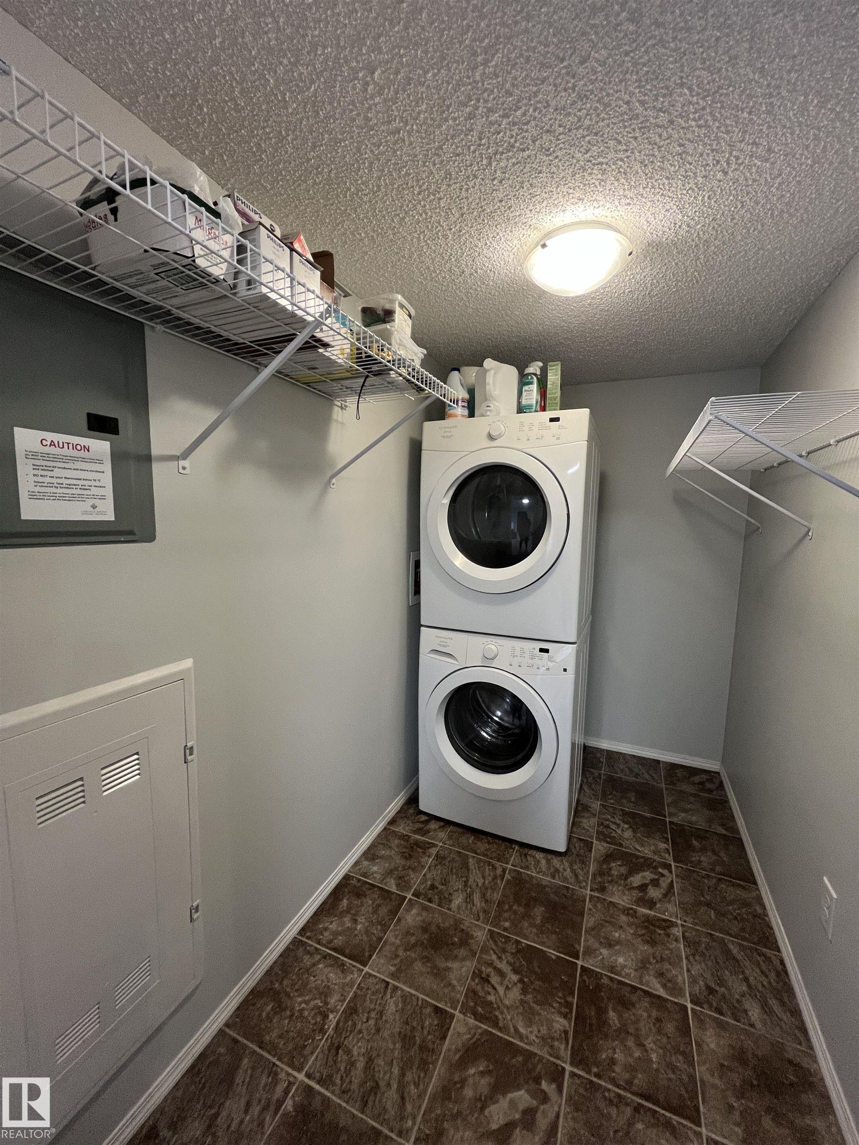 Unit 317 at Elements II in McConachie 2. This 2 bedroom, 2 bathroom + DEN condo is ideal for first-time buyers, professionals, or investors. A spacious unit measuring at 925 sq ft. This unit also comes with a titled parking stall and storage unit. Enjoy modern convenience with a fully equipped kitchen featuring stainless steel appliances and elegant granite countertops, paired with the added comfort of in-suite laundry for everyday ease and efficiency. Located in the heart of McConachie with Christ The King School in your backyard and shopping close by!