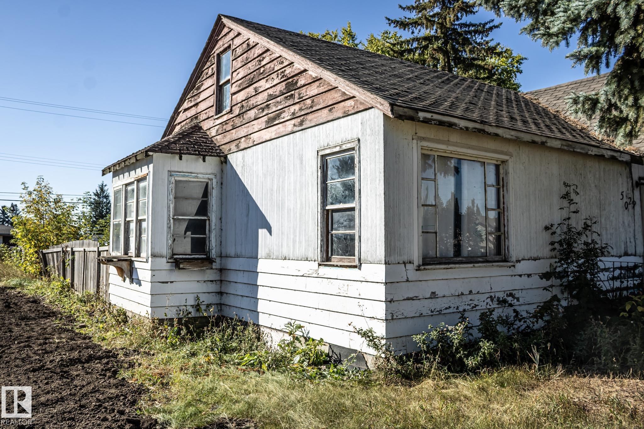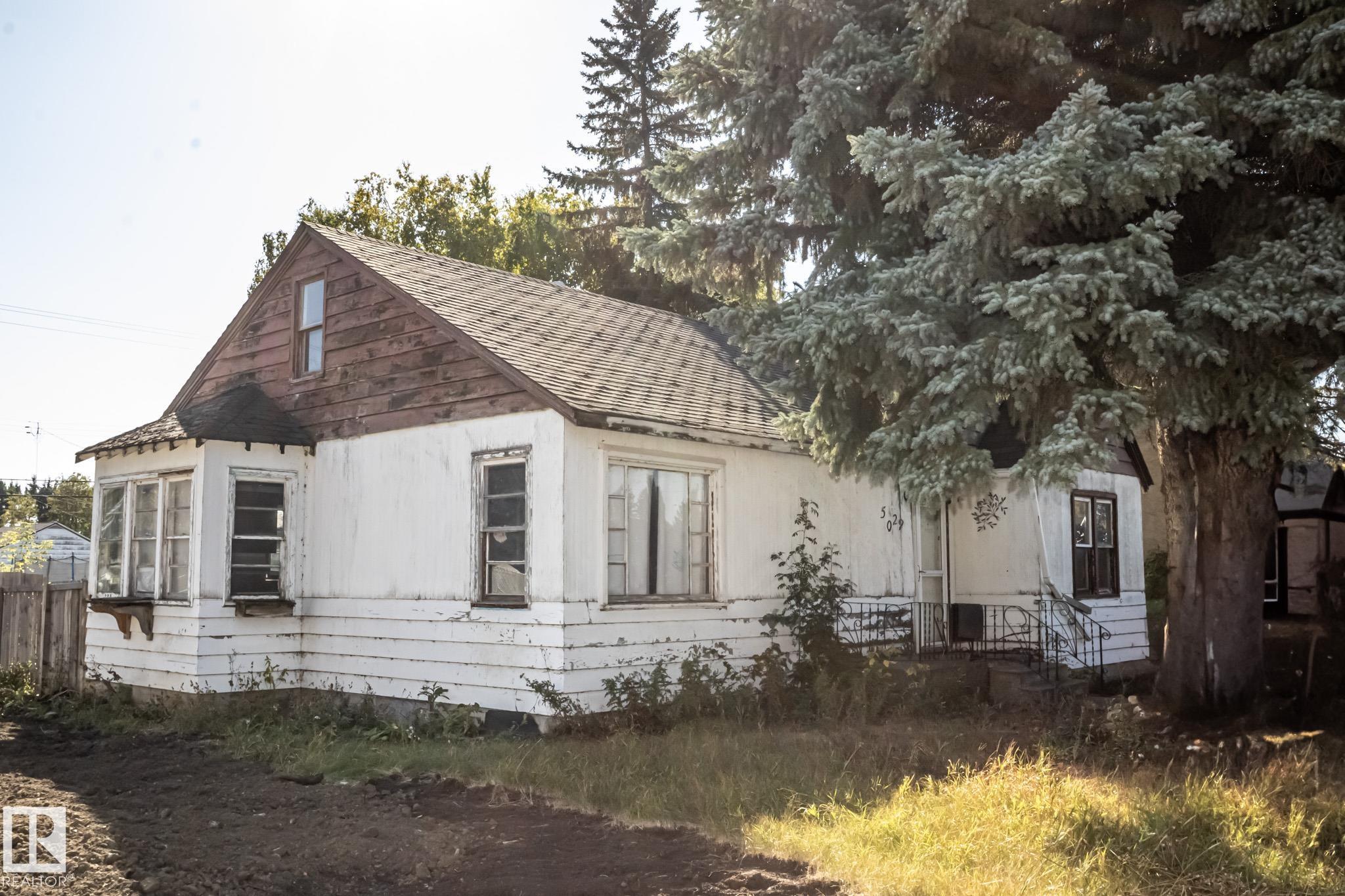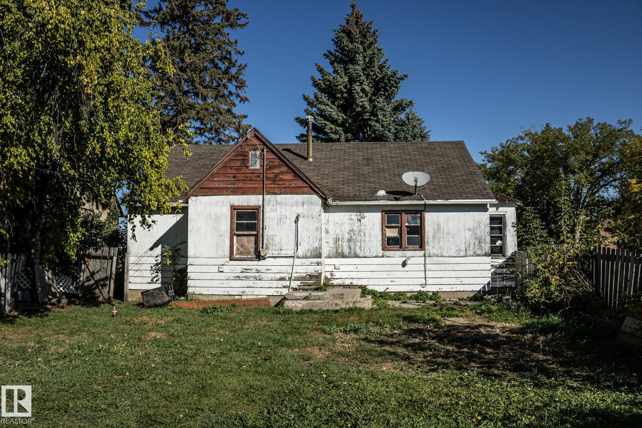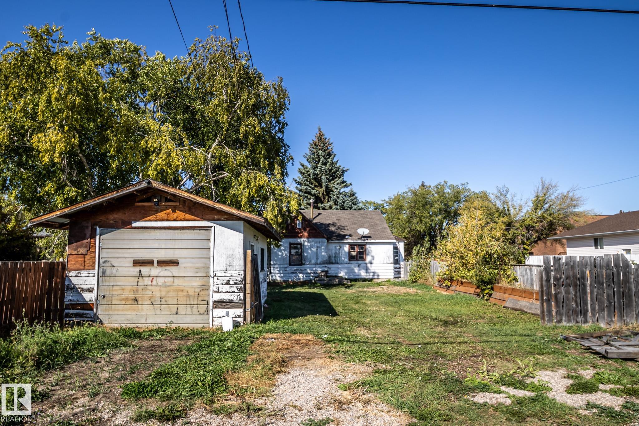 One-and-a-half-story home located in a central area of St. Paul. The main floor includes a living area, kitchen, bathroom, and two bedrooms, with two additional bedrooms located on the upper level. A single detached garage is situated at the back of the property, along with space for additional parking.